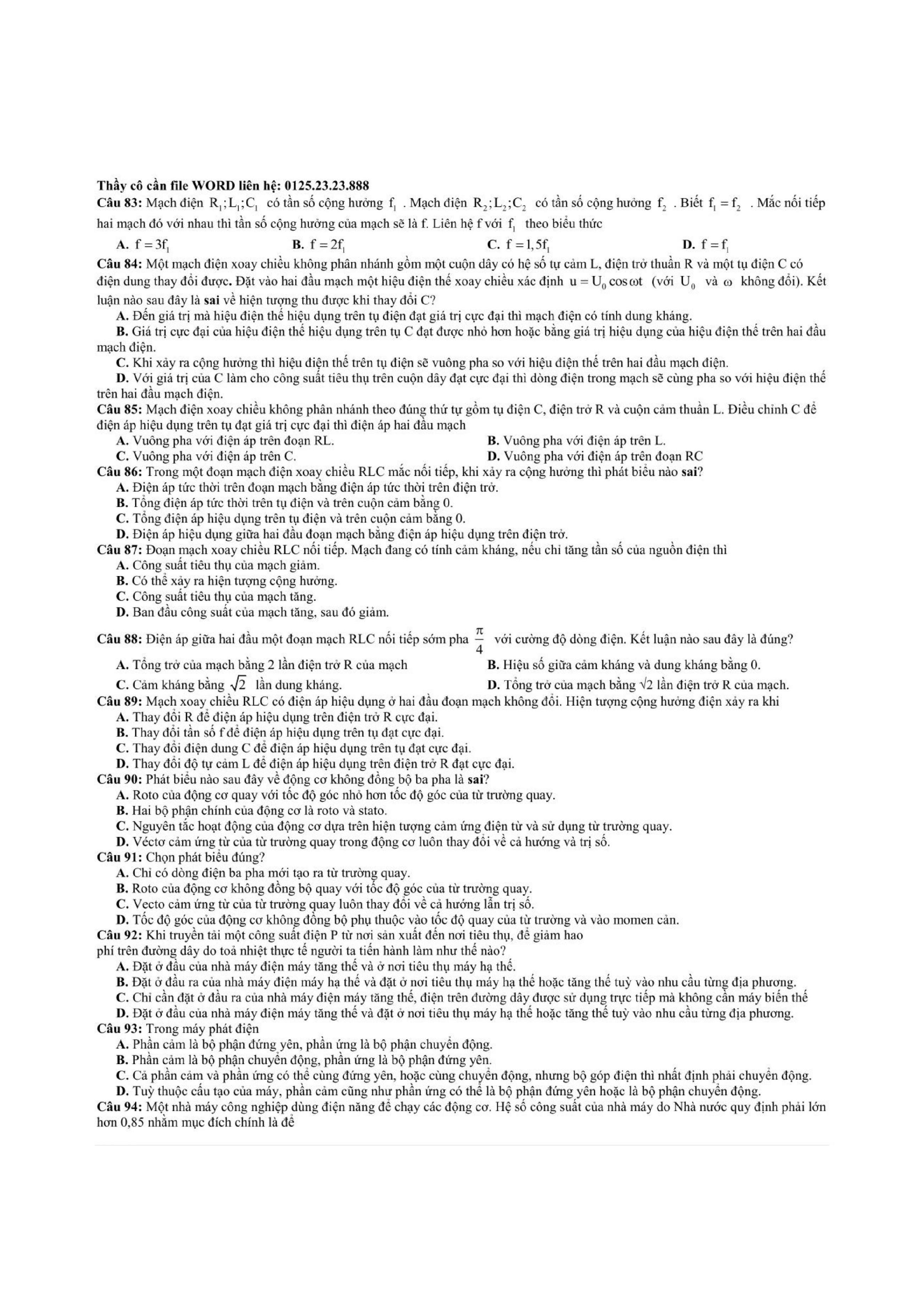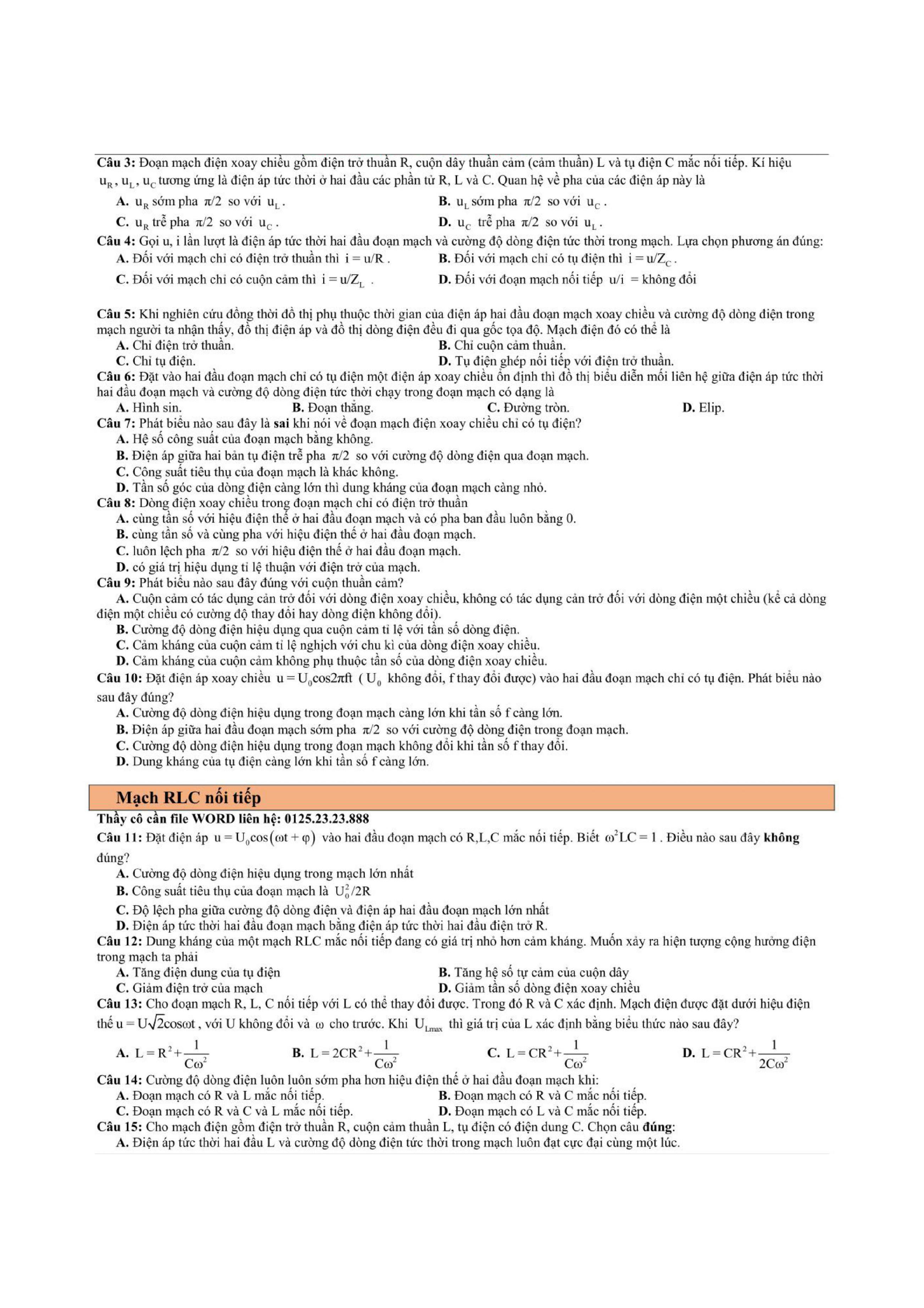 240 câu hỏi tinh túy chương sóng cơ