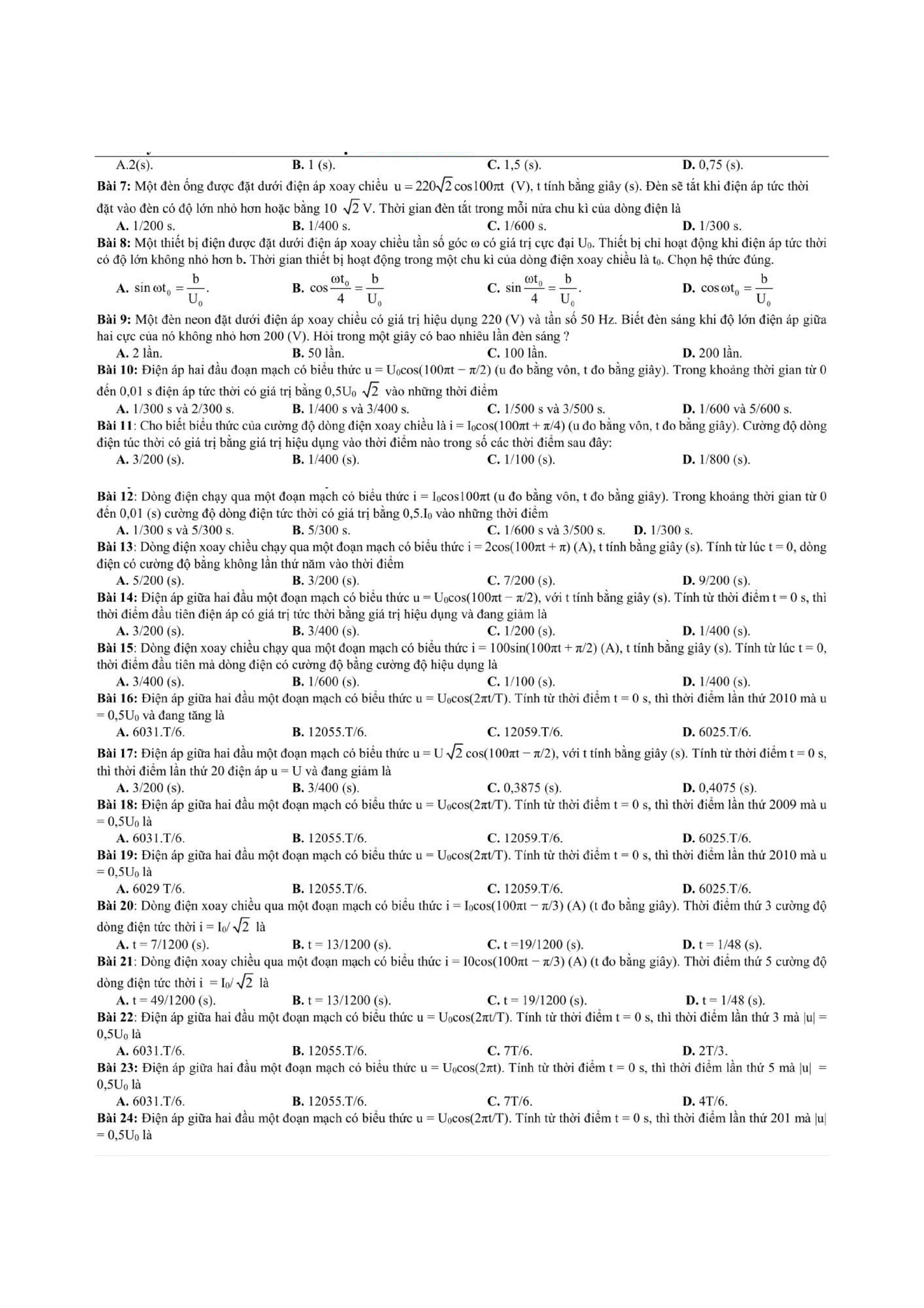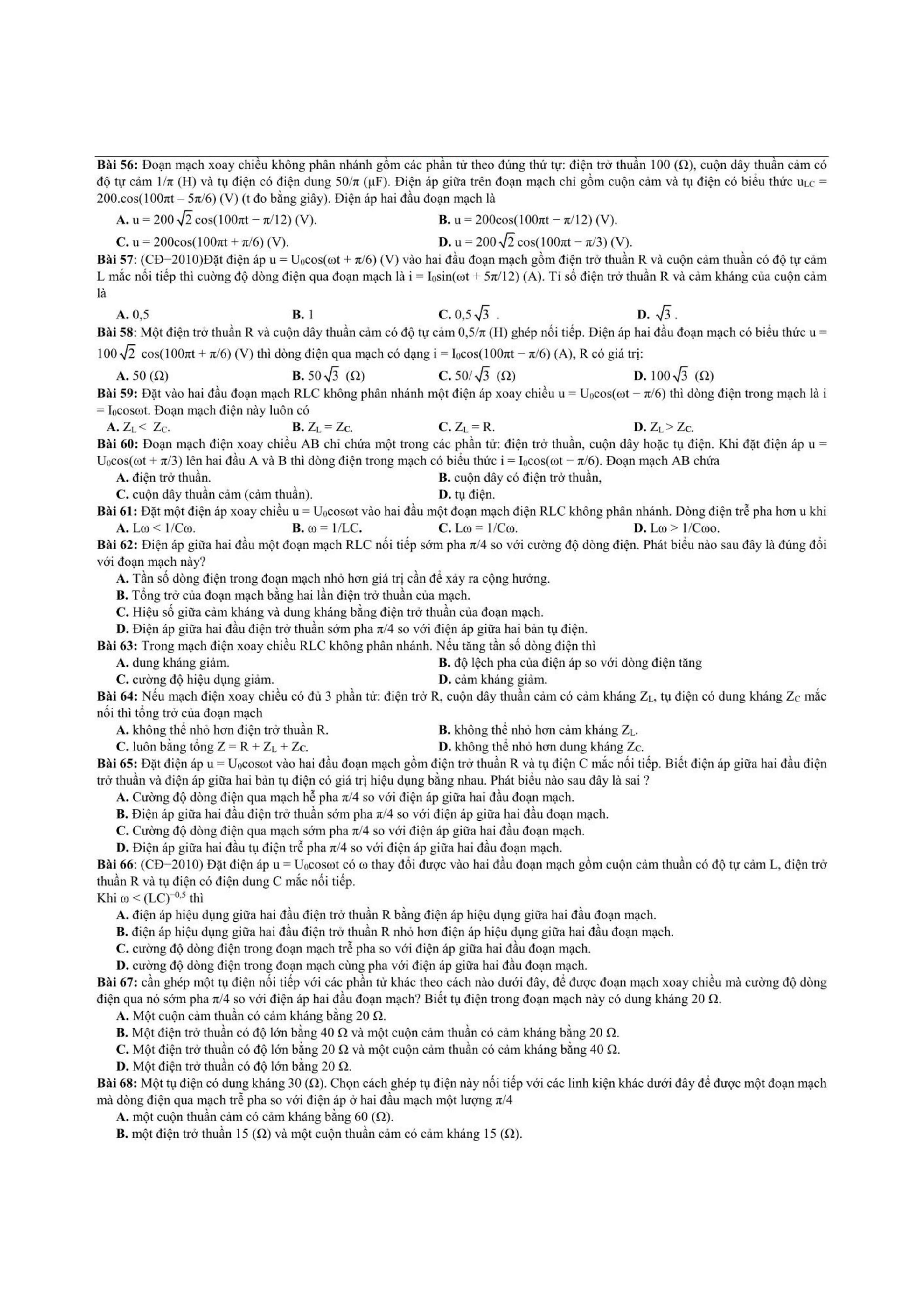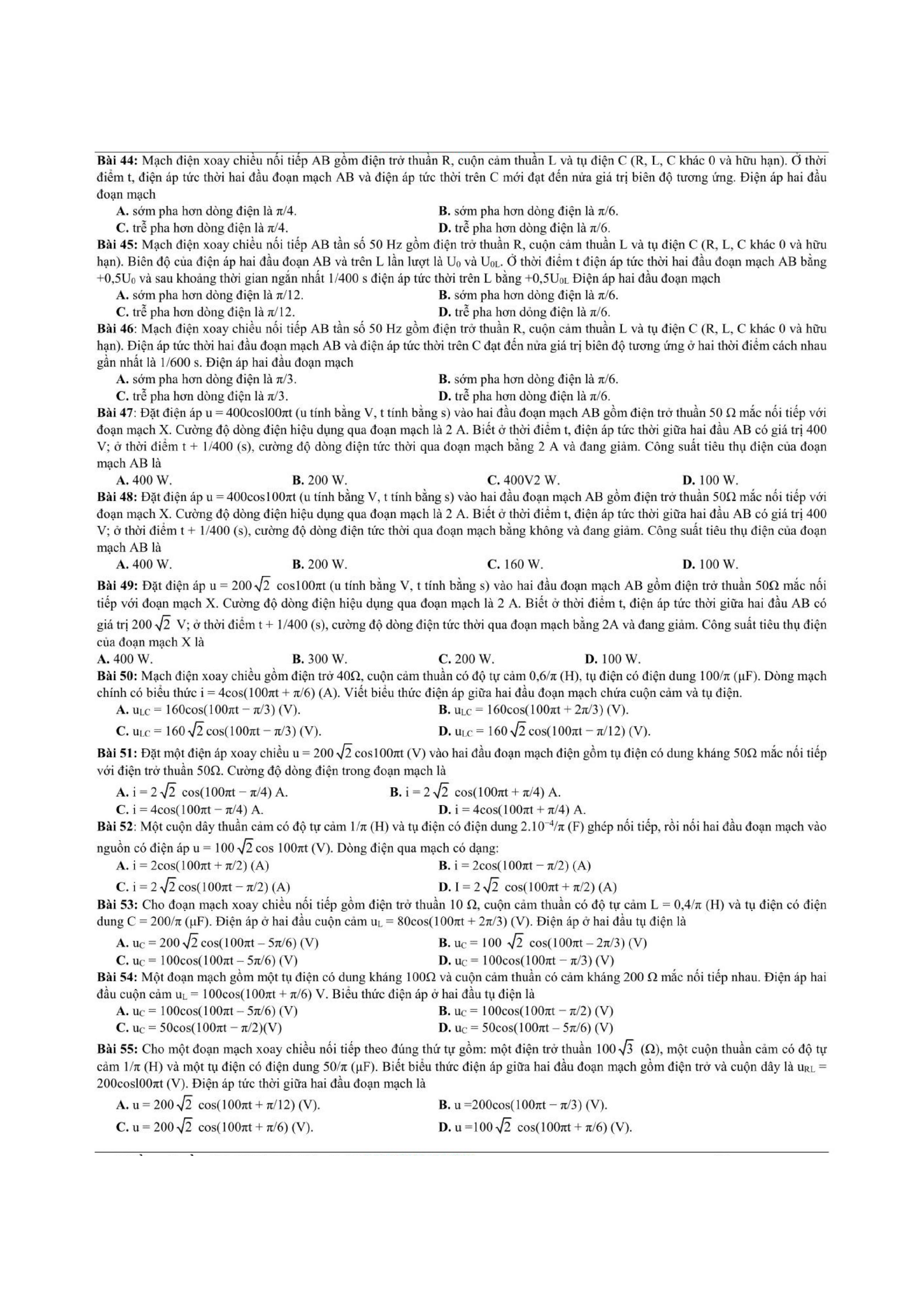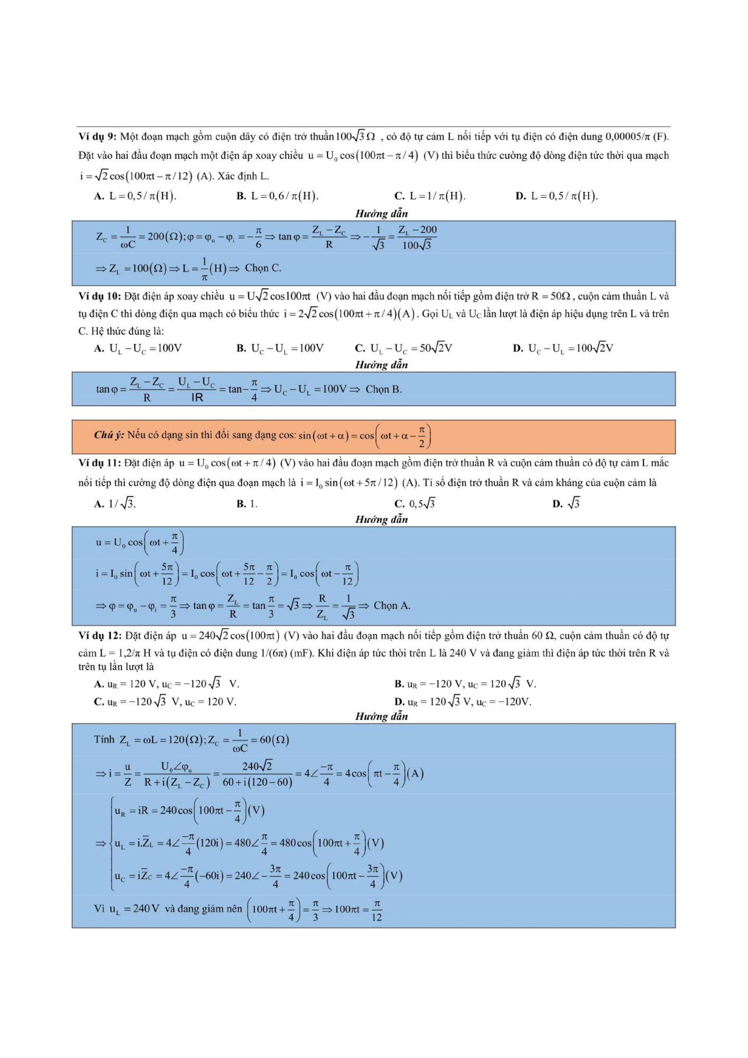 Tổng hợp các dạng bài tập dòng điện xoay chiều thường xuyên xuất hiện trong các bài tập, bài kiểm tra học kỳ Vật Lí 12 và cả trong quá trình ôn thi đại học môn Lý.