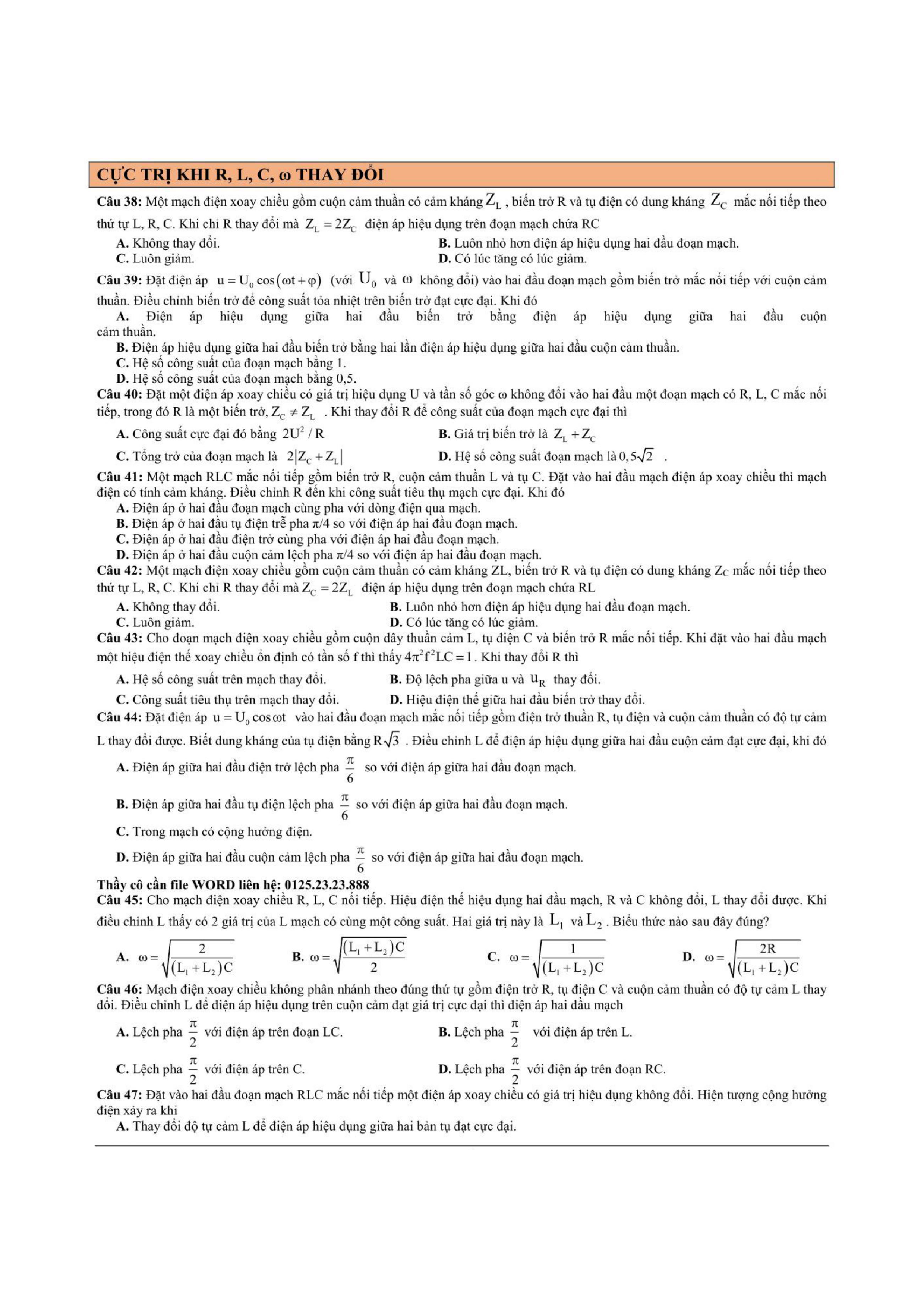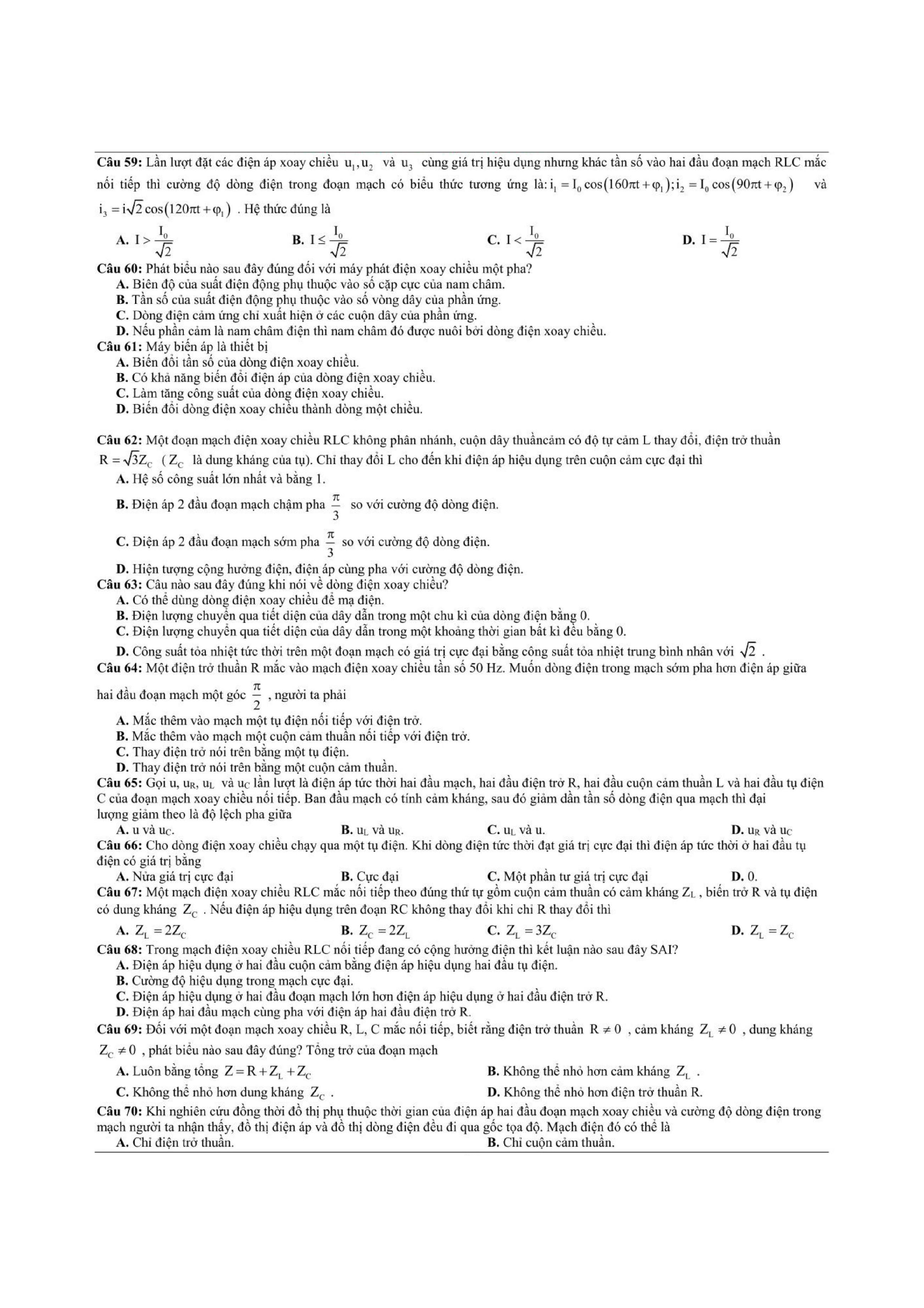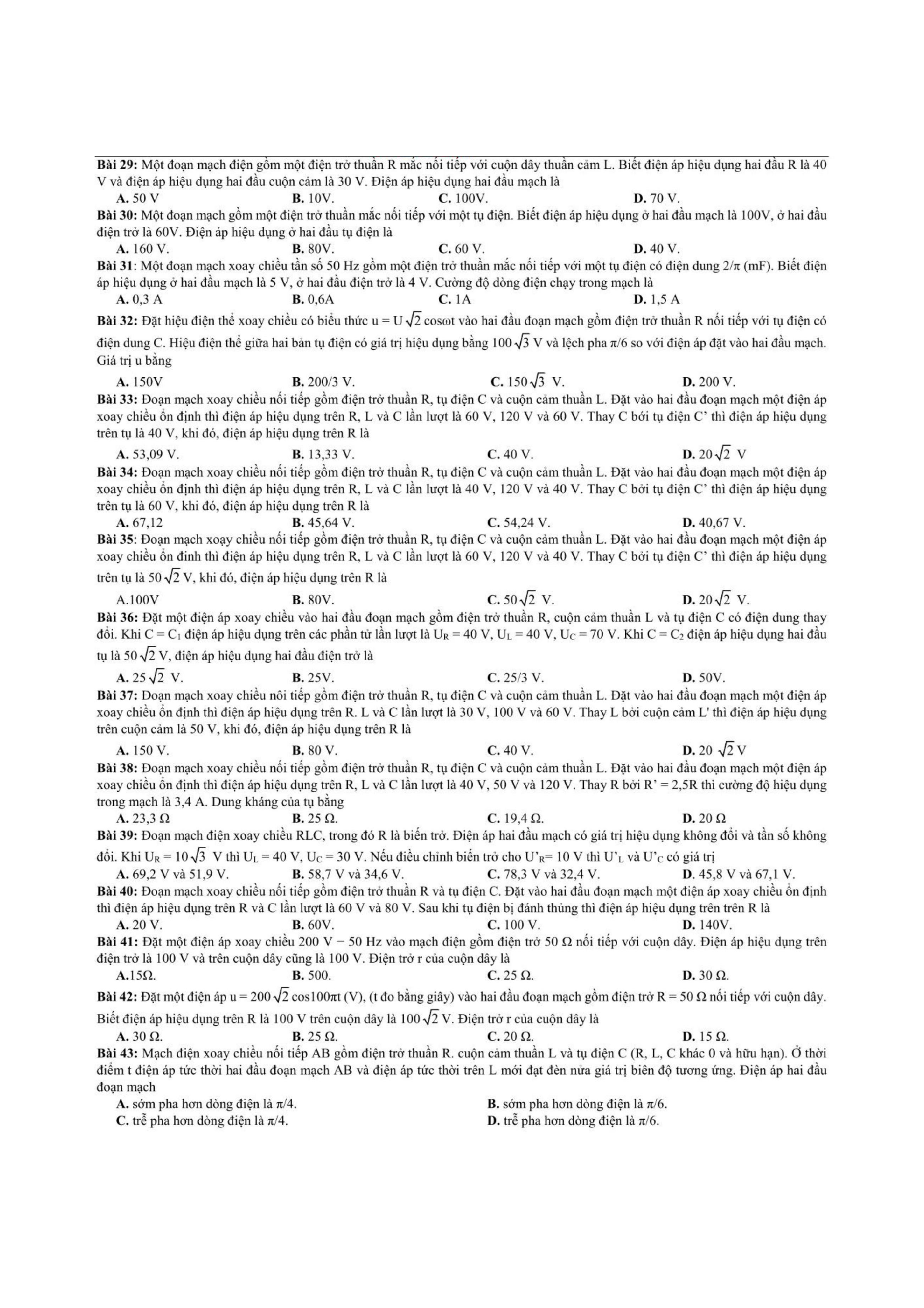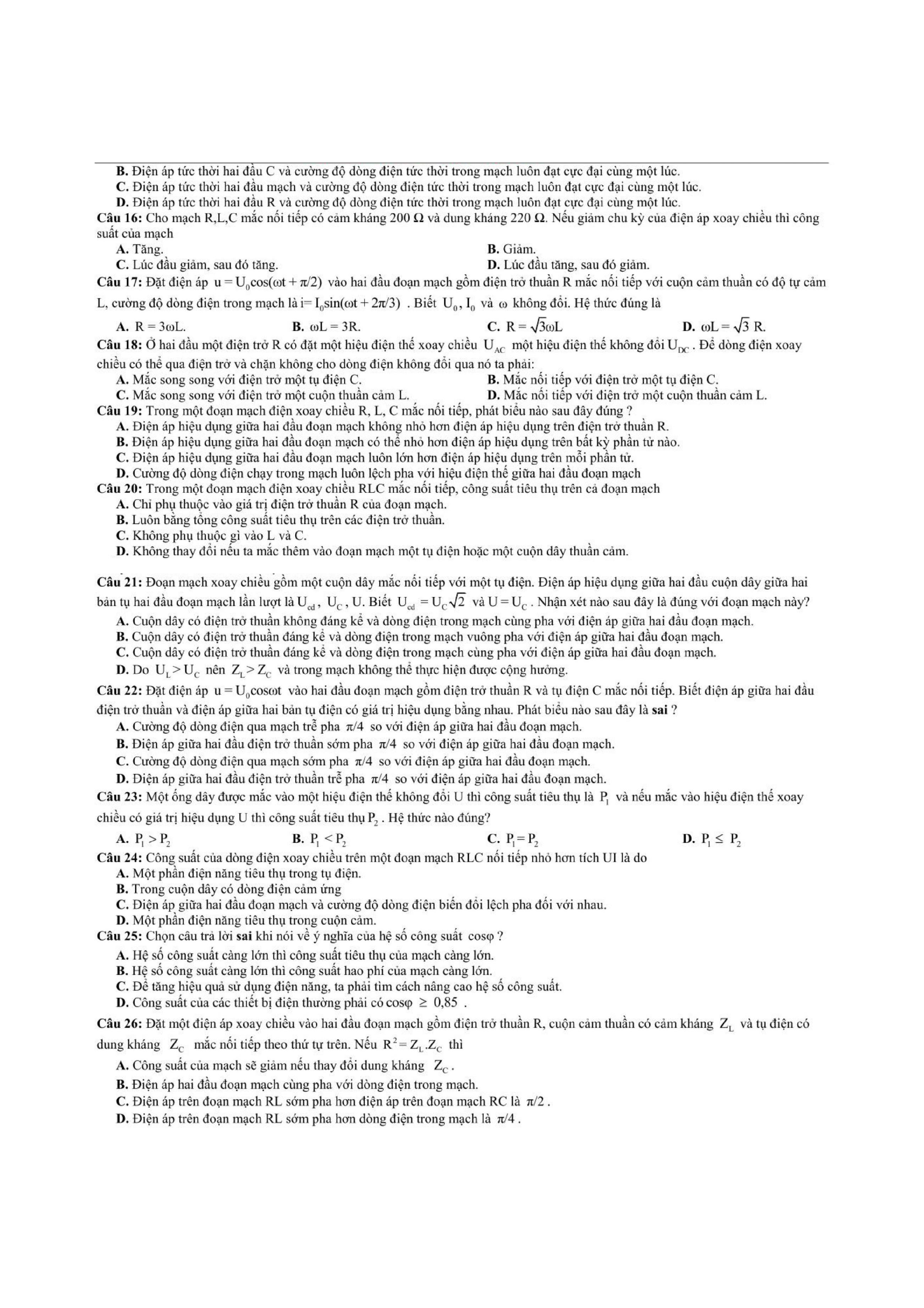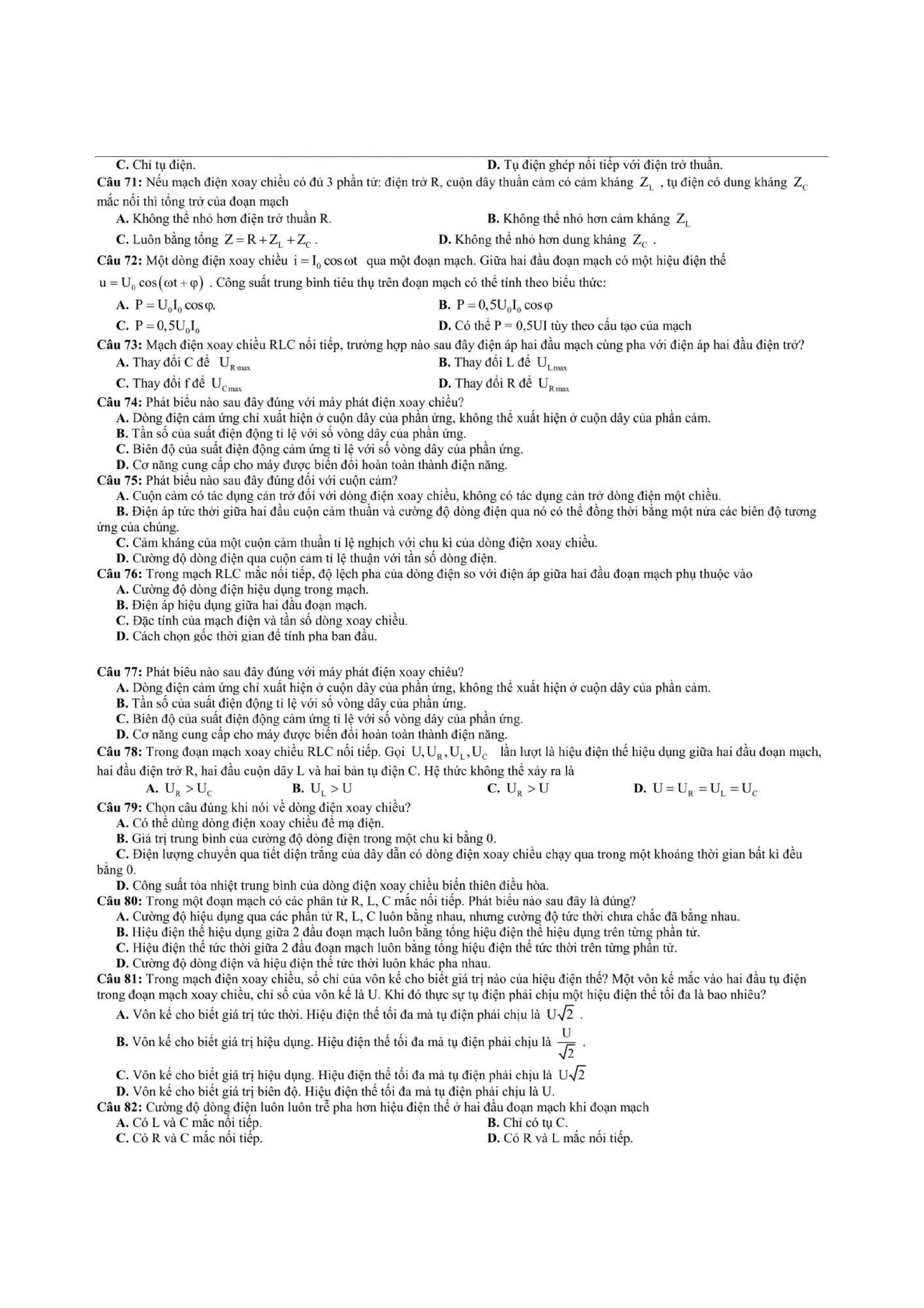 Tổng hợp các dạng bài tập dòng điện xoay chiều thường xuyên xuất hiện trong các bài tập, bài kiểm tra học kỳ Vật Lí 12 và cả trong quá trình ôn thi đại học môn Lý.