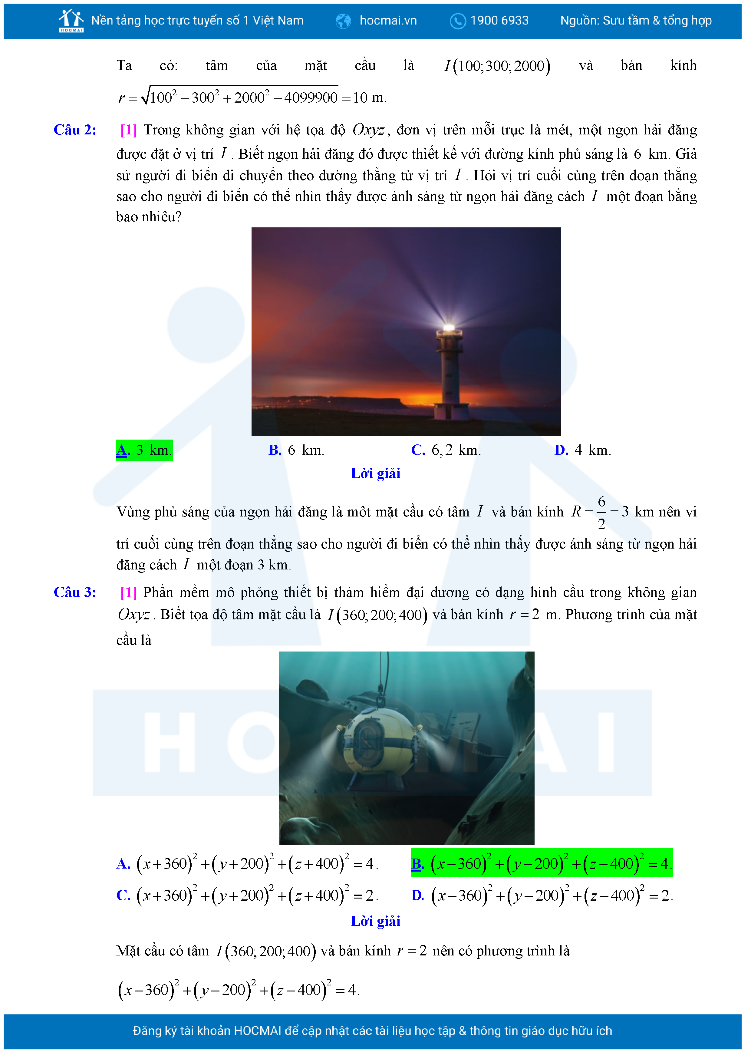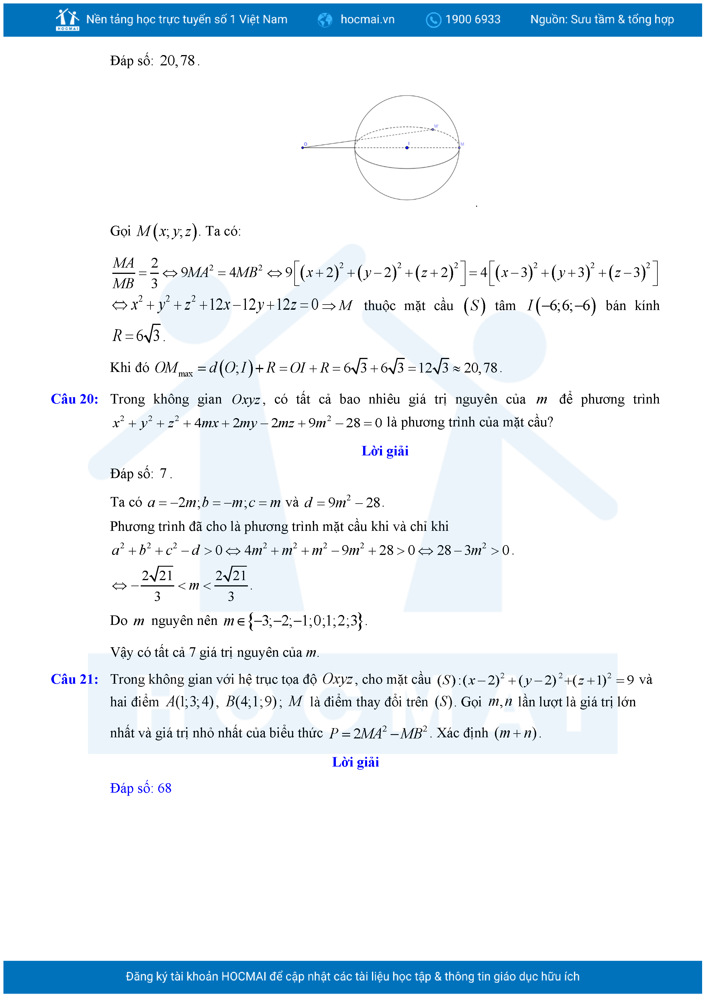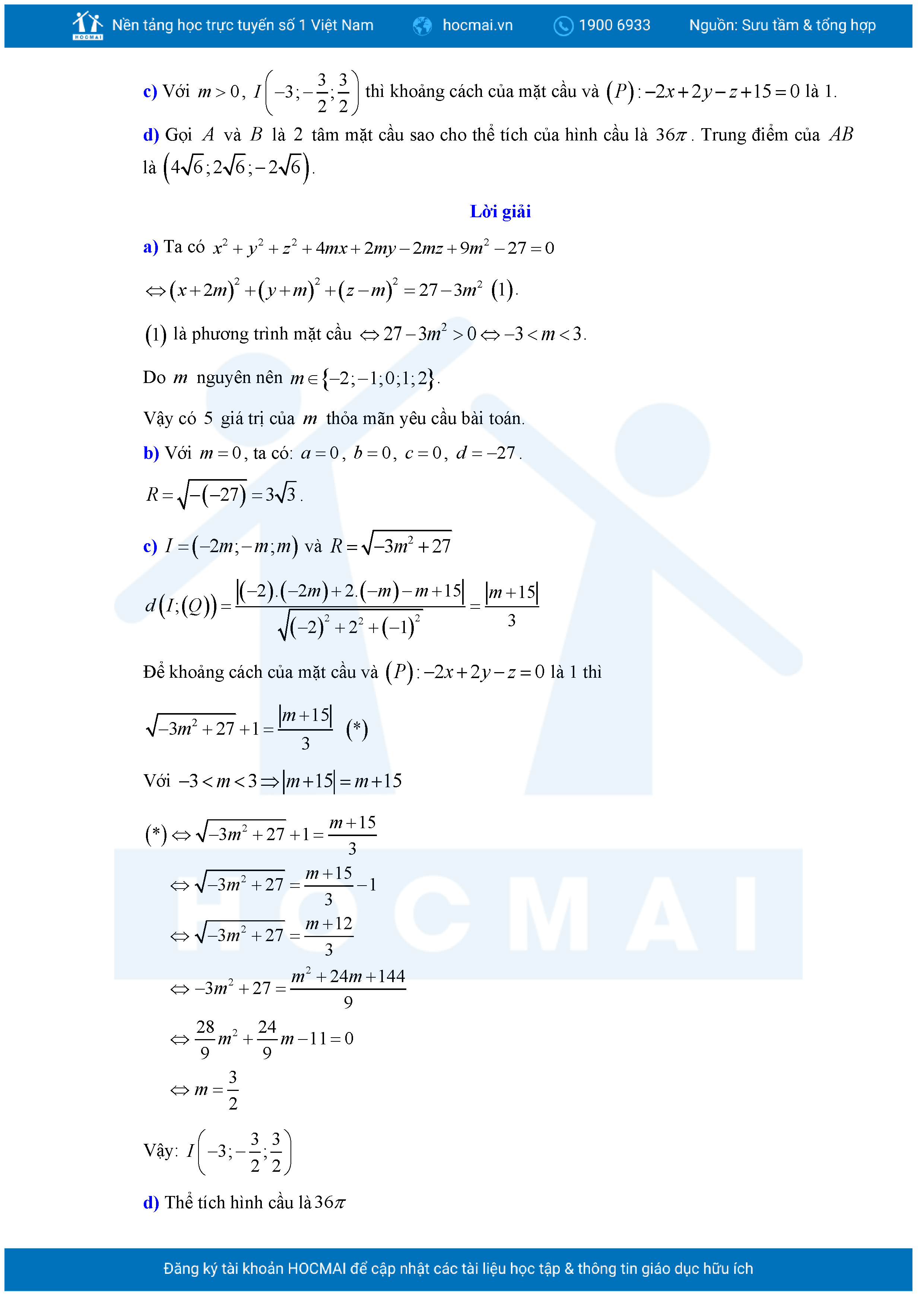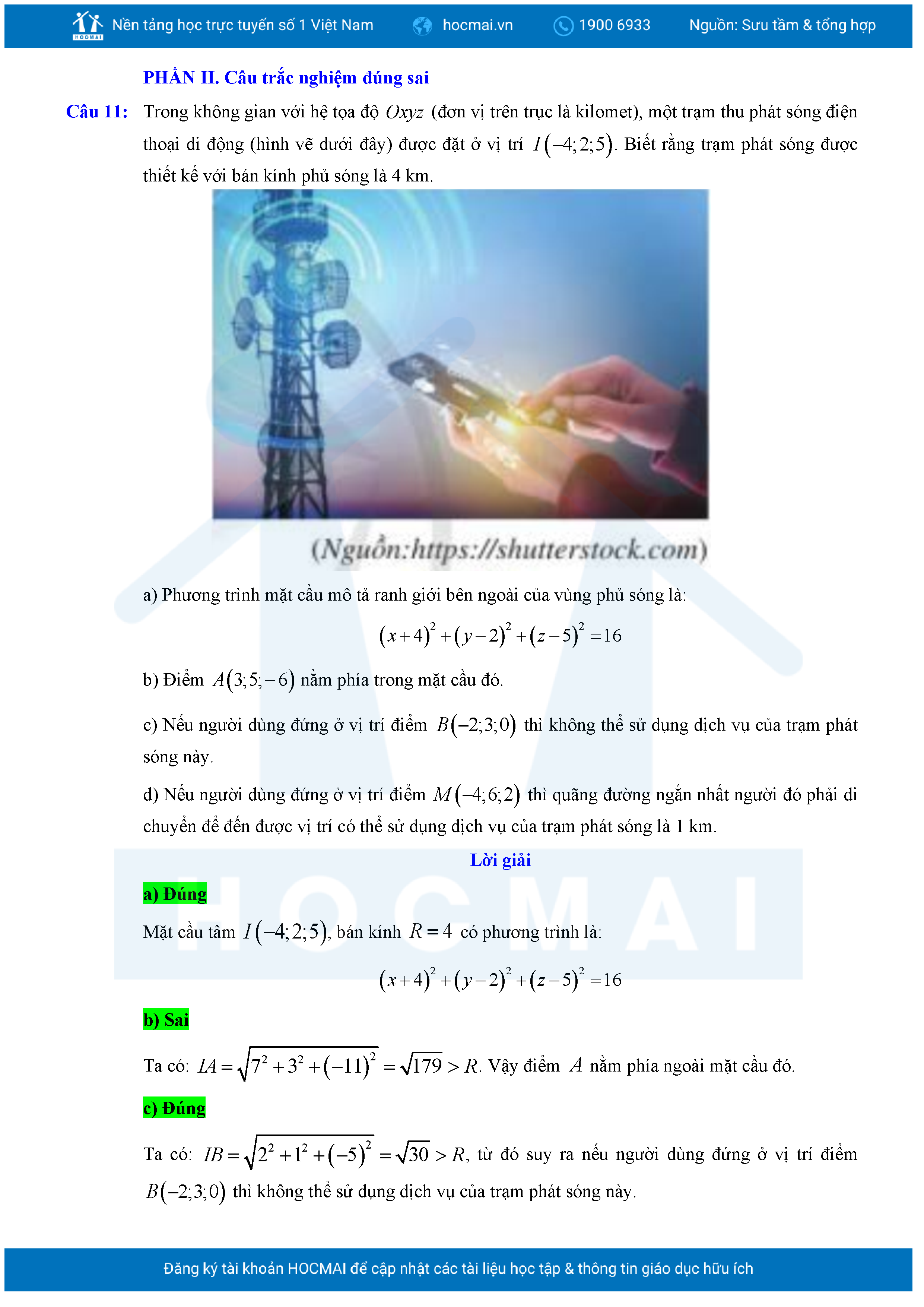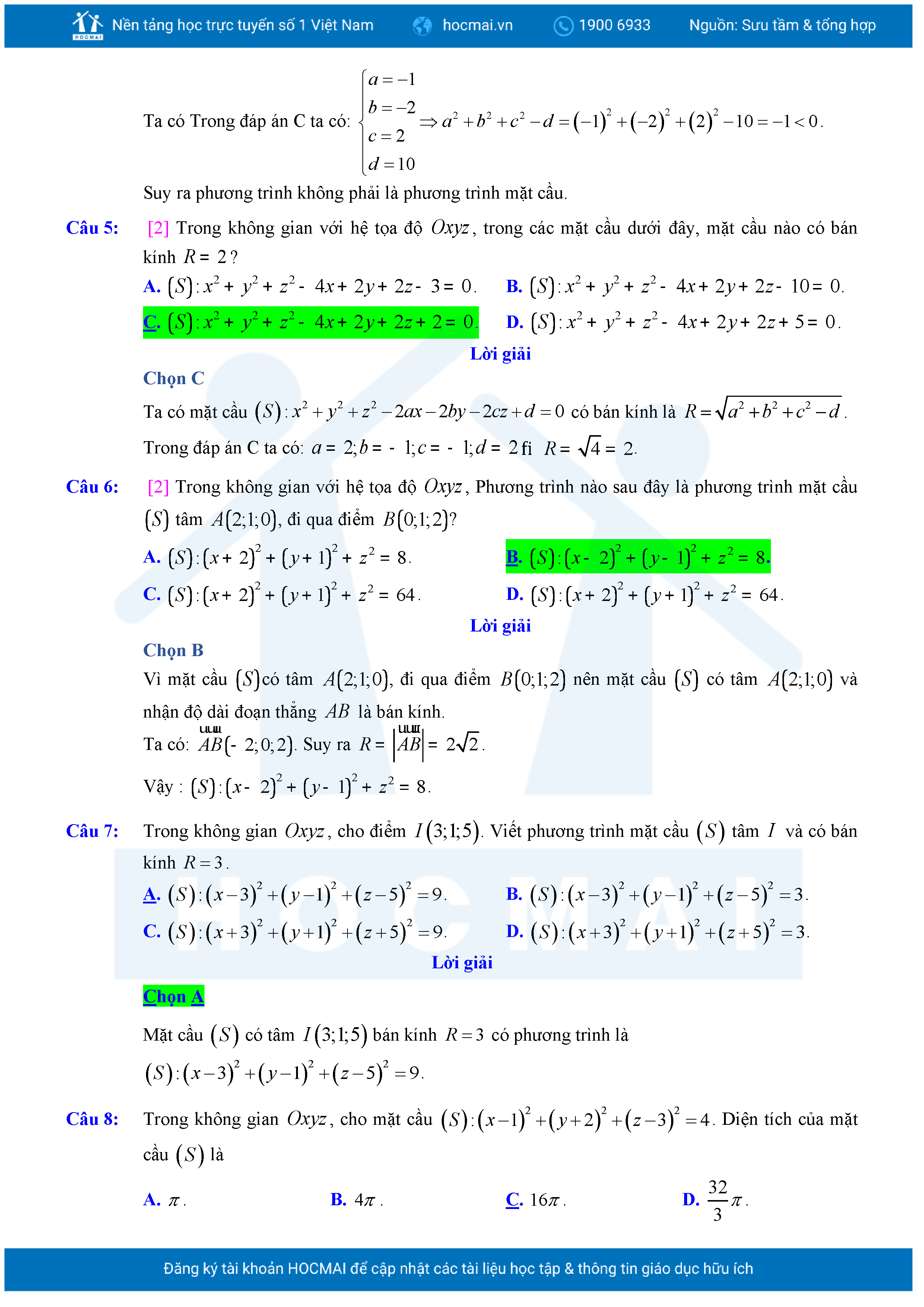 Chuyên đề Phương trình mặt cầu ôn thi tốt nghiệp THPT giải chi tiết
