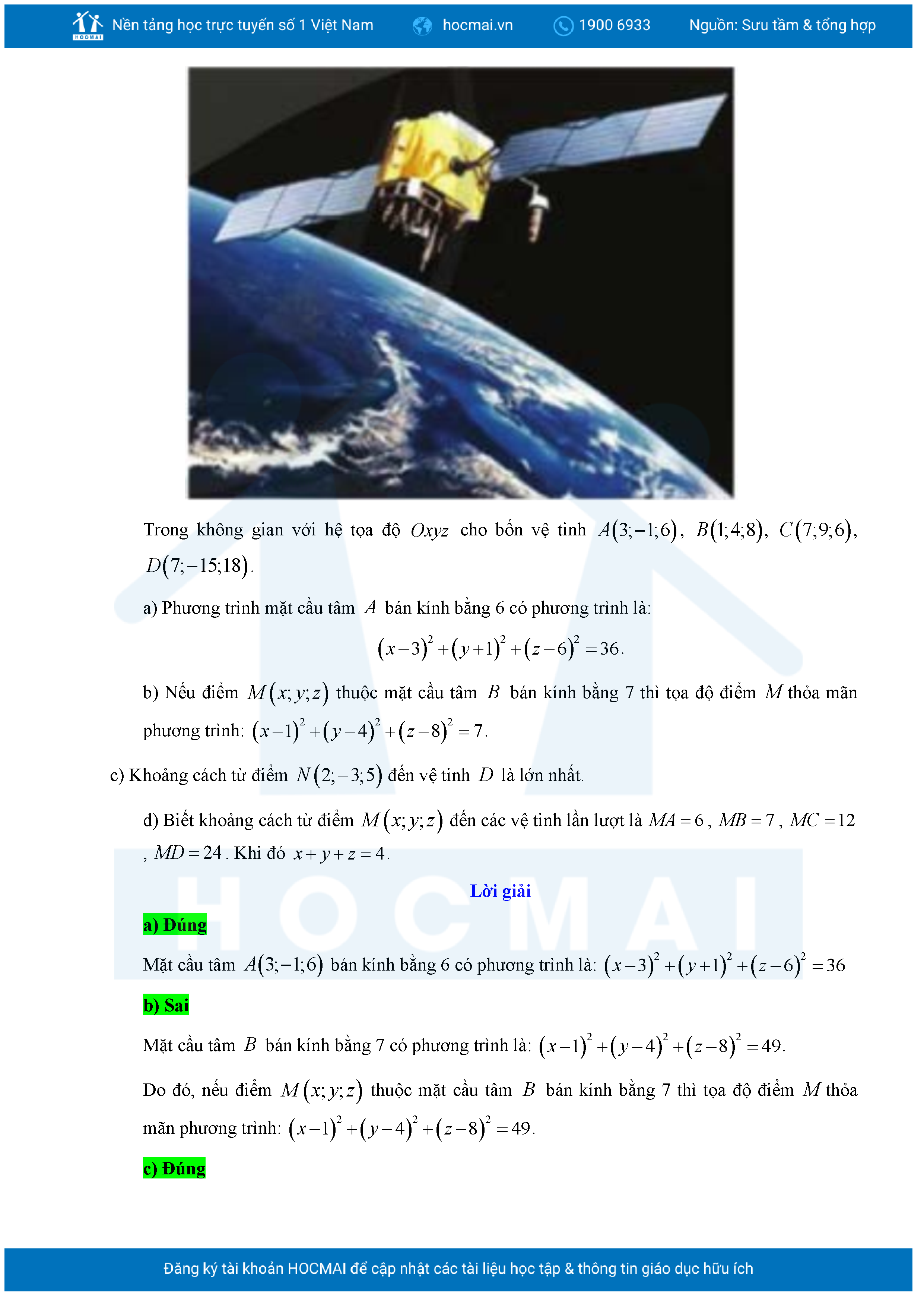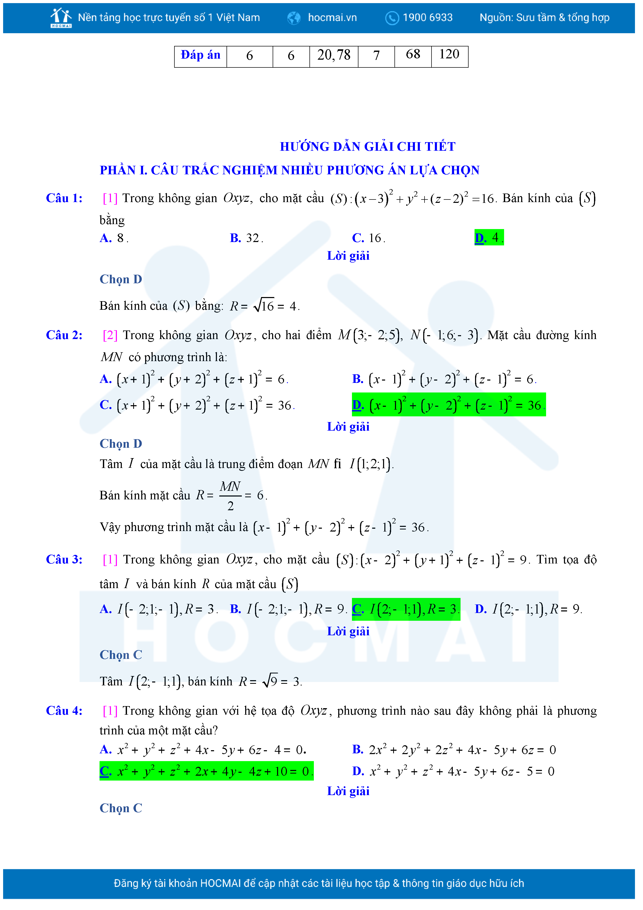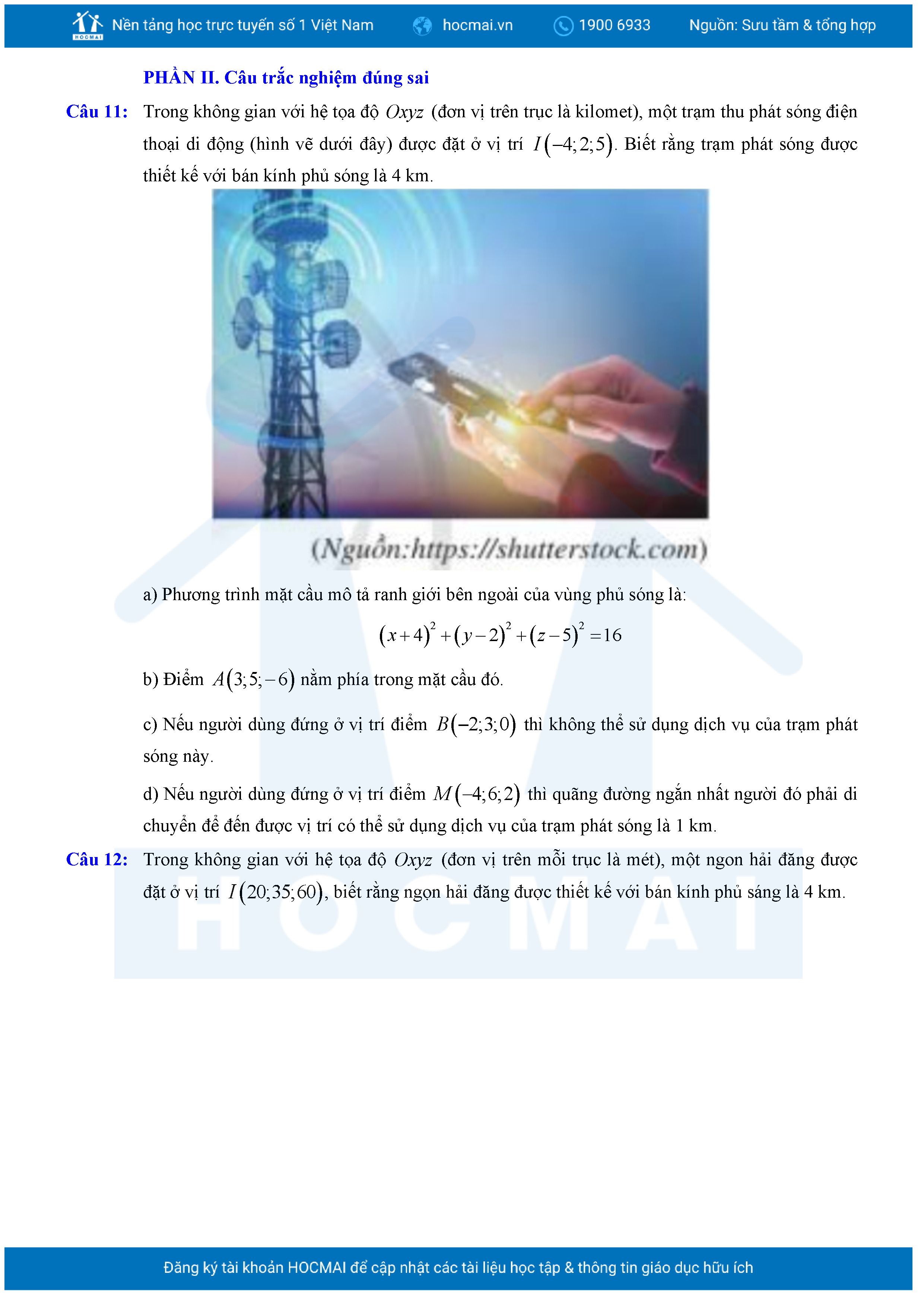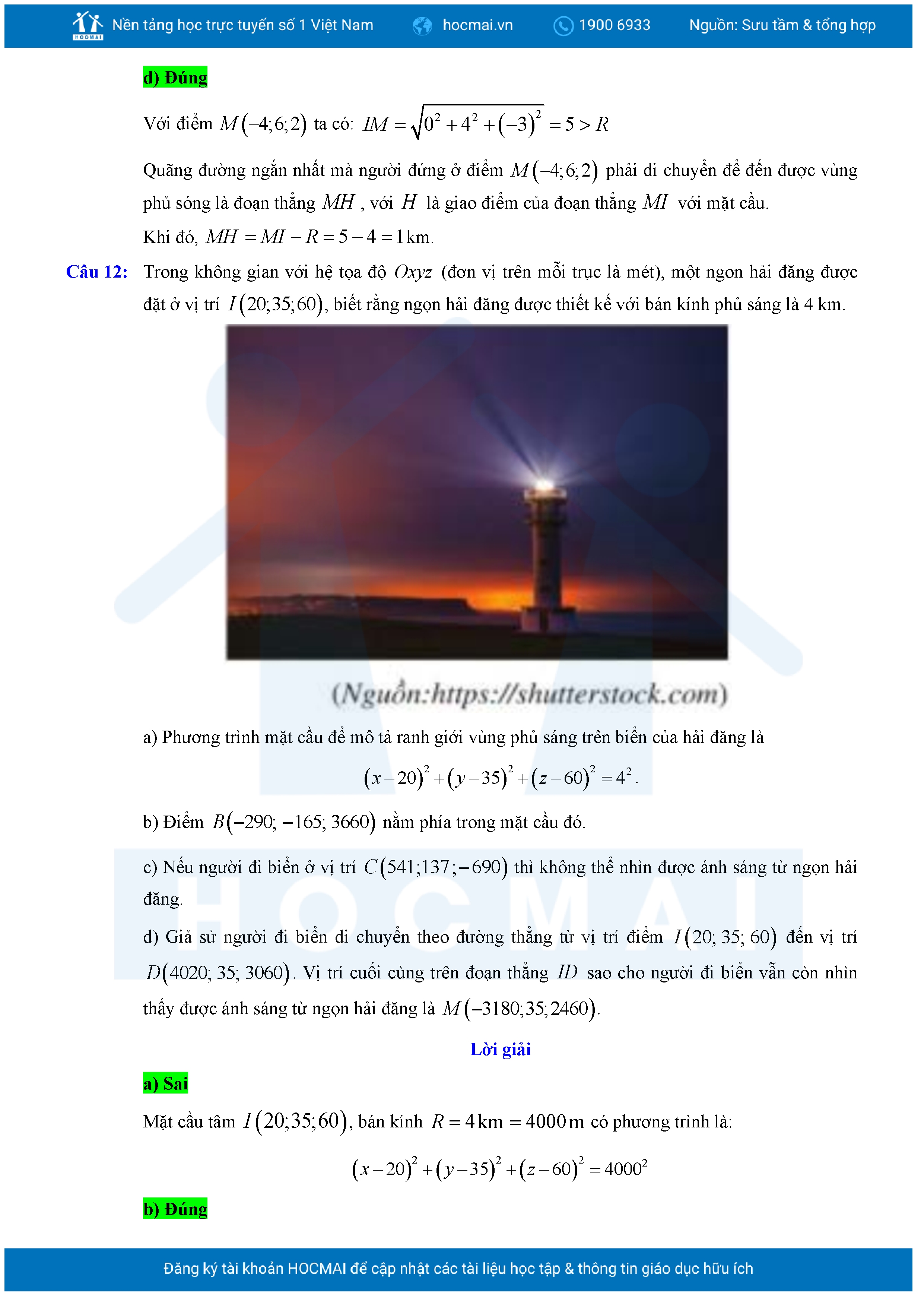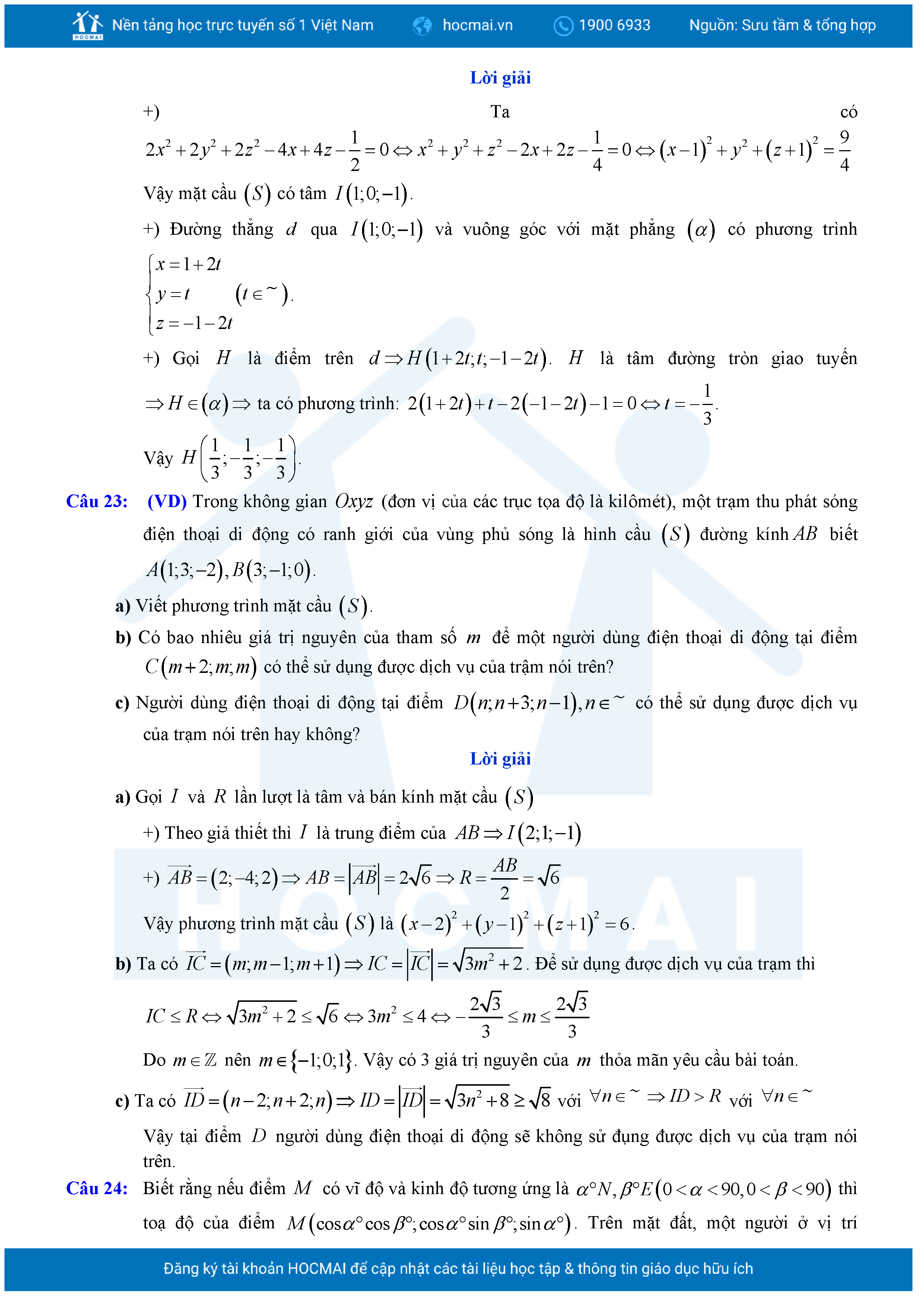 Chuyên đề Phương trình mặt cầu ôn thi tốt nghiệp THPT giải chi tiết