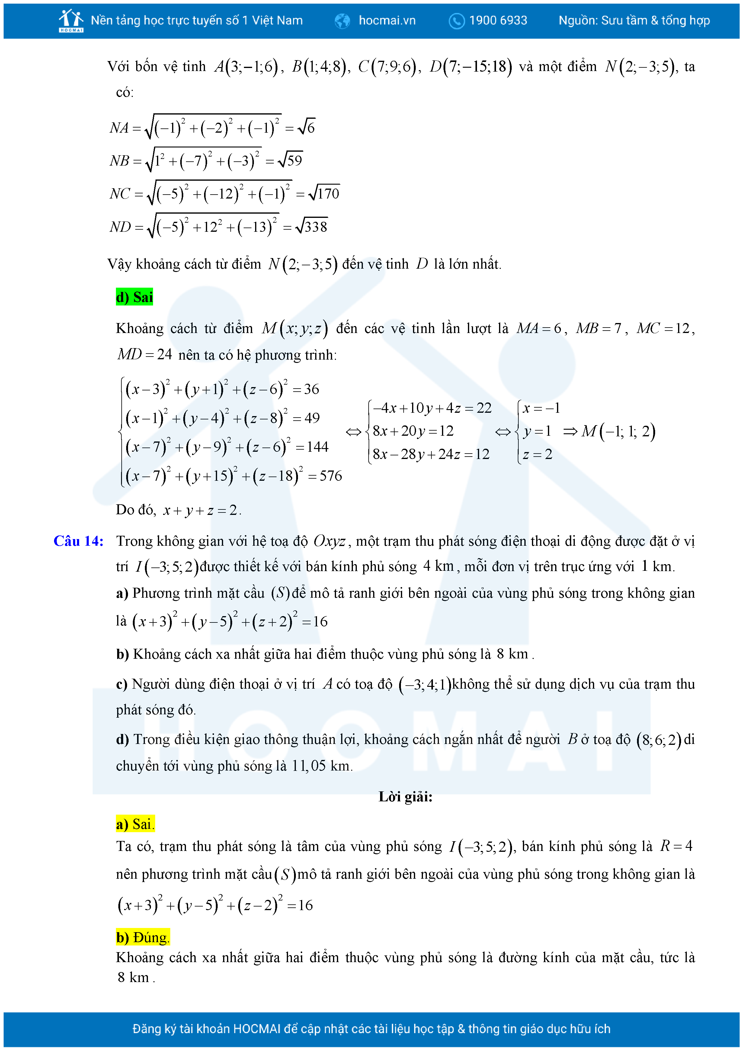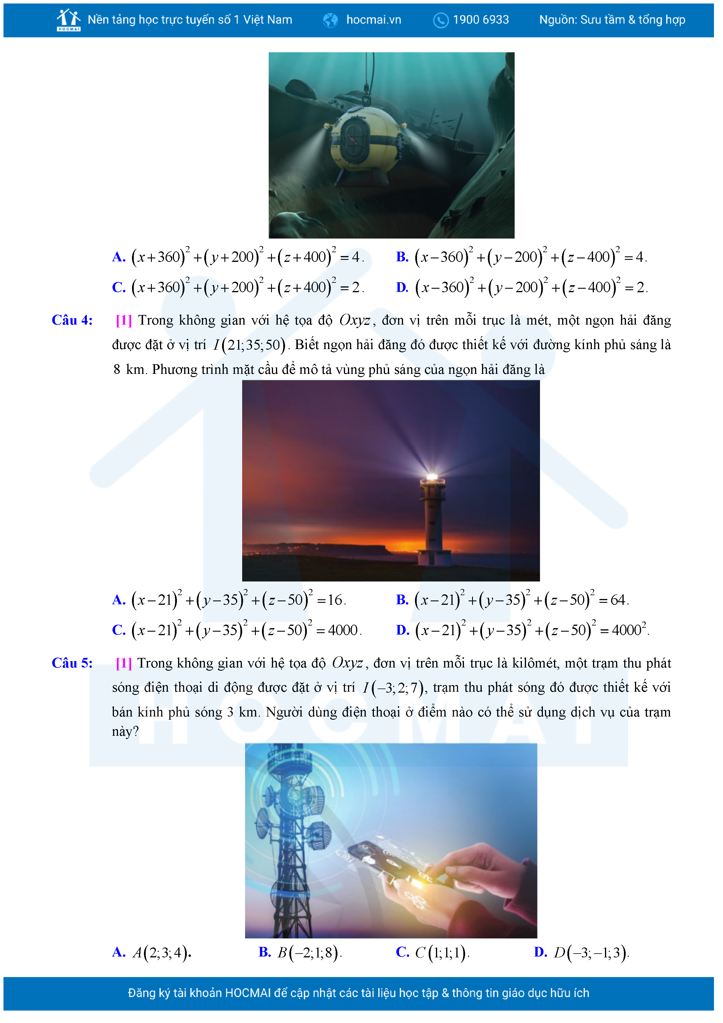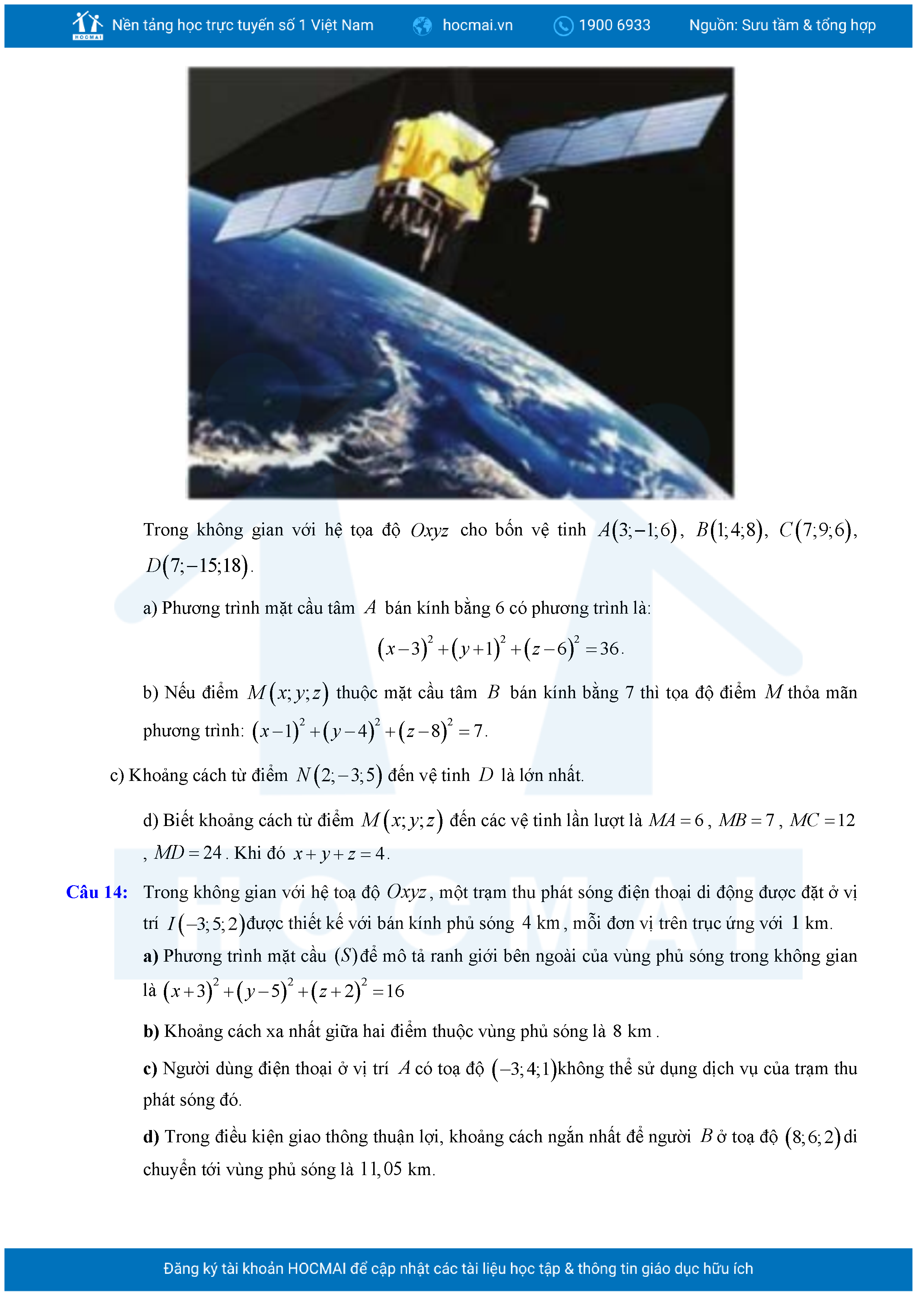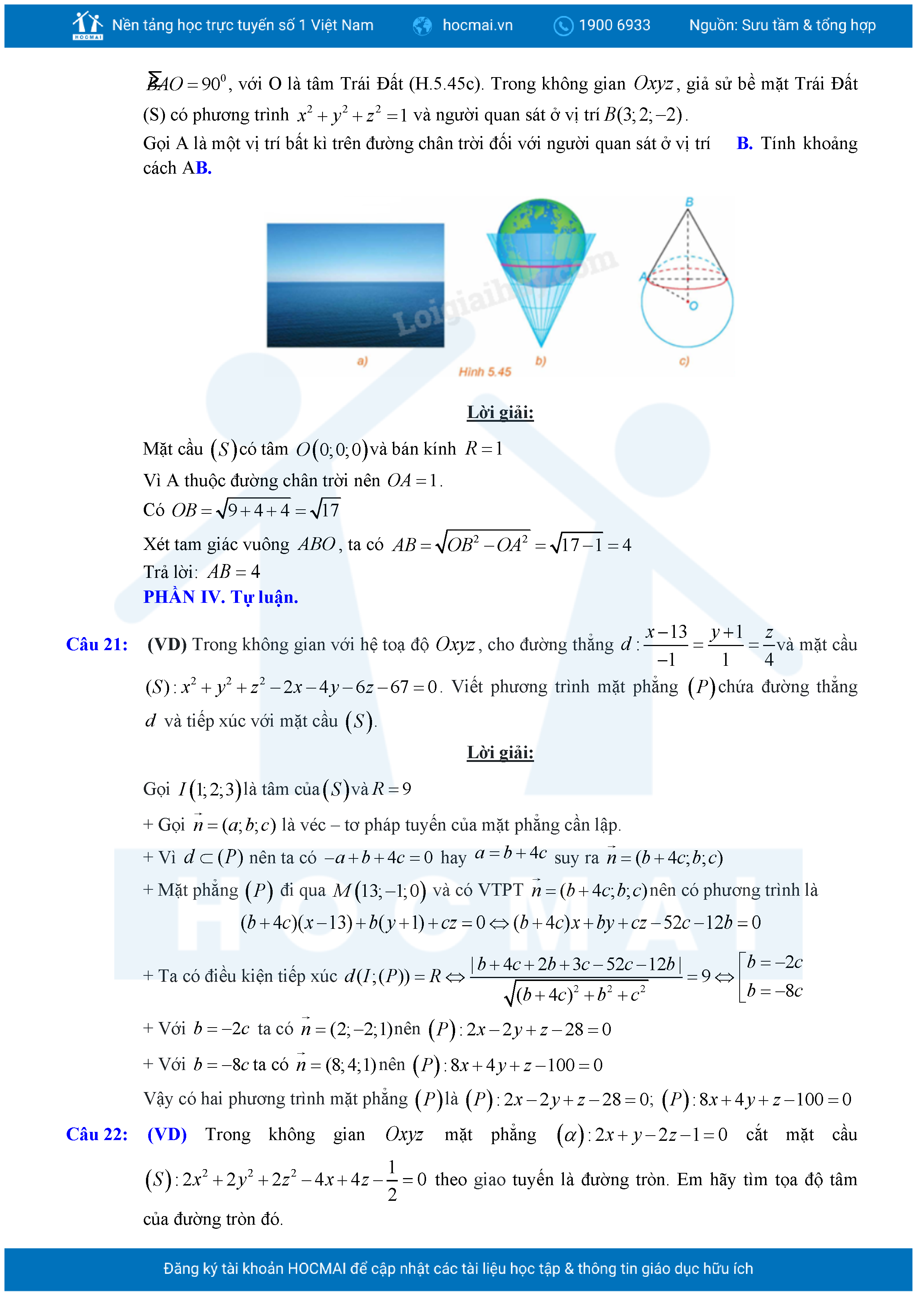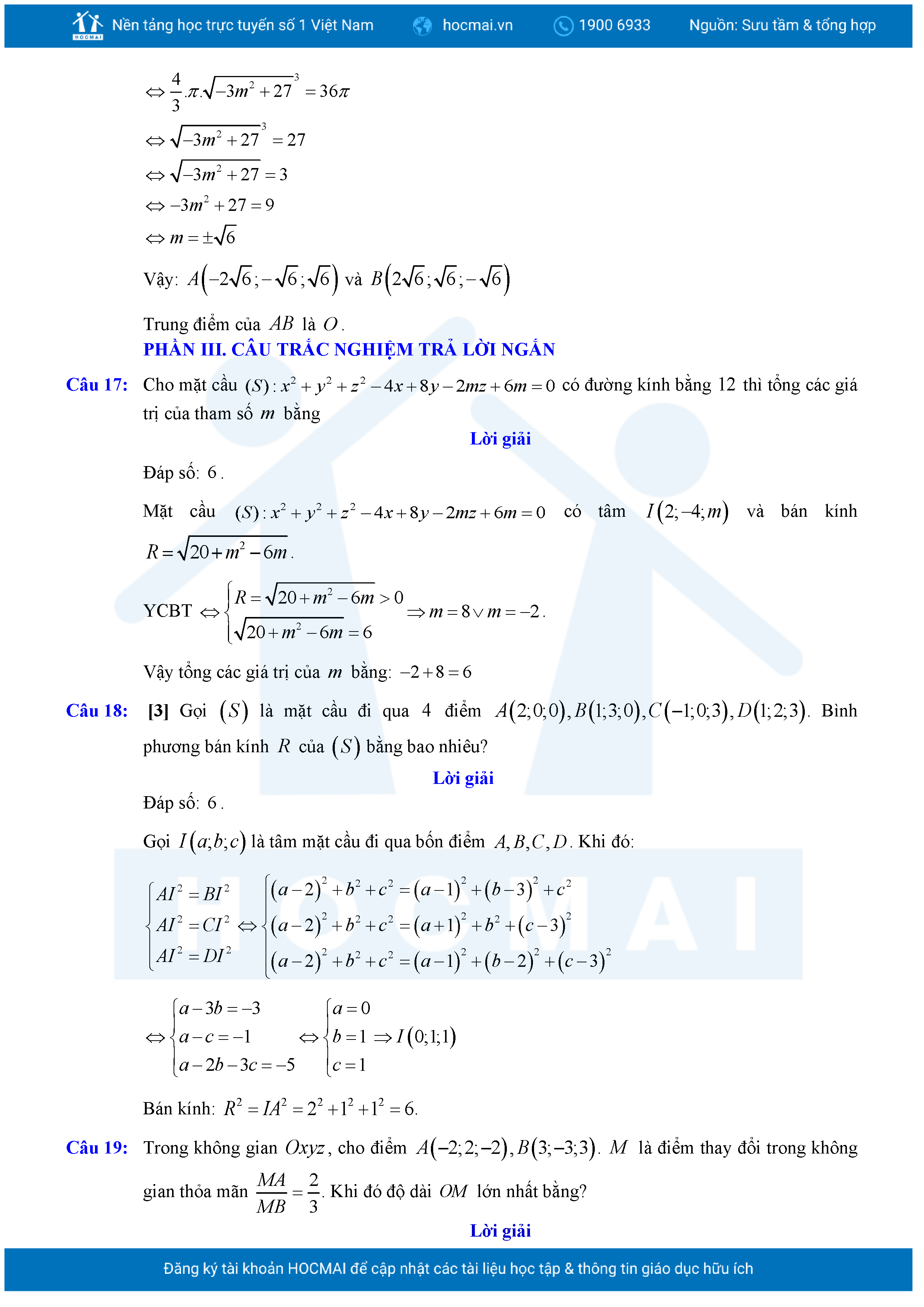 Chuyên đề Phương trình mặt cầu ôn thi tốt nghiệp THPT giải chi tiết