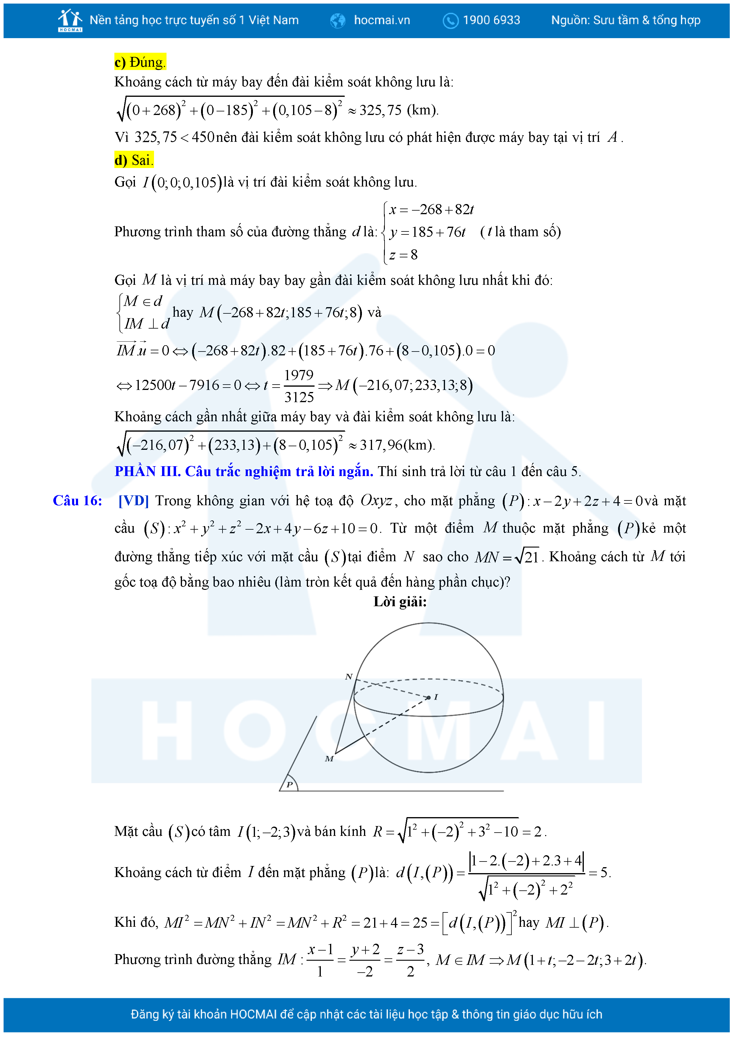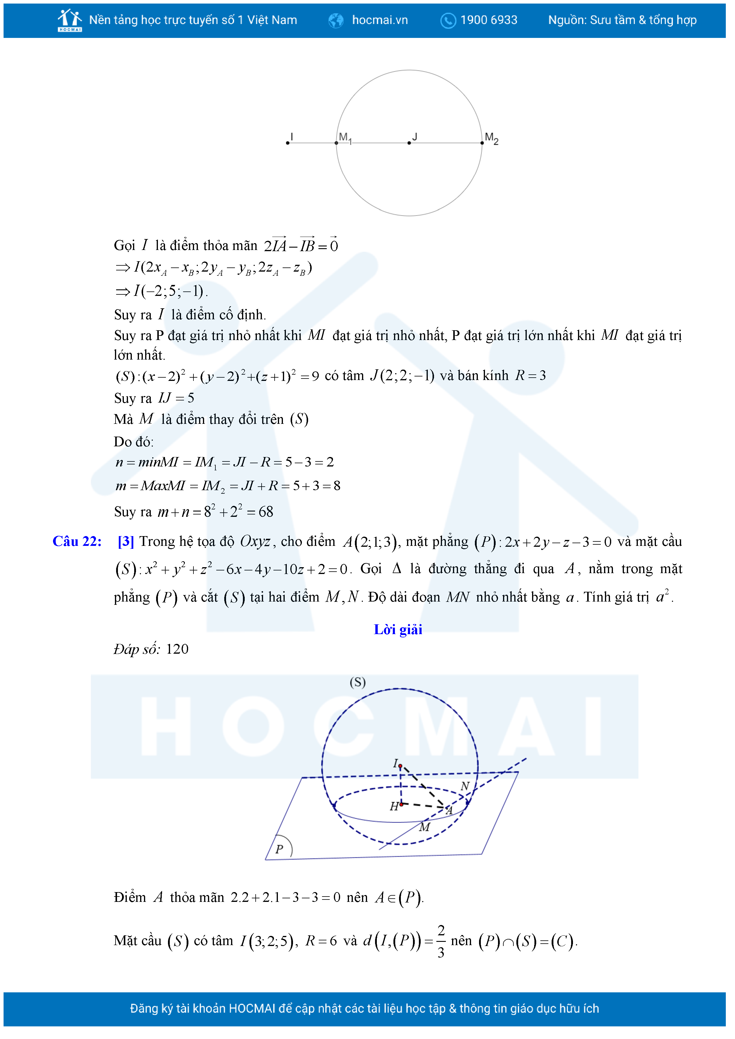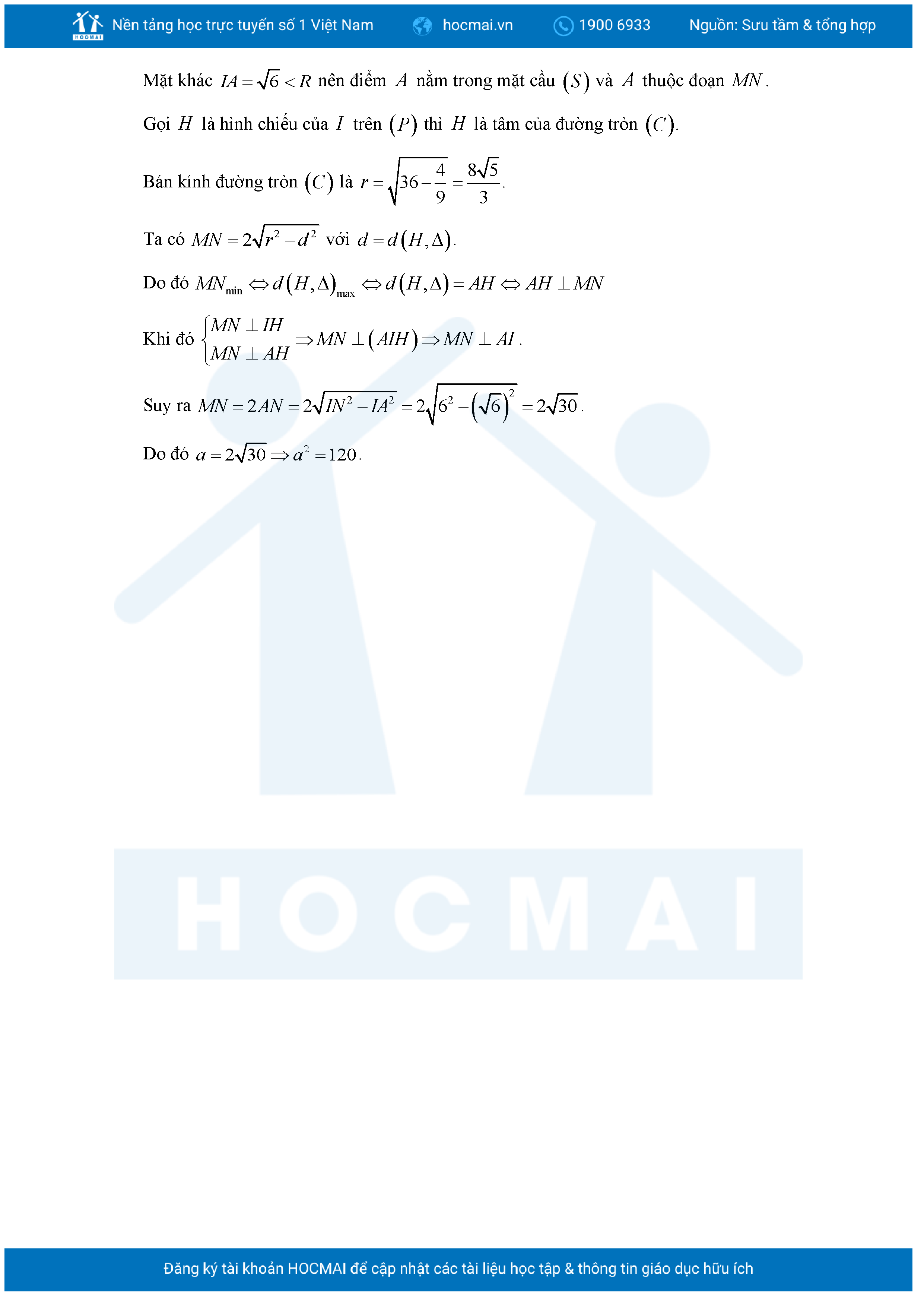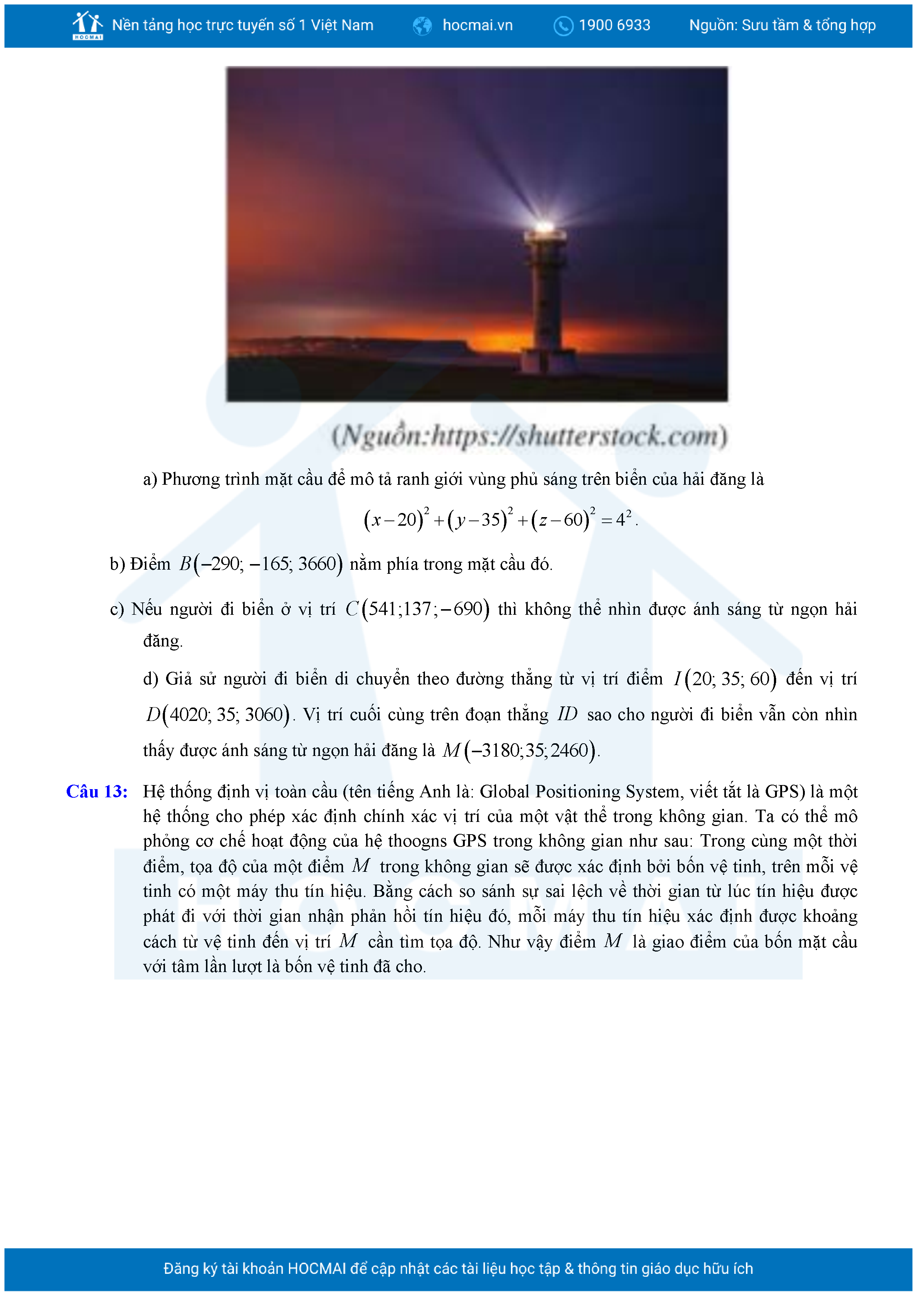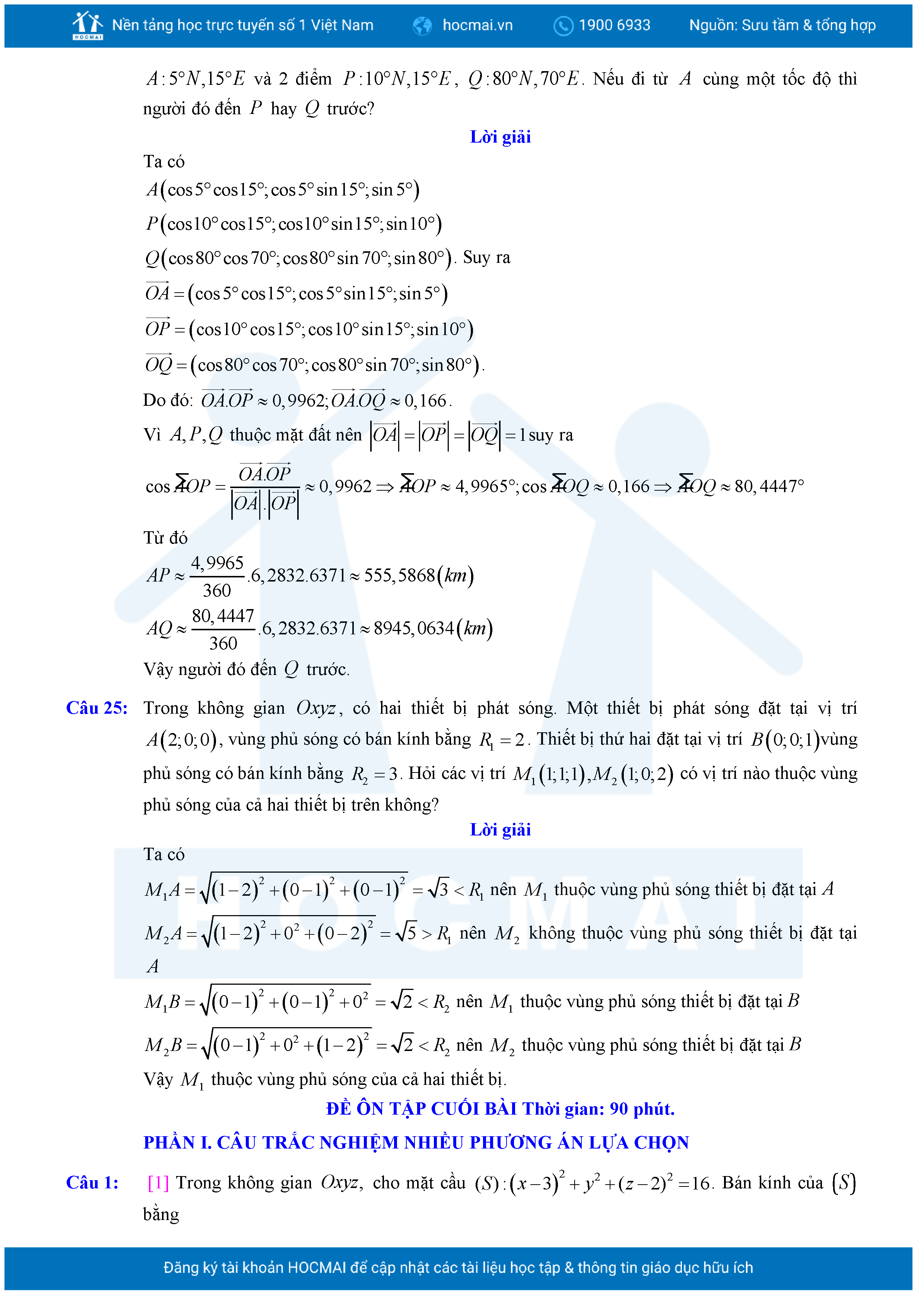 Chuyên đề Phương trình mặt cầu ôn thi tốt nghiệp THPT giải chi tiết