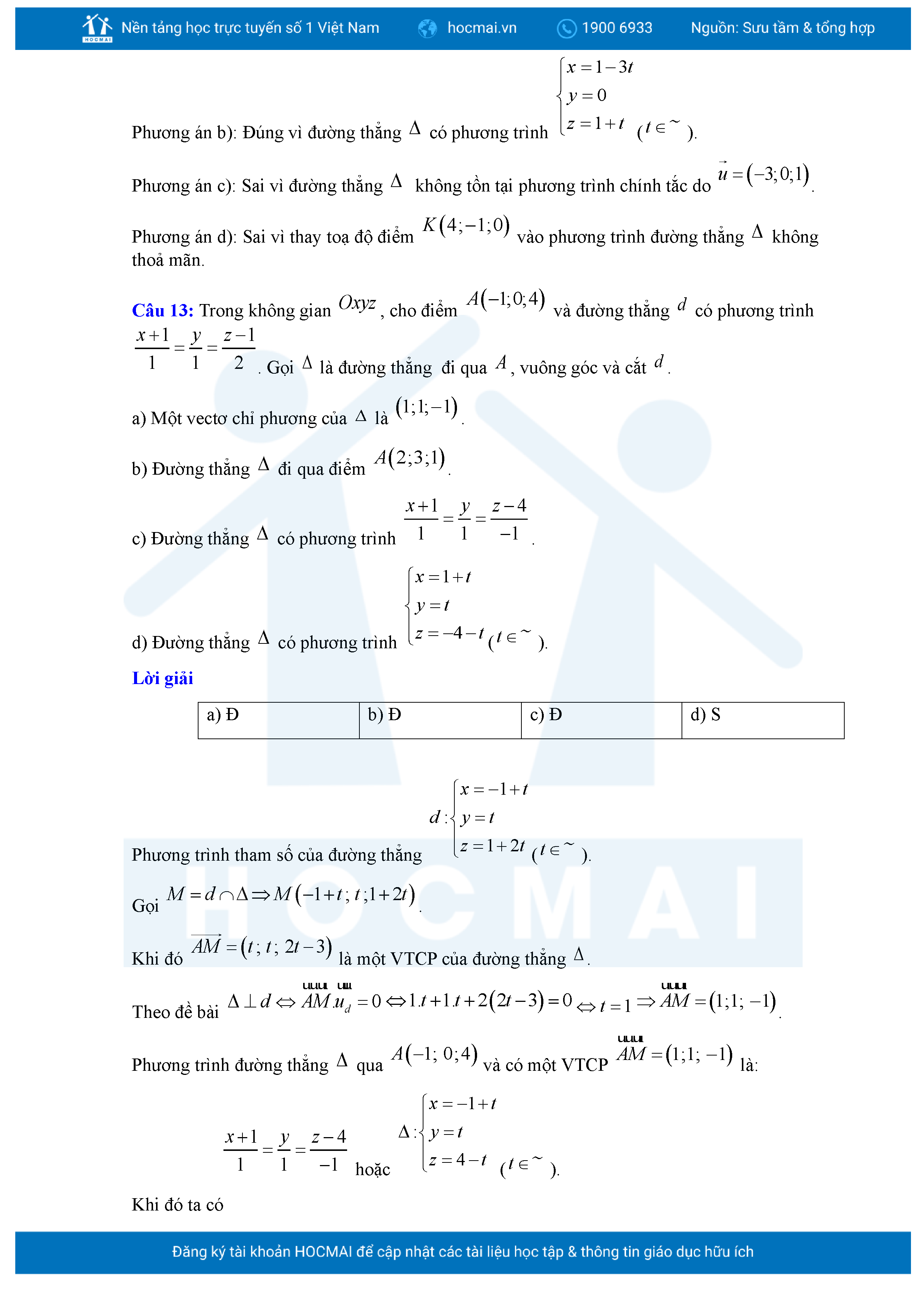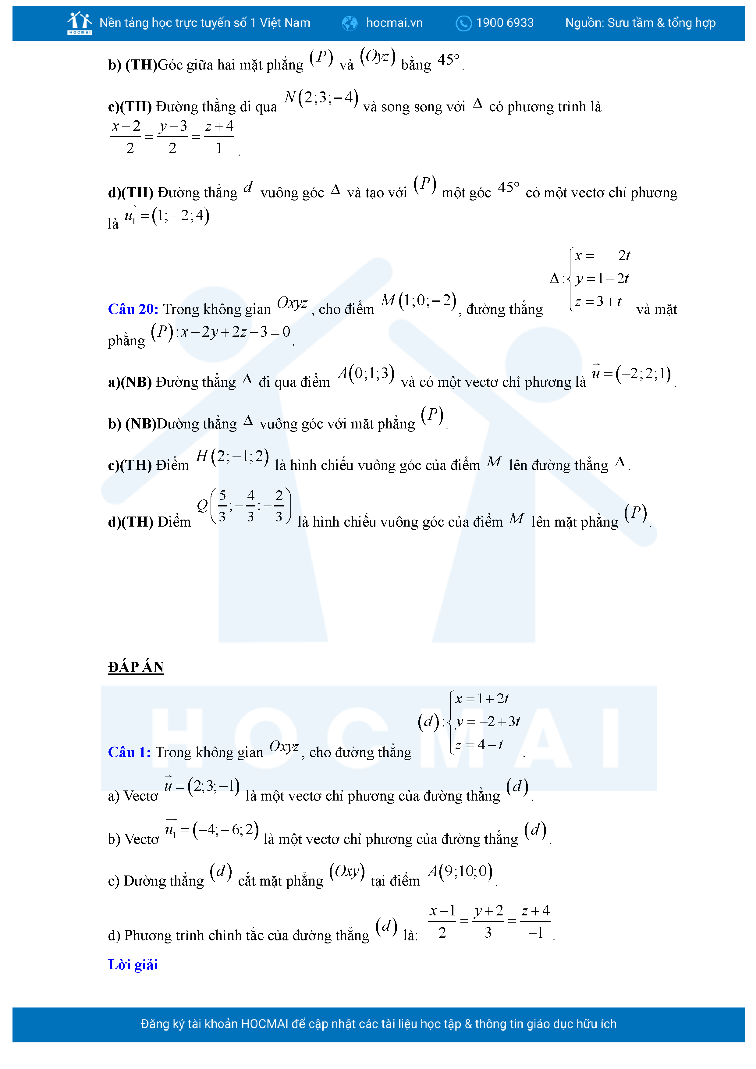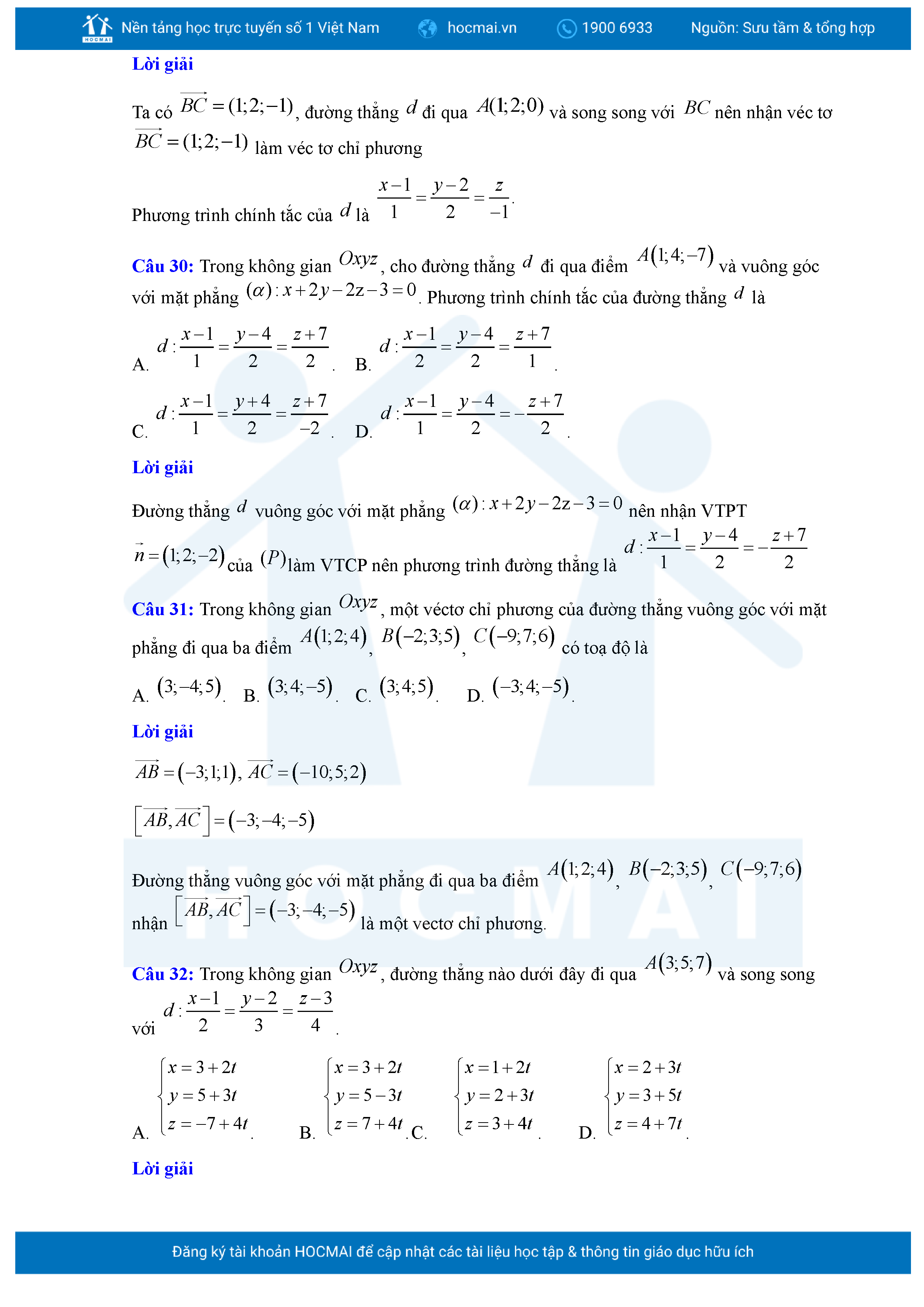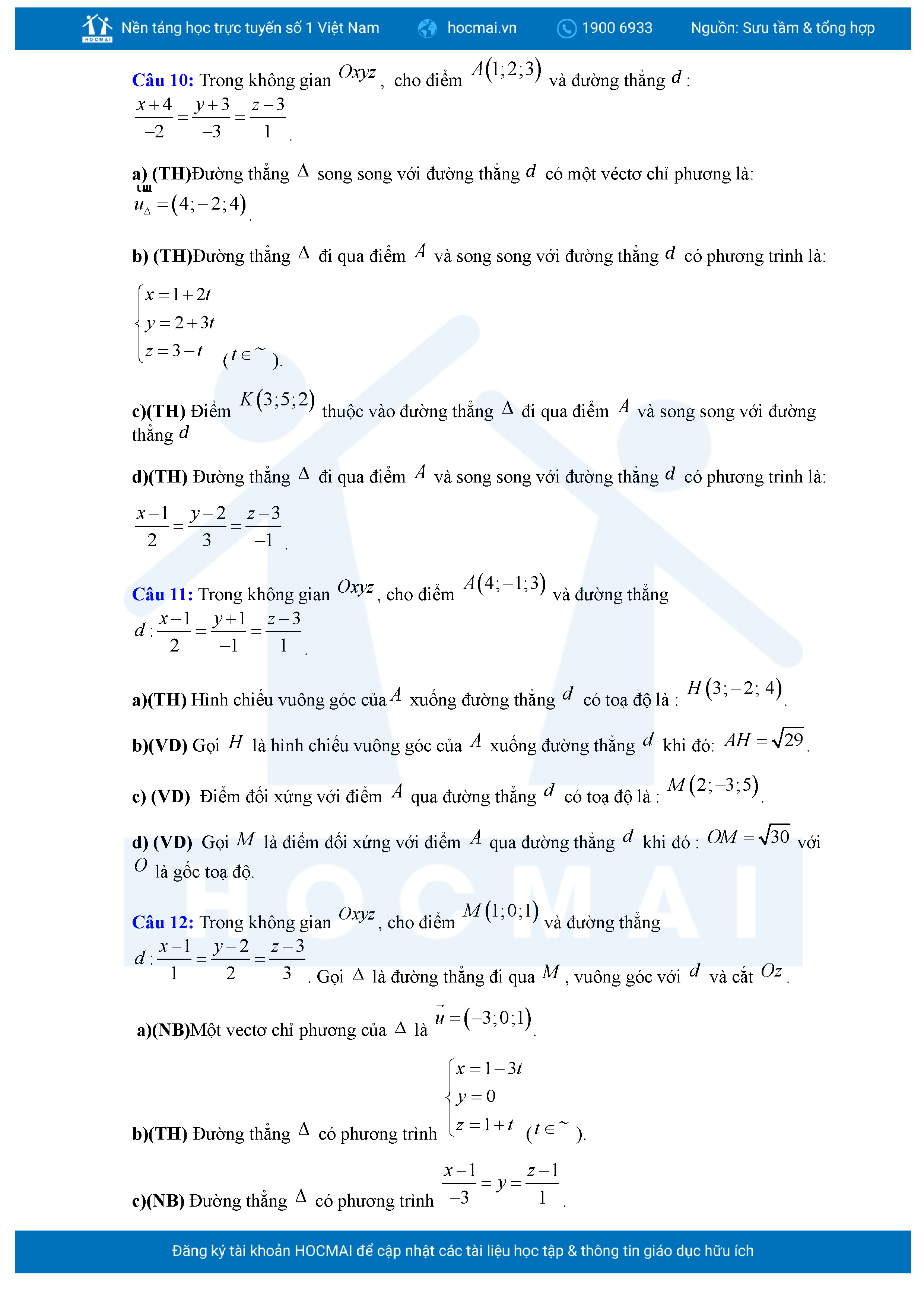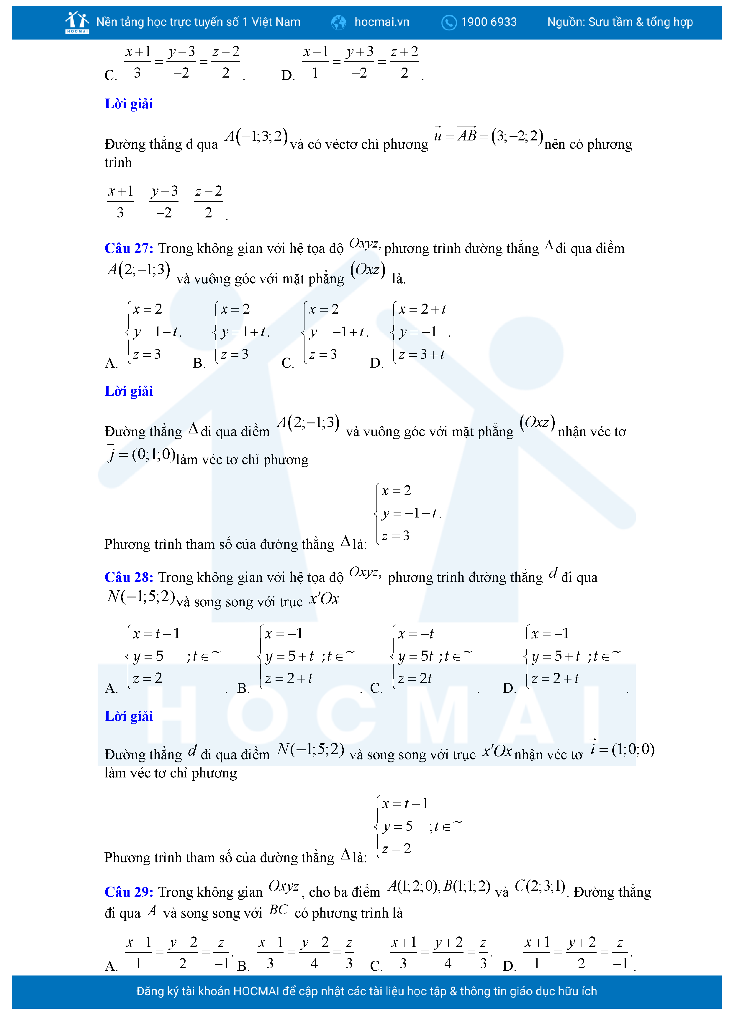 Chuyên đề Phương trình đường thẳng trong không gian ôn thi tốt nghiệp THPT giải chi tiết