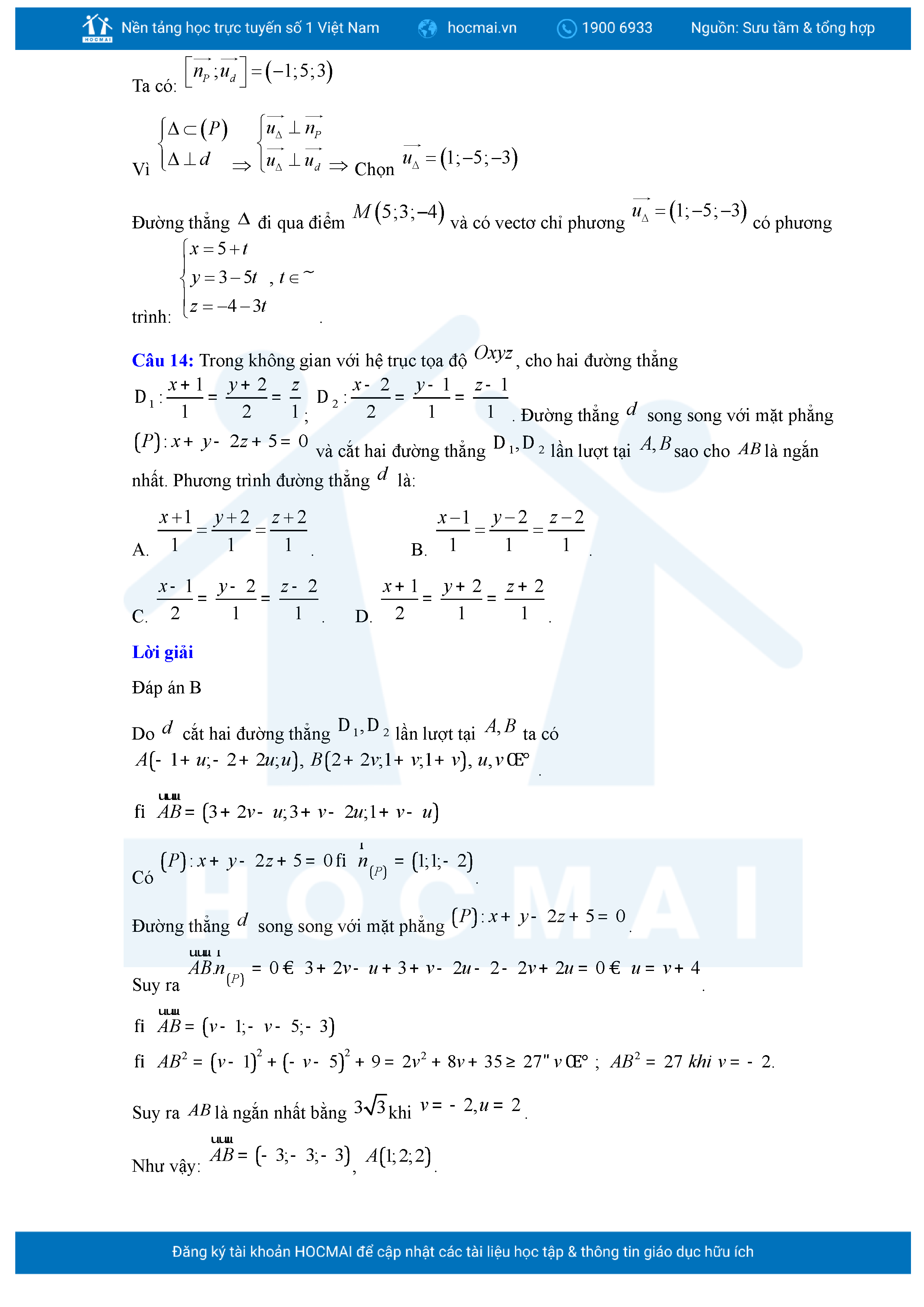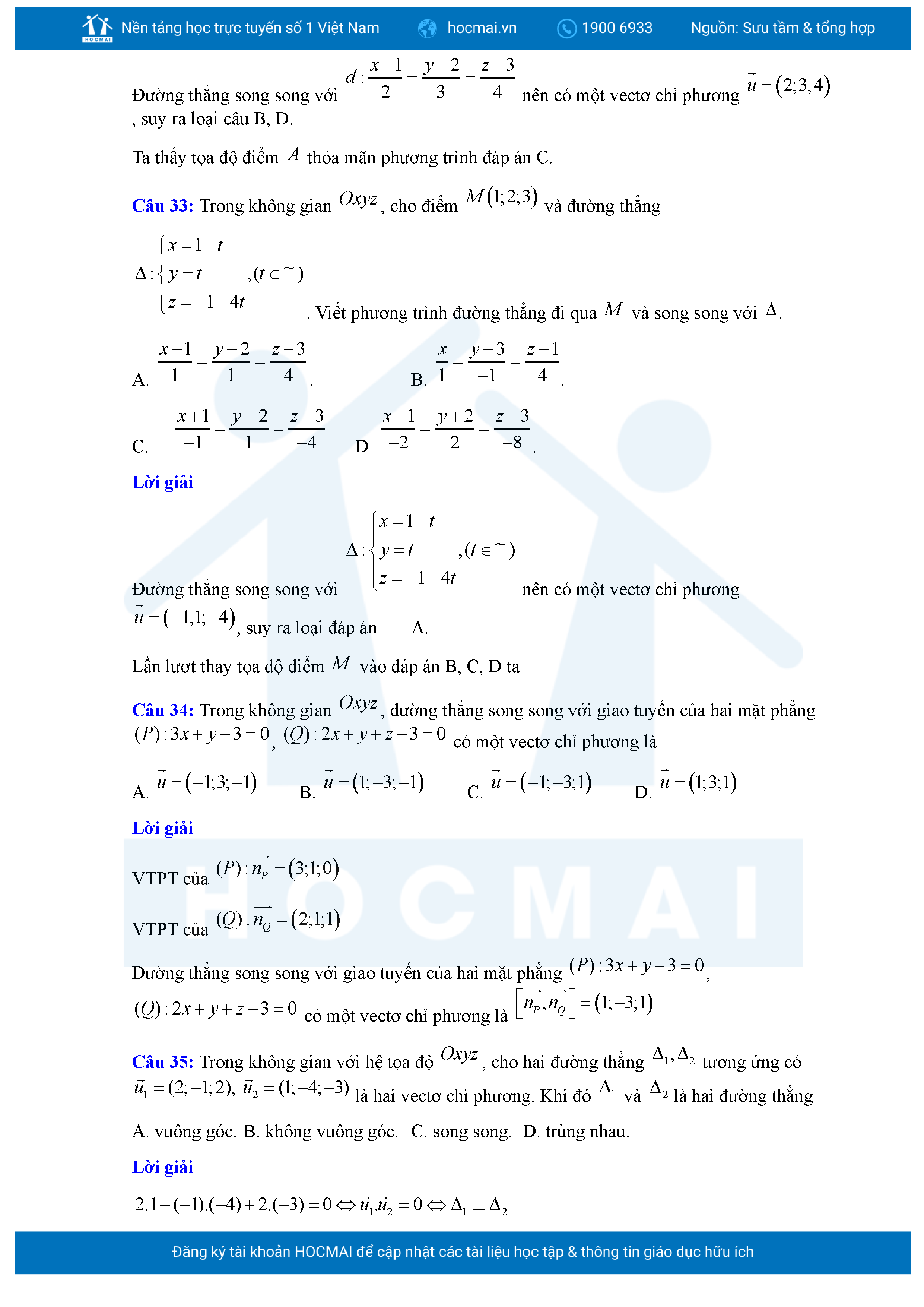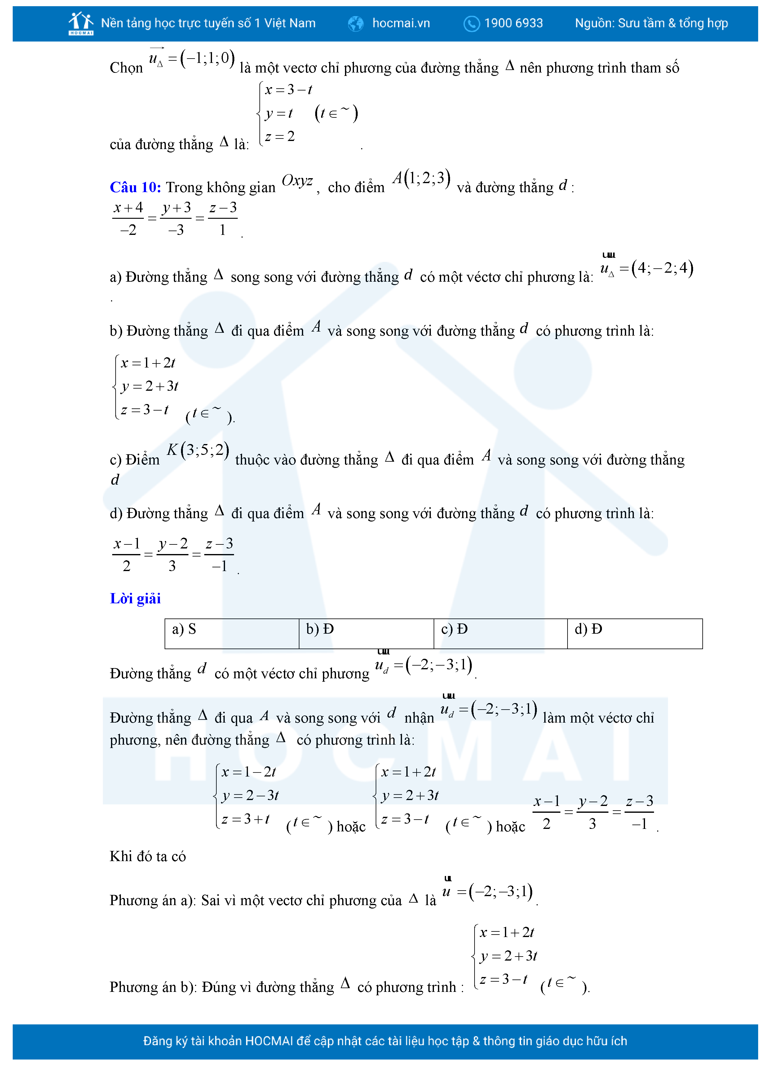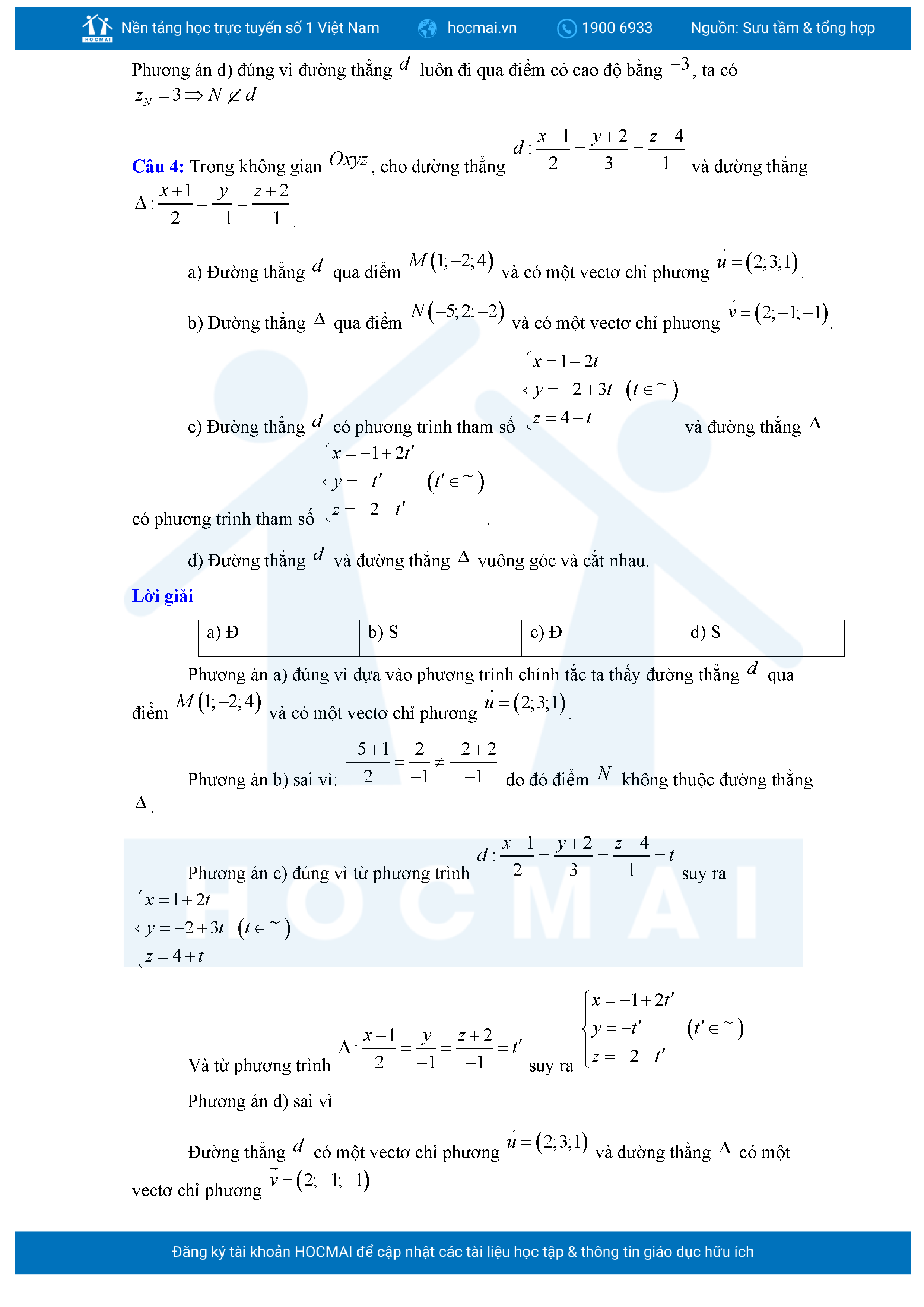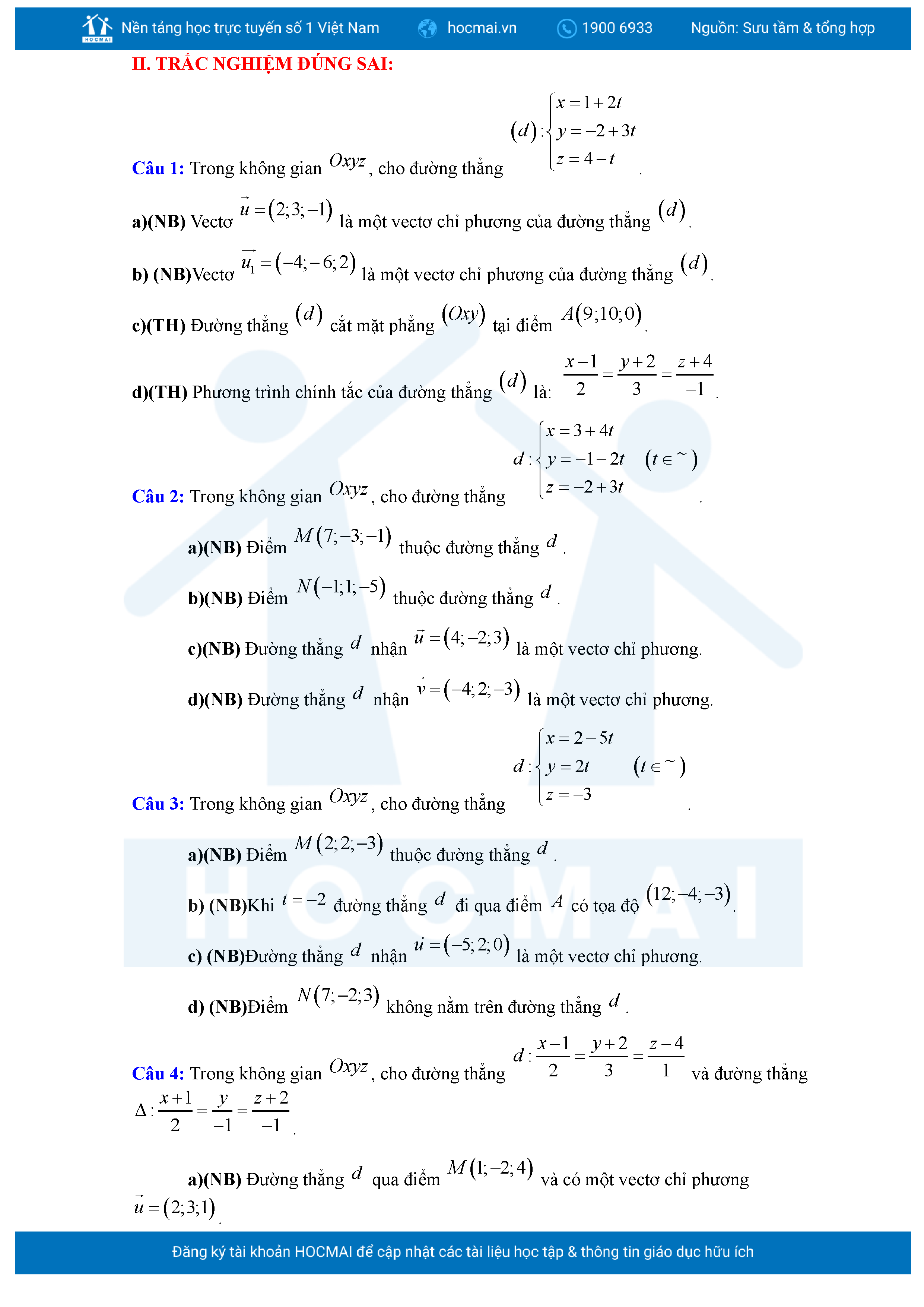 Chuyên đề Phương trình đường thẳng trong không gian ôn thi tốt nghiệp THPT giải chi tiết