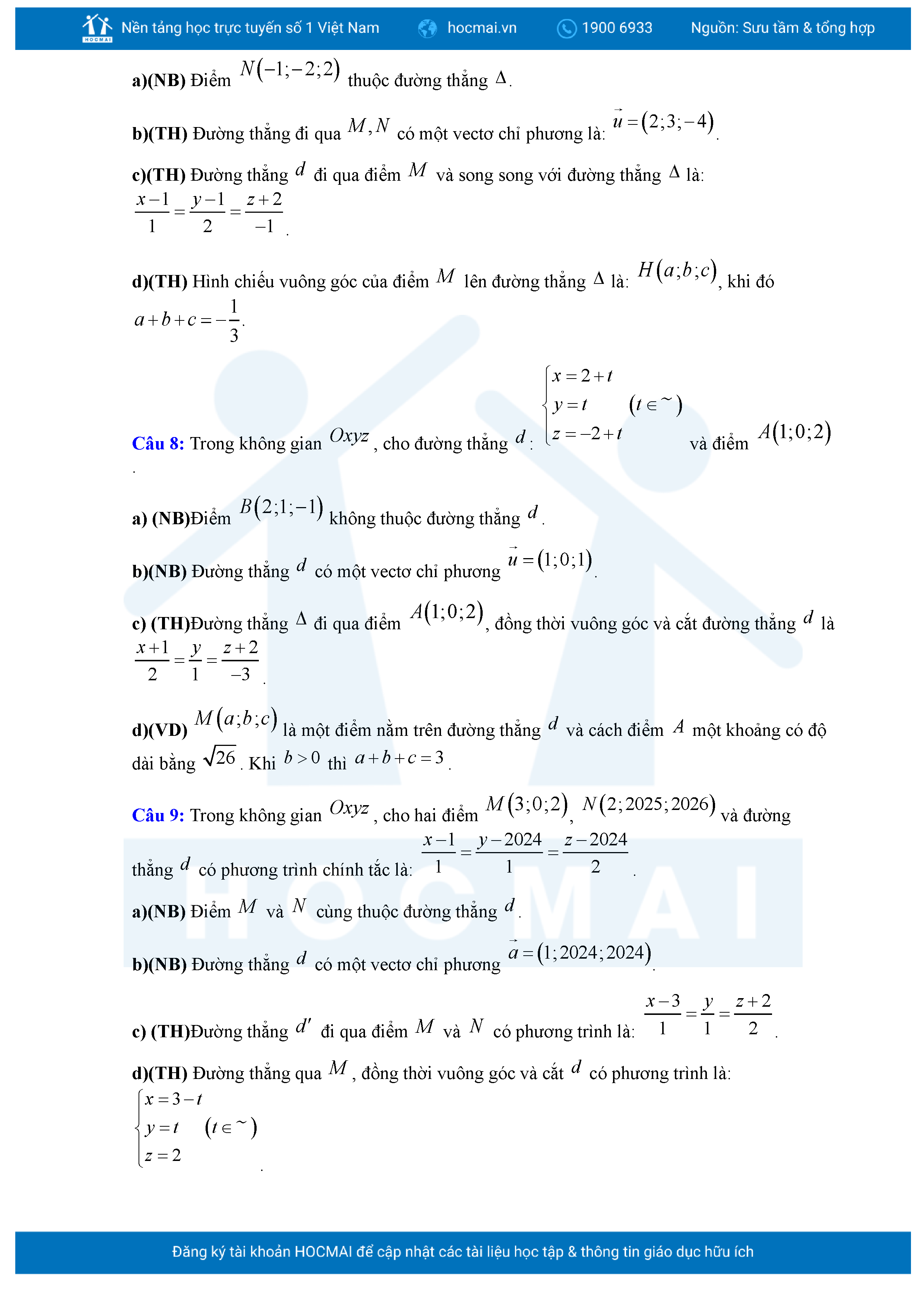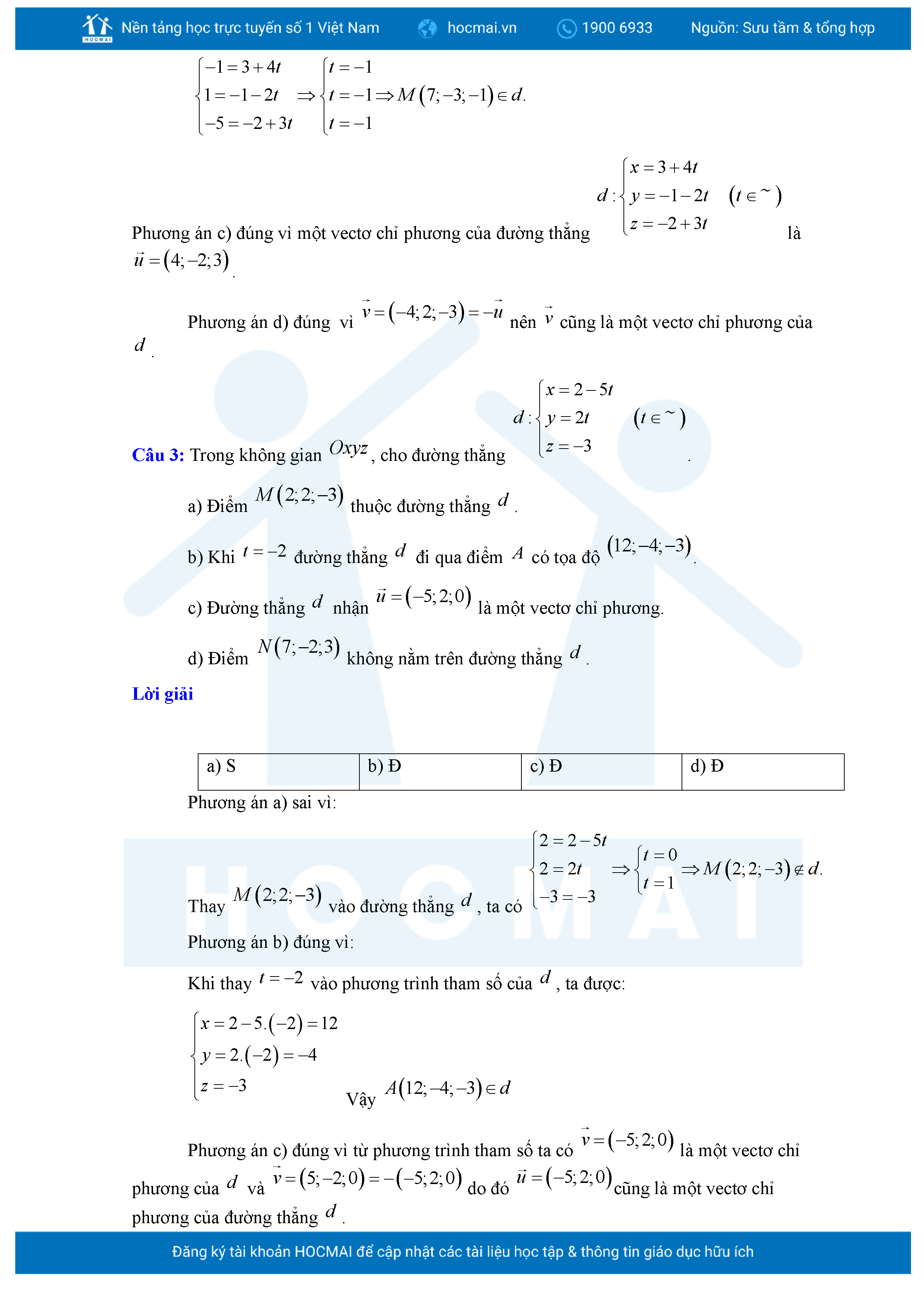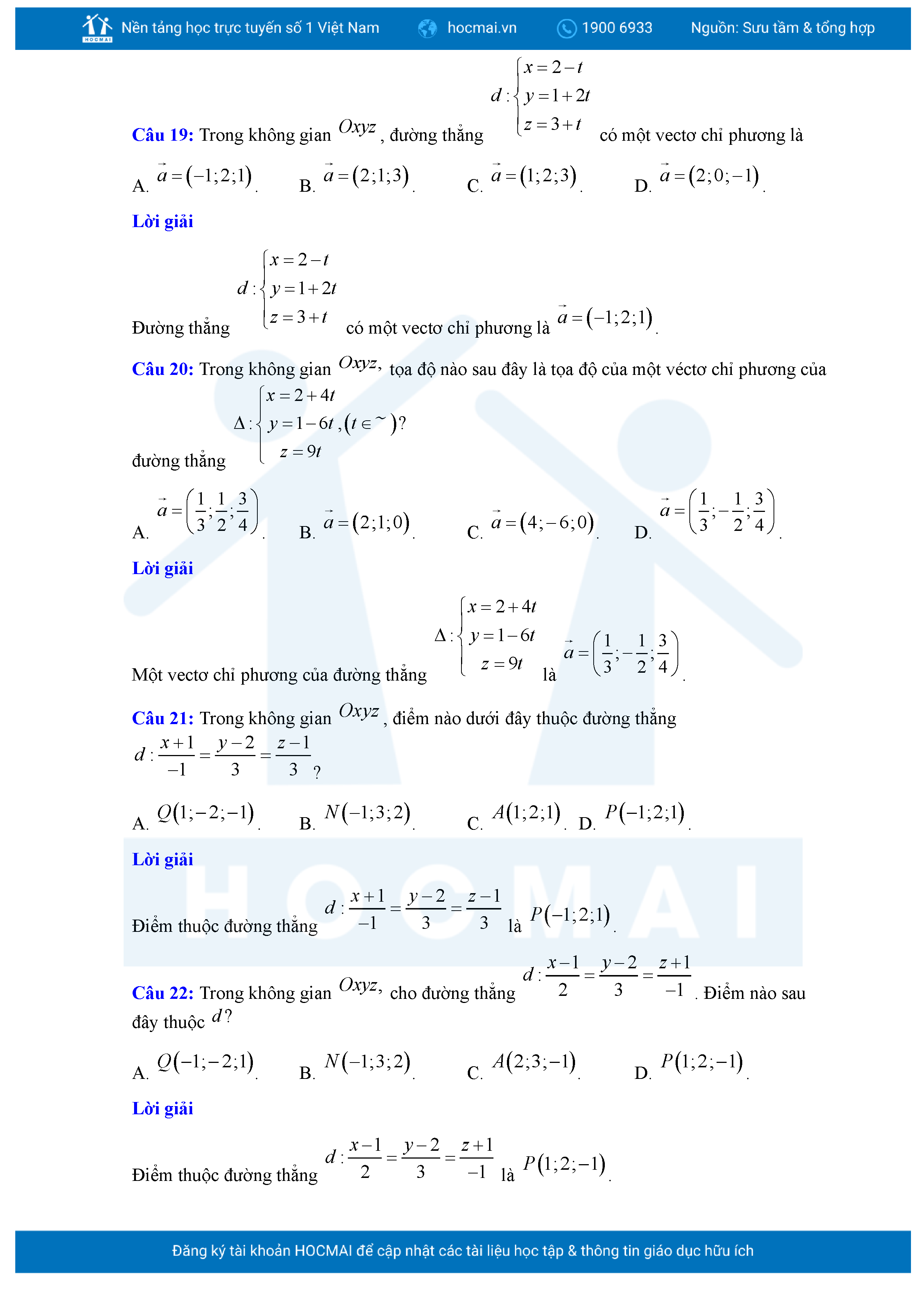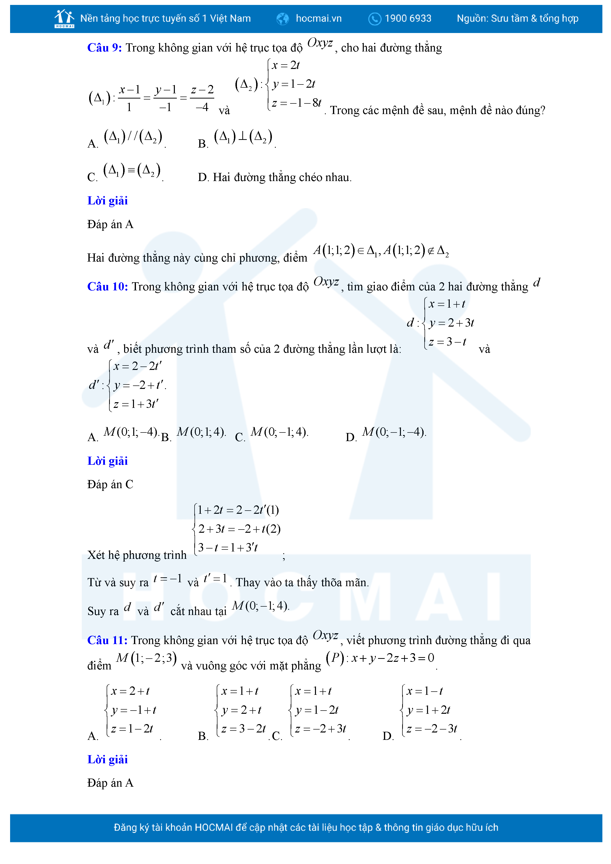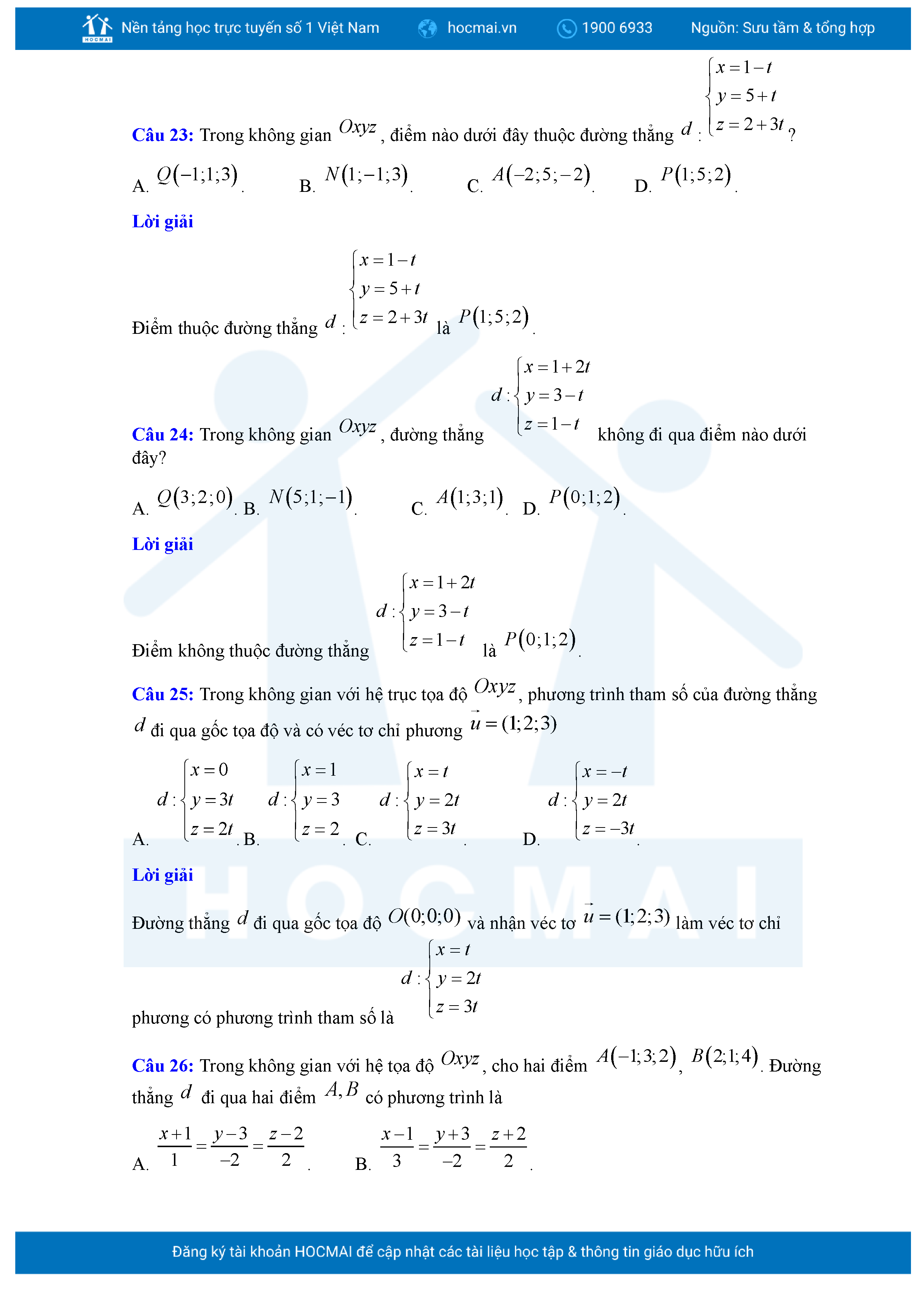 Chuyên đề Phương trình đường thẳng trong không gian ôn thi tốt nghiệp THPT giải chi tiết