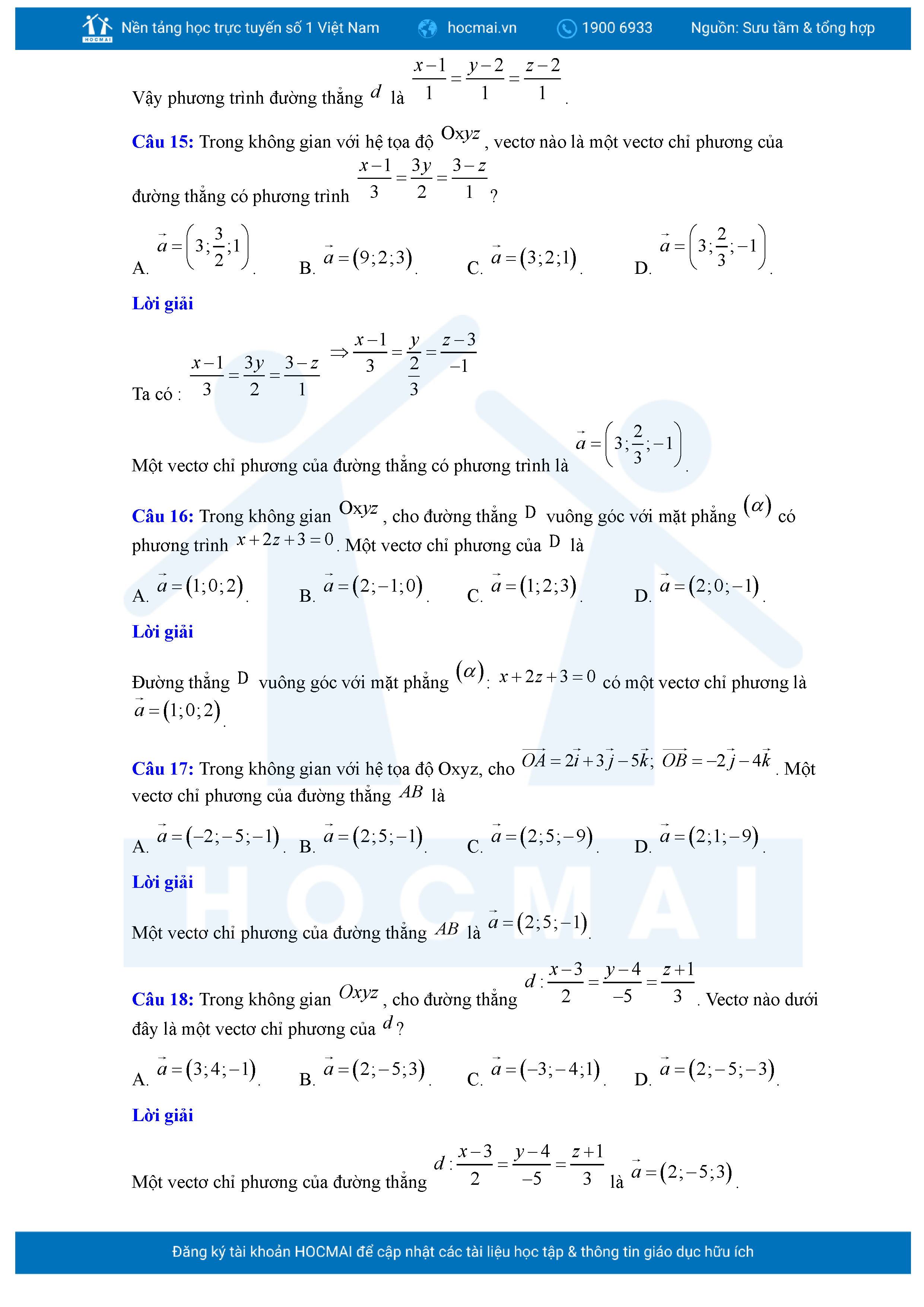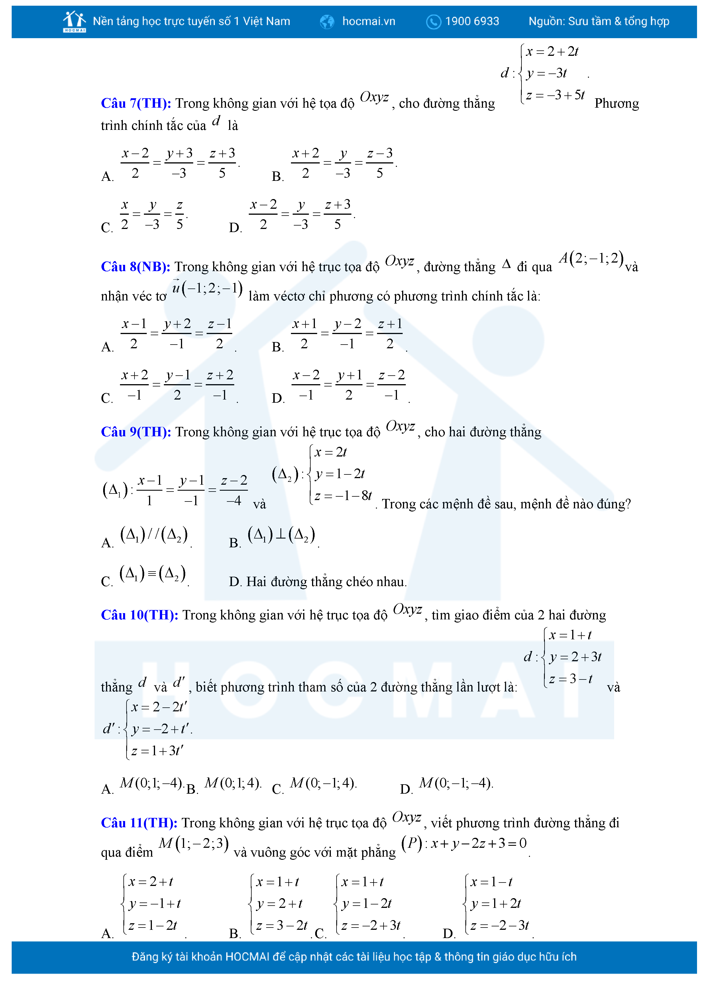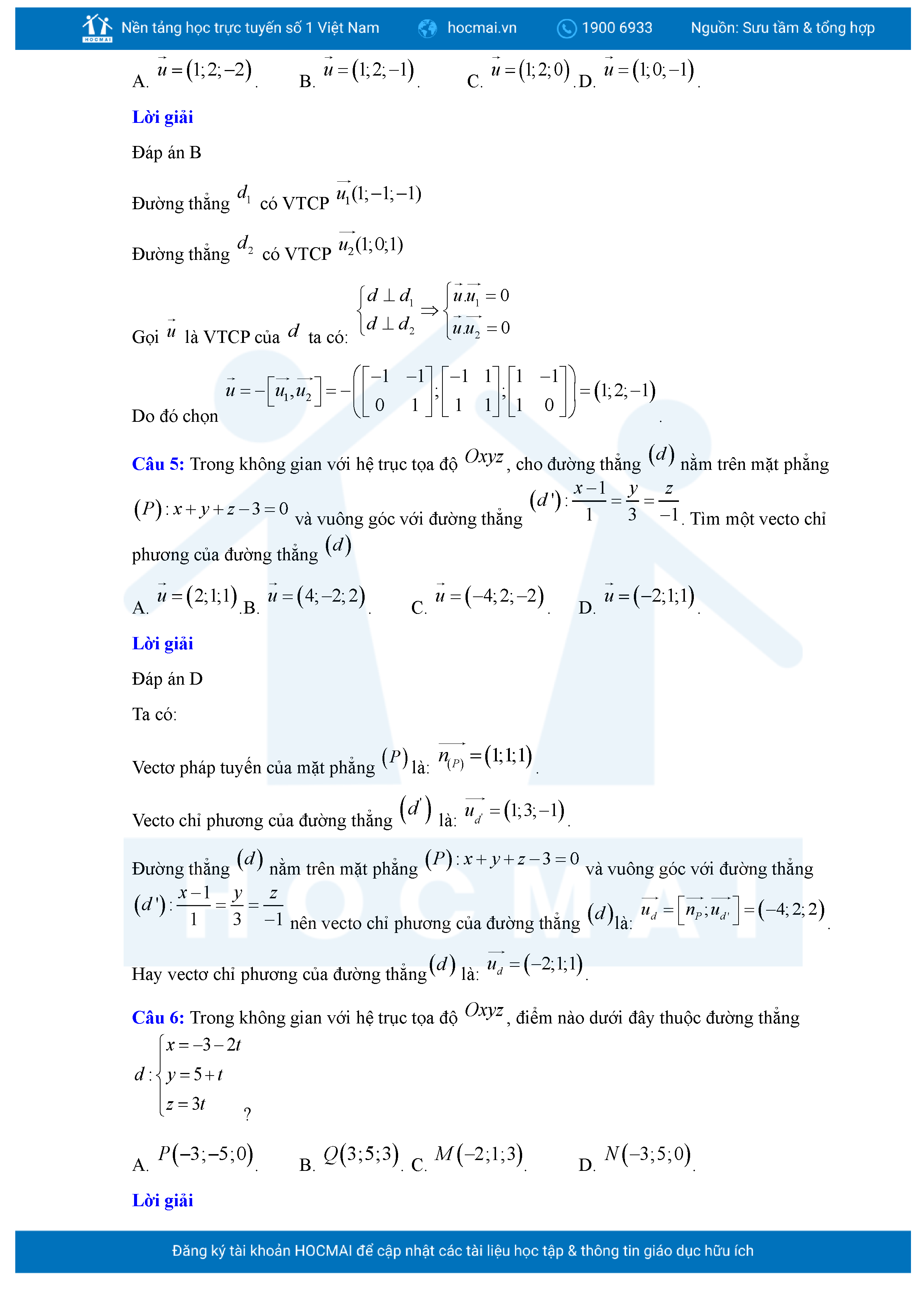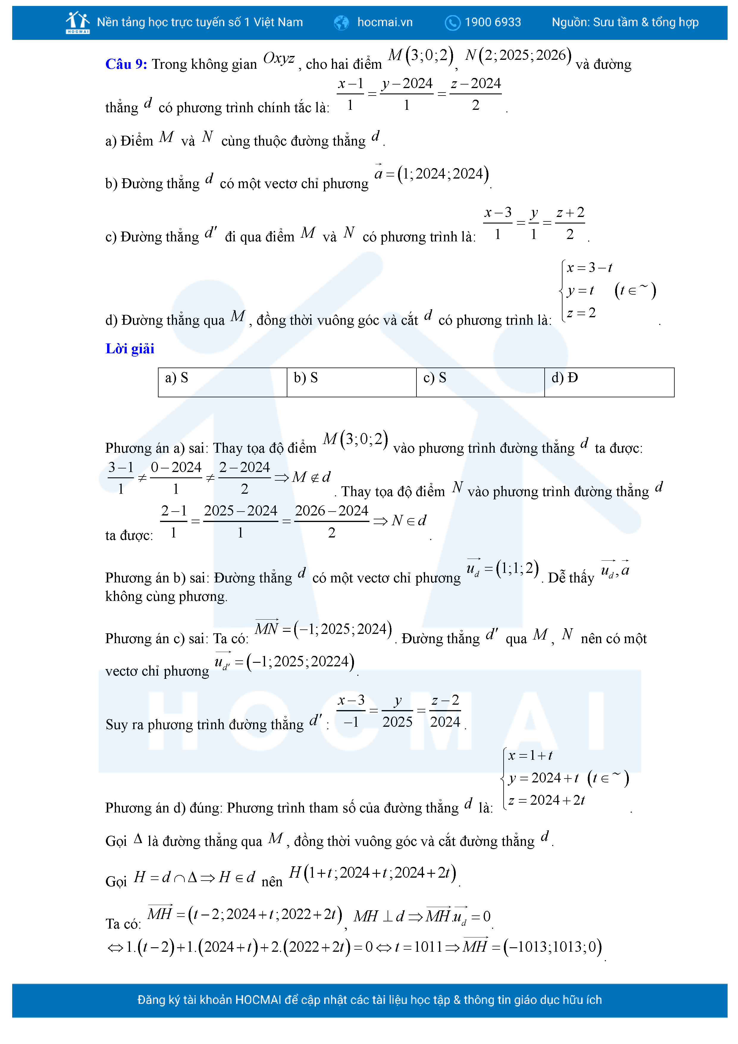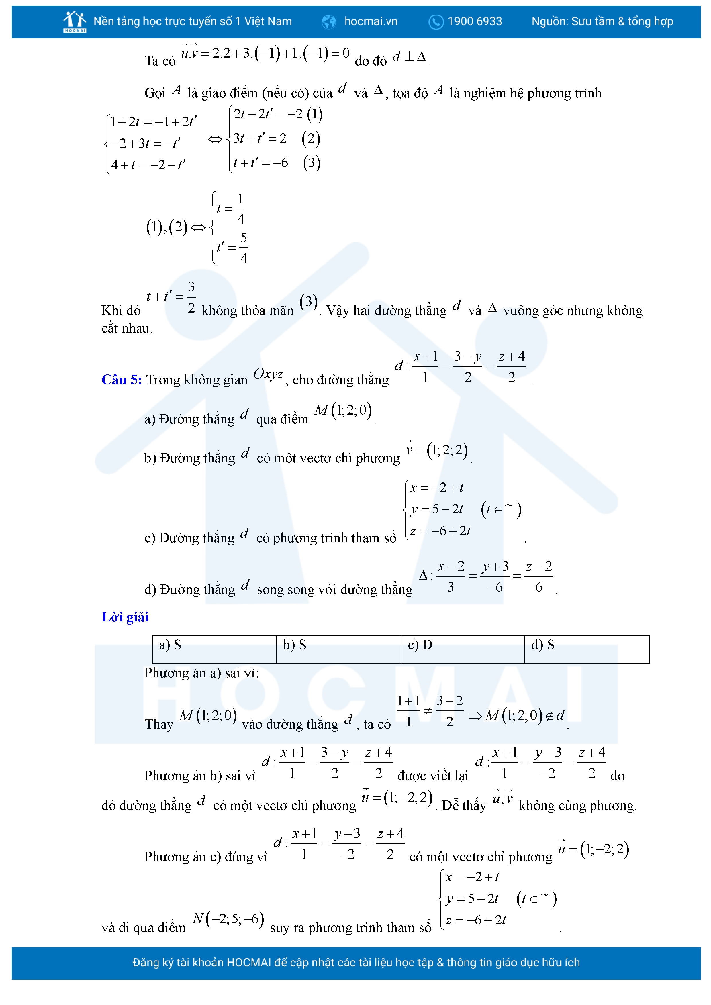 Chuyên đề Phương trình đường thẳng trong không gian ôn thi tốt nghiệp THPT giải chi tiết