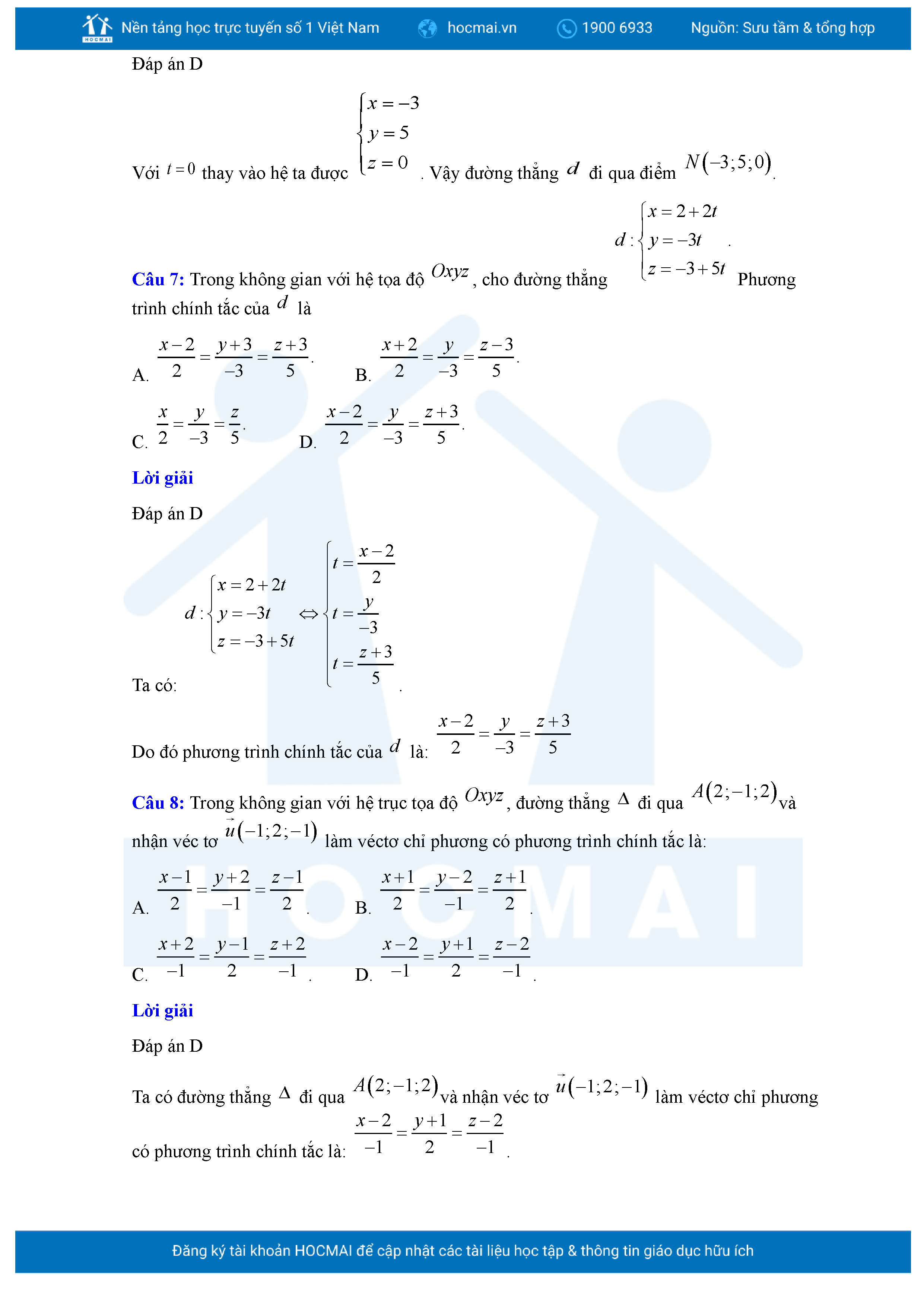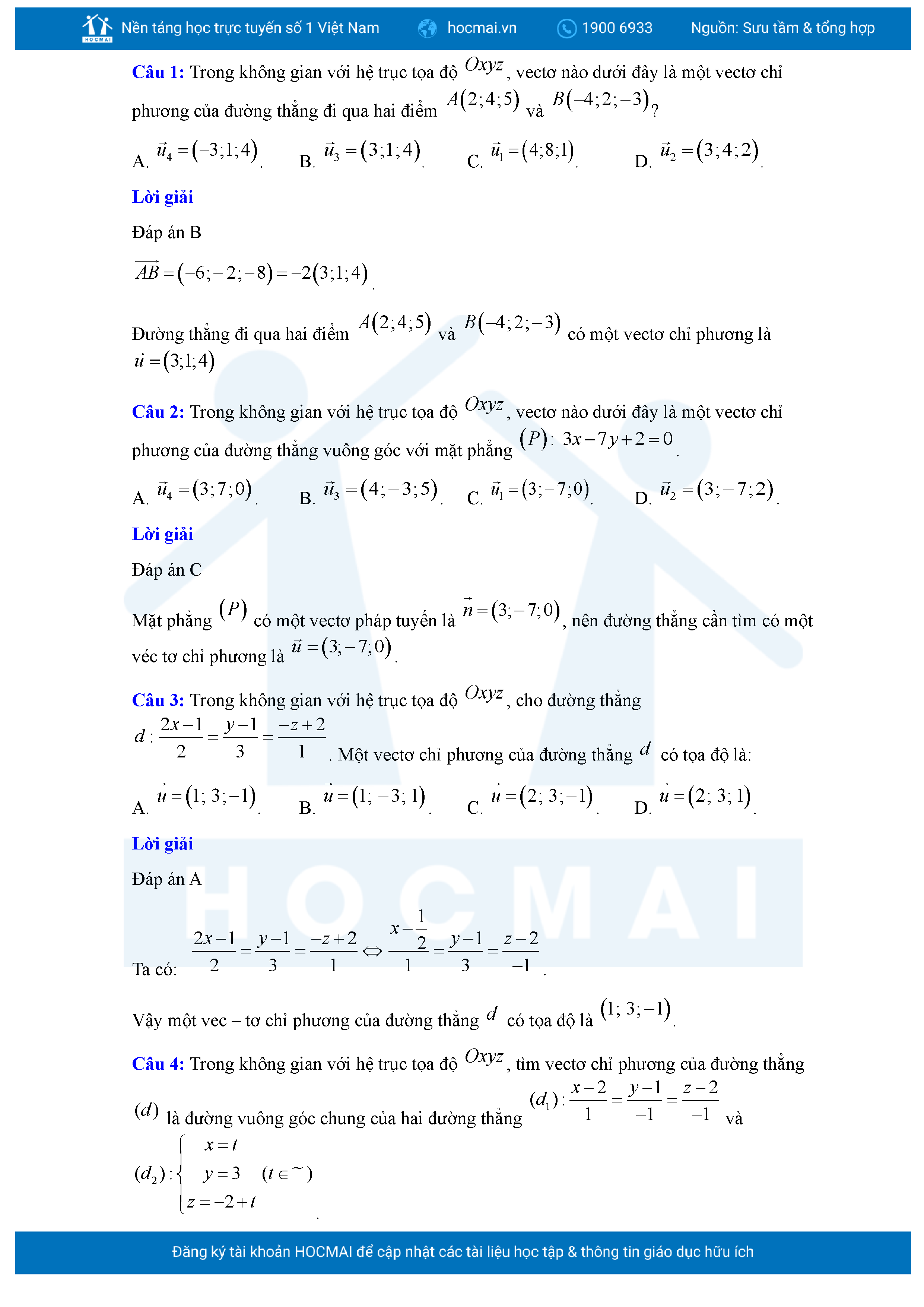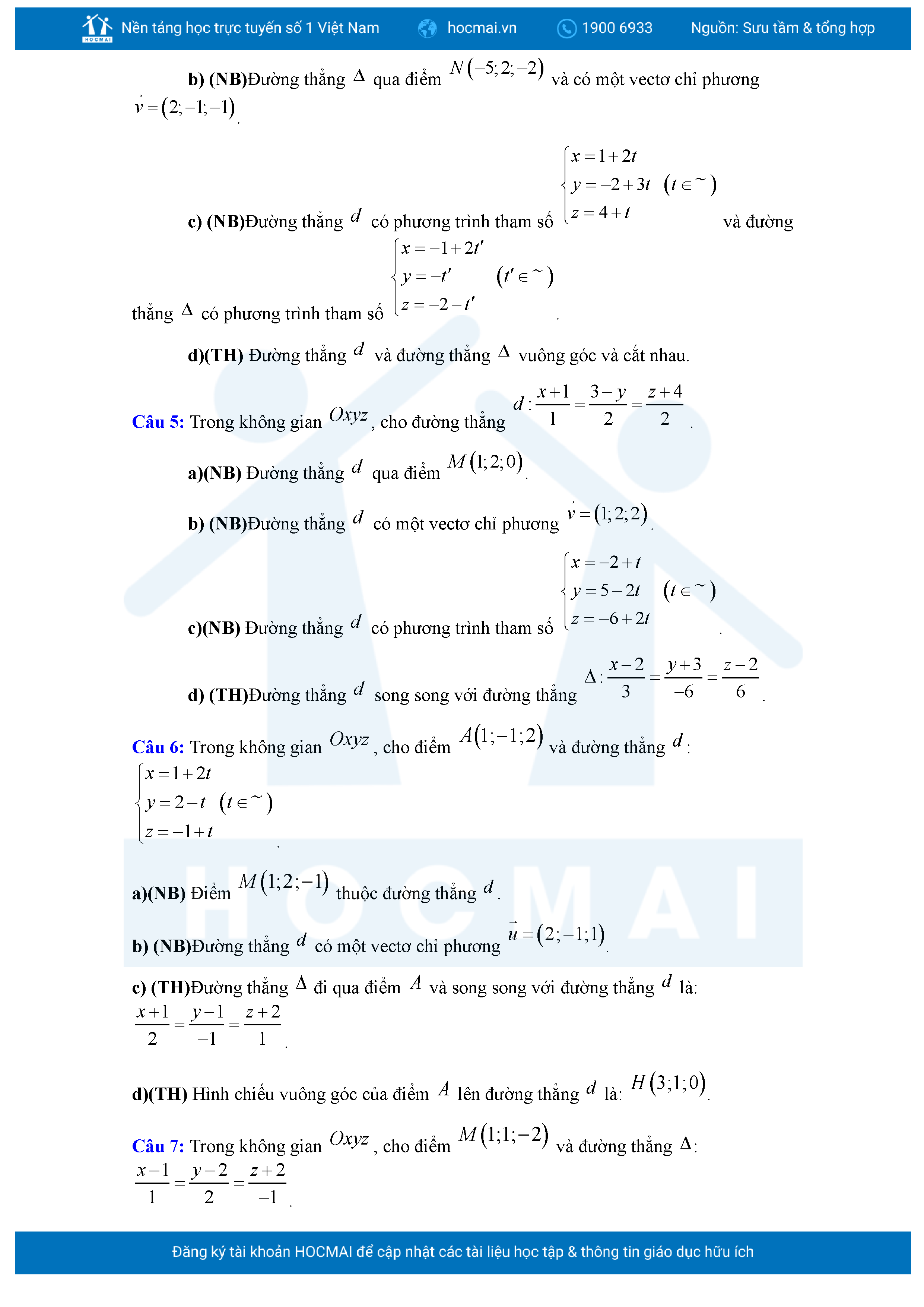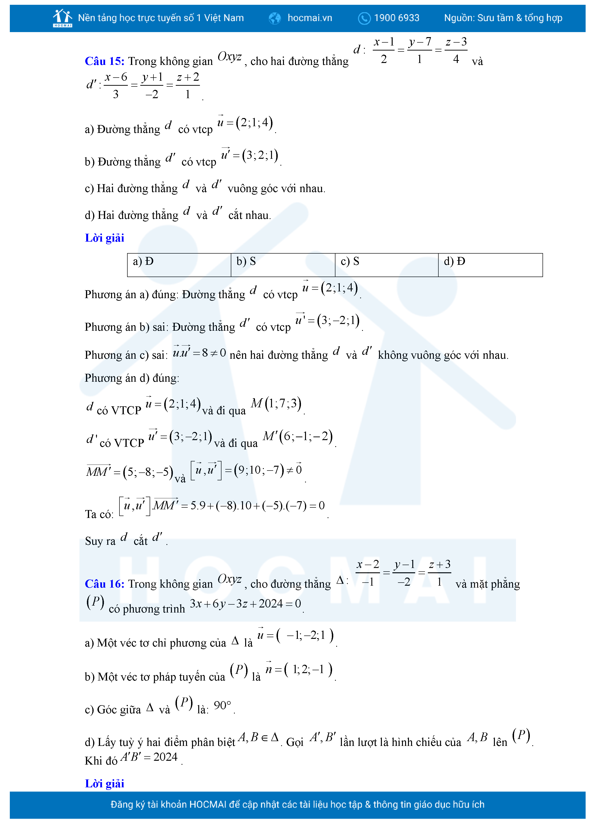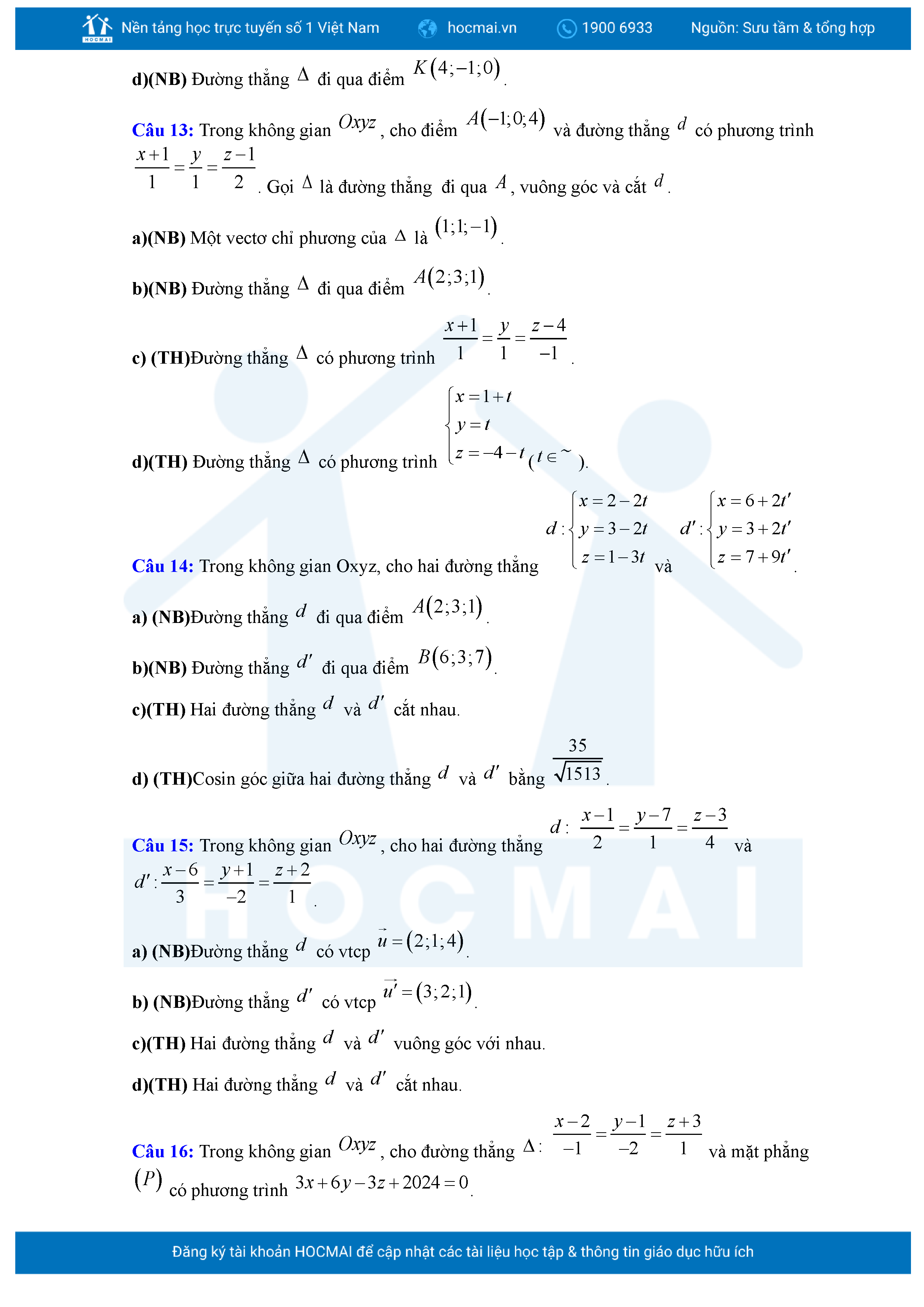 Chuyên đề Phương trình đường thẳng trong không gian ôn thi tốt nghiệp THPT giải chi tiết