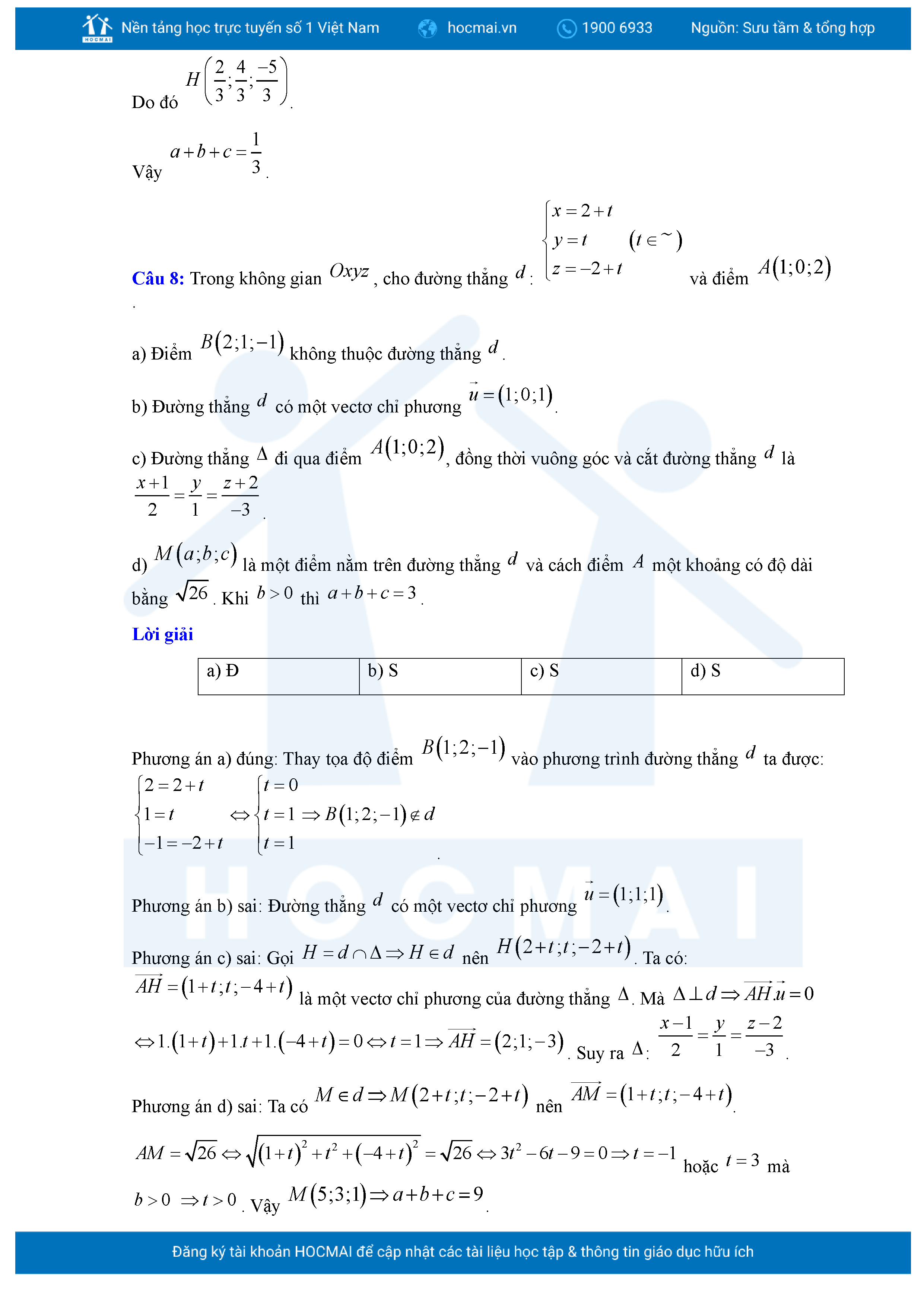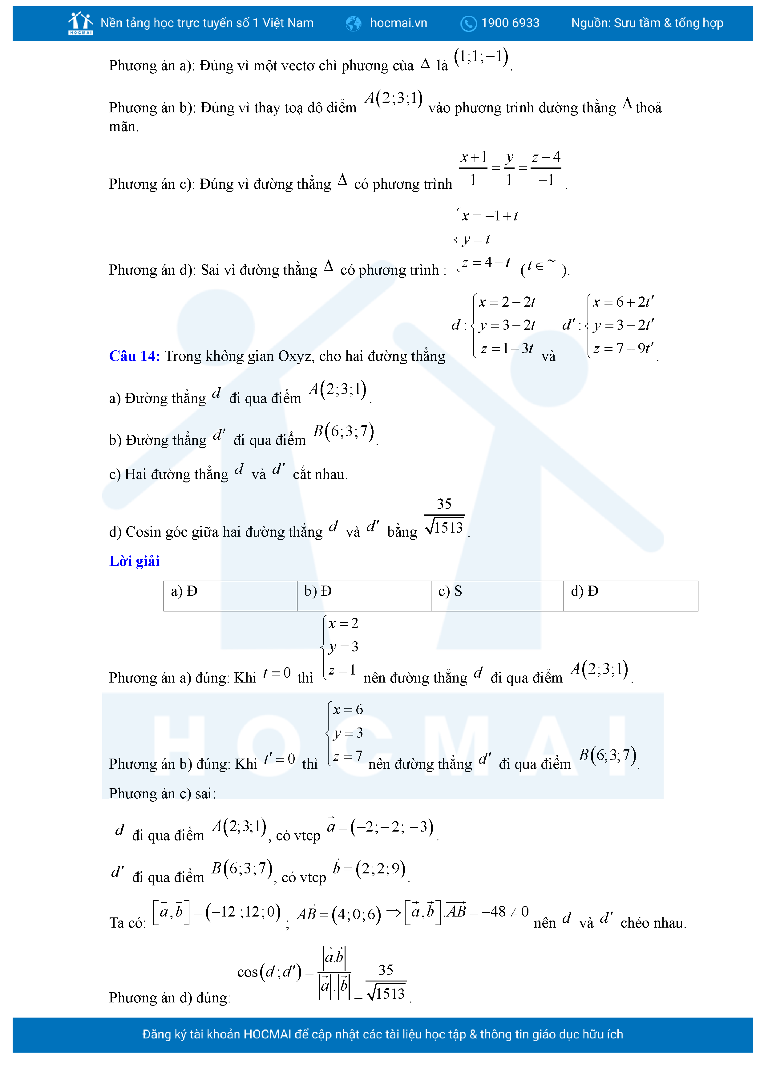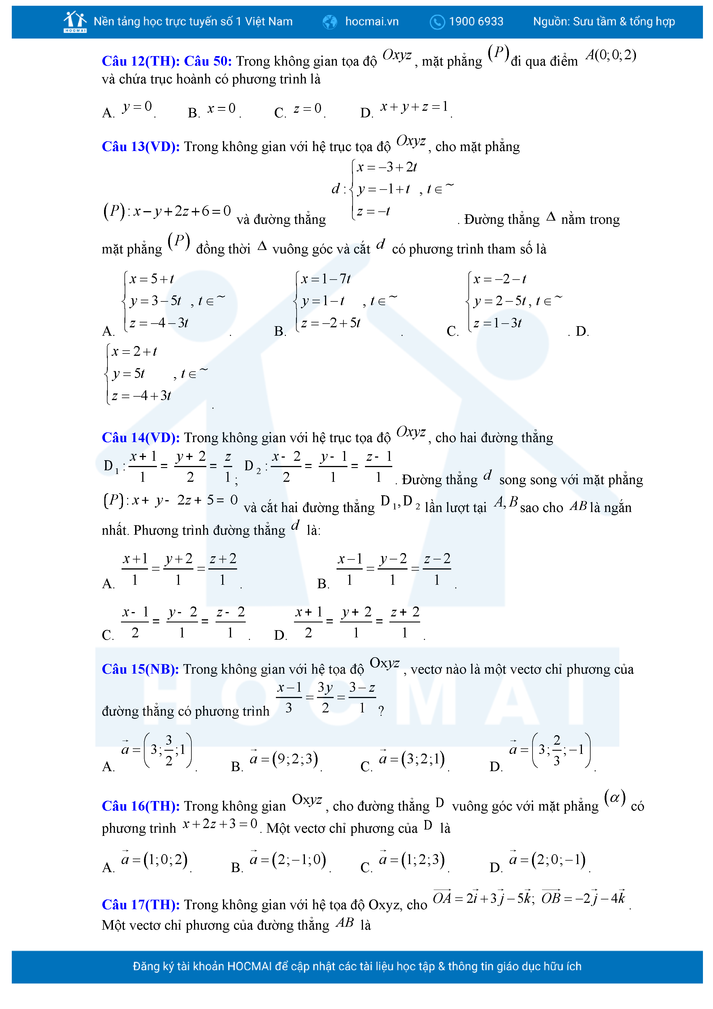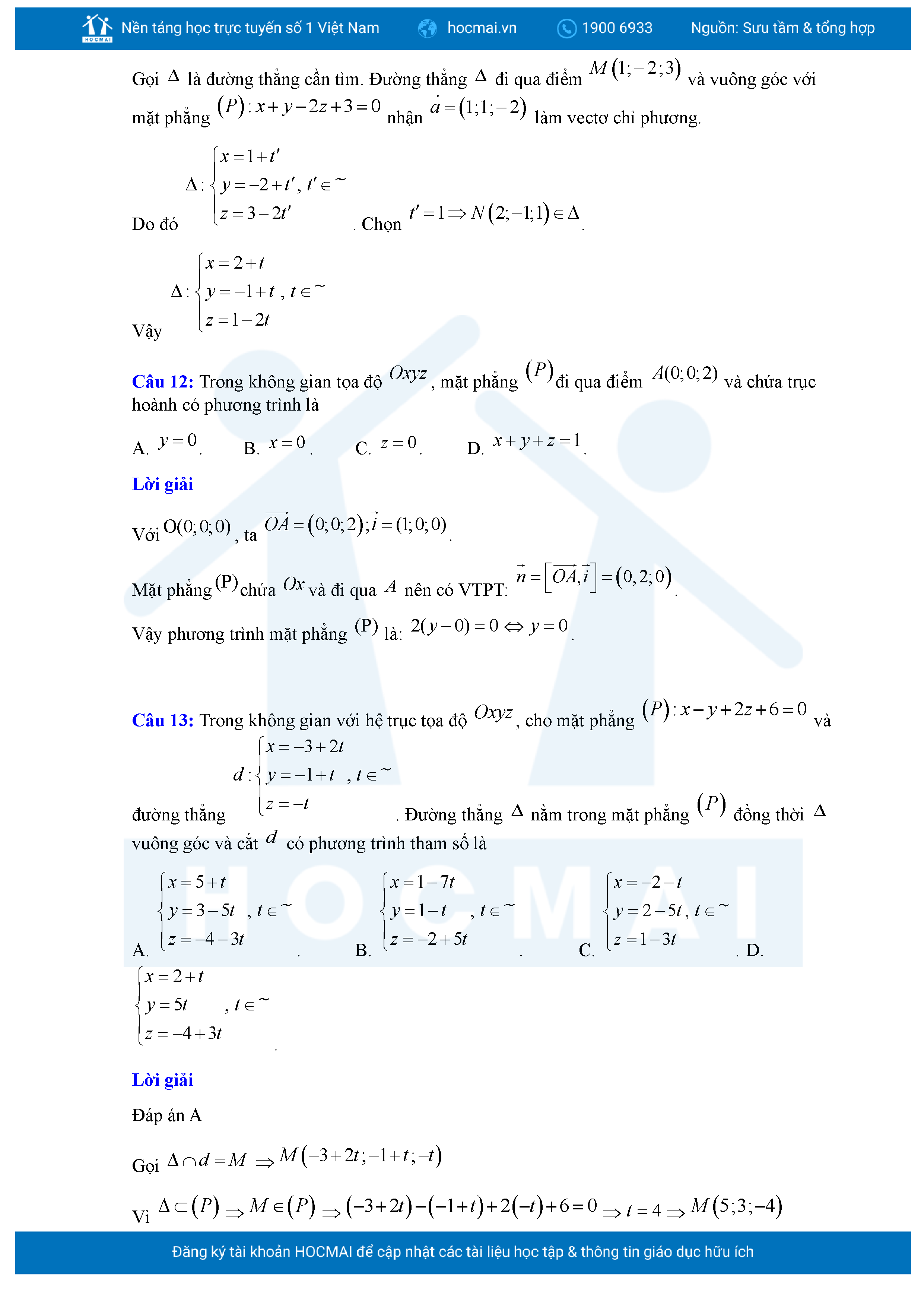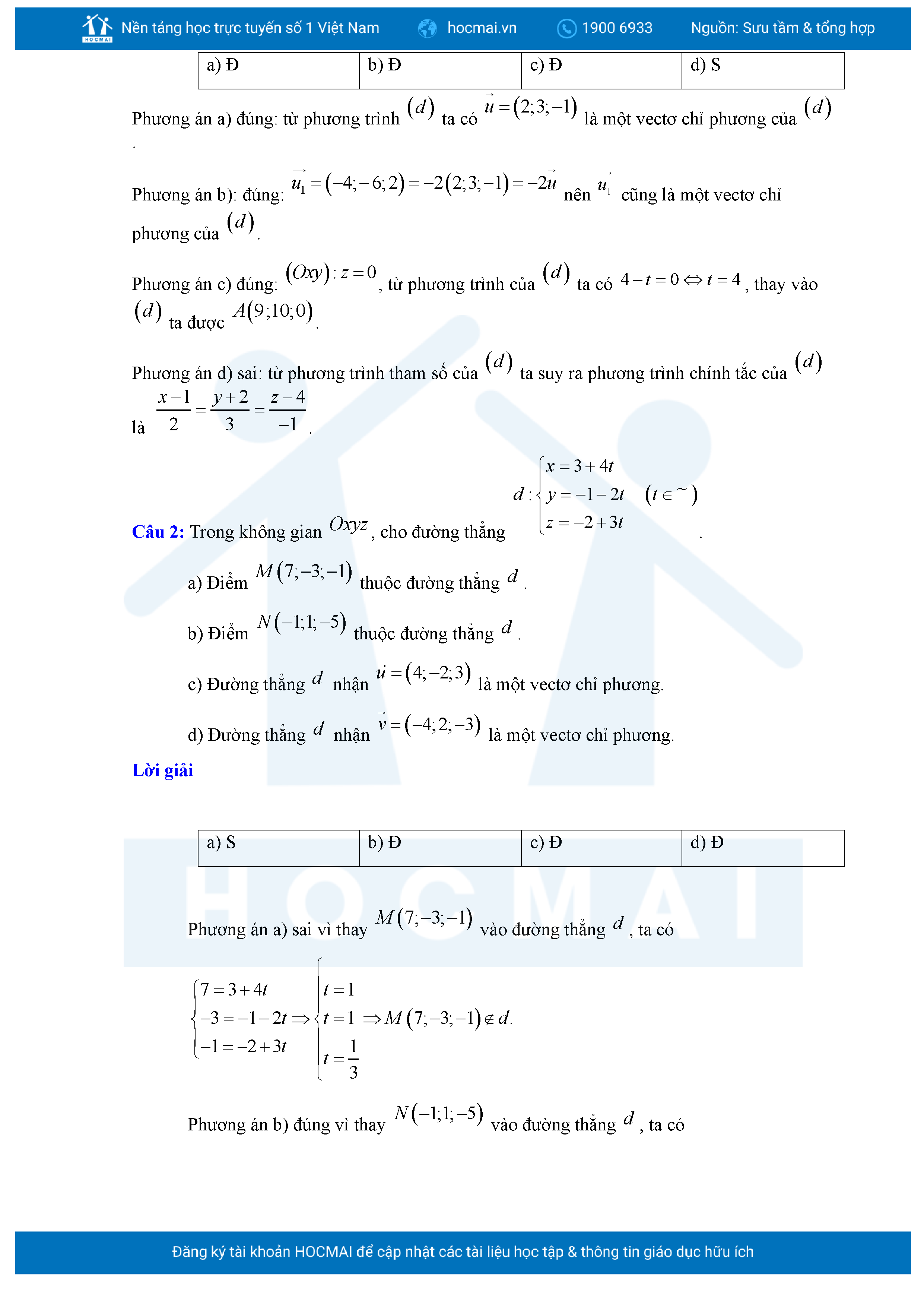 Chuyên đề Phương trình đường thẳng trong không gian ôn thi tốt nghiệp THPT giải chi tiết