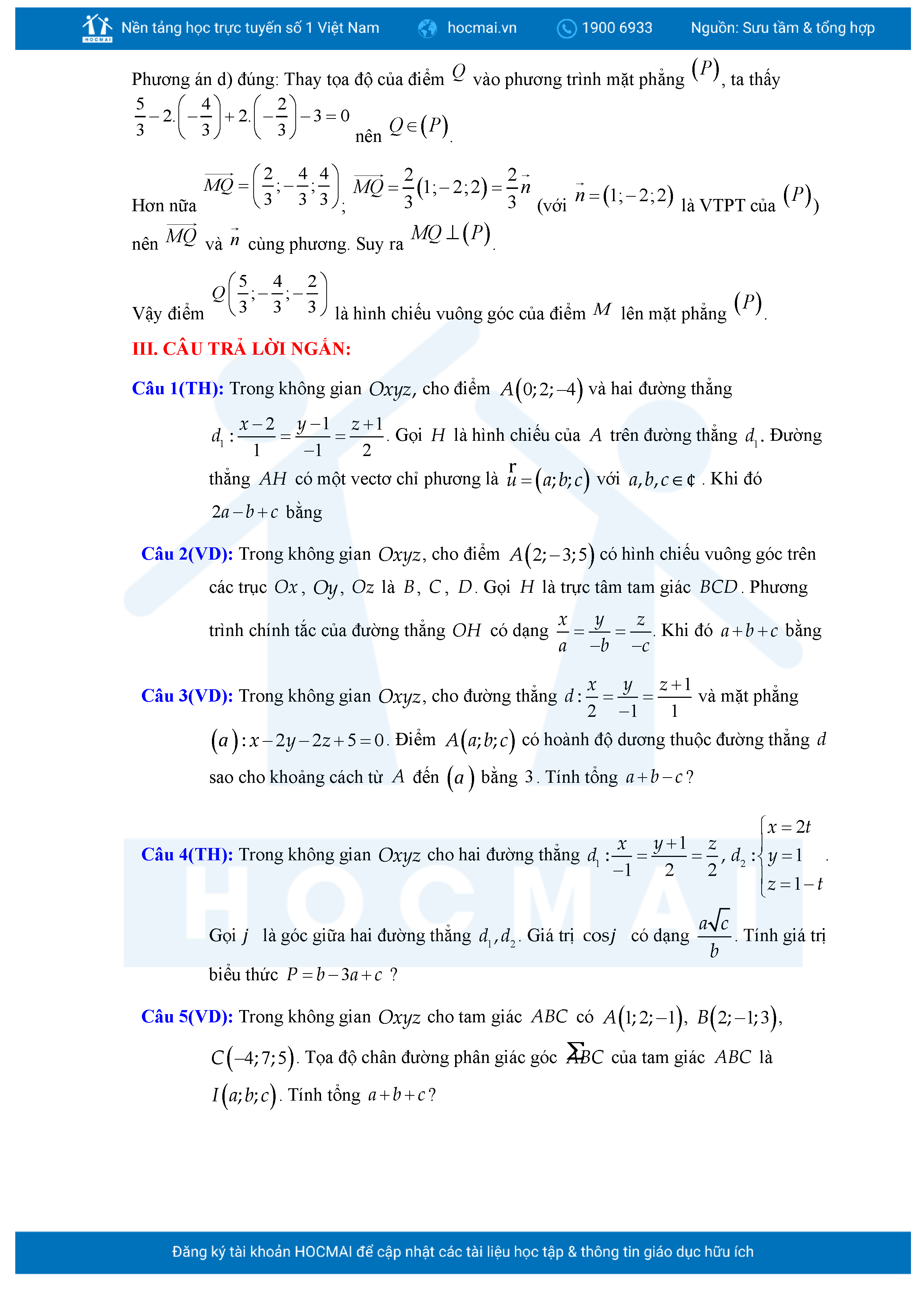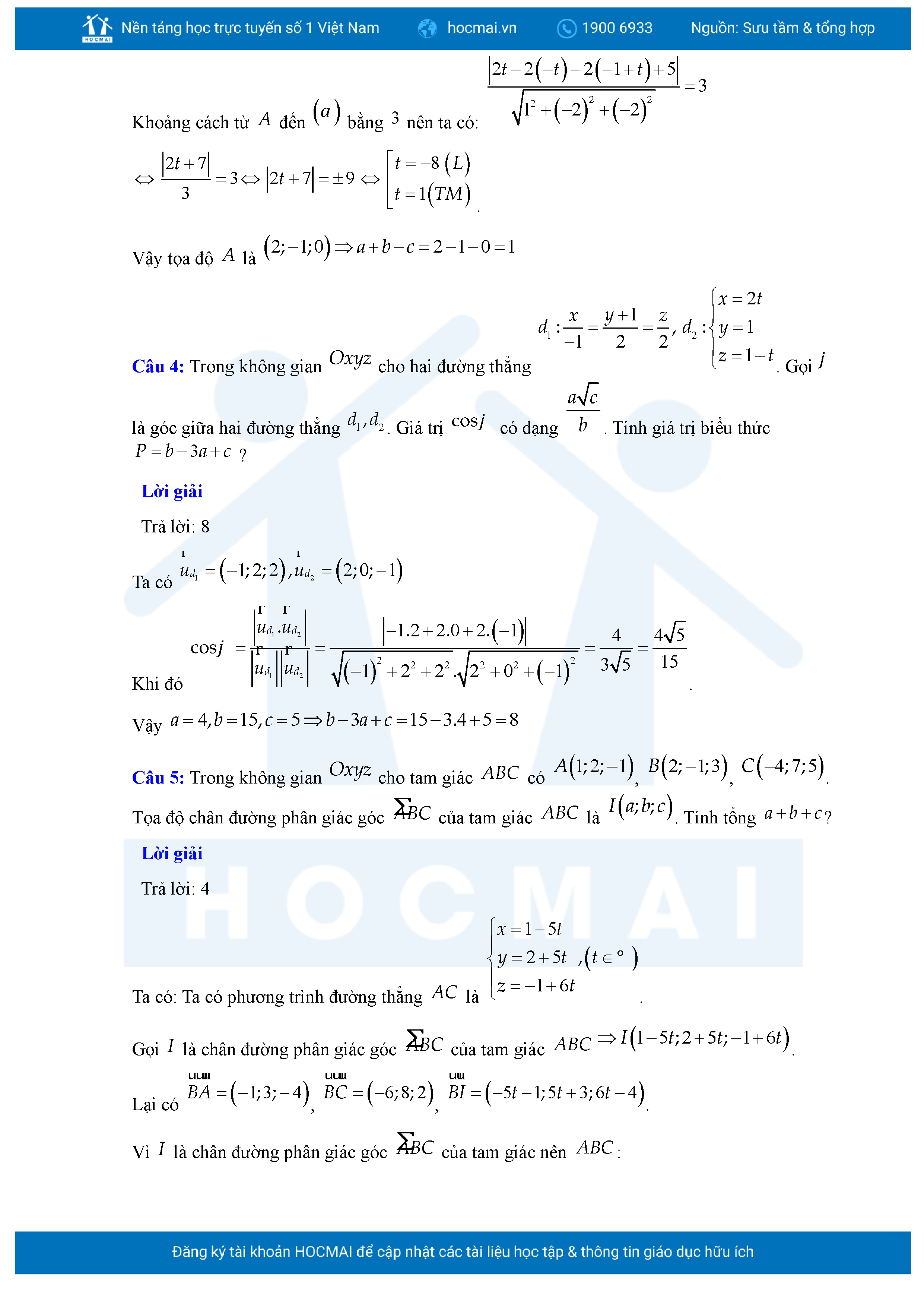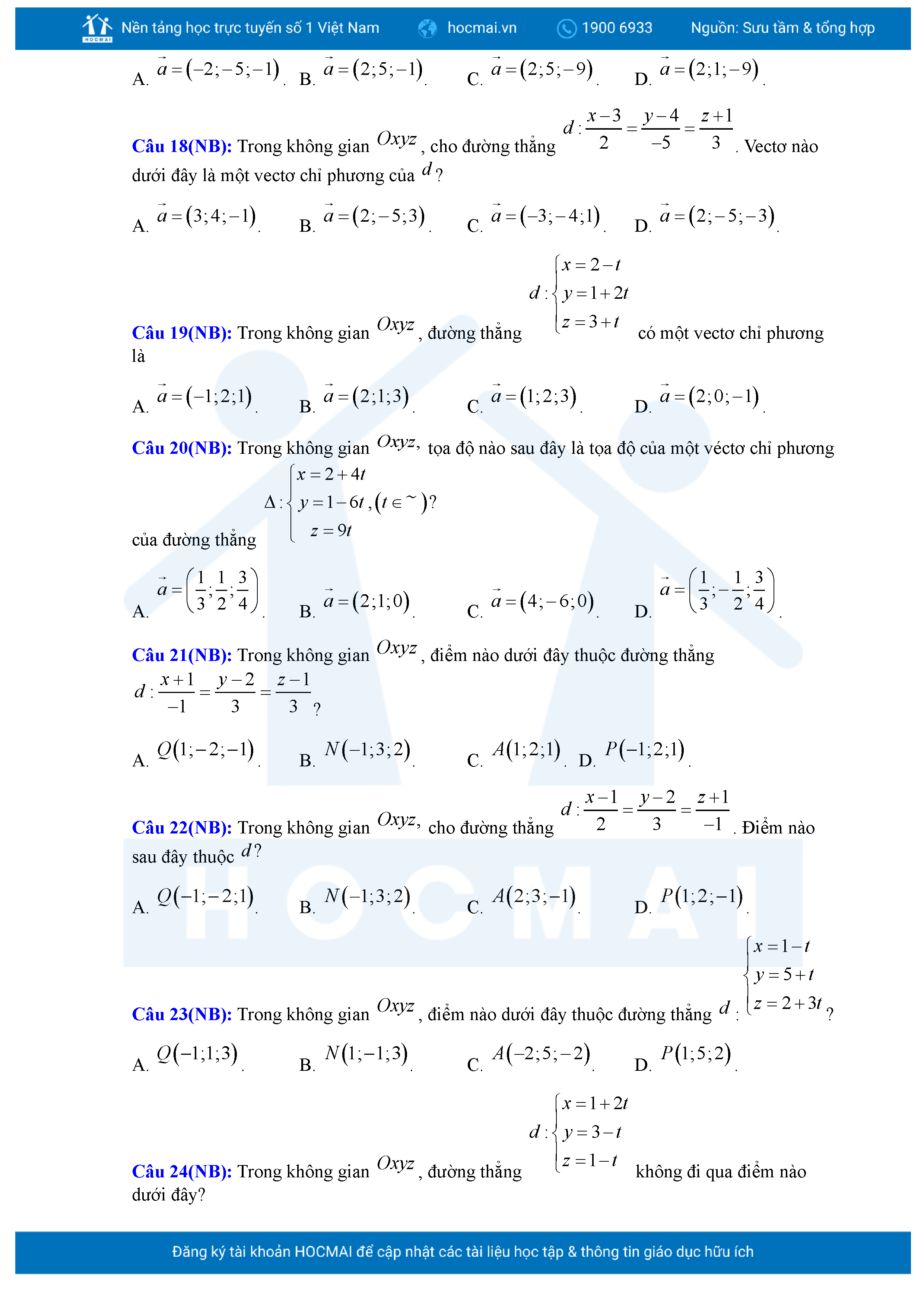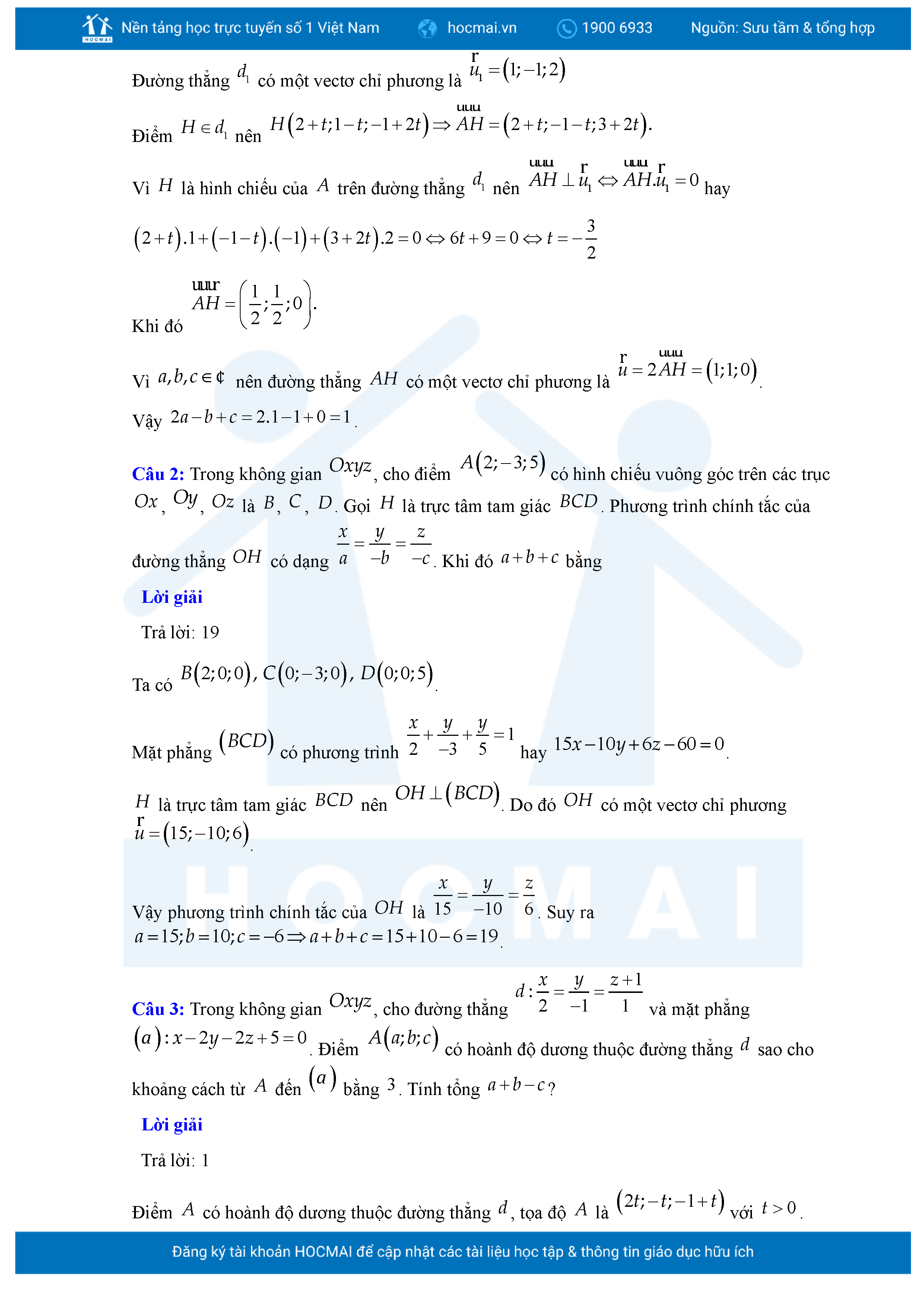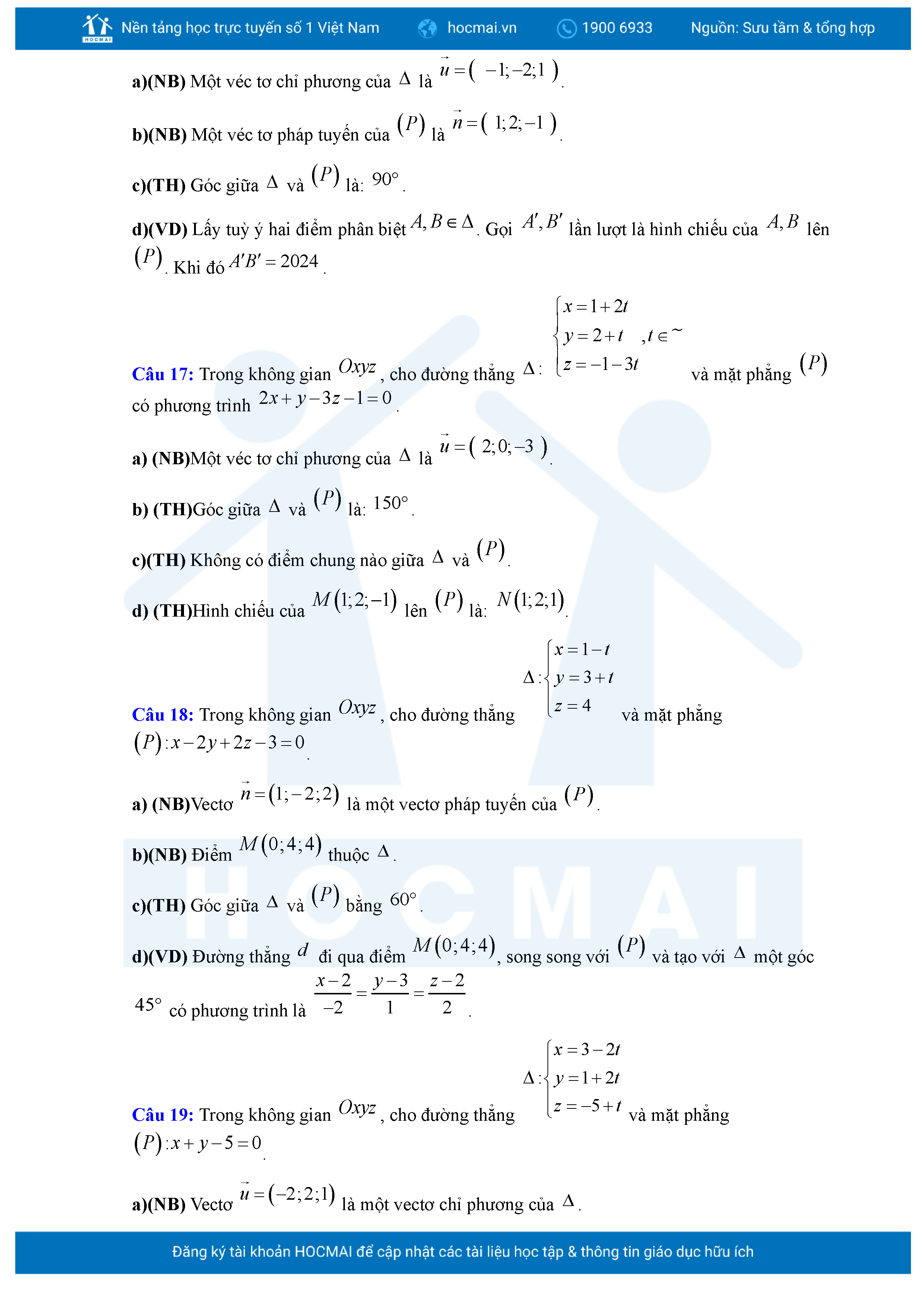 Chuyên đề Phương trình đường thẳng trong không gian ôn thi tốt nghiệp THPT giải chi tiết