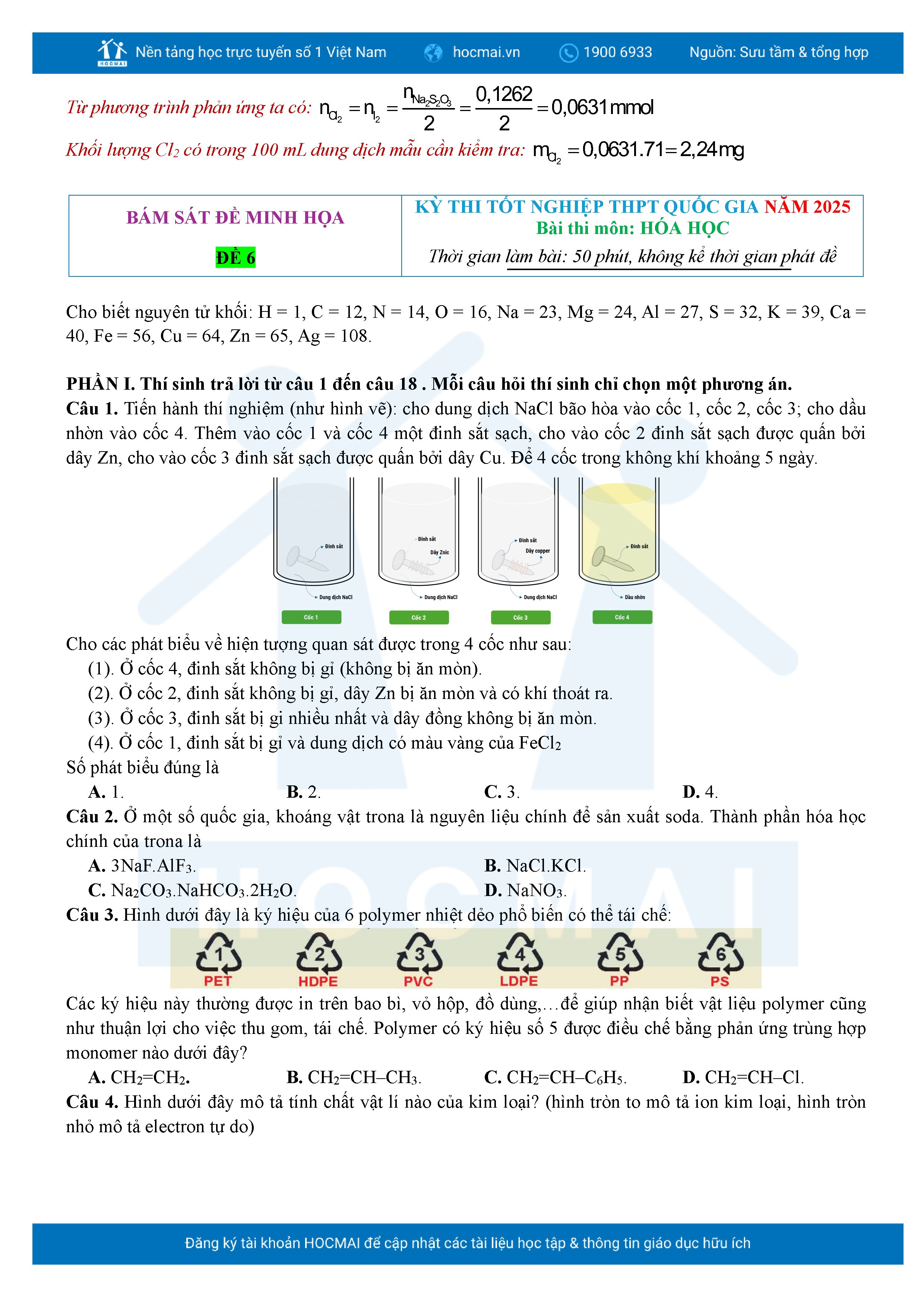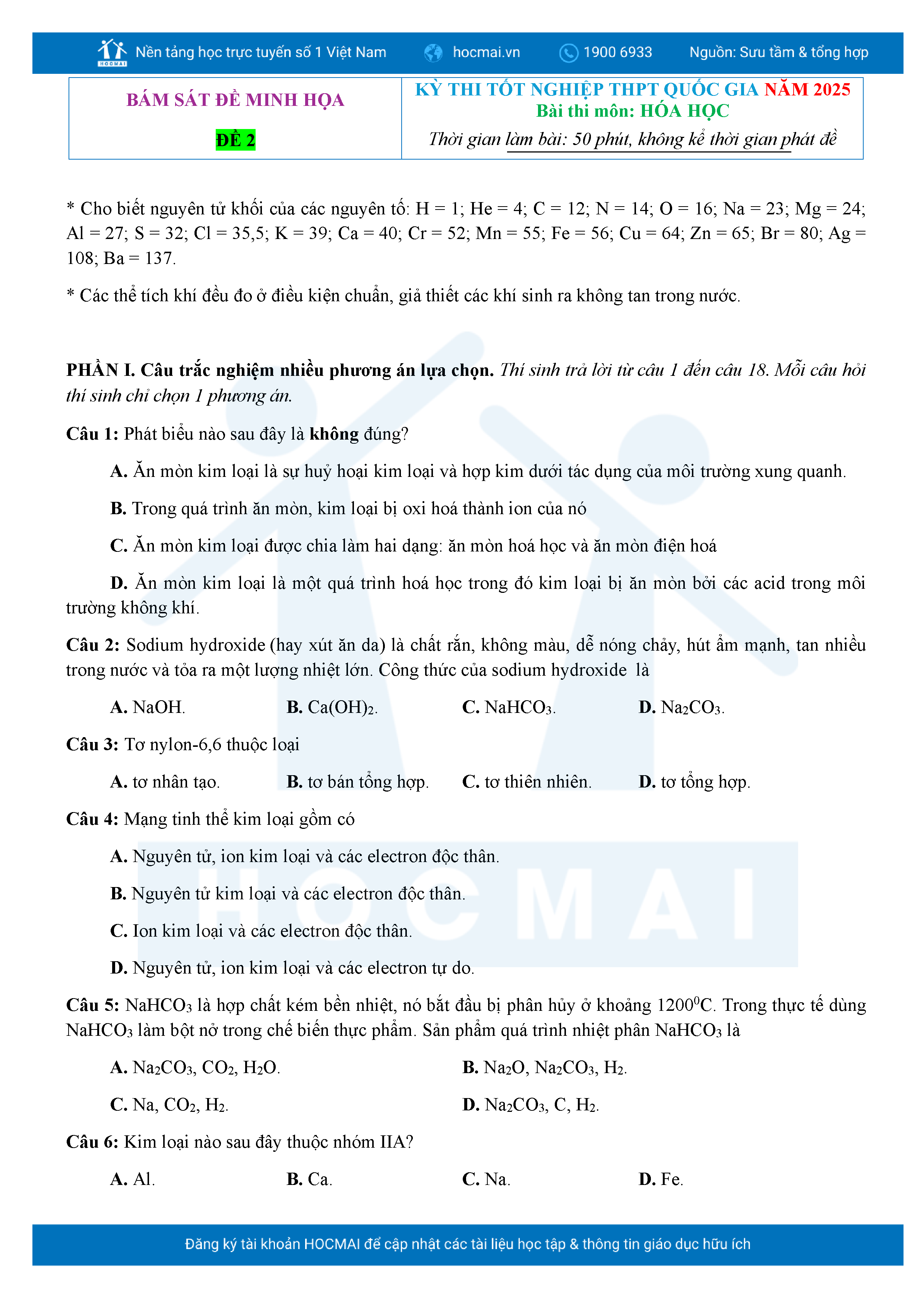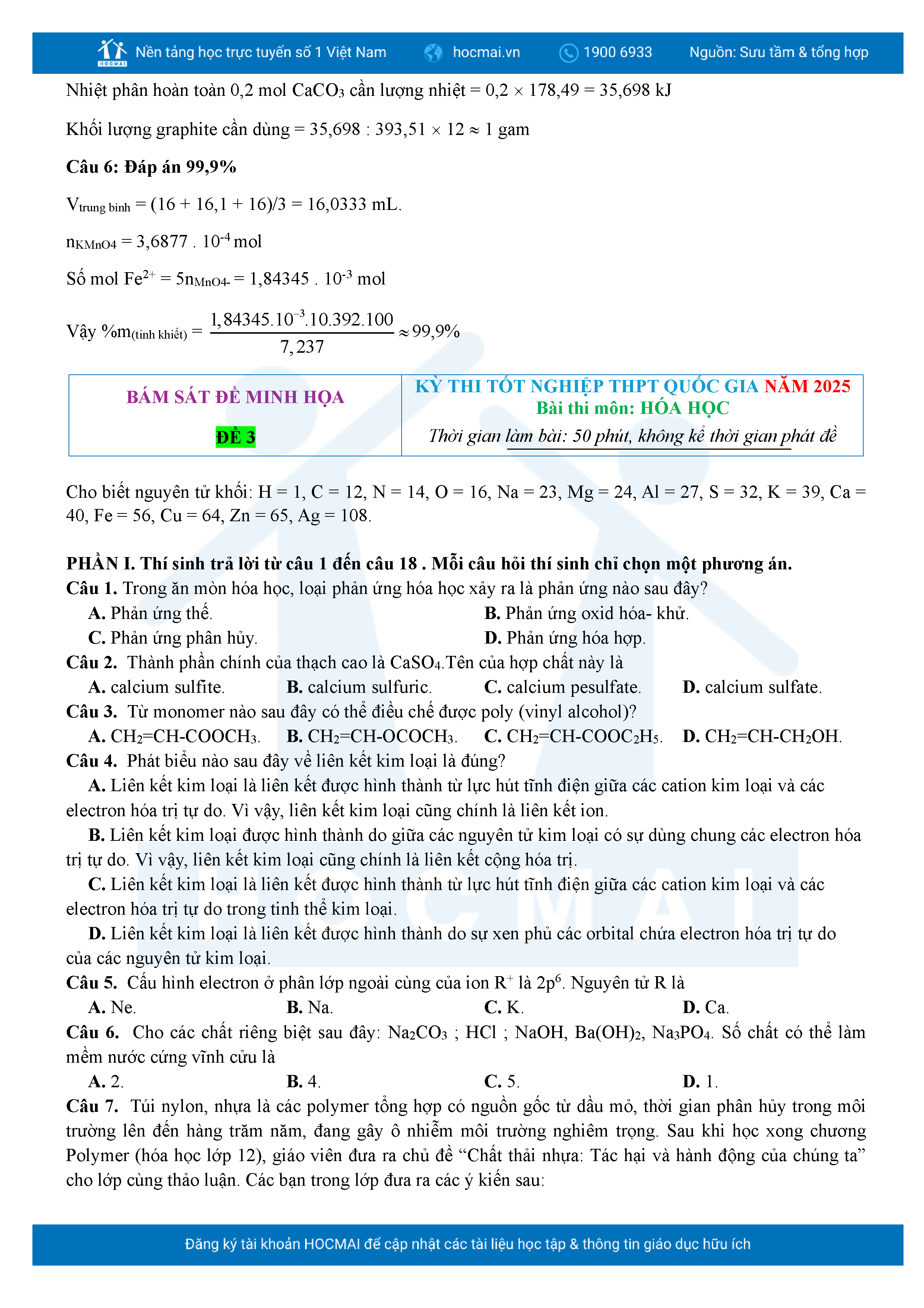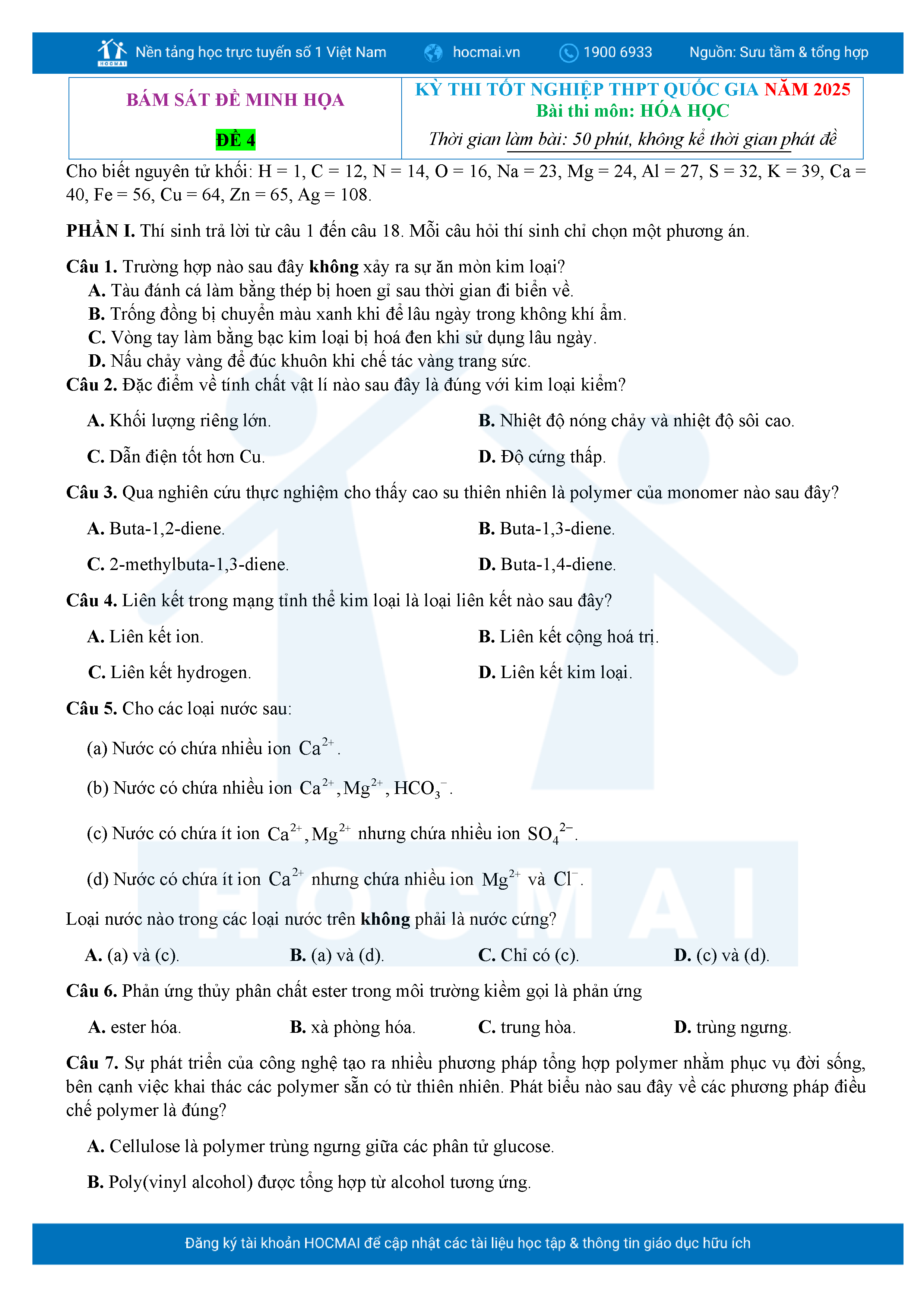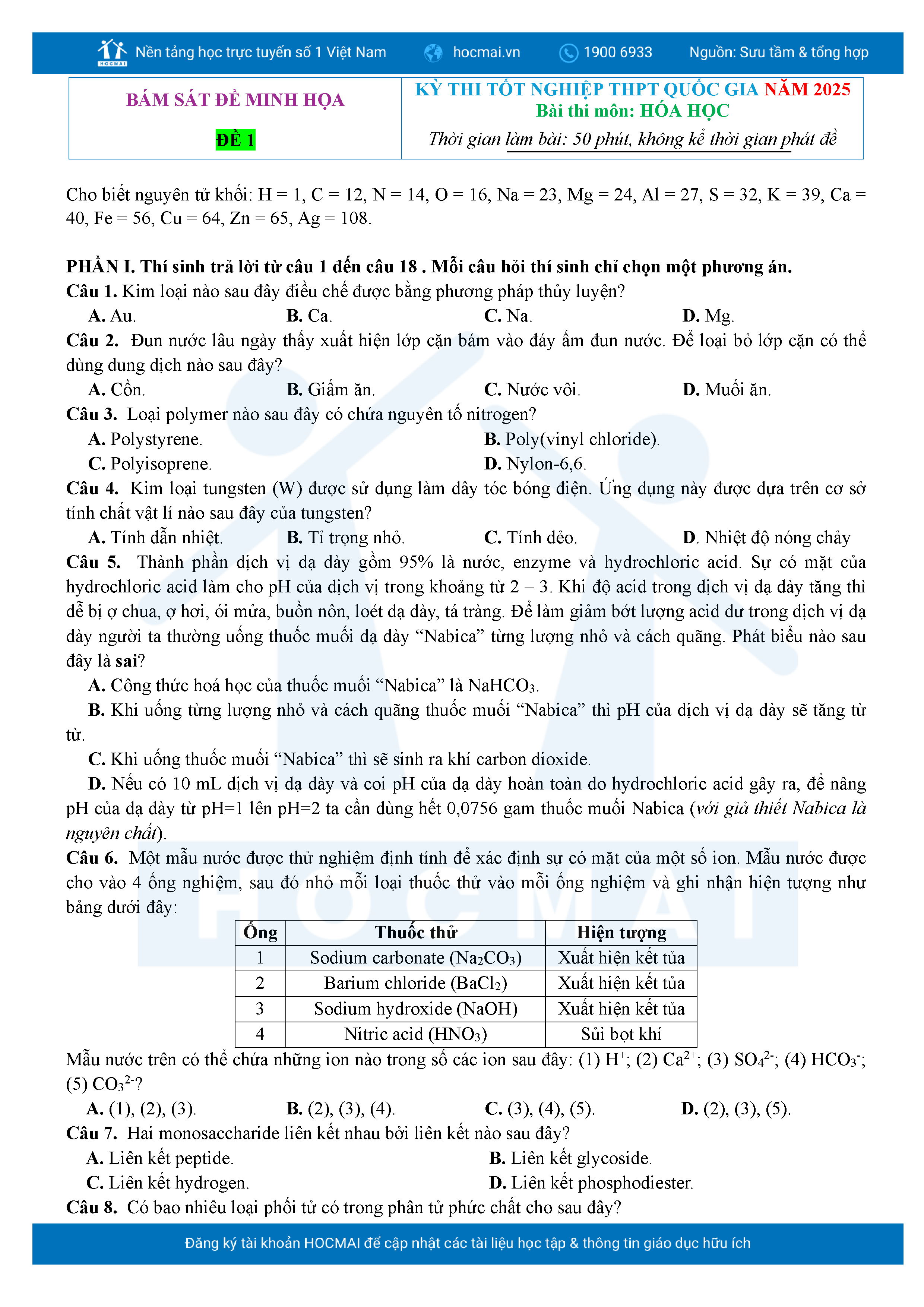Bộ 10 đề ôn thi tốt nghiệp THPT năm 2025 môn Hóa Học kèm lời giải