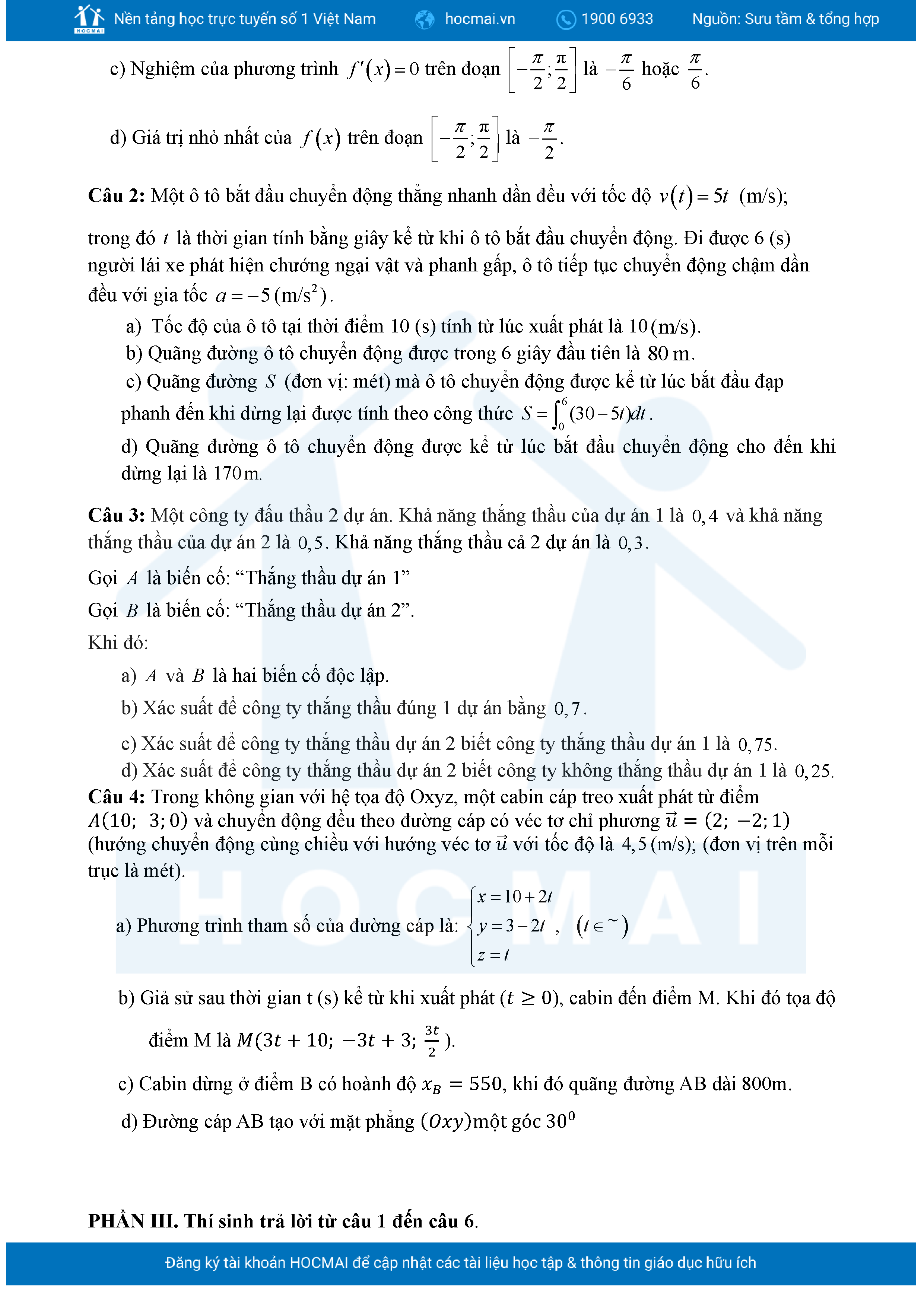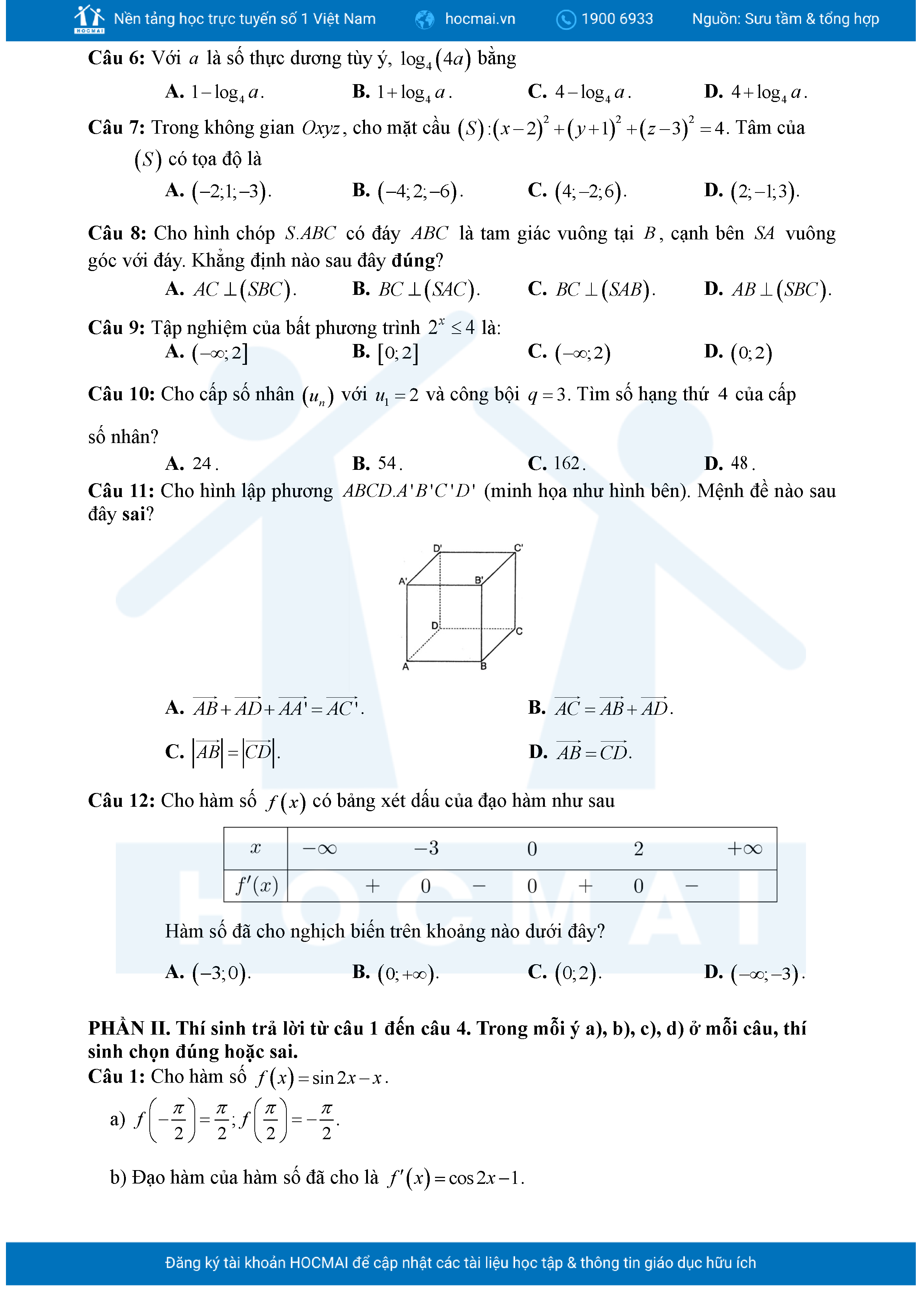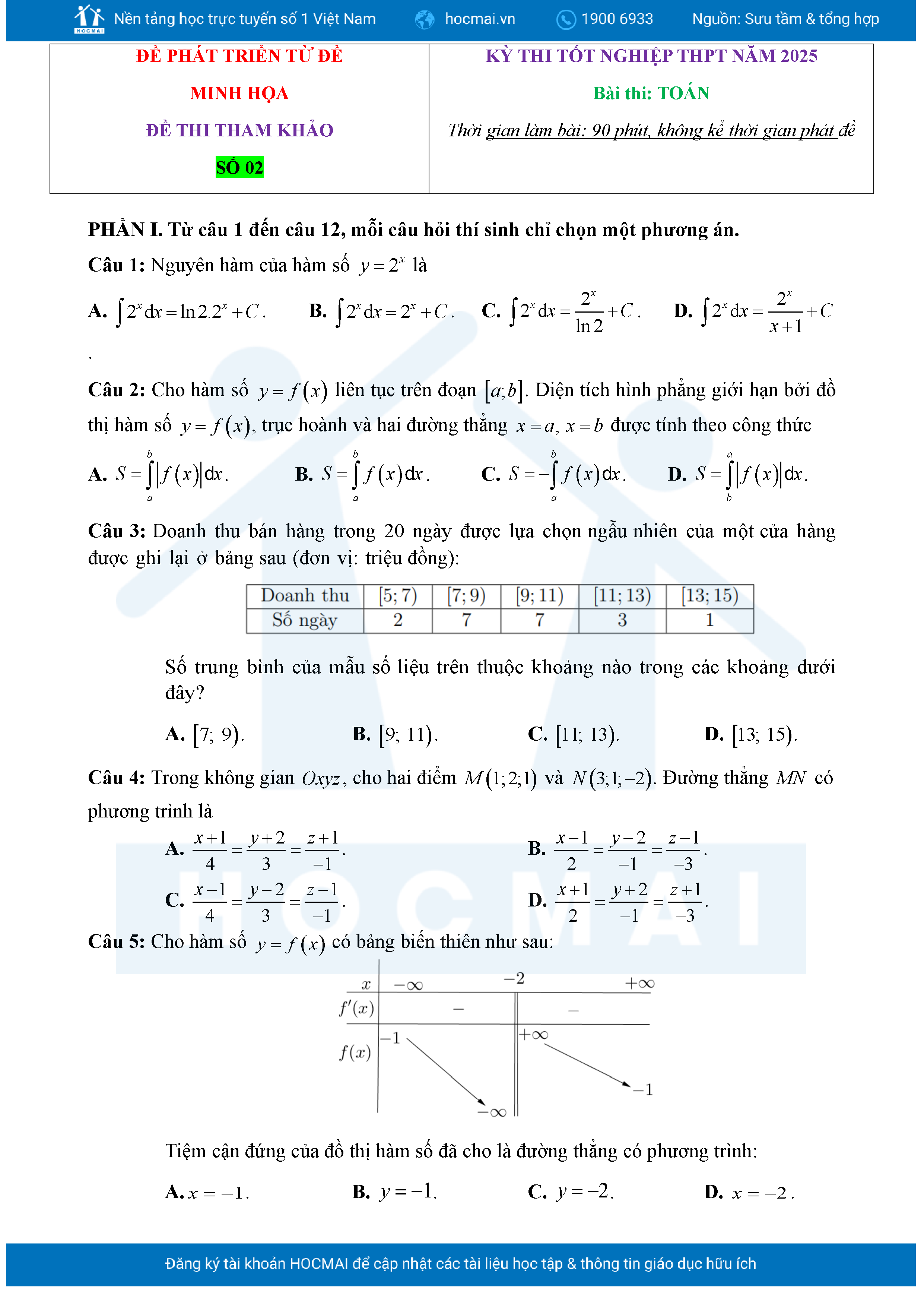 Đề ôn thi tốt nghiệp THPT 2025 toán phát triển minh họa có đáp án-Đề 2