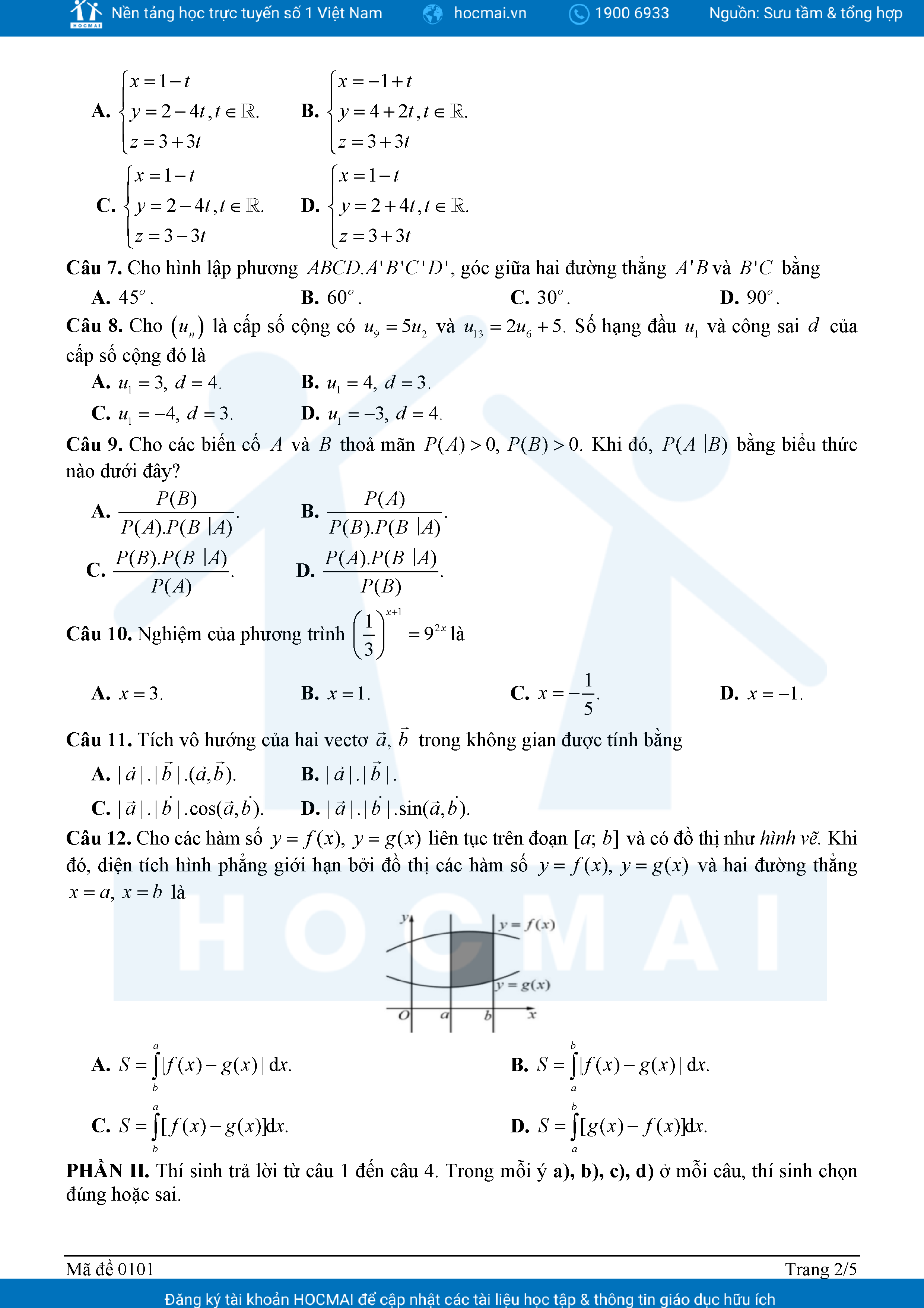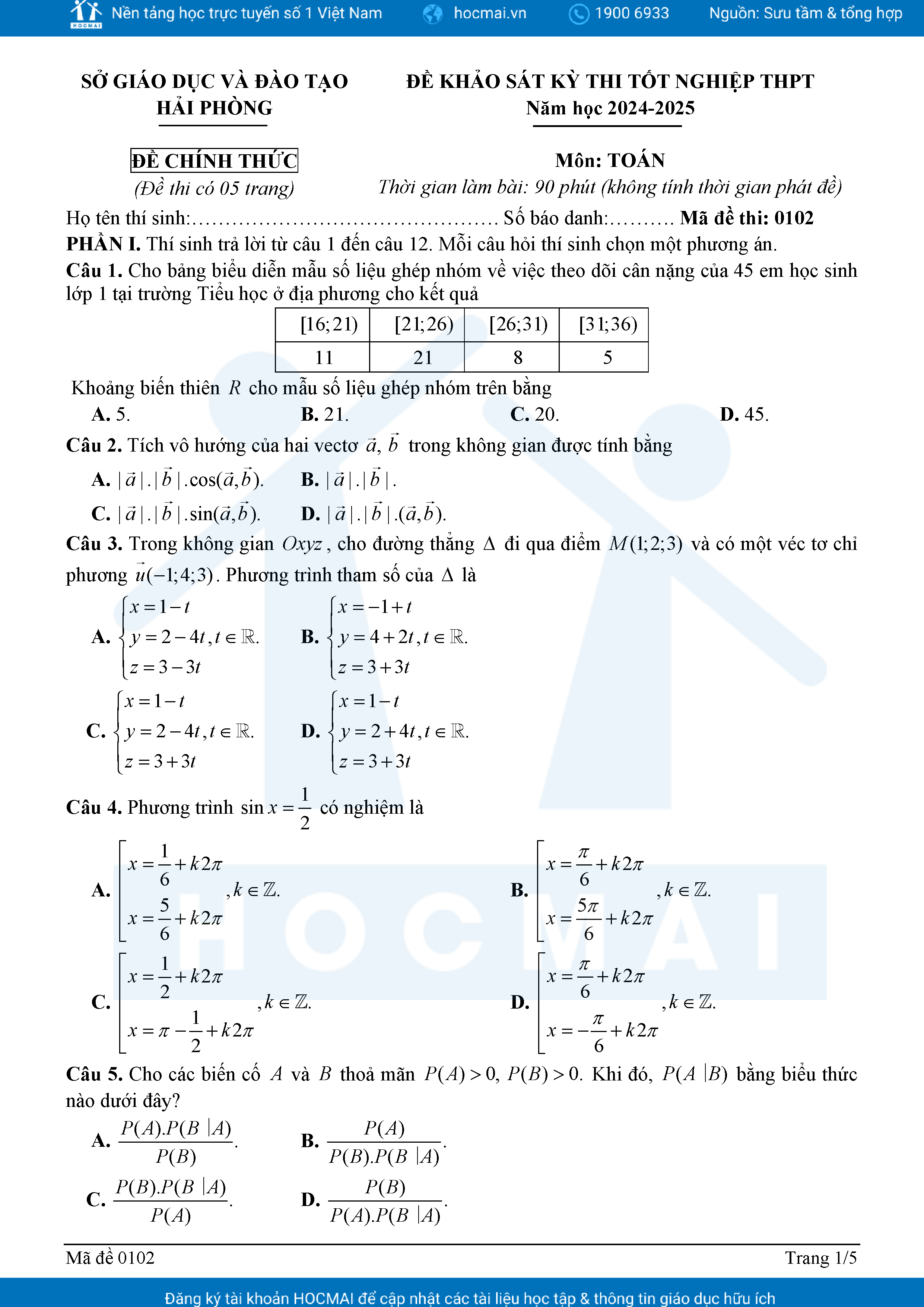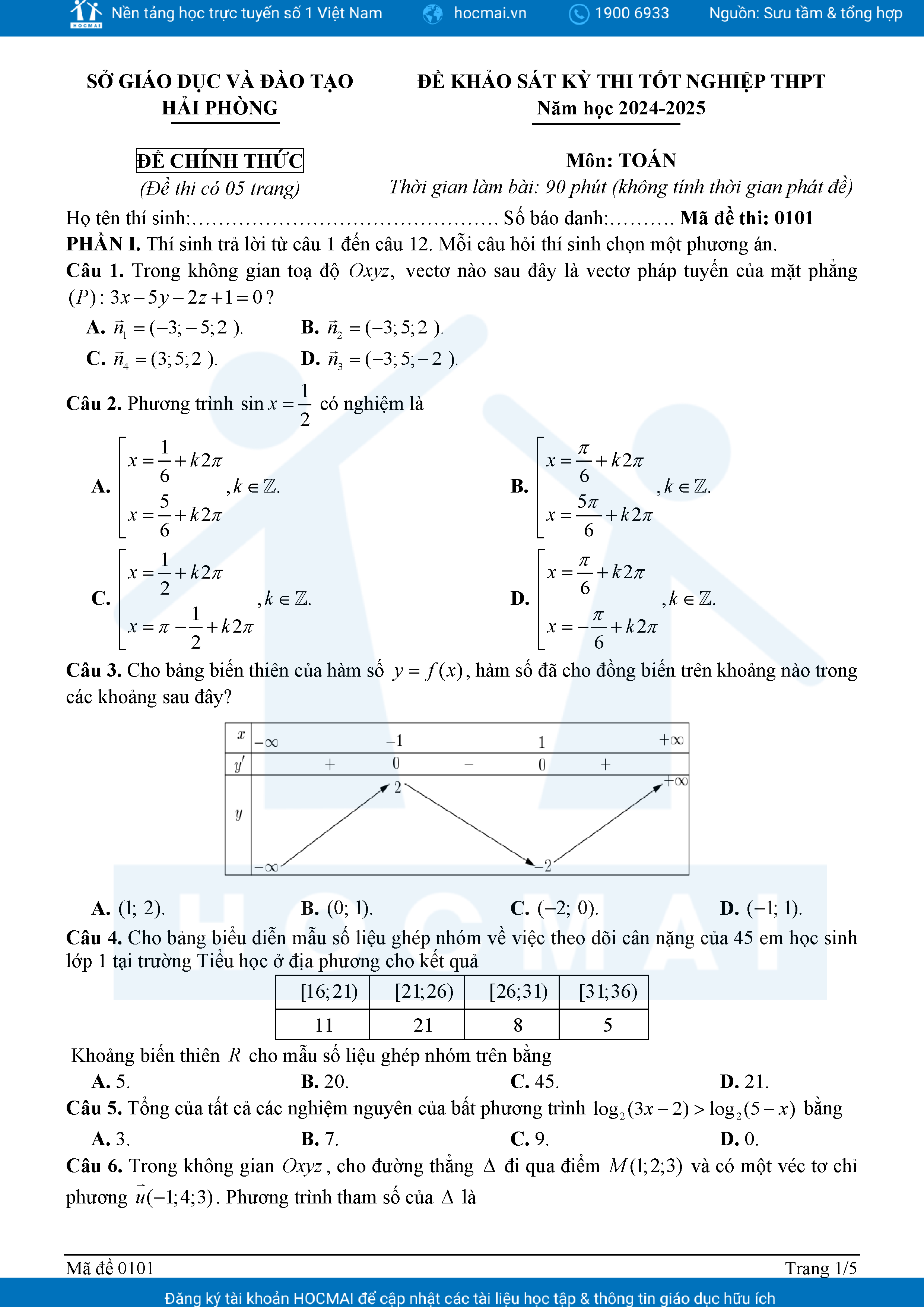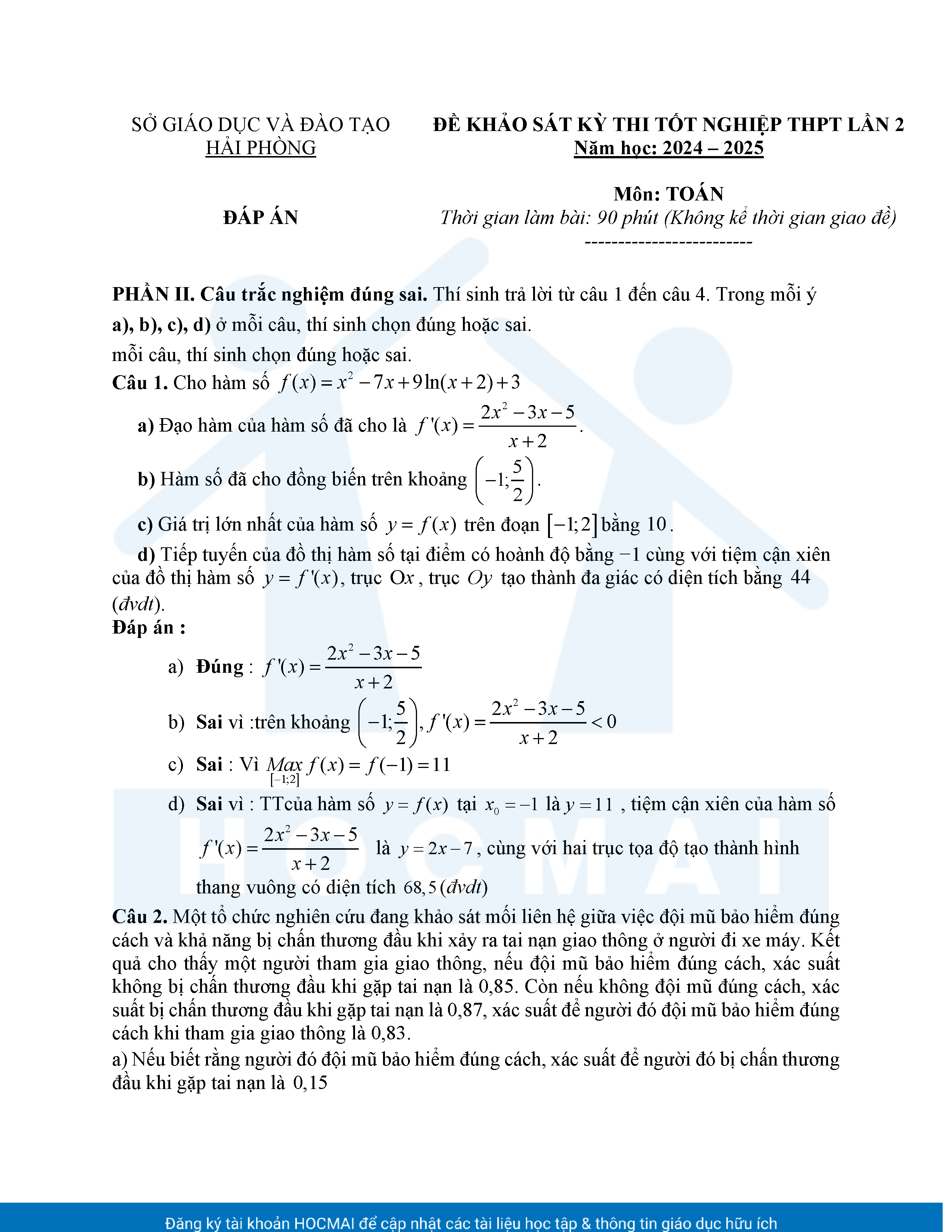 Đề khảo sát chất lượng kỳ thi tốt nghiệp THPT năm học 2024 – 2025 môn Toán lần 2 sở GD&ĐT Hải Phòng