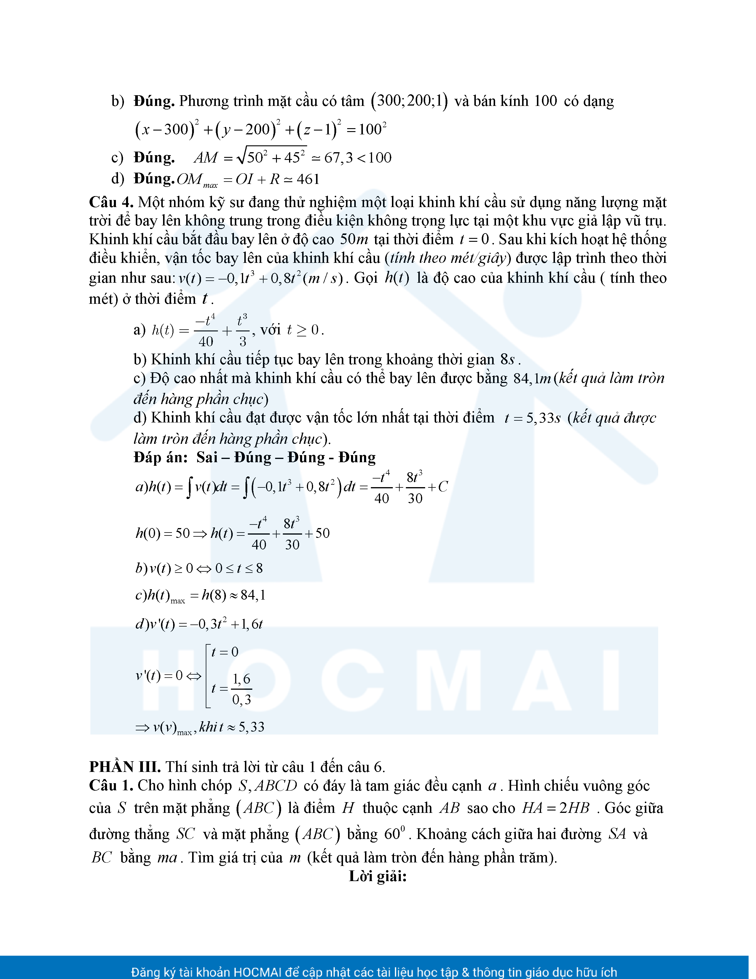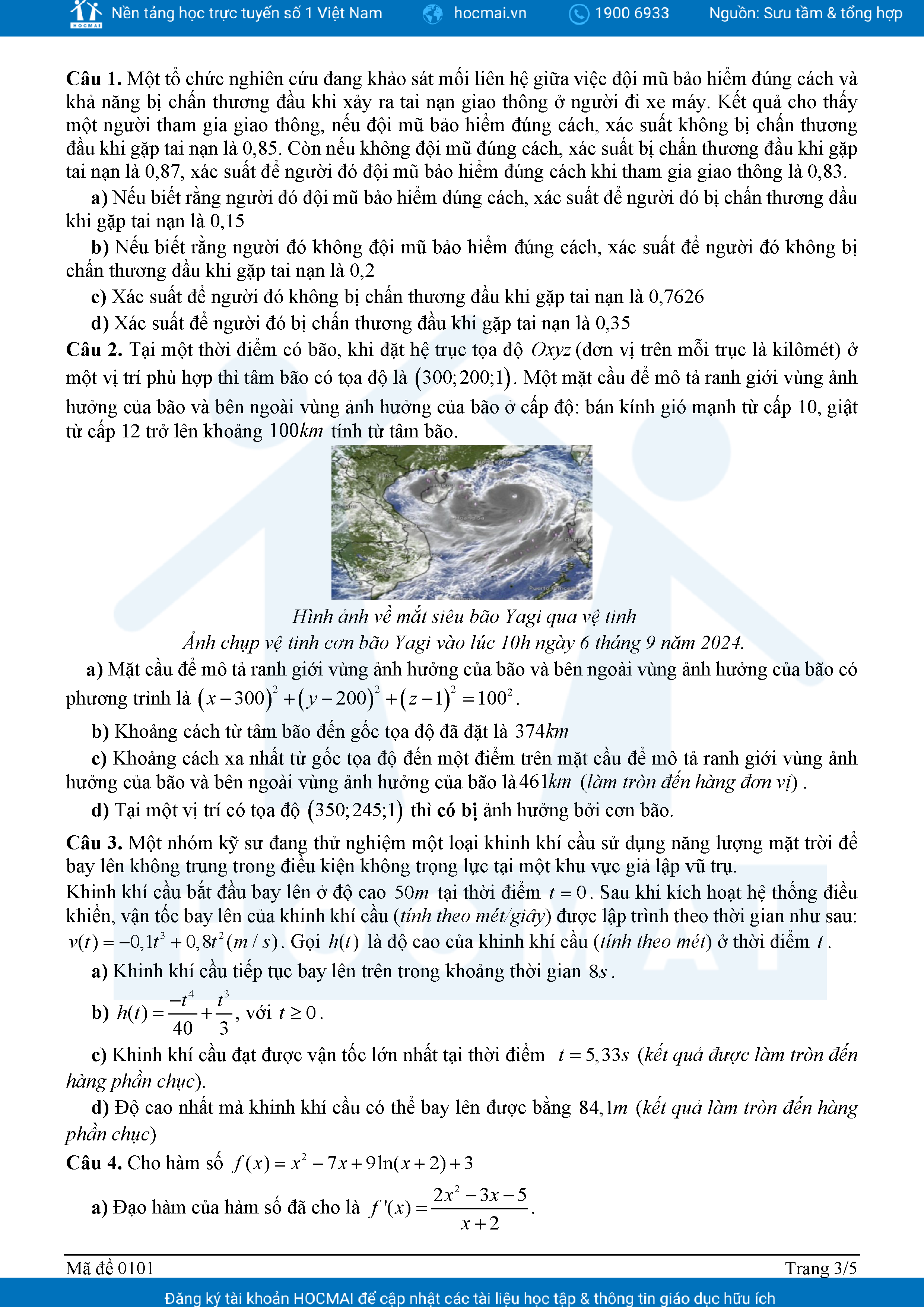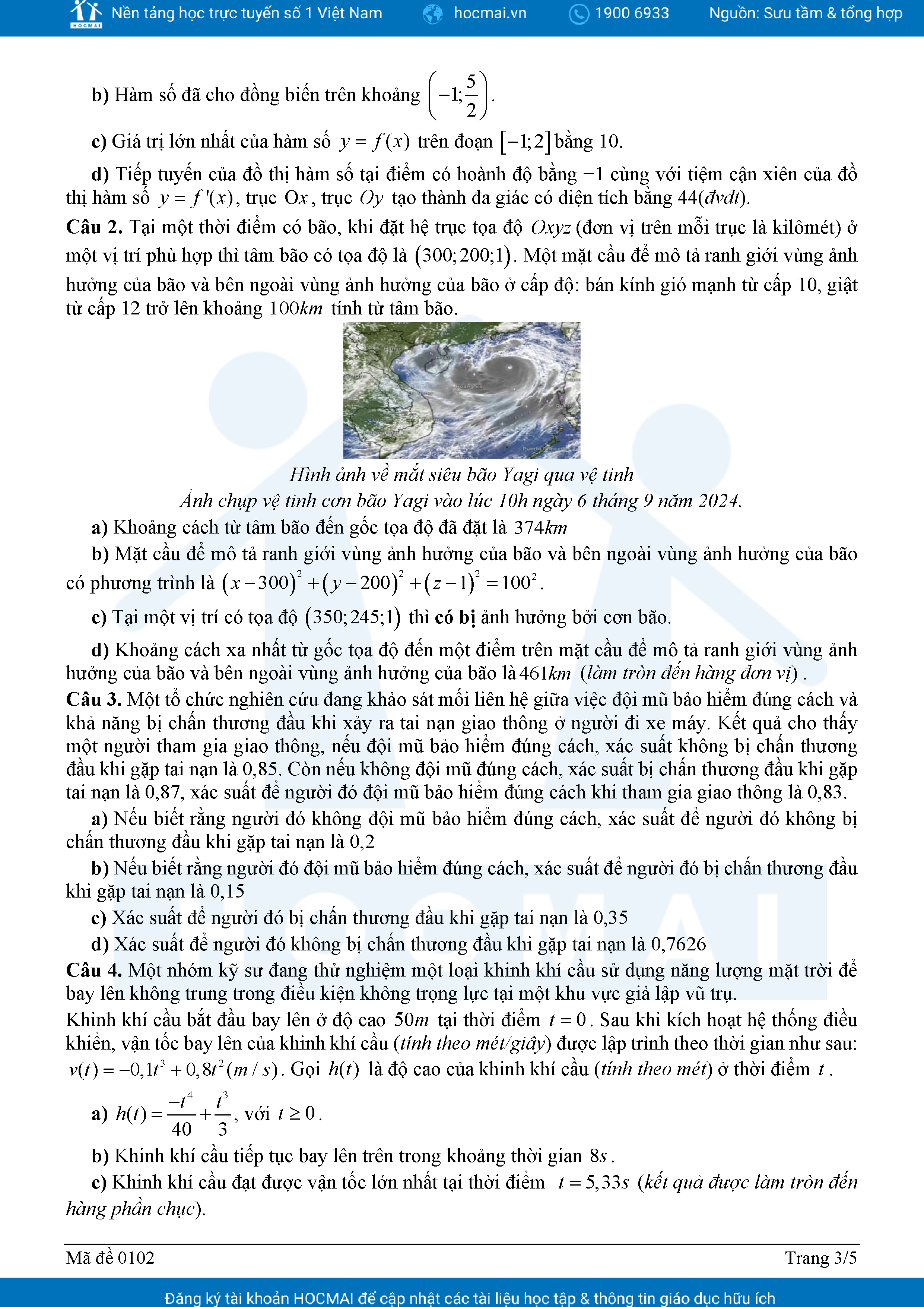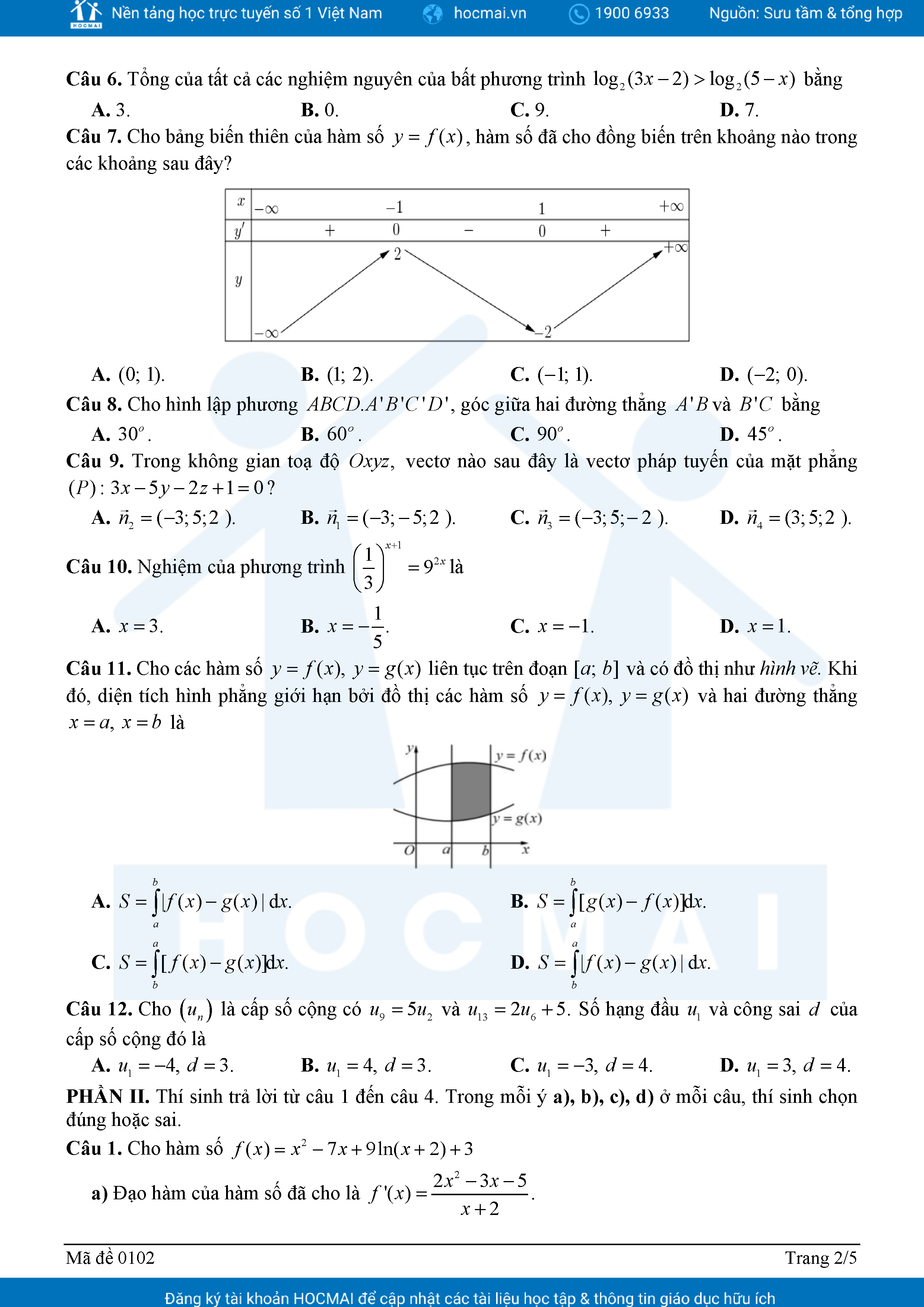 Đề khảo sát chất lượng kỳ thi tốt nghiệp THPT năm học 2024 – 2025 môn Toán lần 2 sở GD&ĐT Hải Phòng