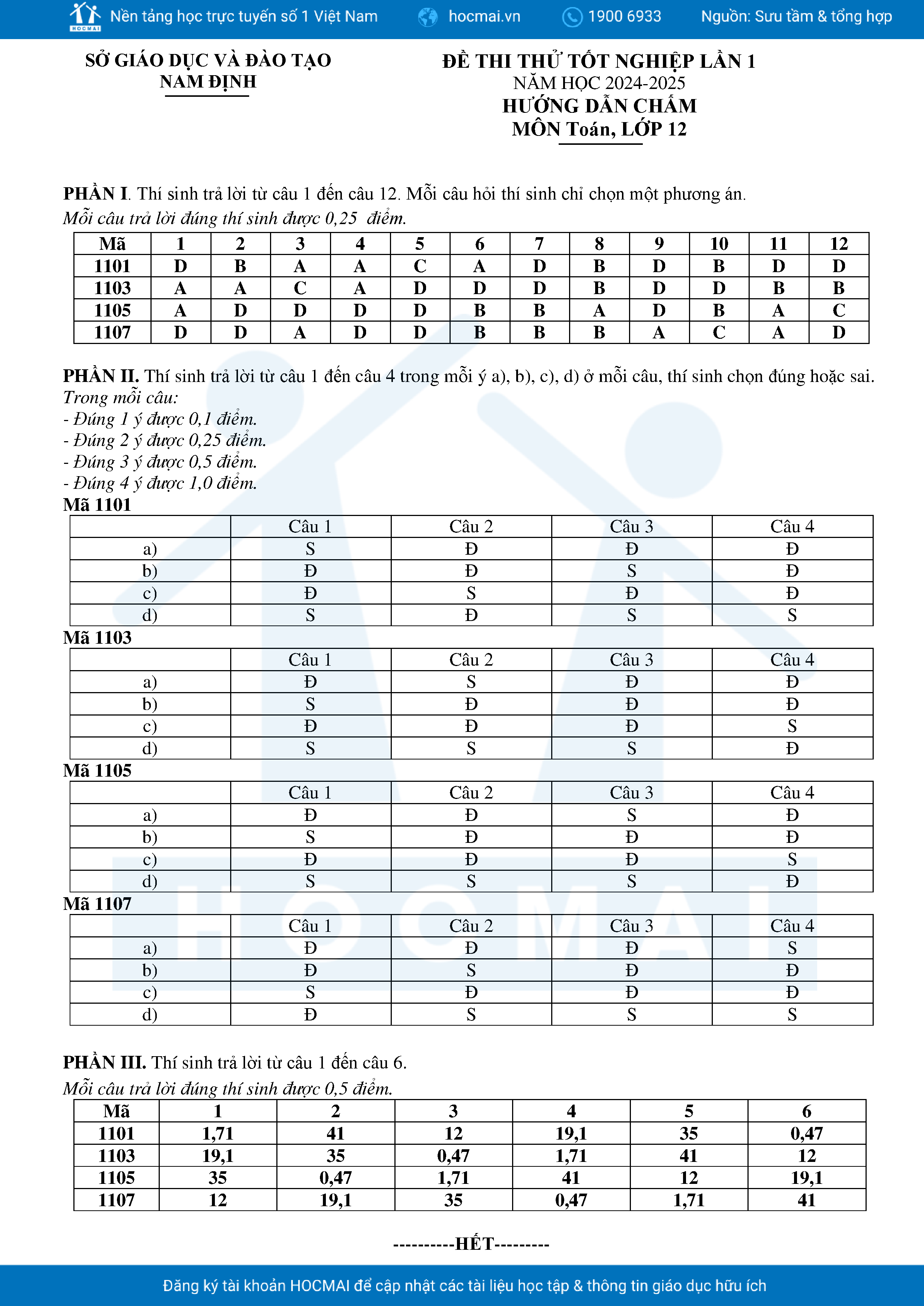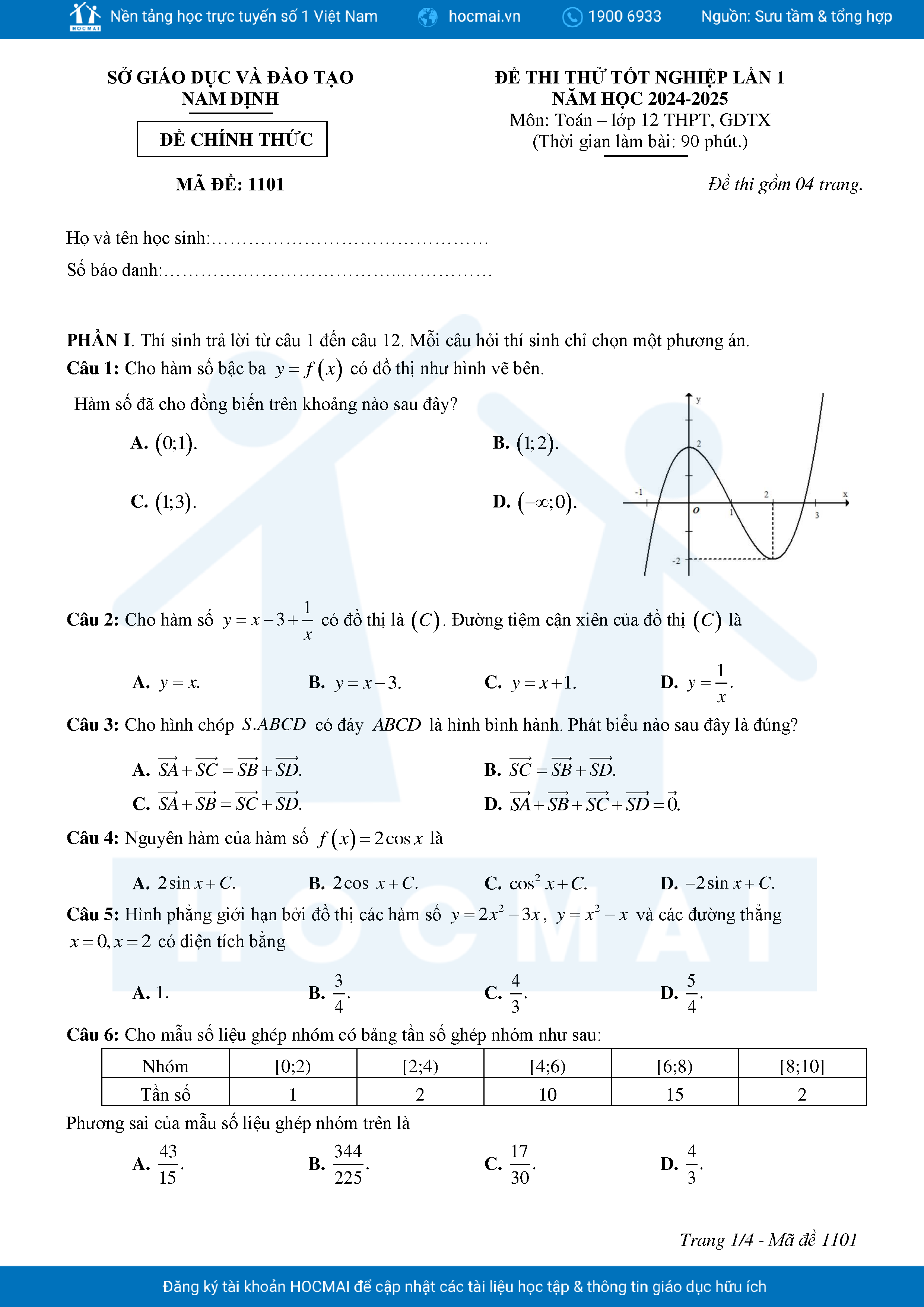 Đề thi thử tốt nghiệp THPT 2025 lần 1 môn Toán sở GD&ĐT Nam Định kèm đáp án