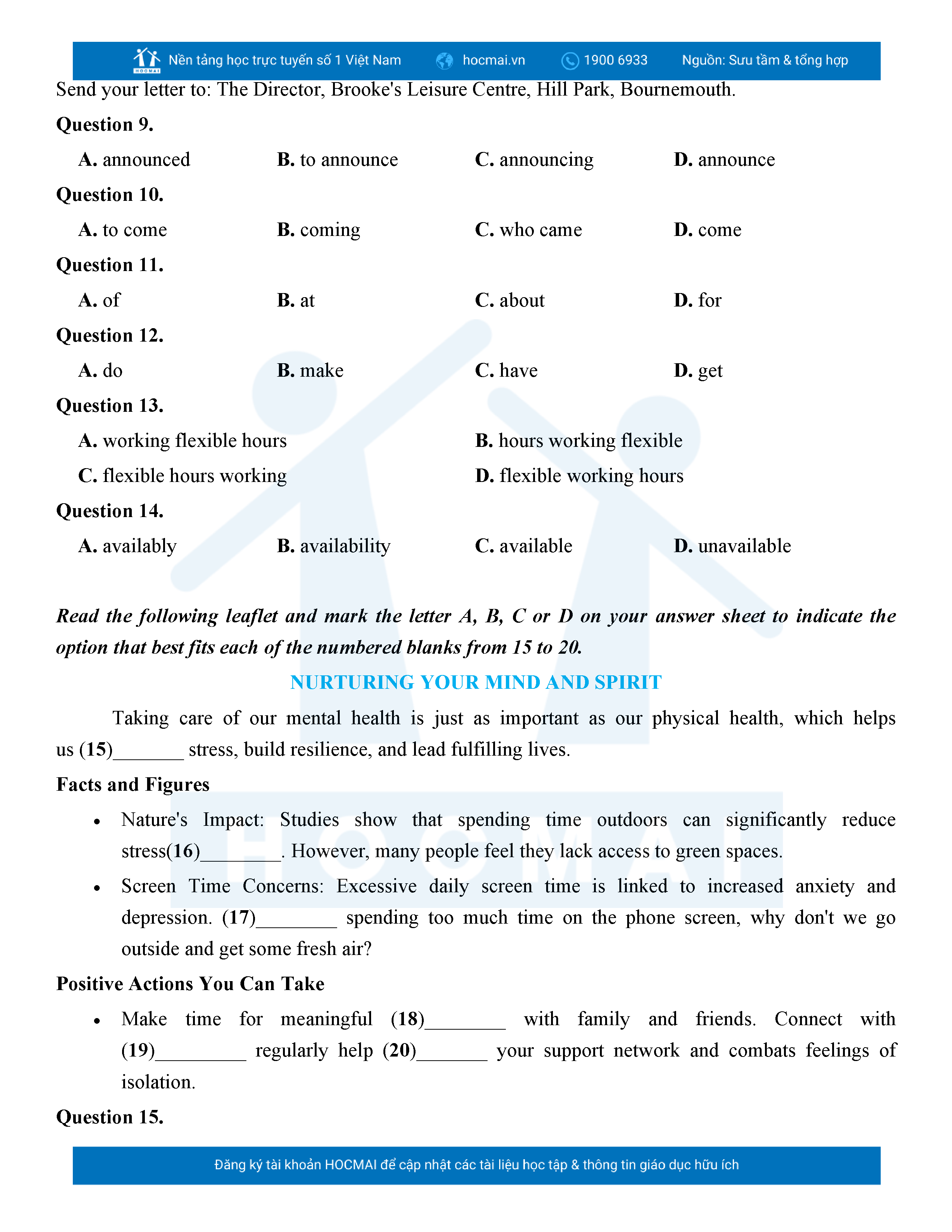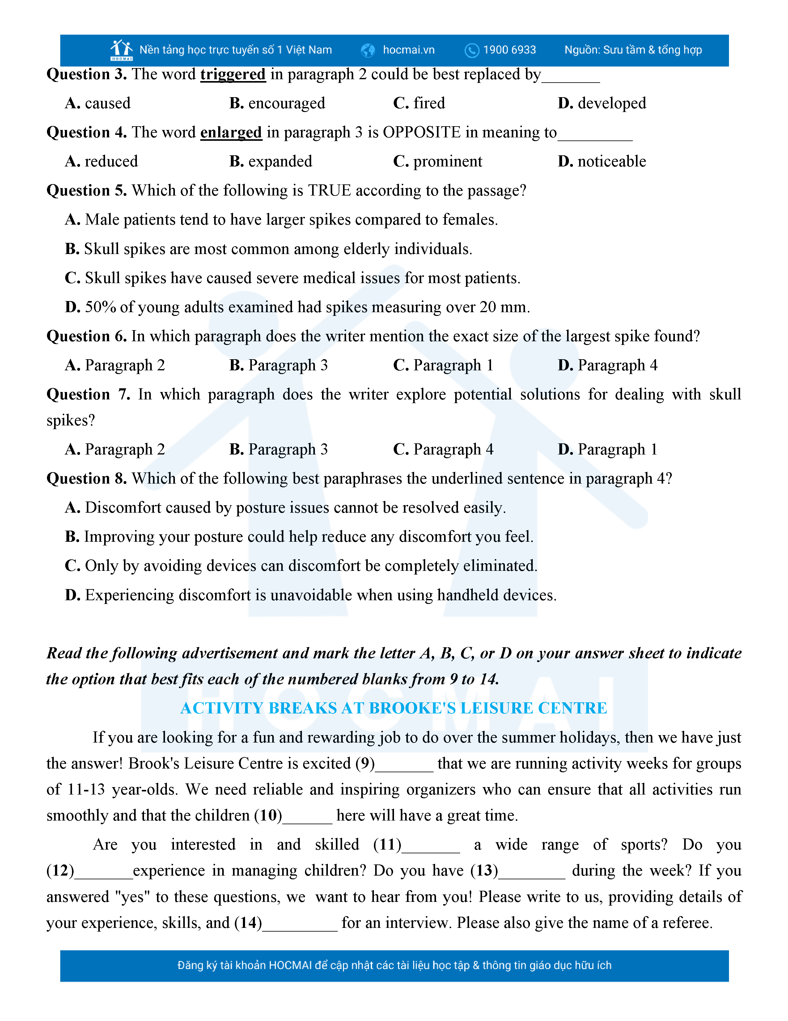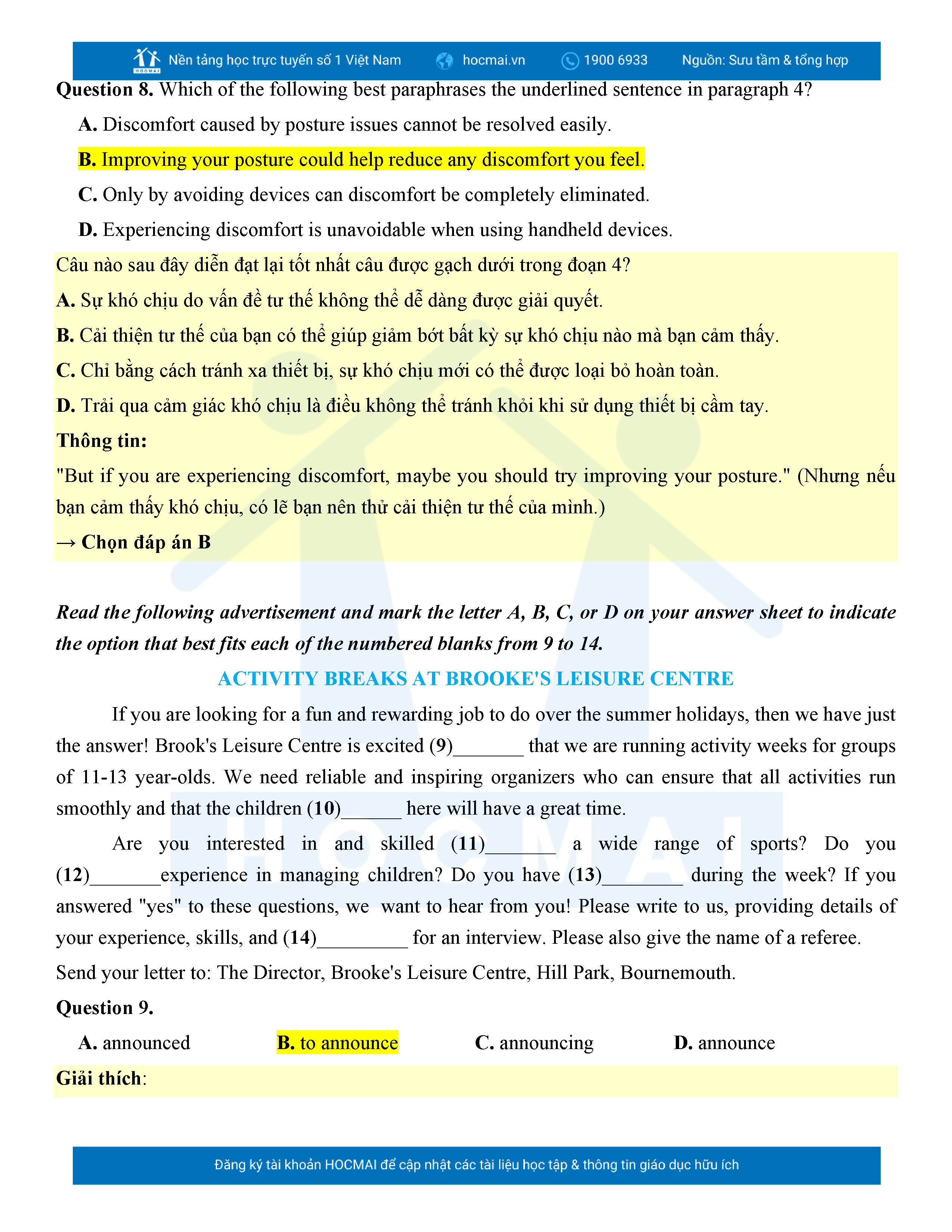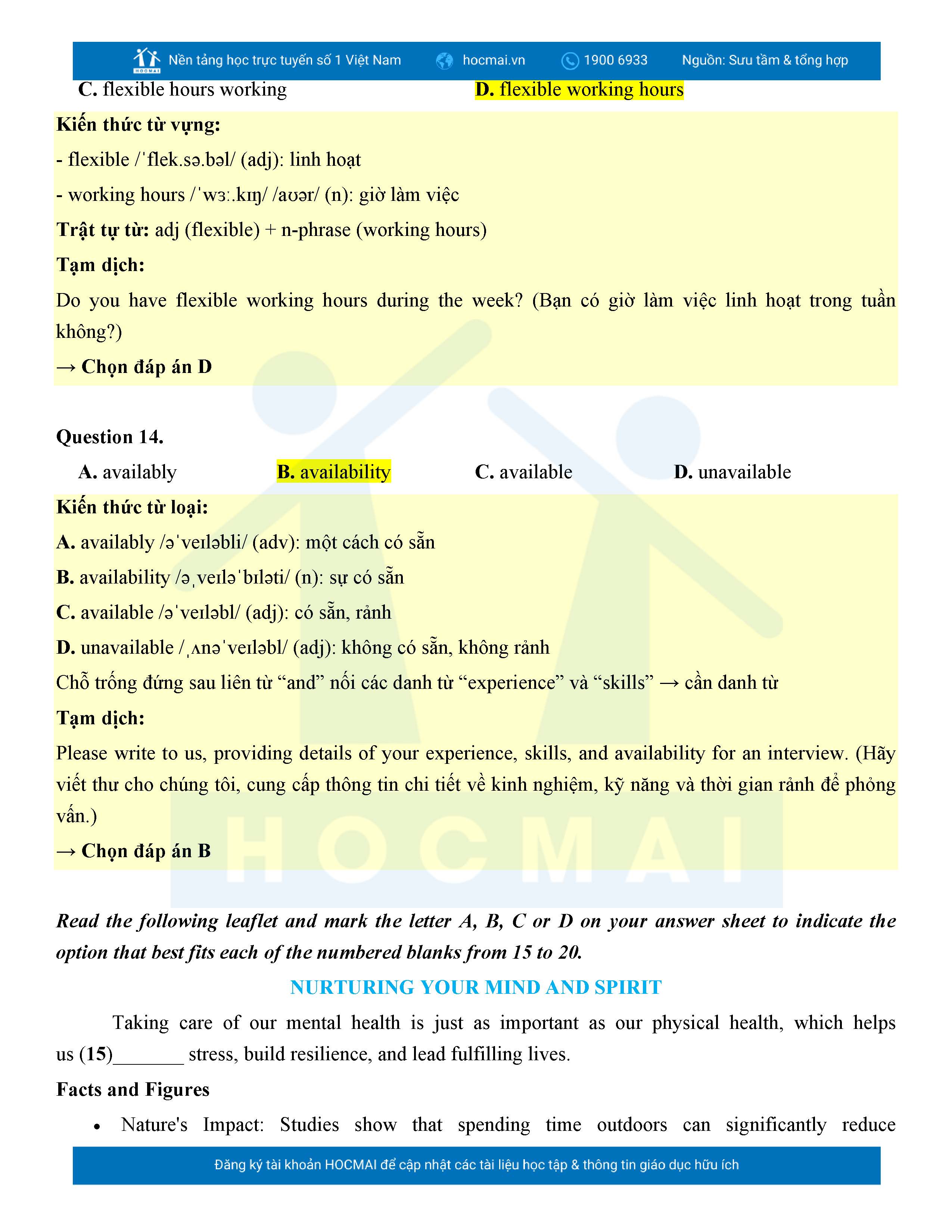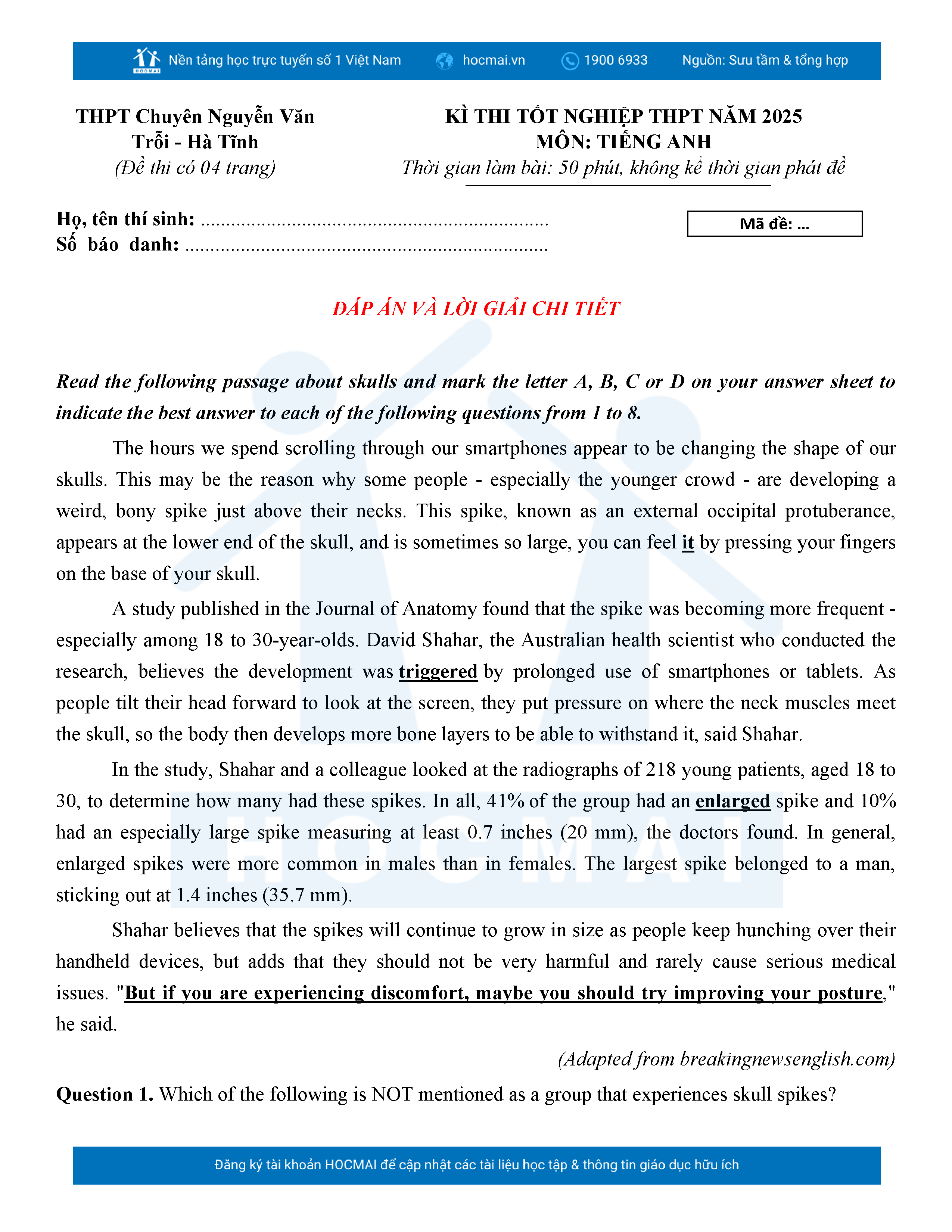 Đề thi thử tốt nghiệp 2025 Tiếng anh Chuyên Nguyễn Văn Trỗi giải chi tiết