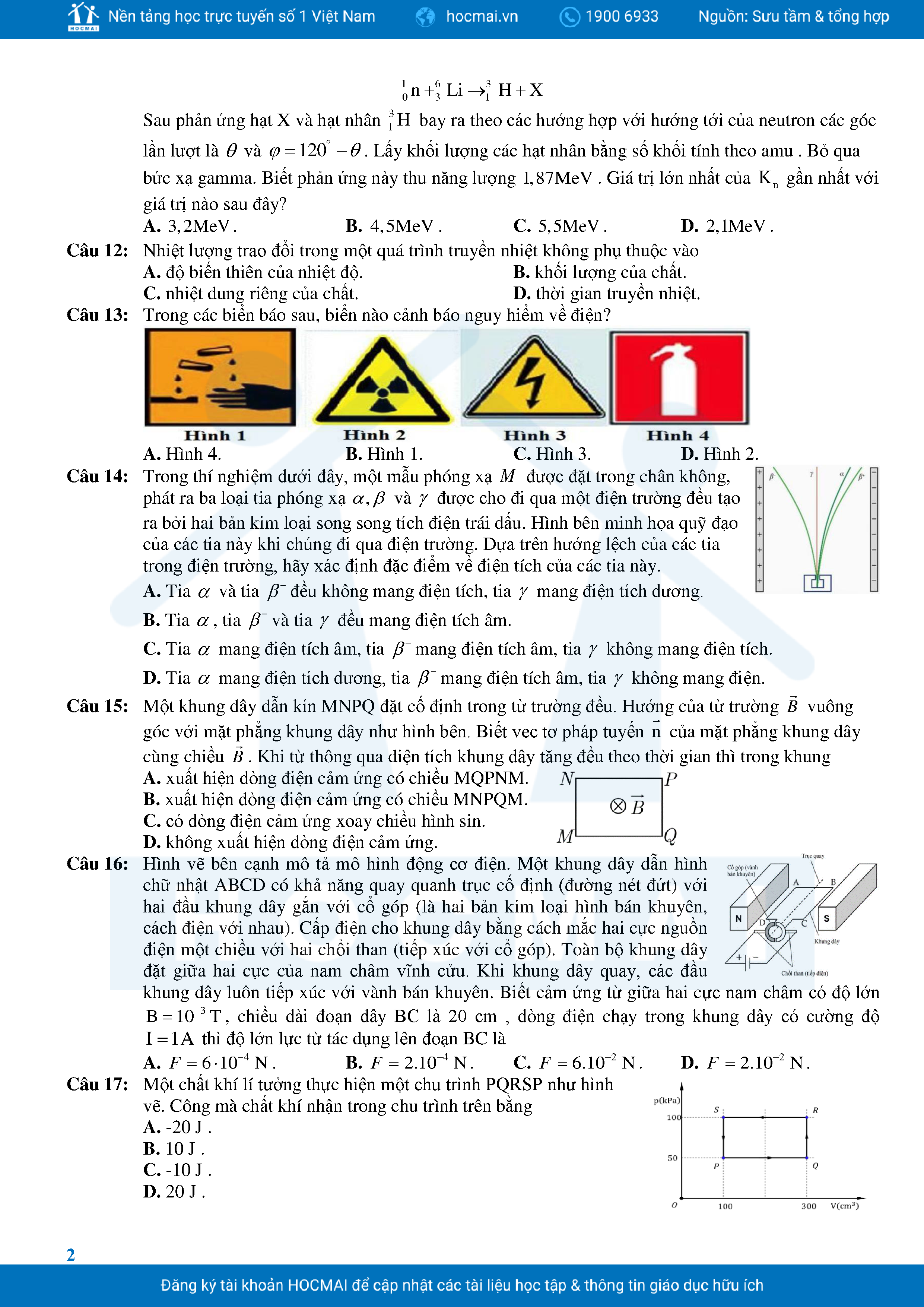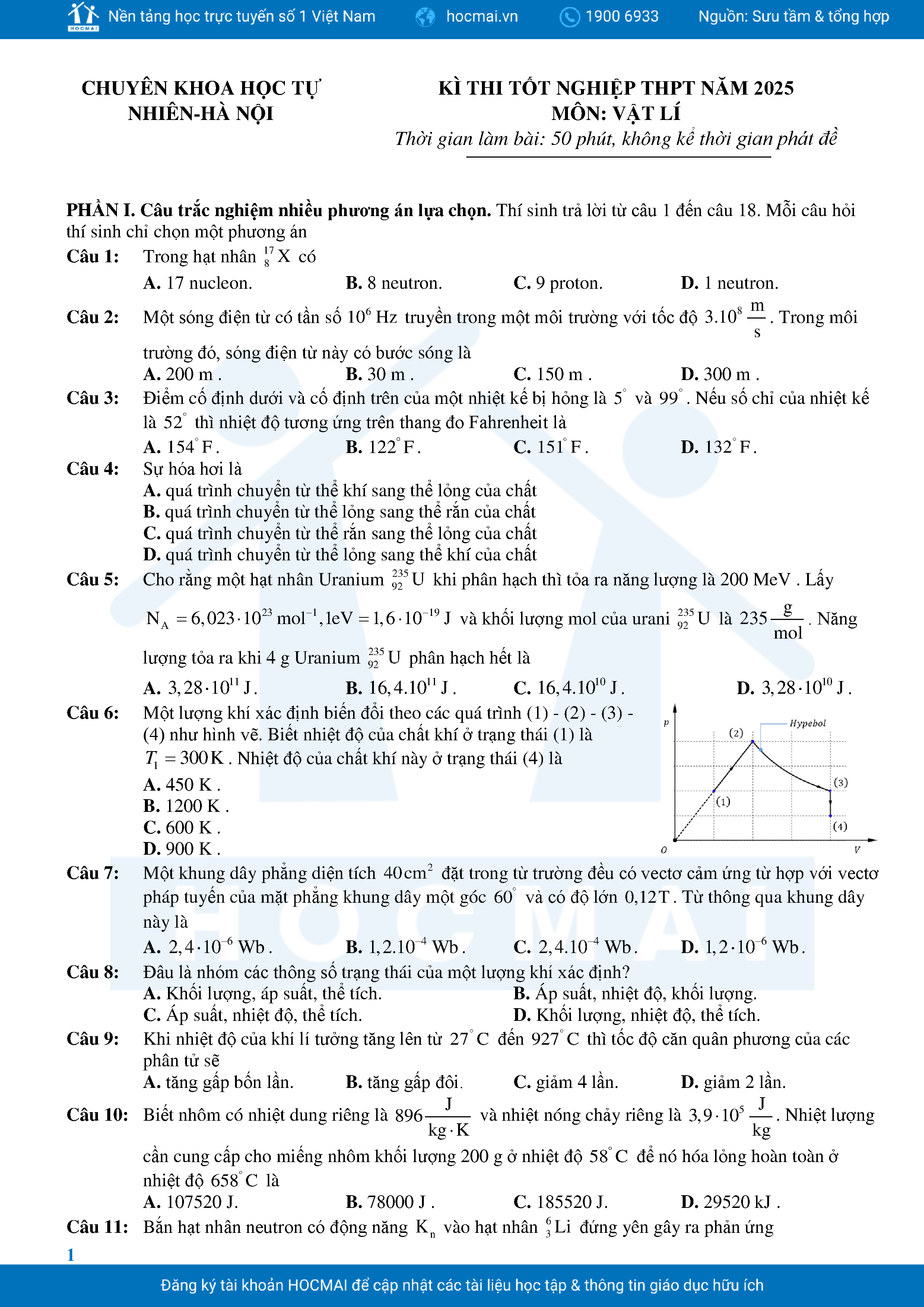 Đề Thi Thử Tốt Nghiệp 2025 Vật Lí Chuyên Khoa Học Tự Nhiên Hà Nội