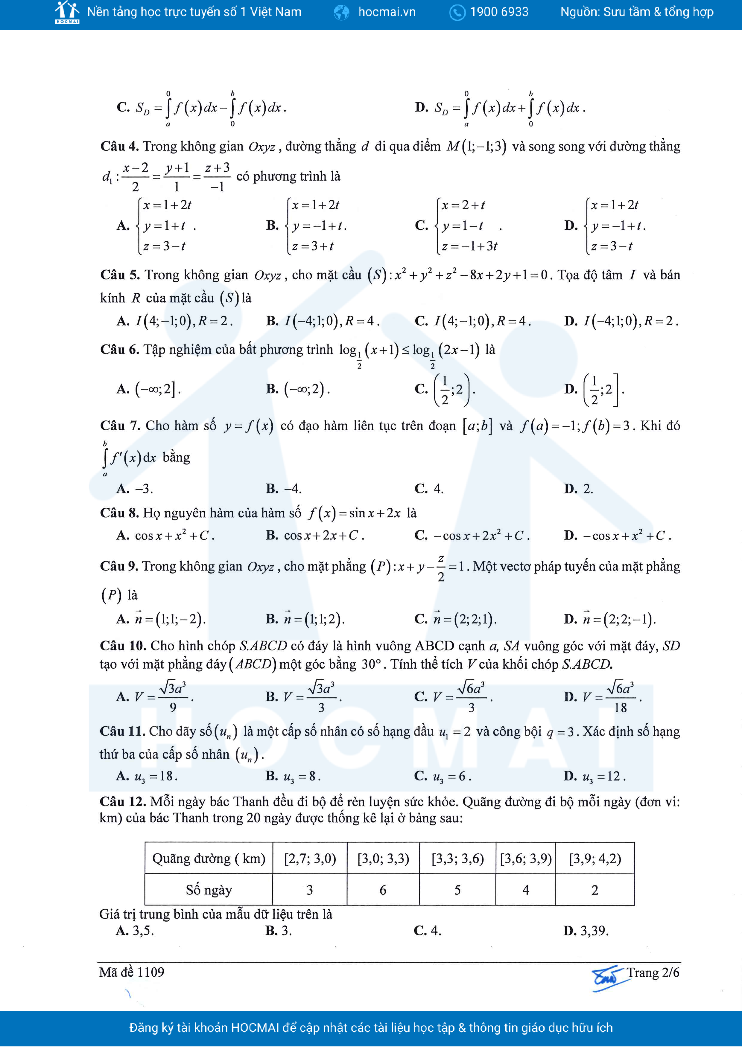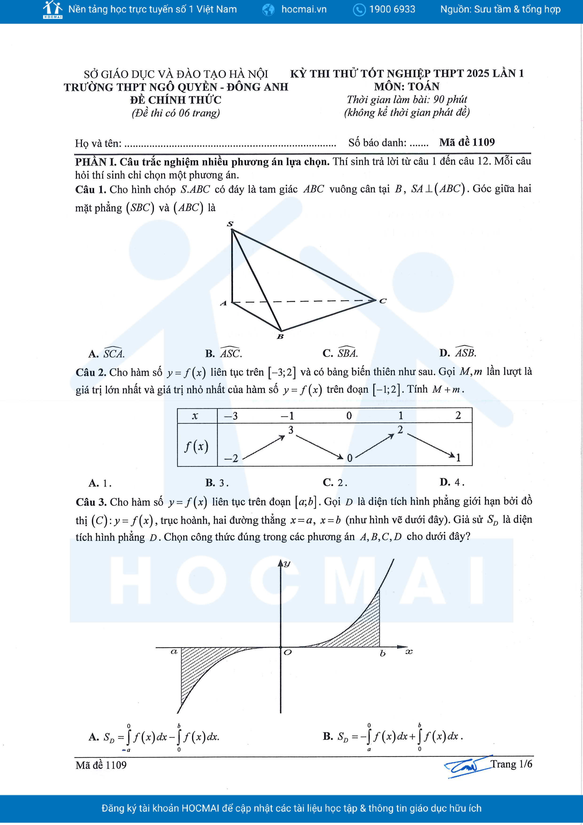 Đề thi thử TN THPT 2025 môn Toán lần 1 trường THPT Ngô Quyền – Hà Nội