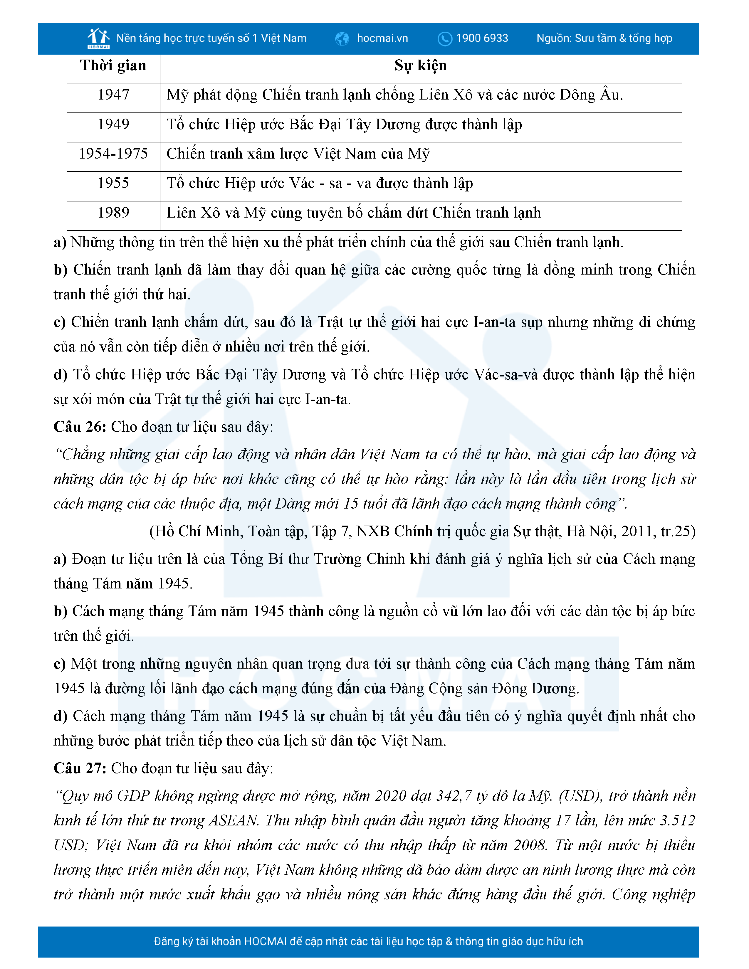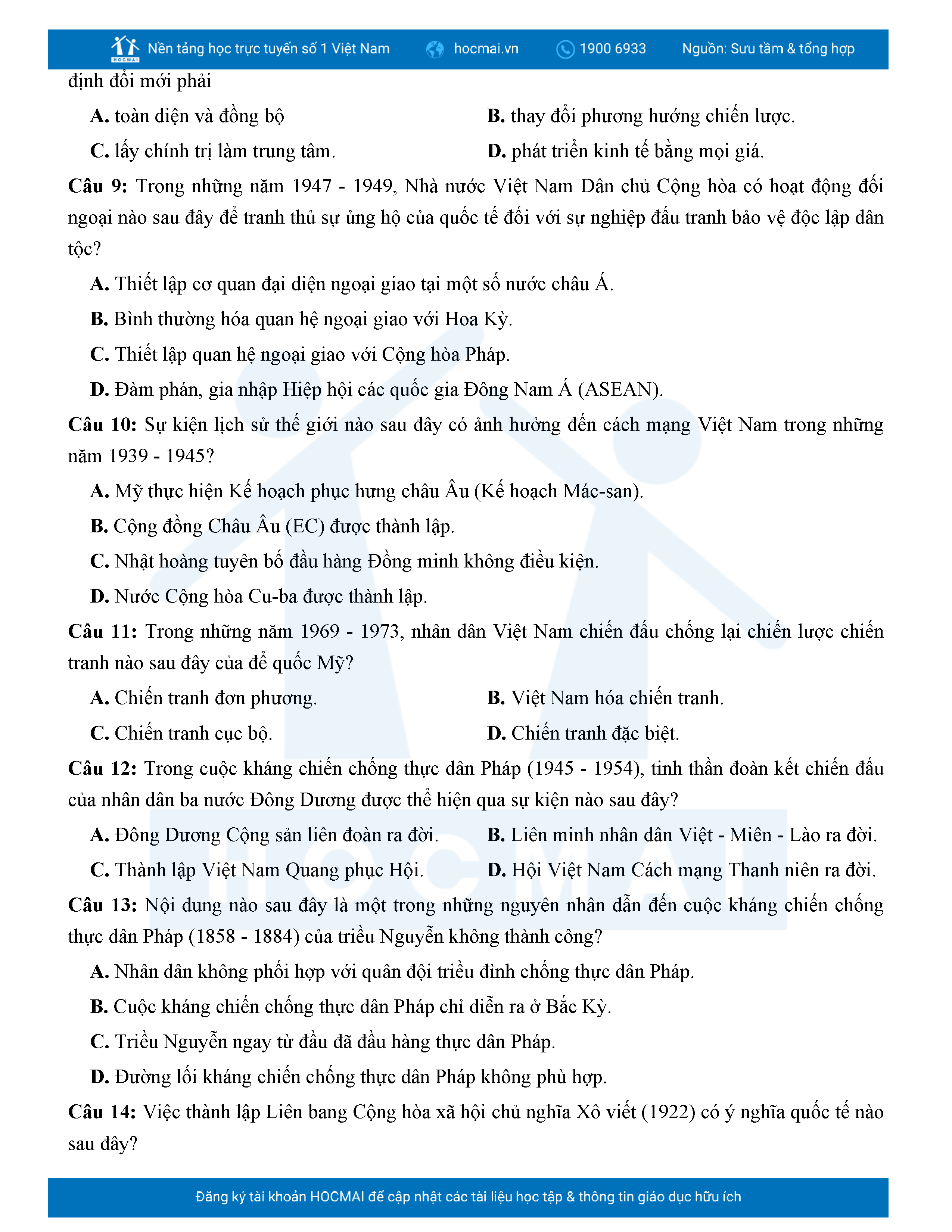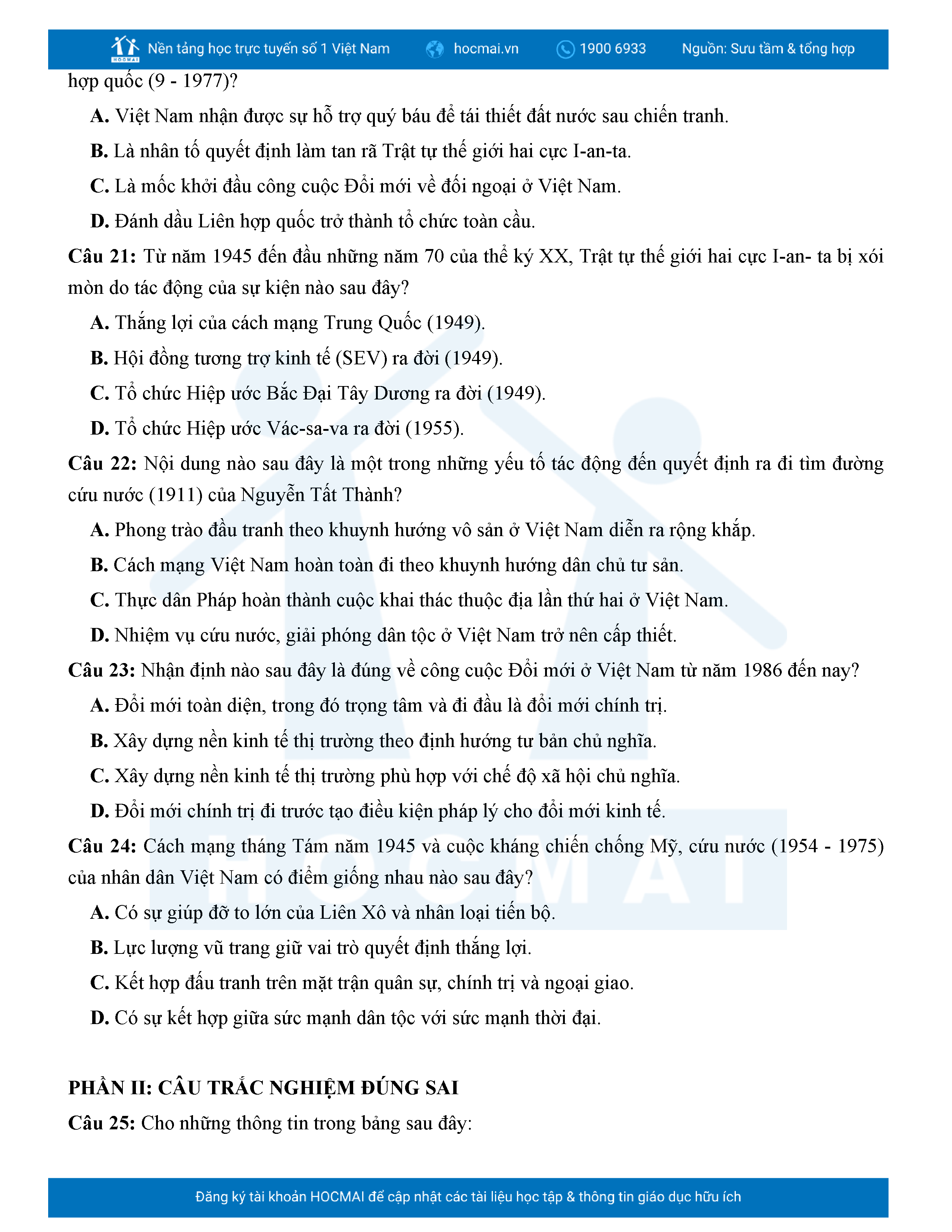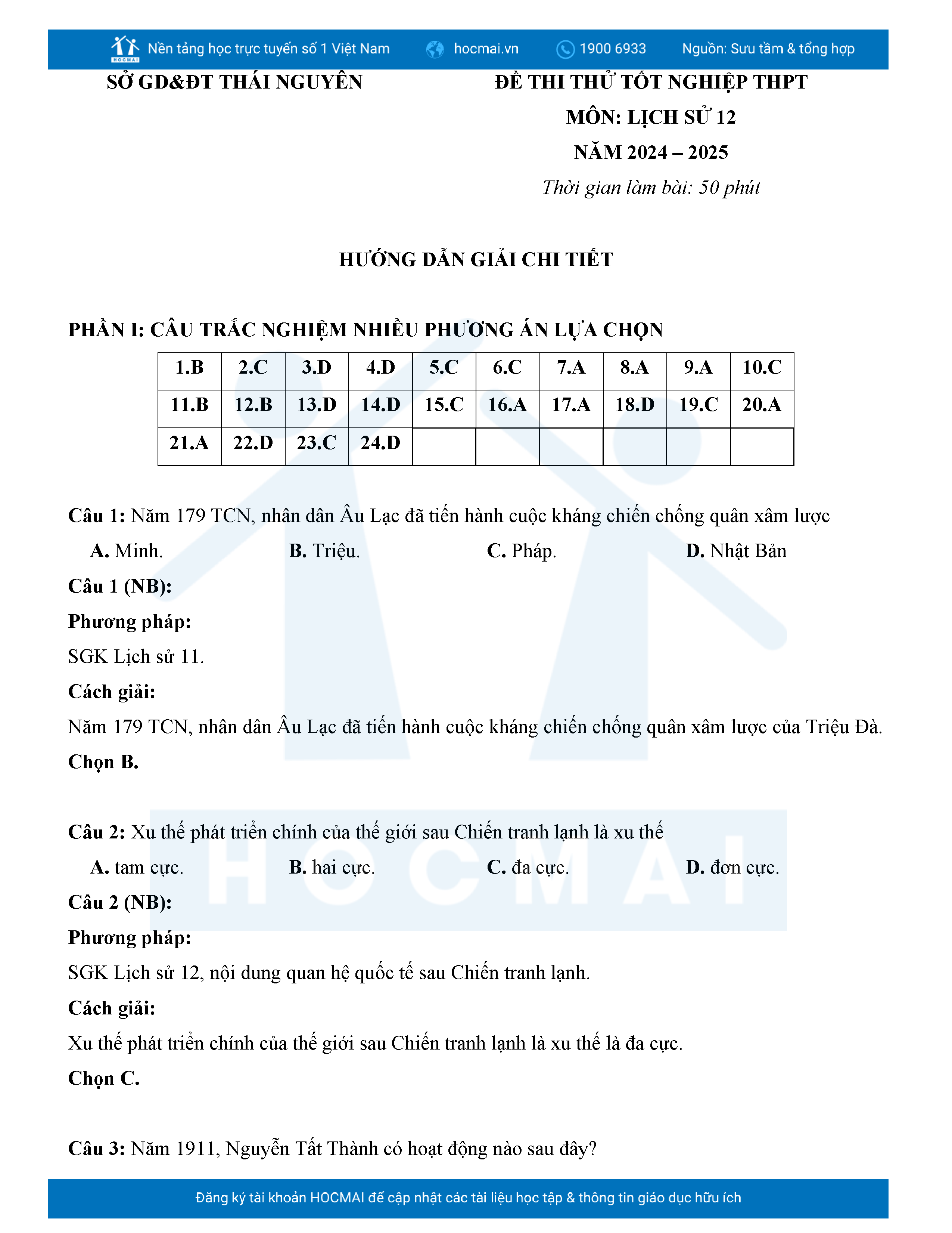 Đề thi thử tốt nghiệp 2025 Lịch sử Sở GD Thái Nguyên kèm đáp án