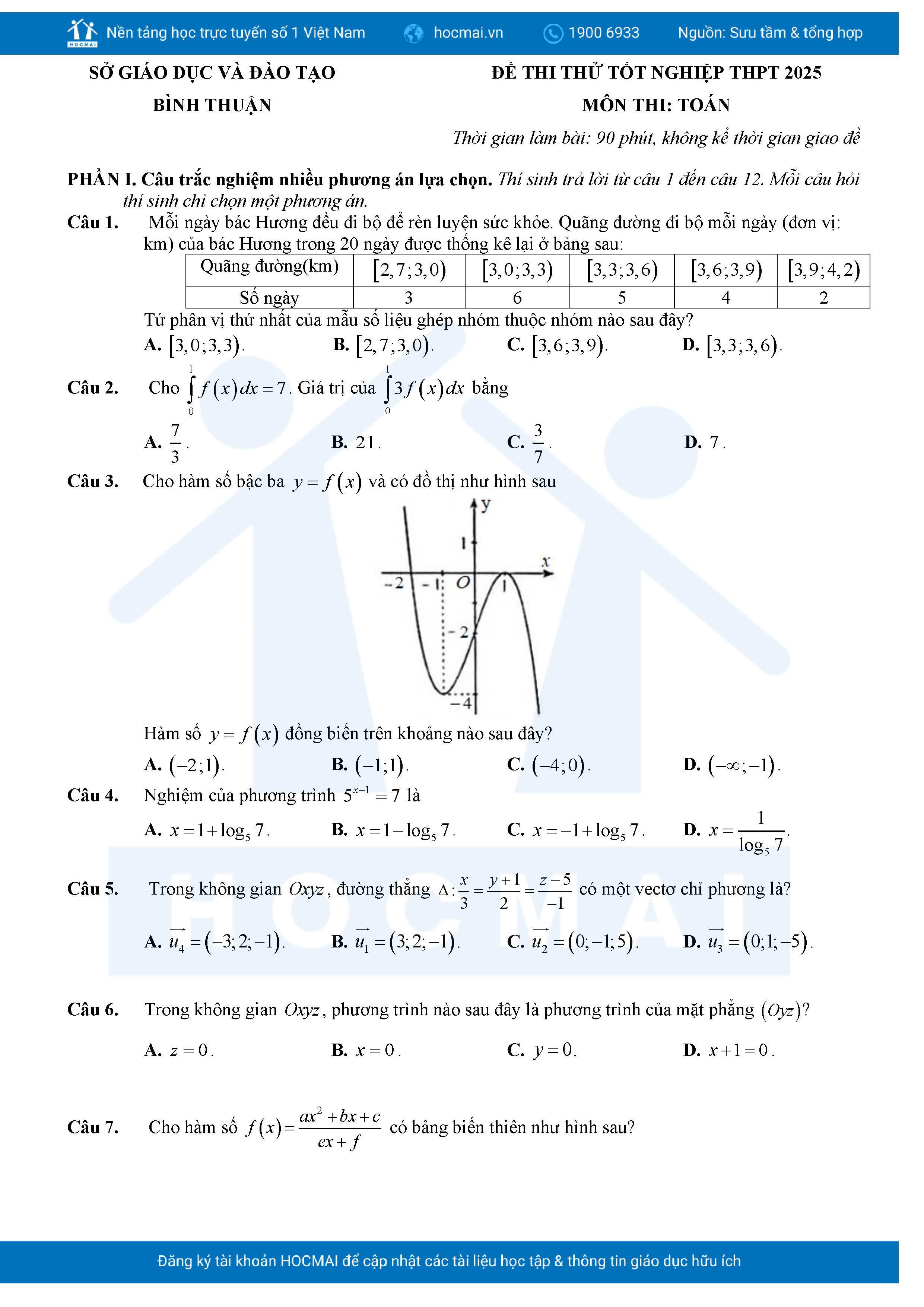 Đề thi thử tốt nghiệp 2025 môn Toán Sở GD Bình Thuận kèm giải chi tiết