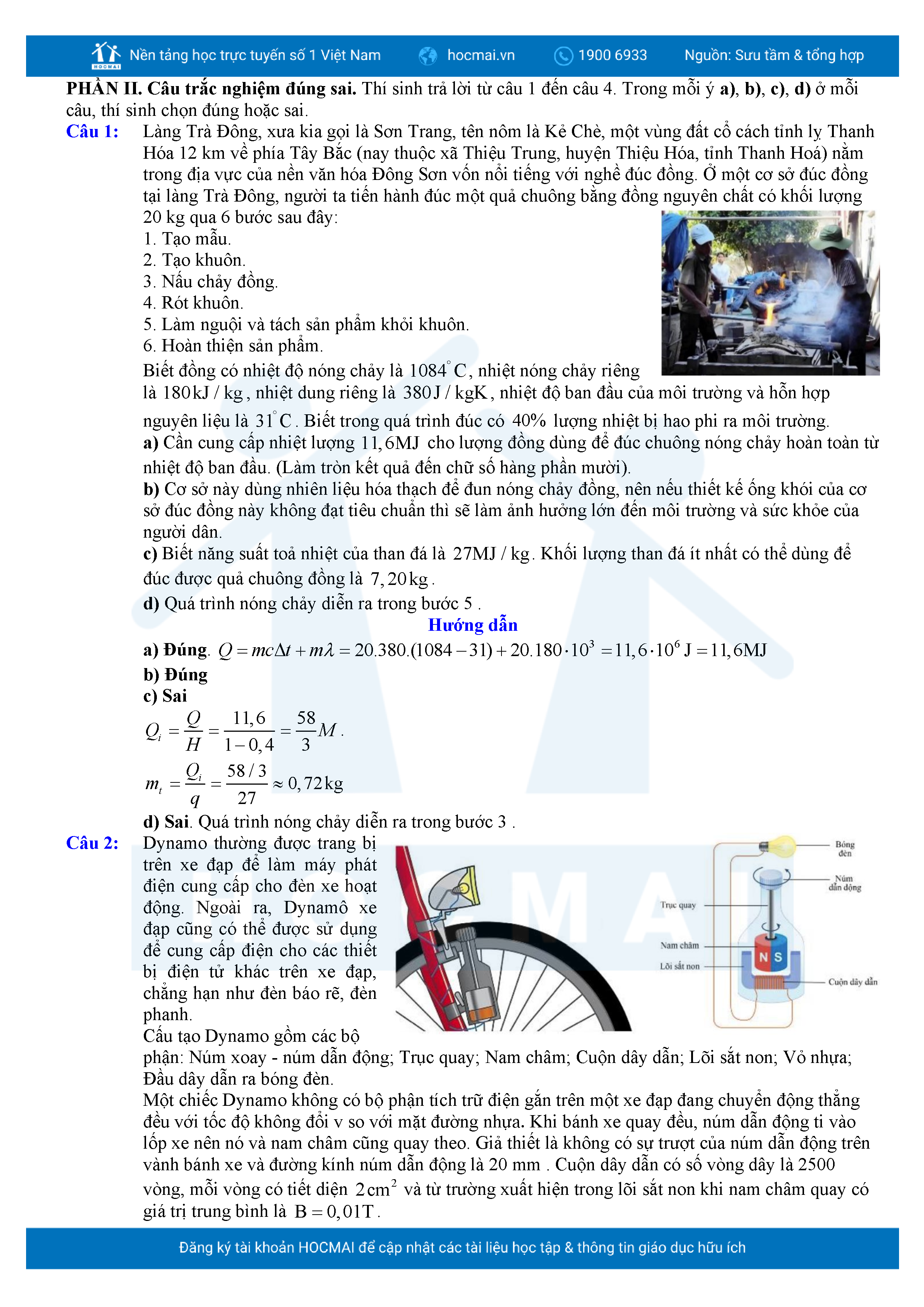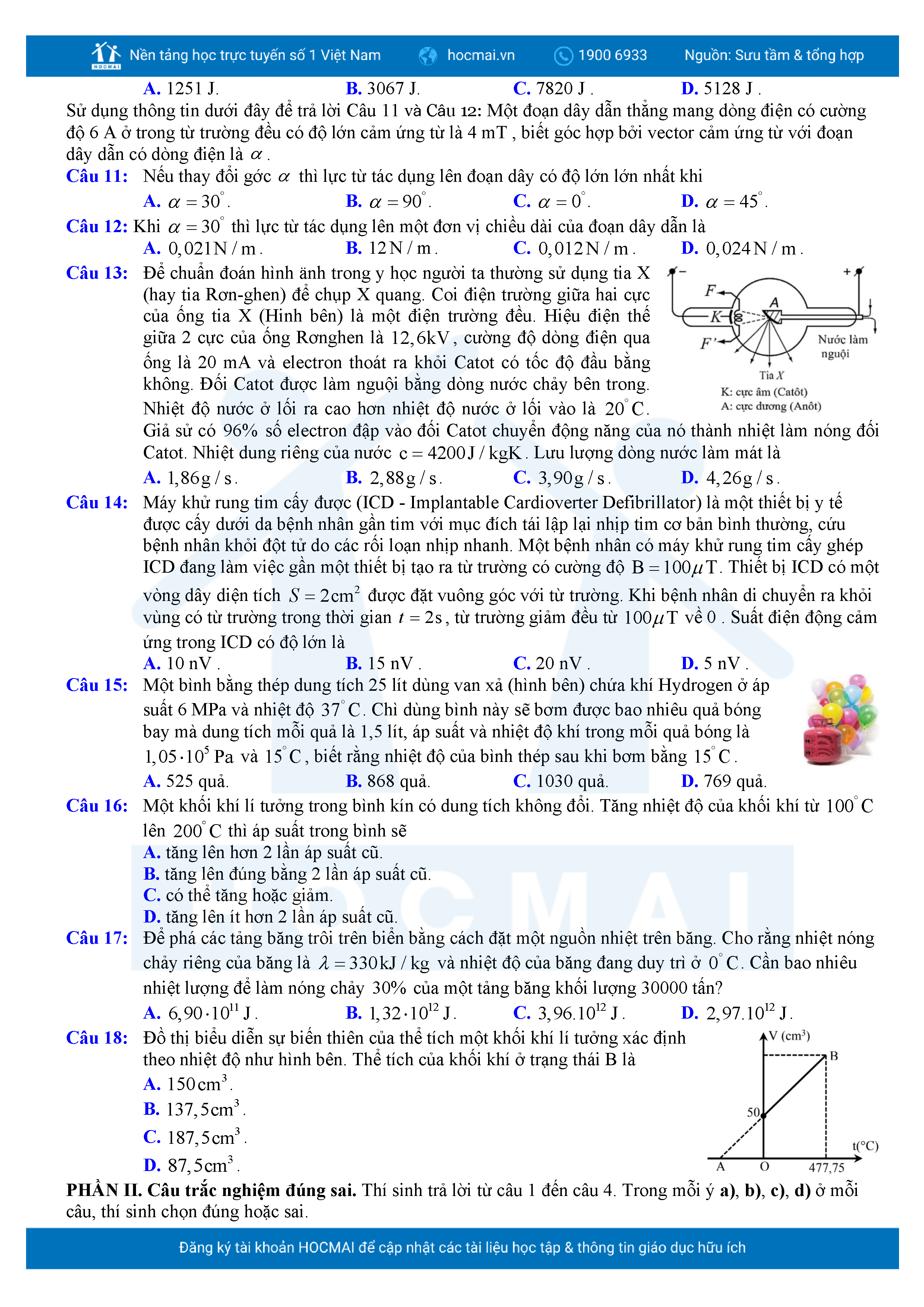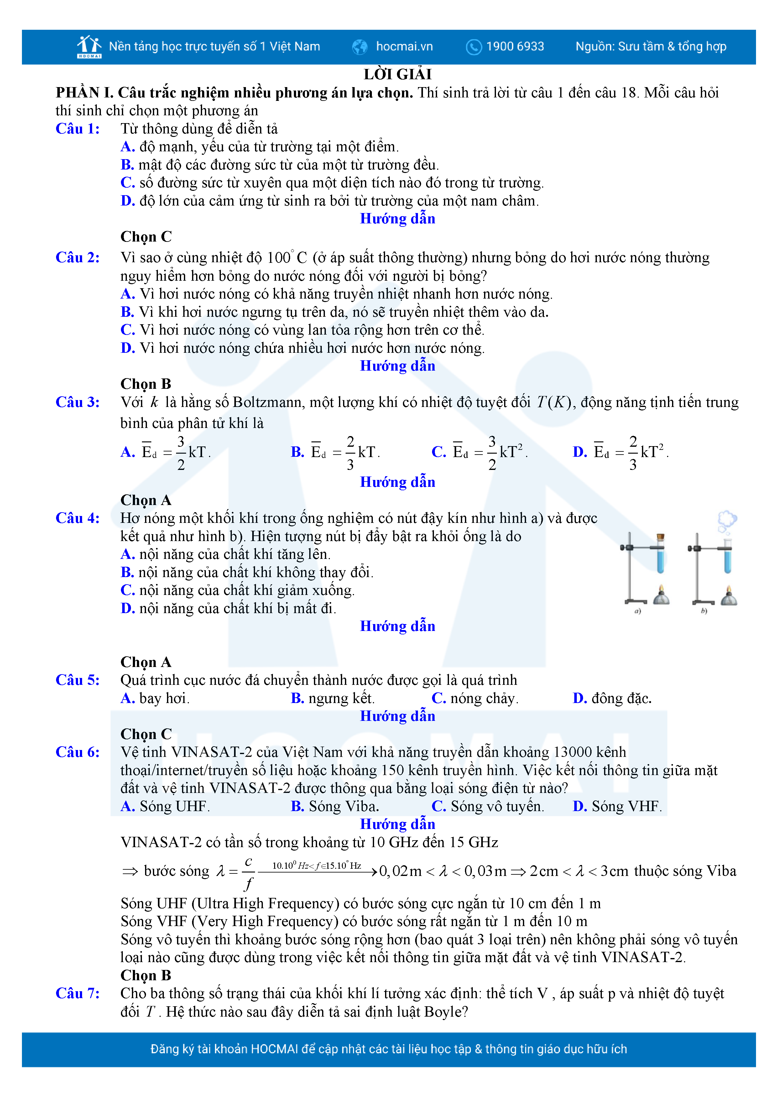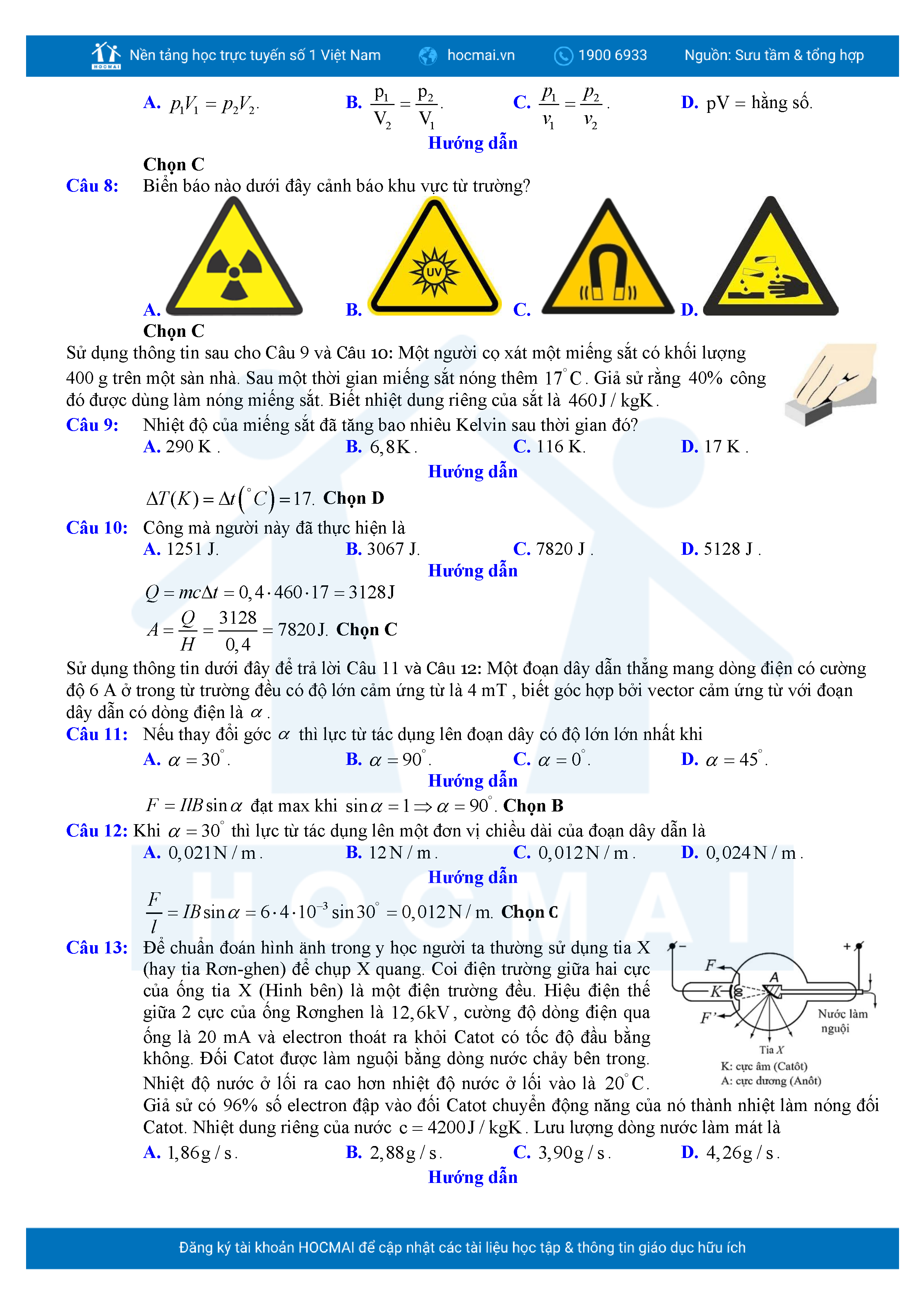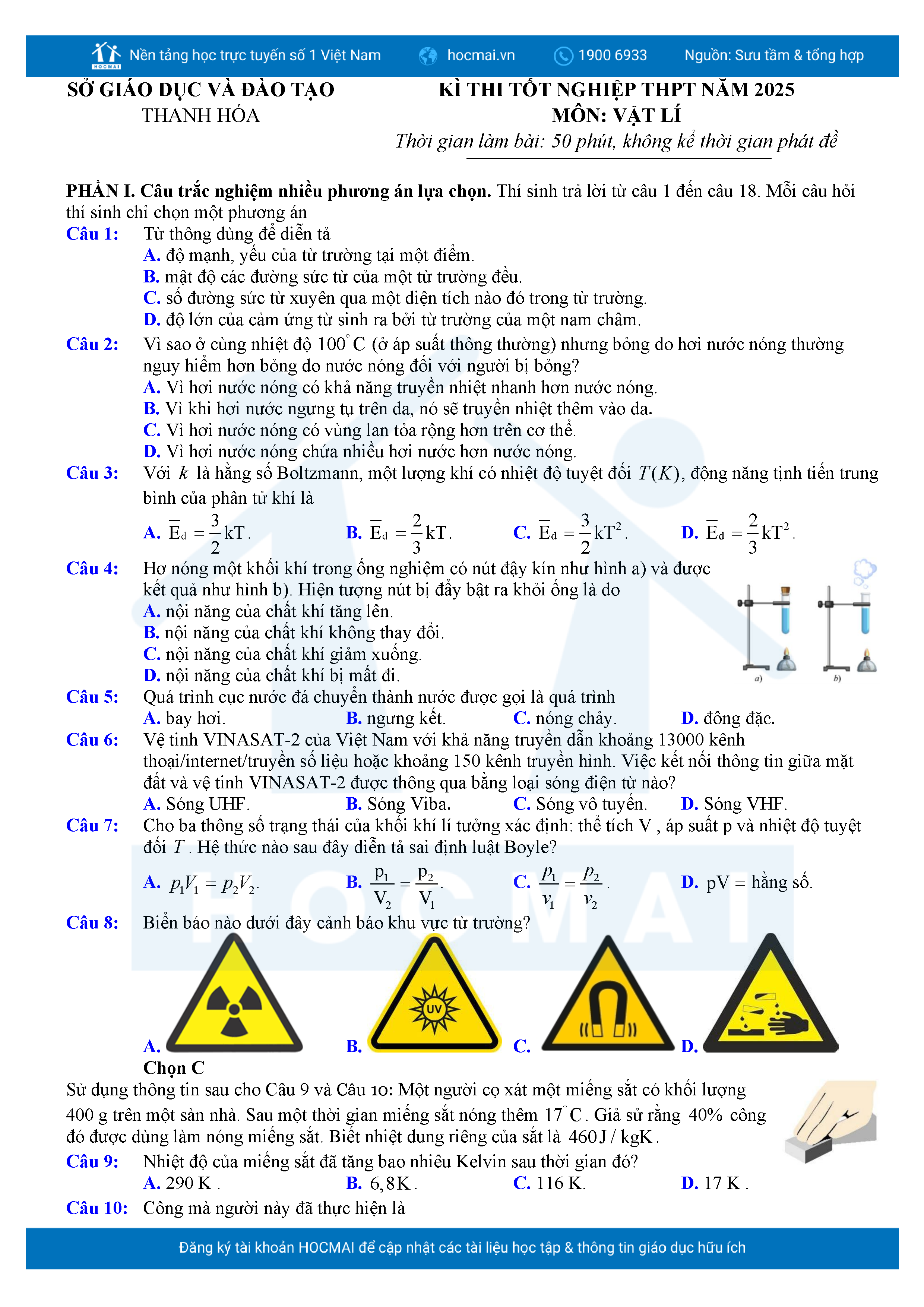 Đề thi thử tốt nghiệp 2025 Vật lí Sở GD Thanh Hóa giải chi tiết