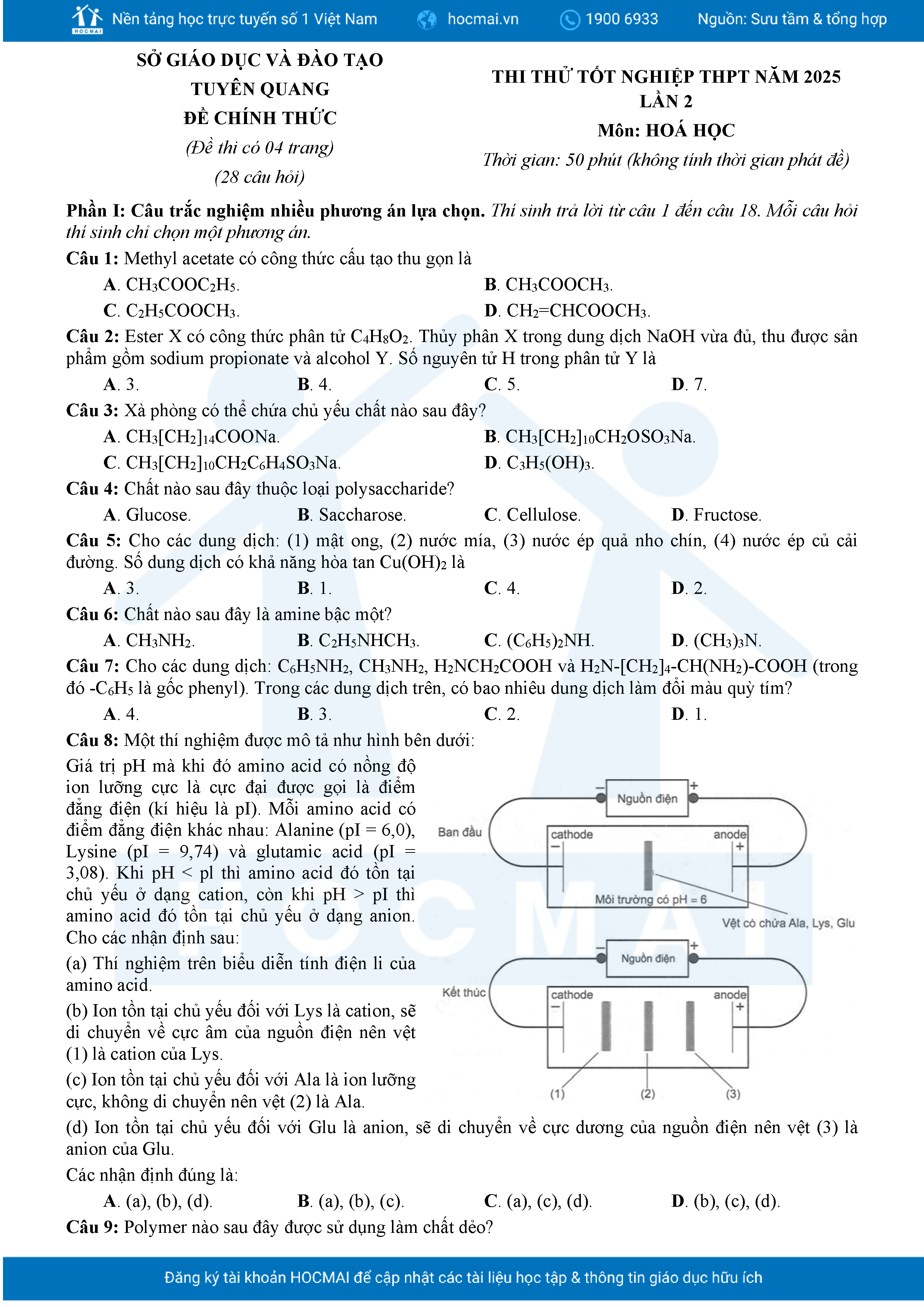 Đề ôn thi tốt nghiệp 2025 môn Hóa Sở GD Tuyên Quang lần 2 kèm giải chi tiết