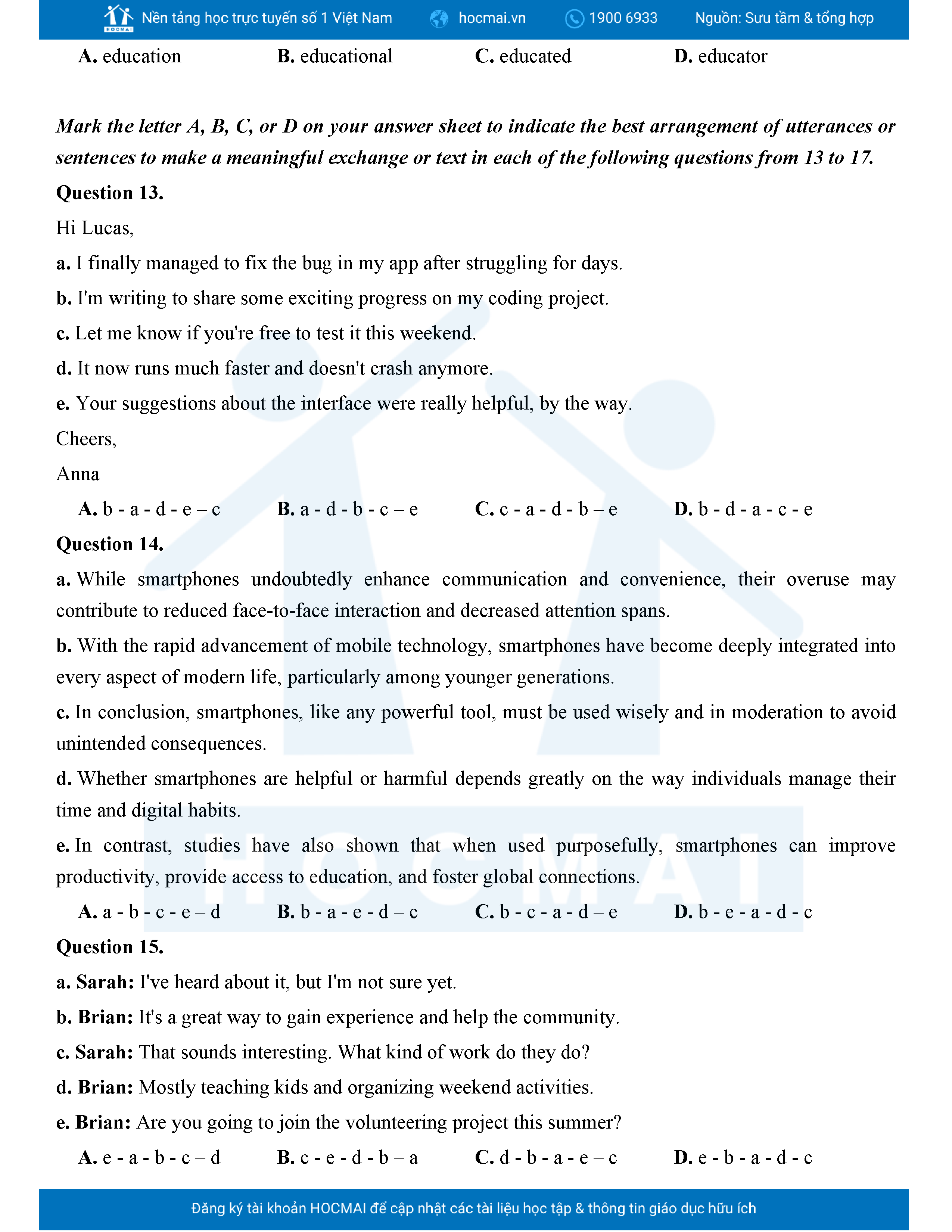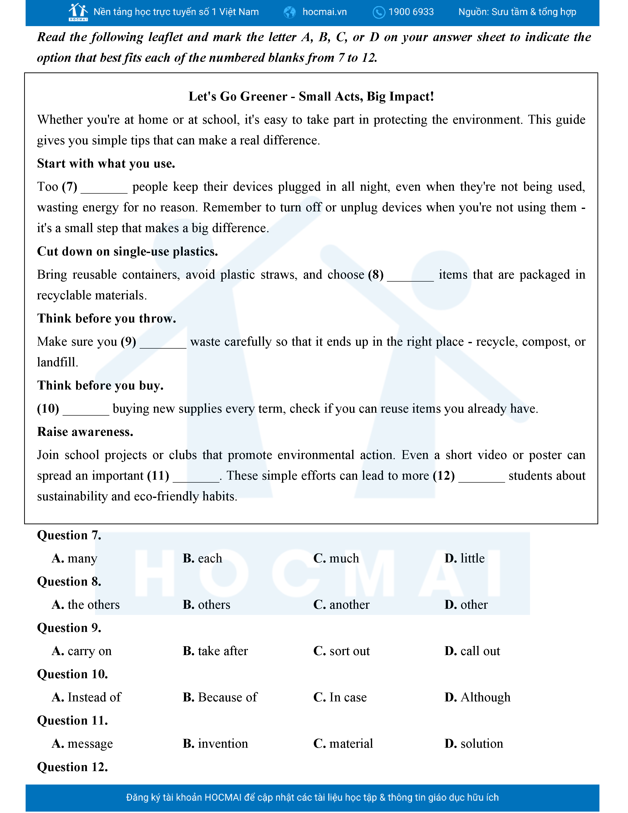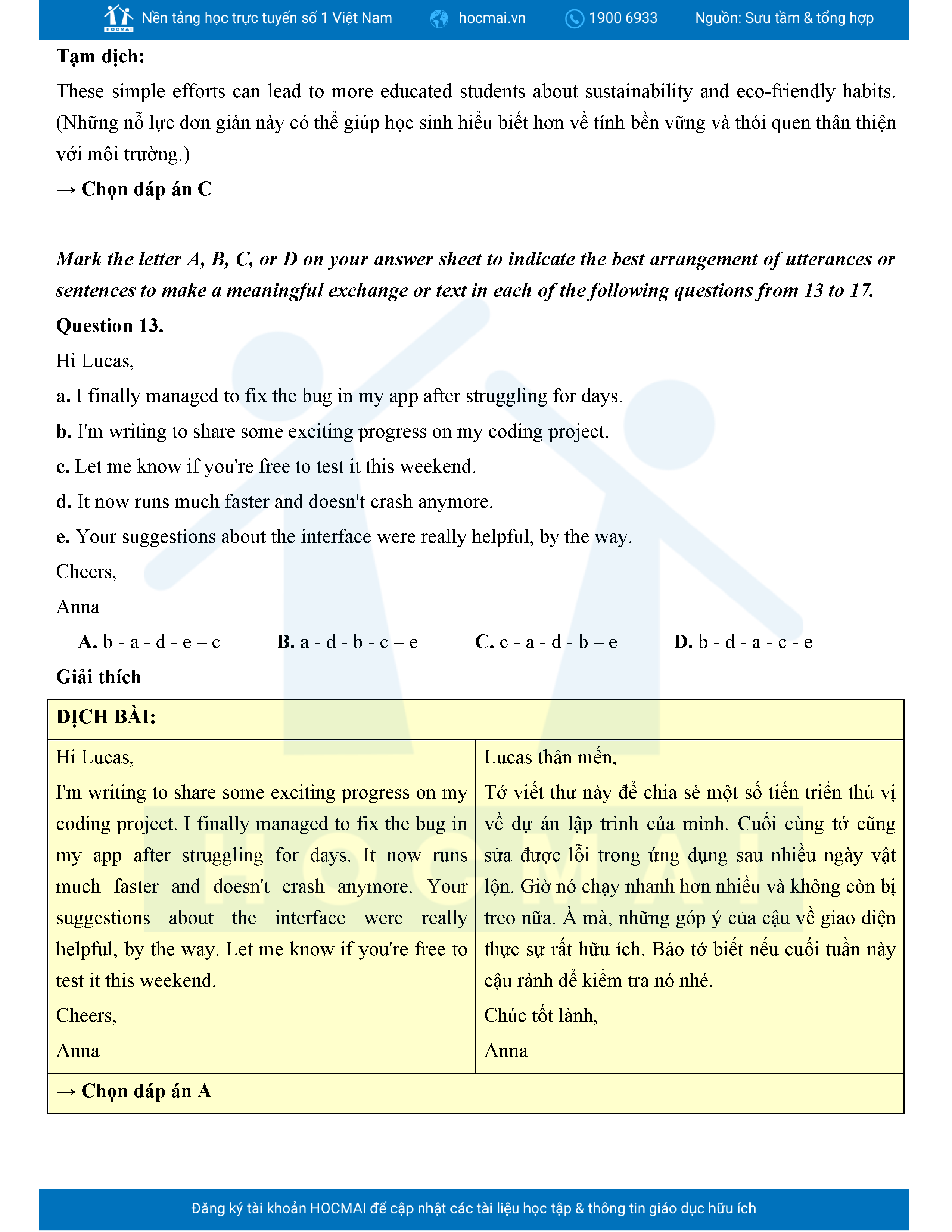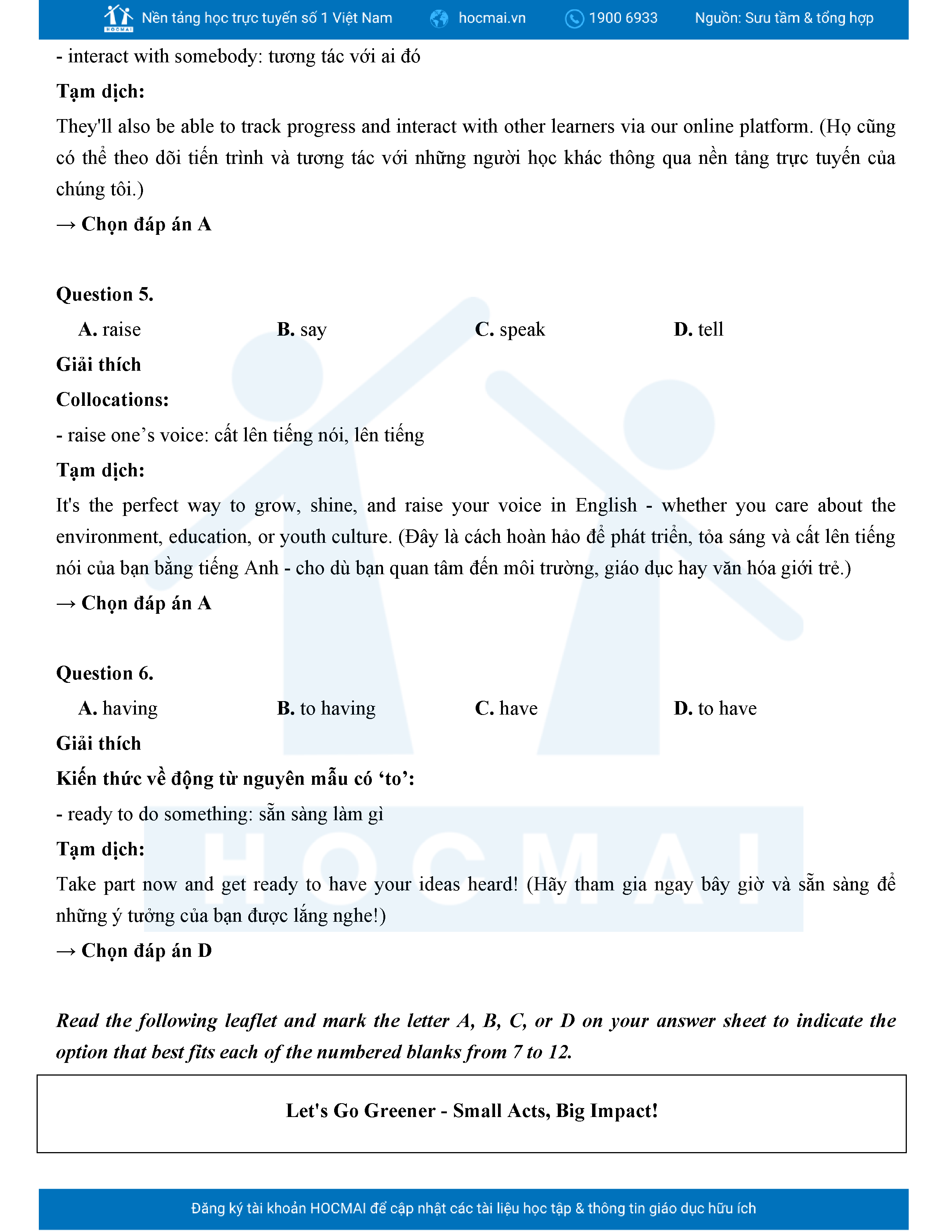 Đề thi thử tốt nghiệp 2025 Tiếng anh Sở GD Hà Tĩnh giải chi tiết