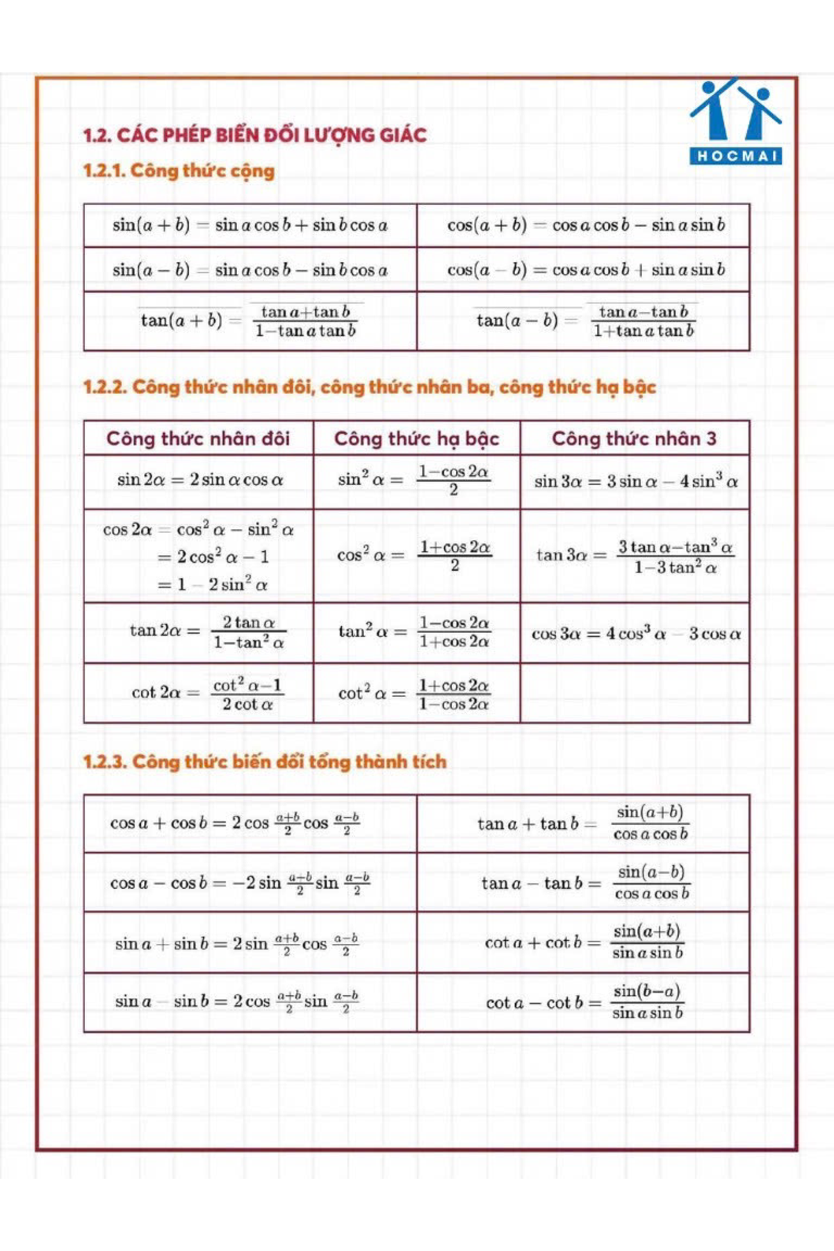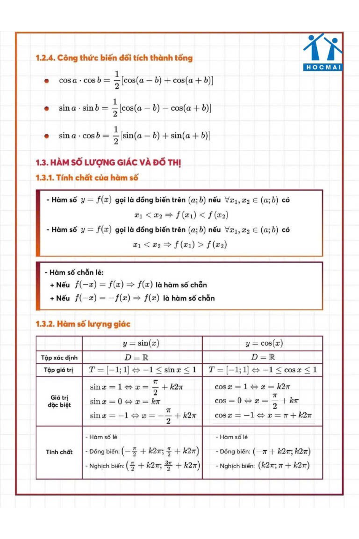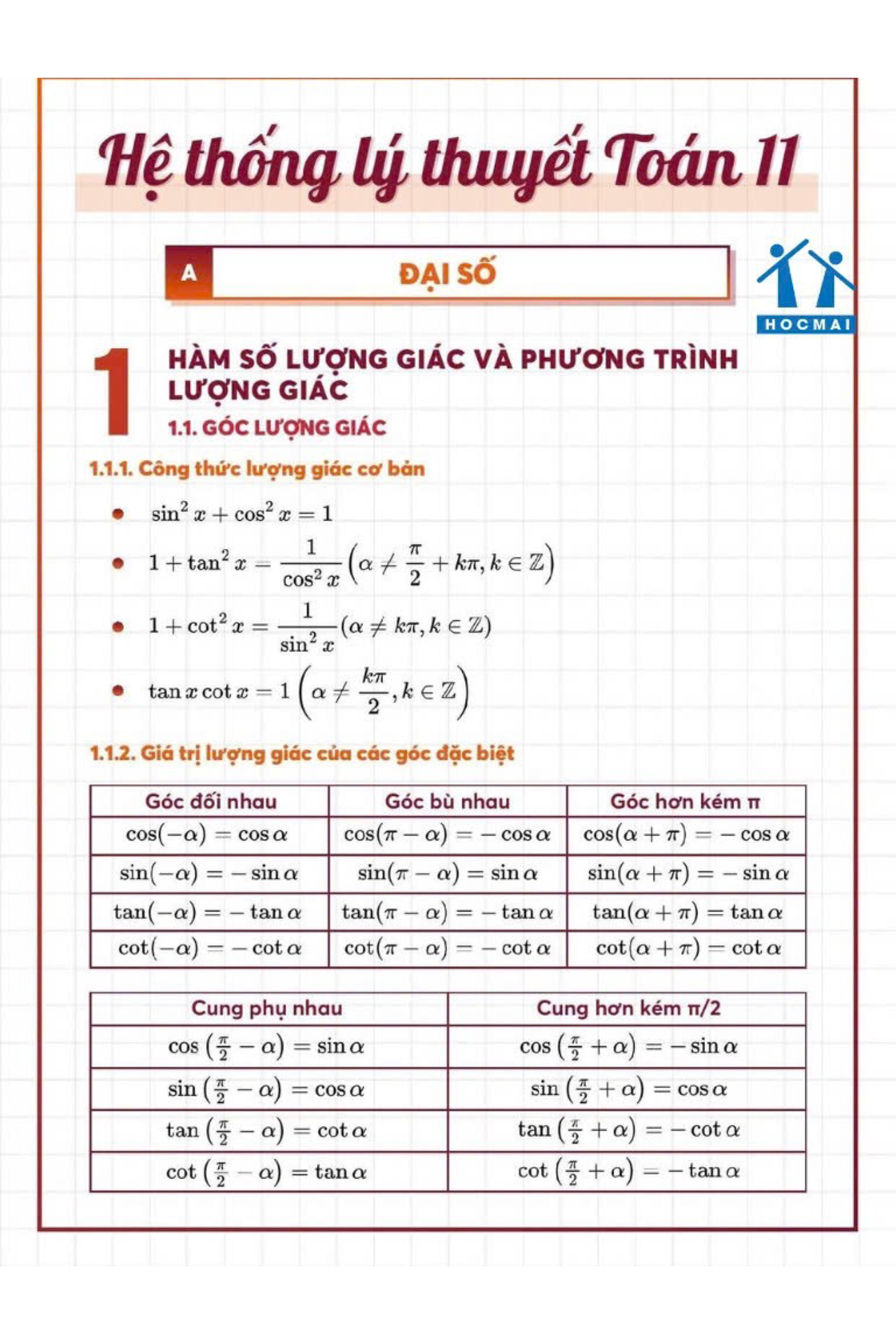 Hệ thống lý thuyết phần đại số toán 11 HKI