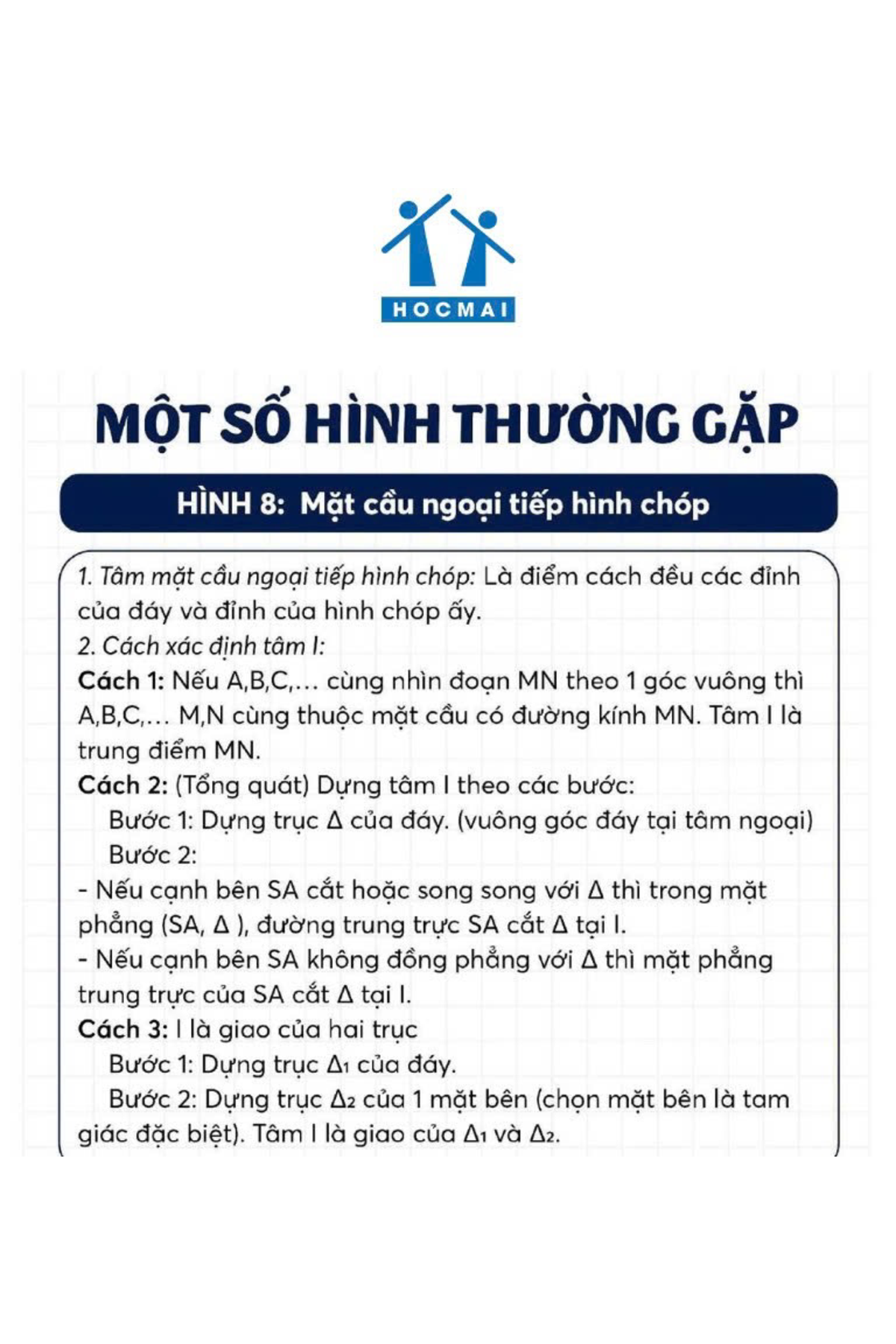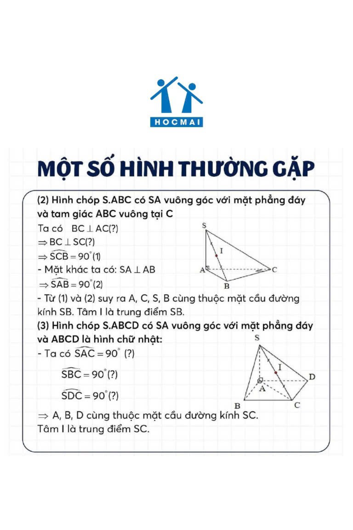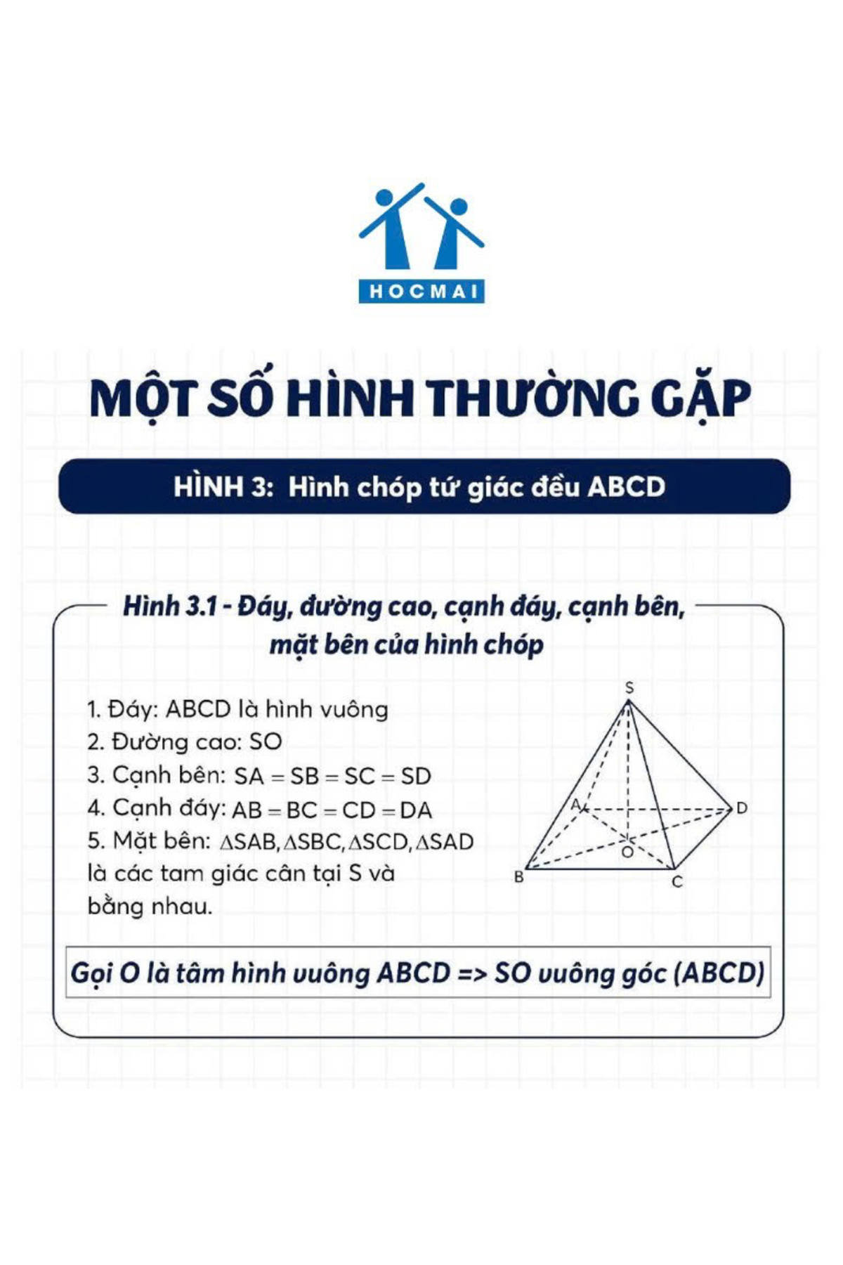 Một số hình học không gian thường gặp và công thức cần nhớ