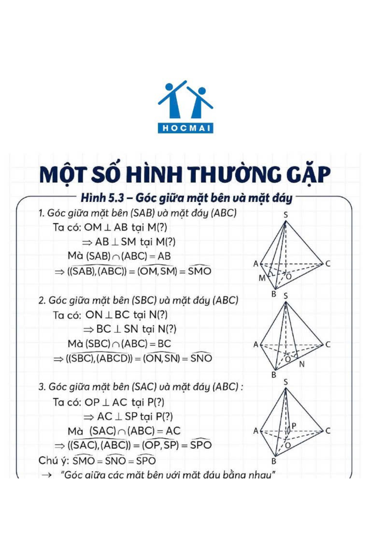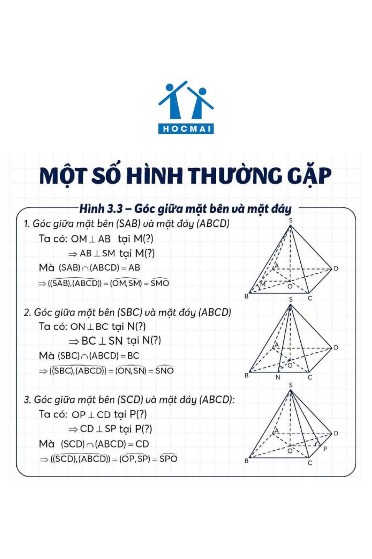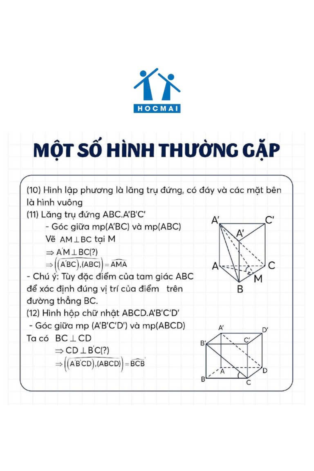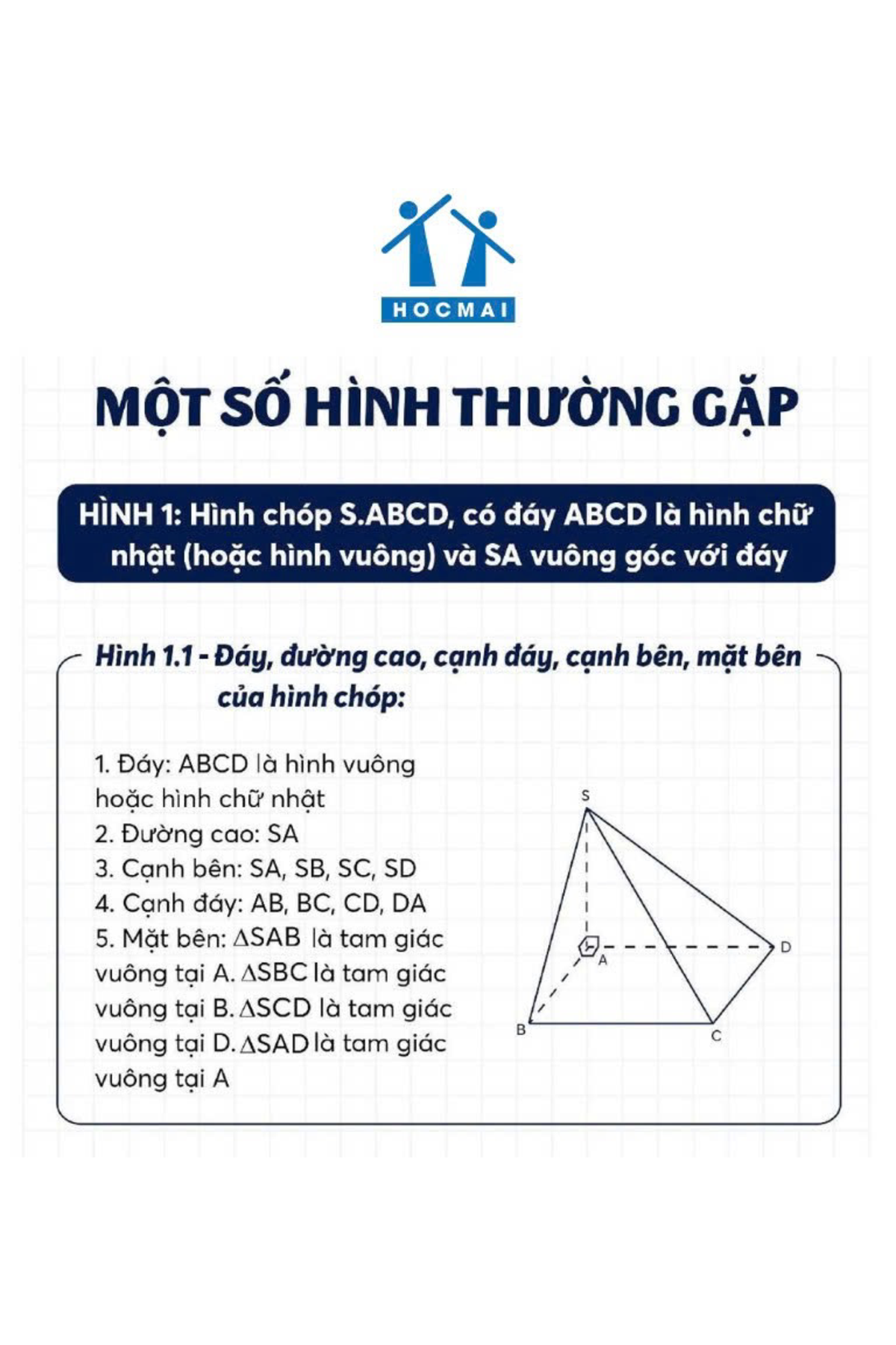Một số hình học không gian thường gặp và công thức cần nhớ