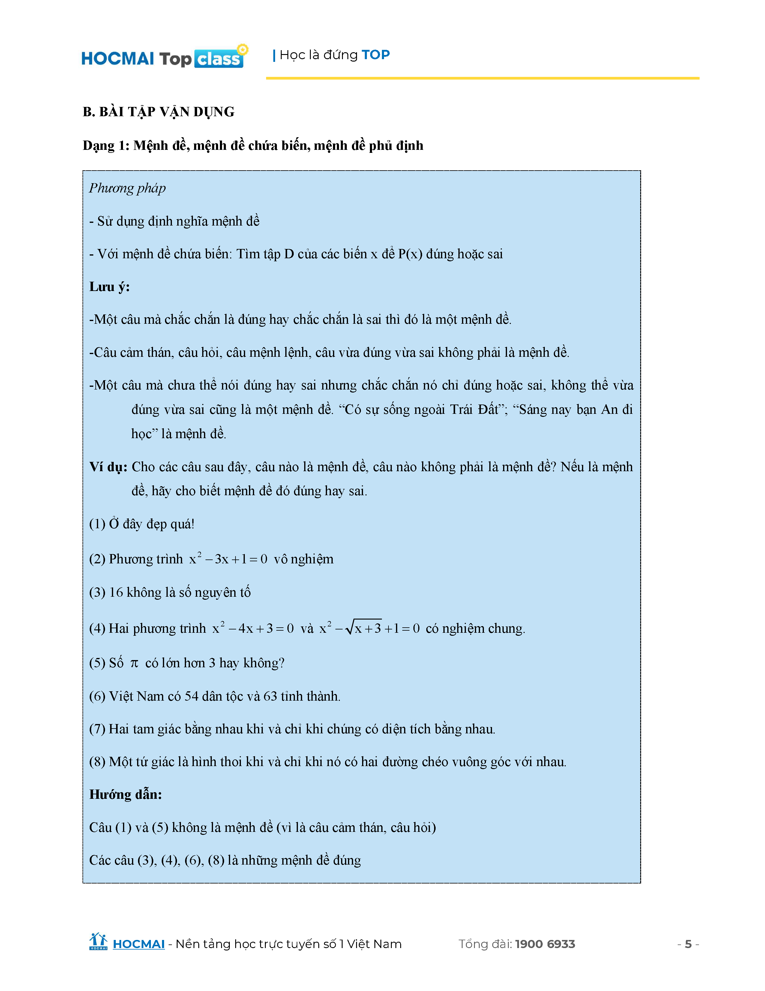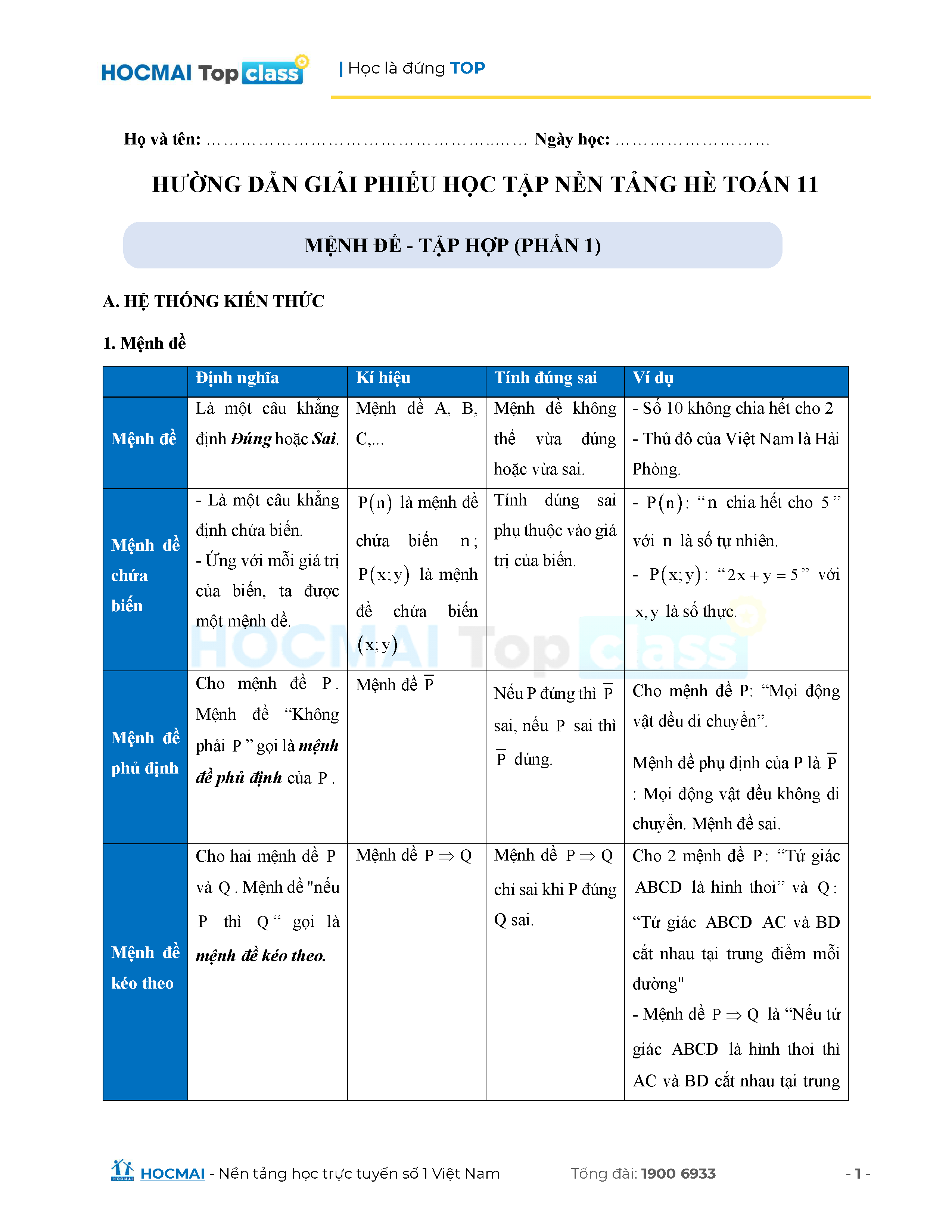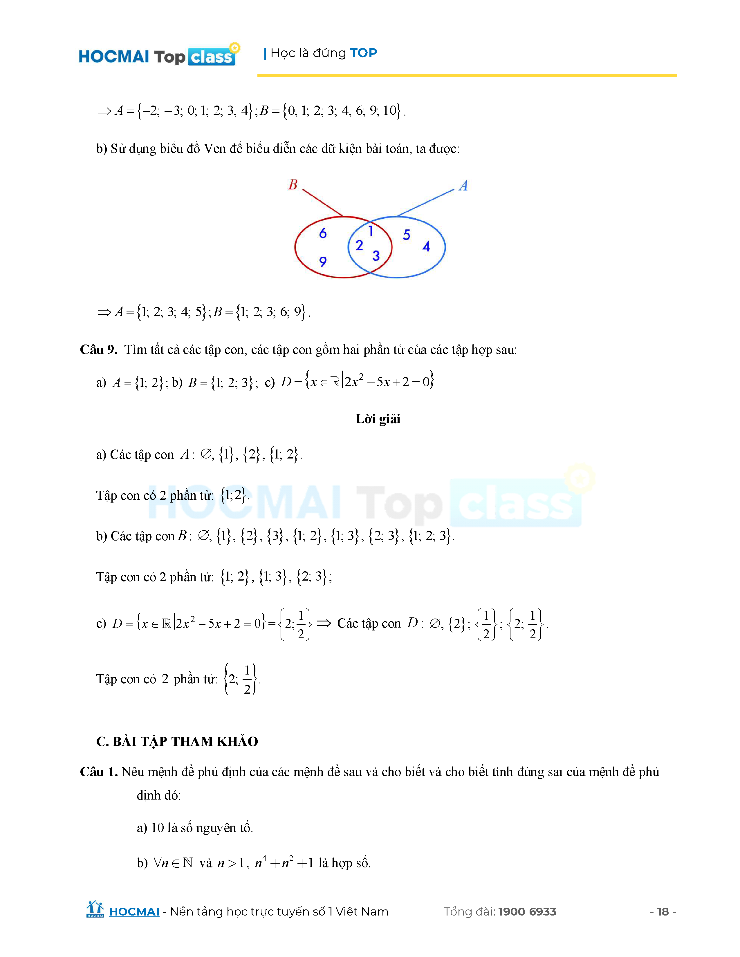 Ôn tập: Mênh đề. Tập hợp (Phần 1) - Hướng dẫn giải