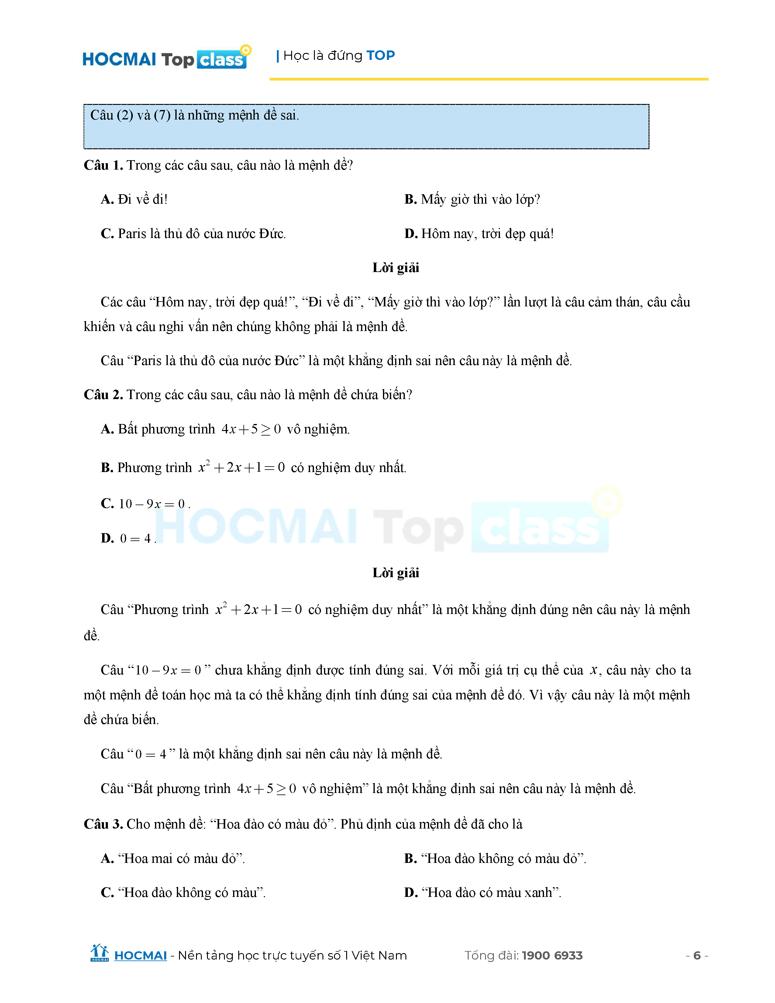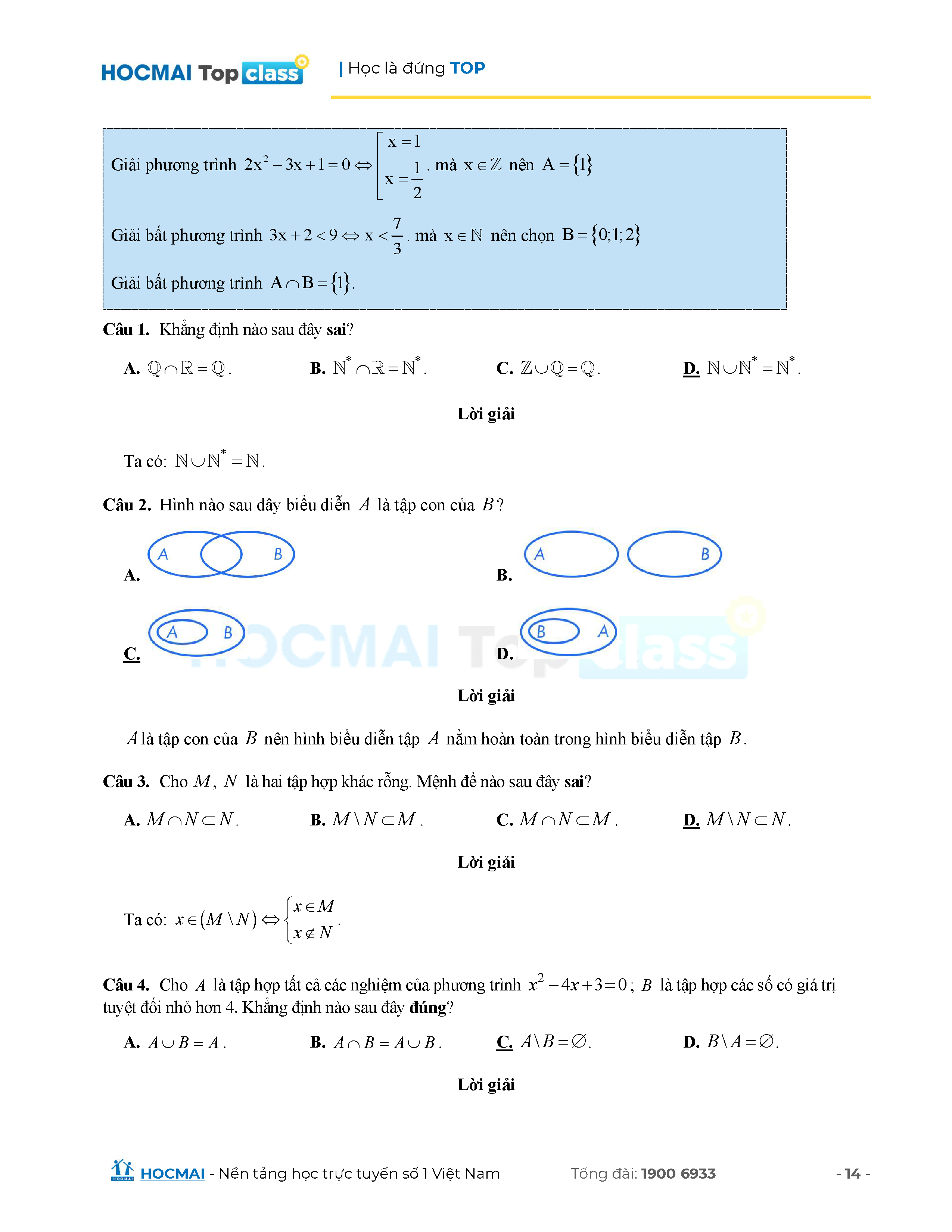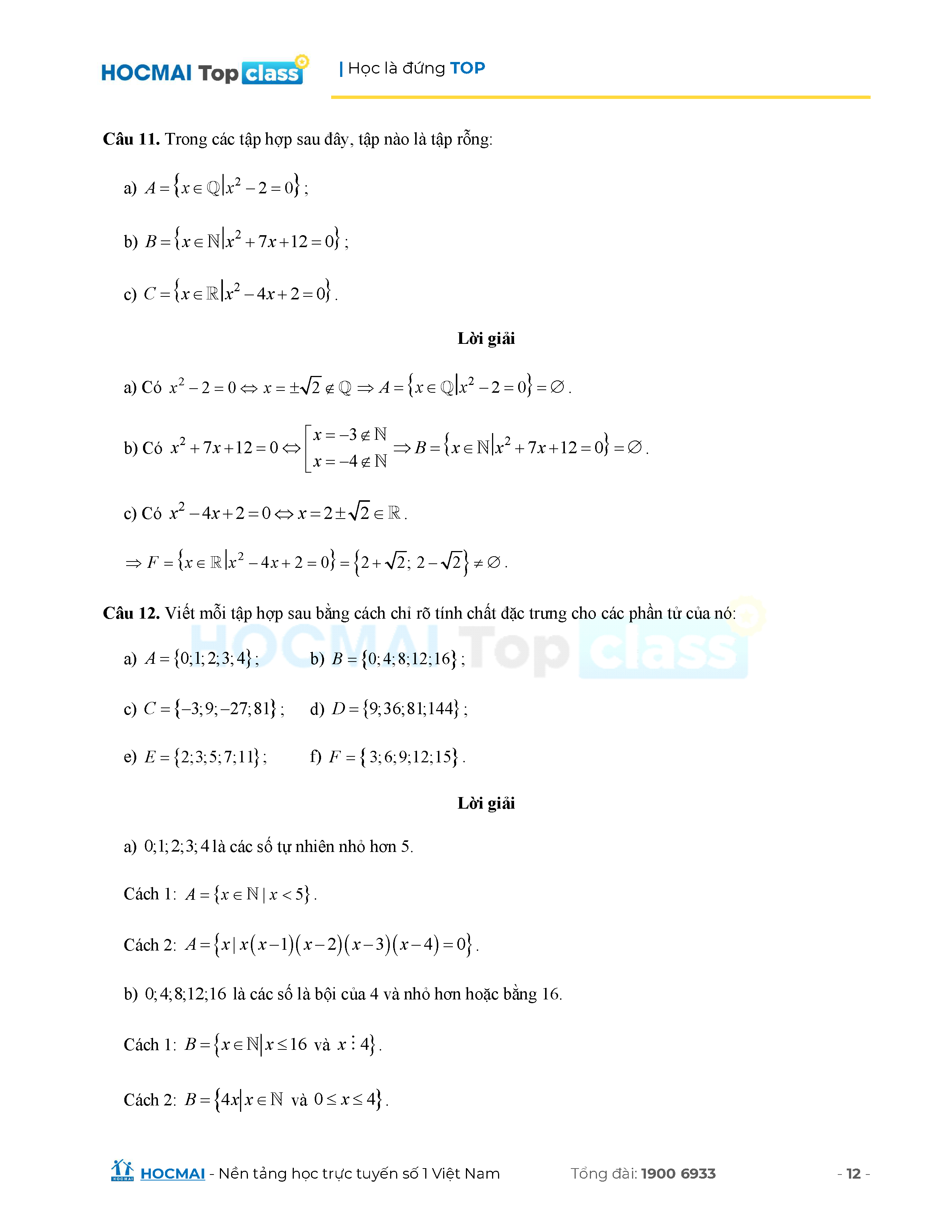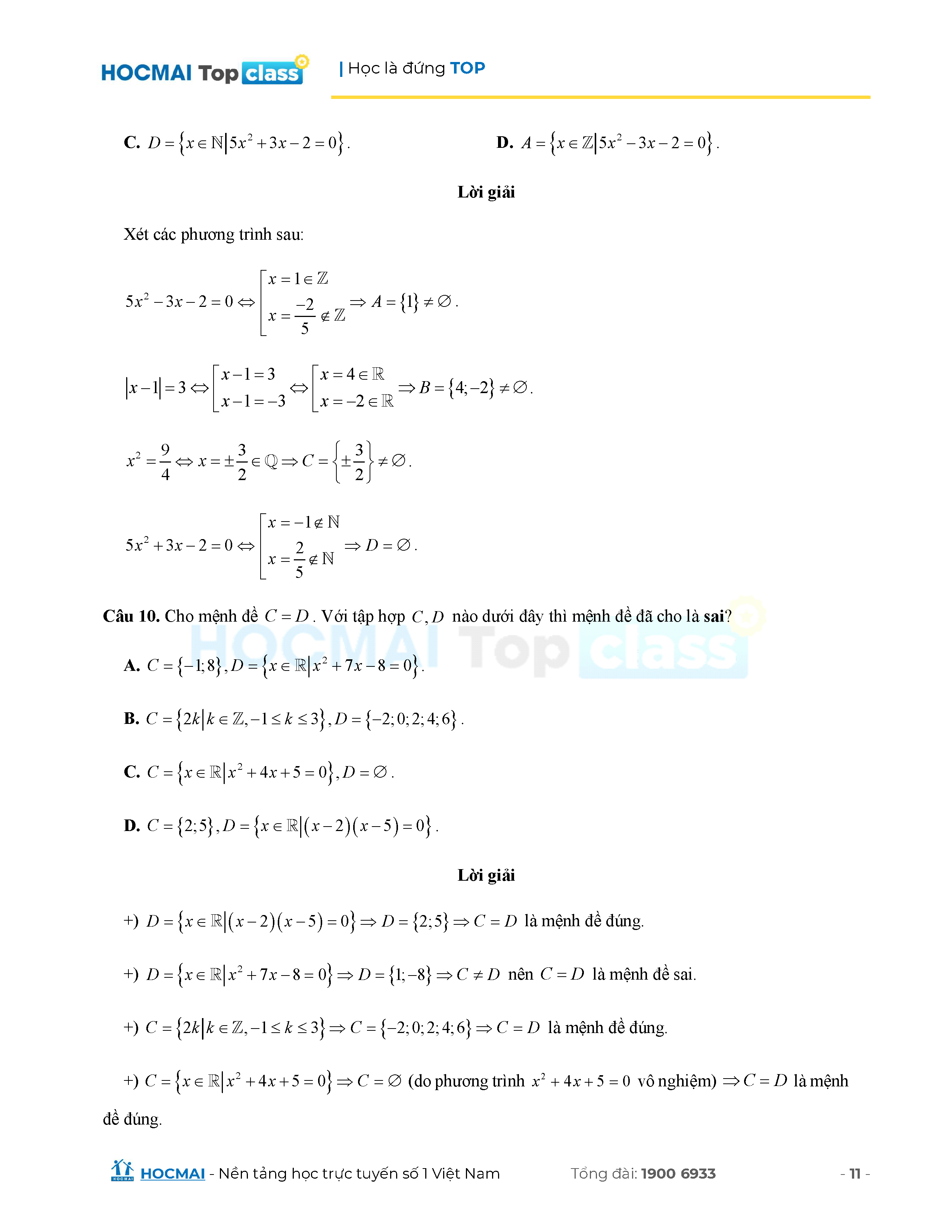 Ôn tập: Mênh đề. Tập hợp (Phần 1) - Hướng dẫn giải