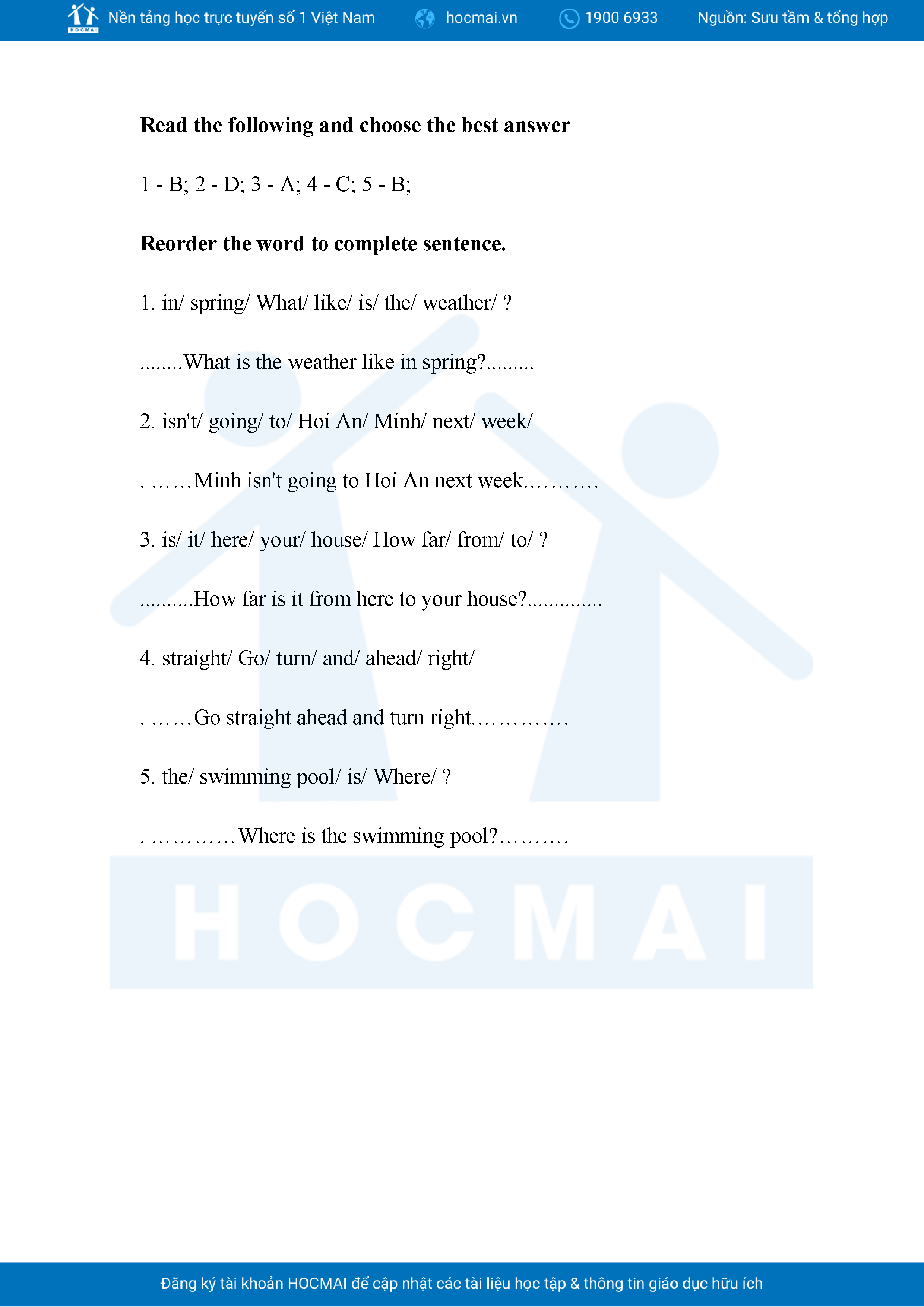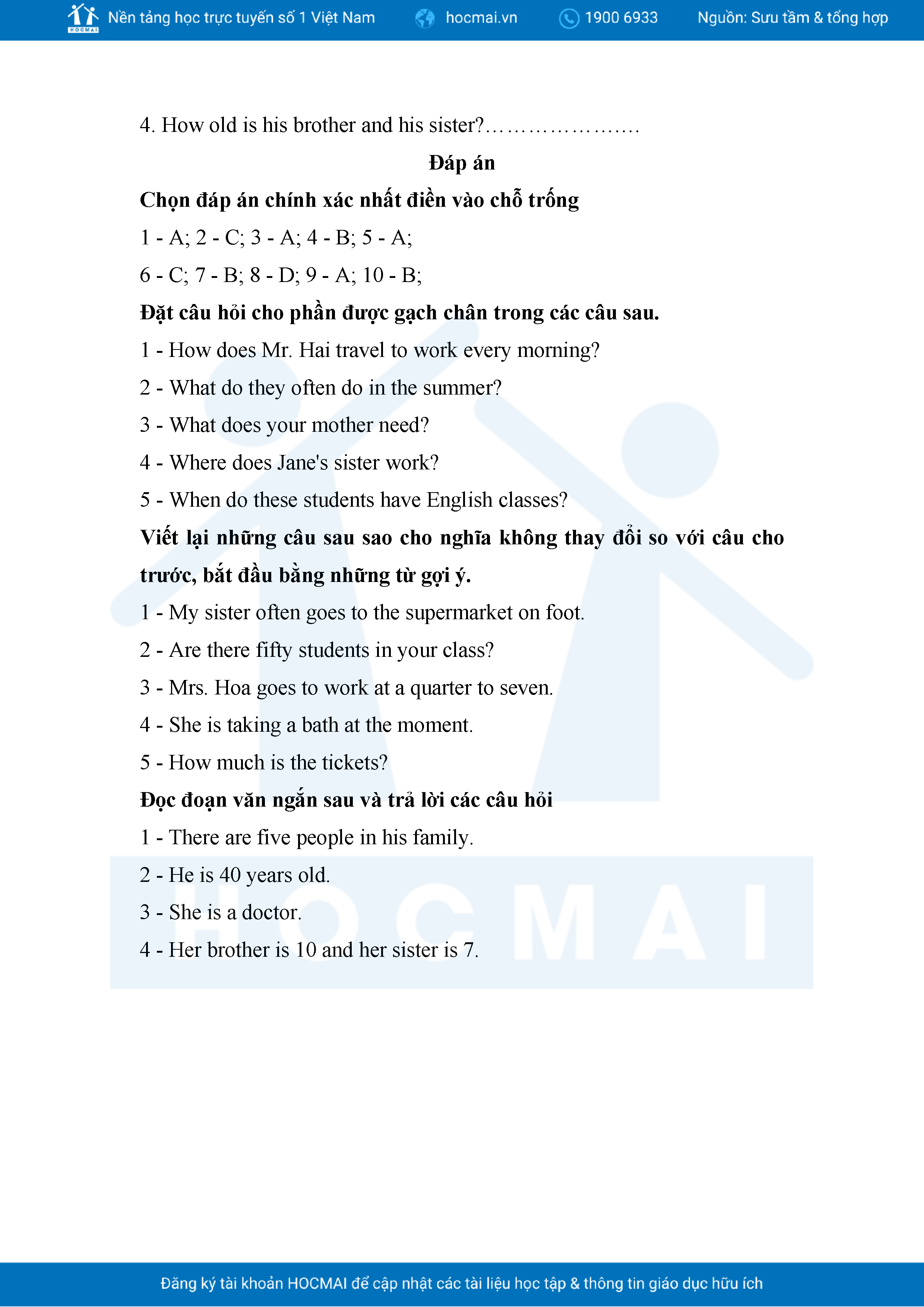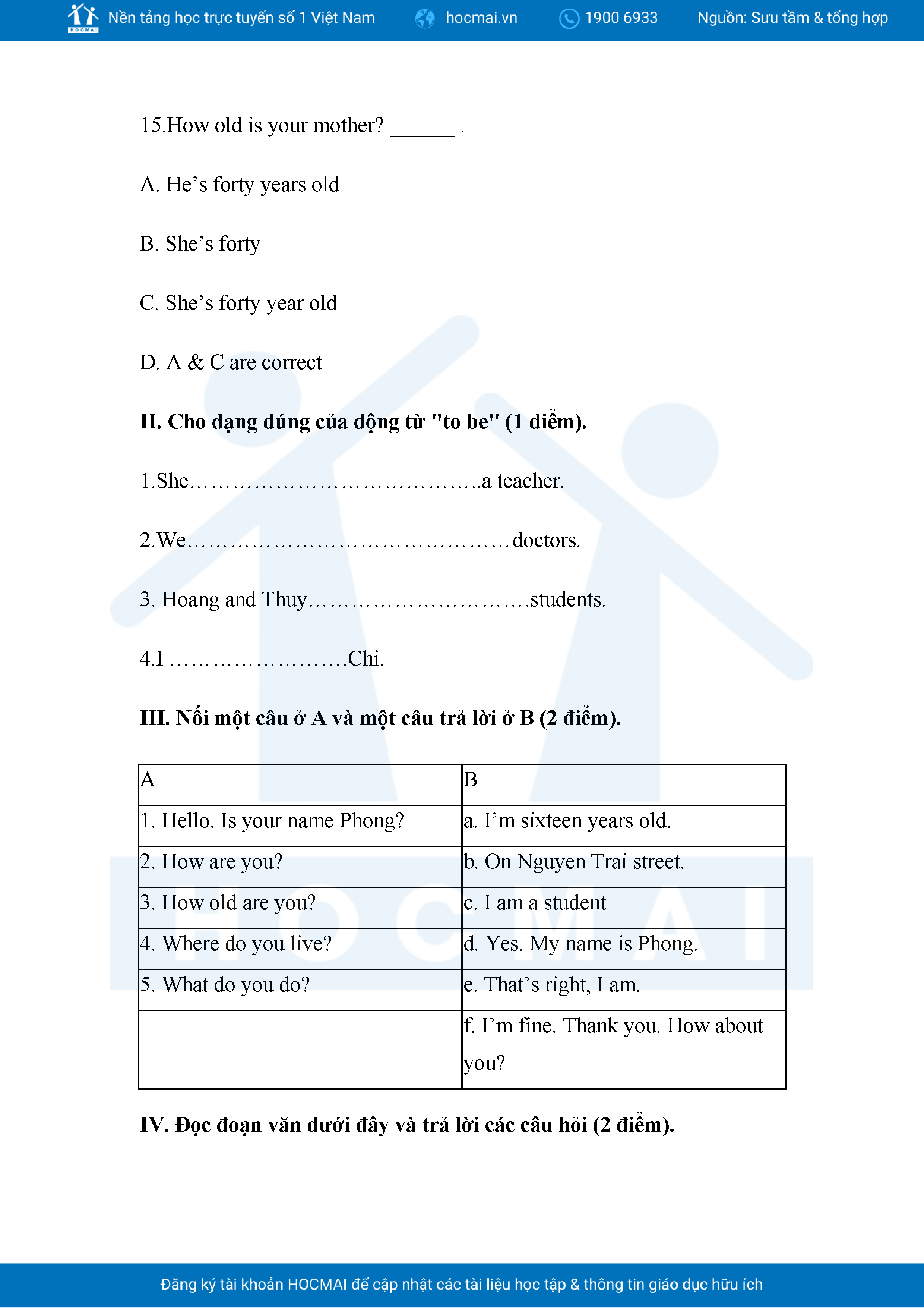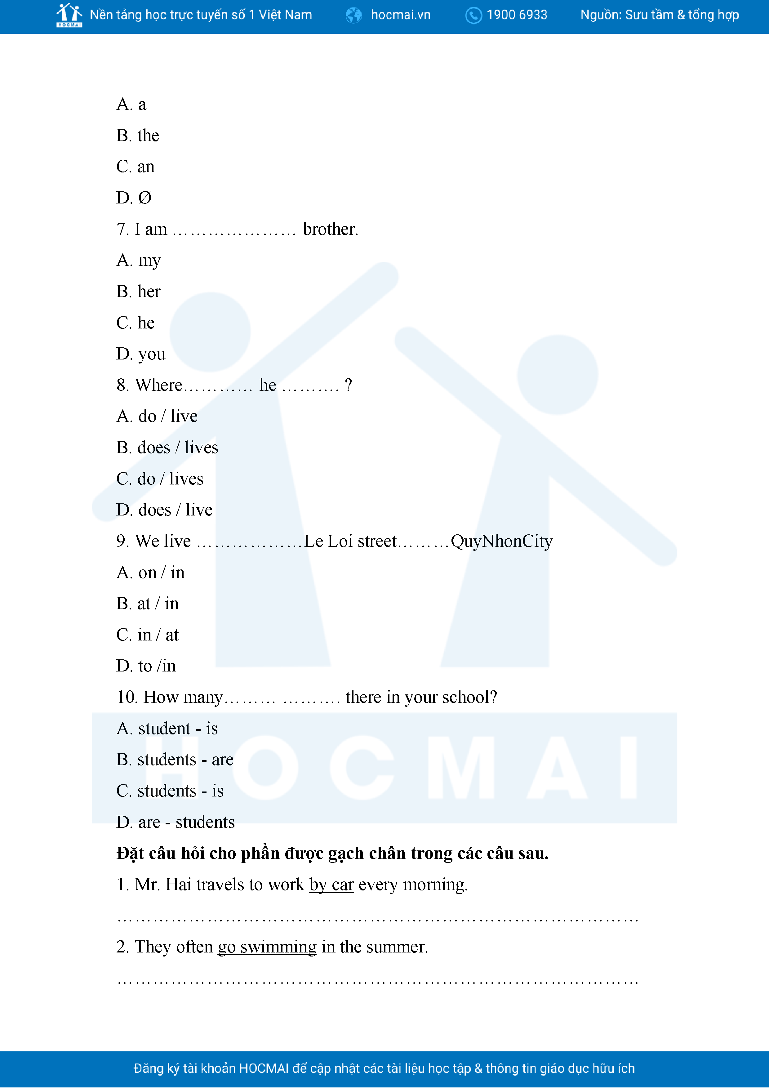 Bộ đề thi khảo sát chất lượng đầu năm môn tiếng Anh lớp 6