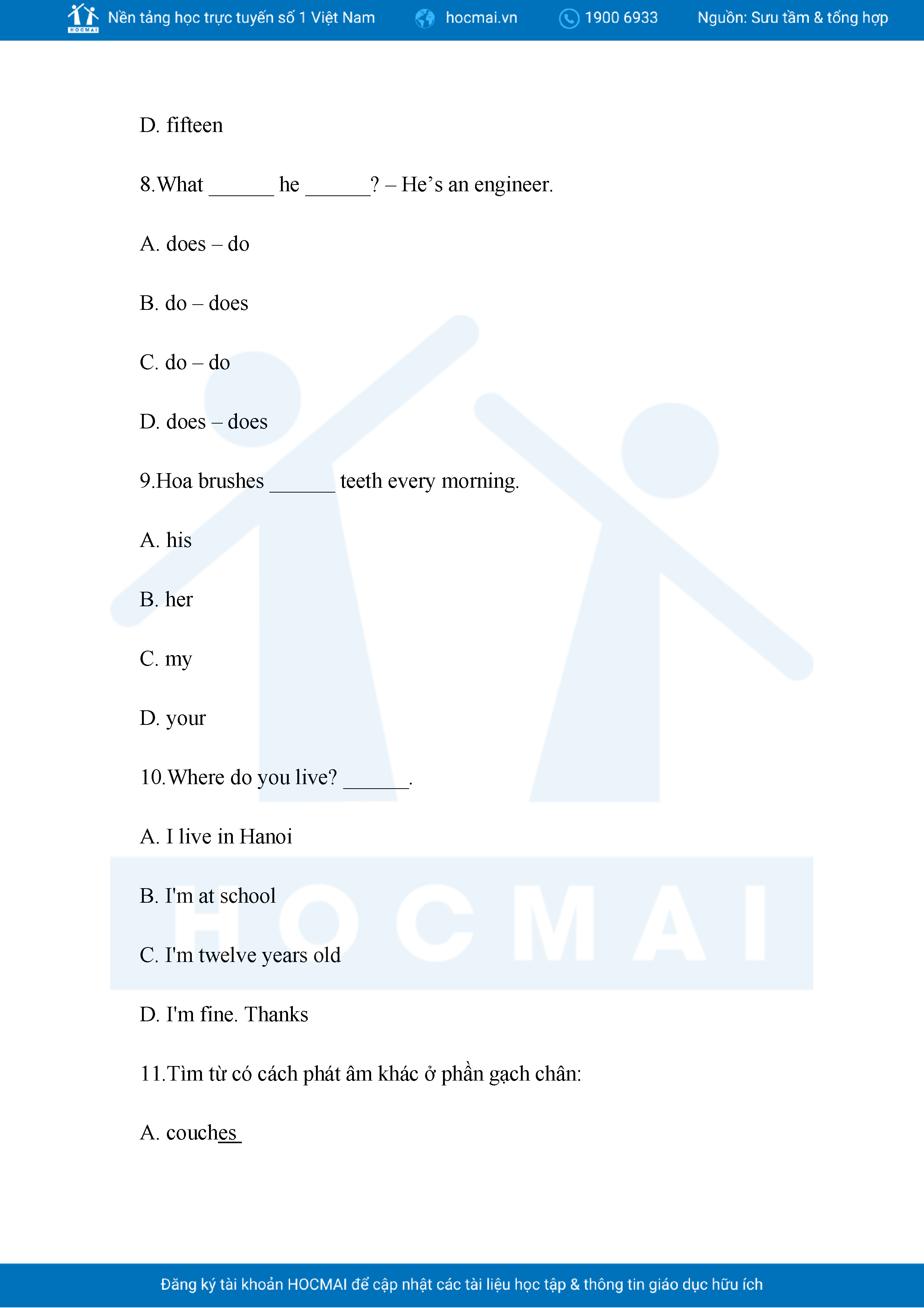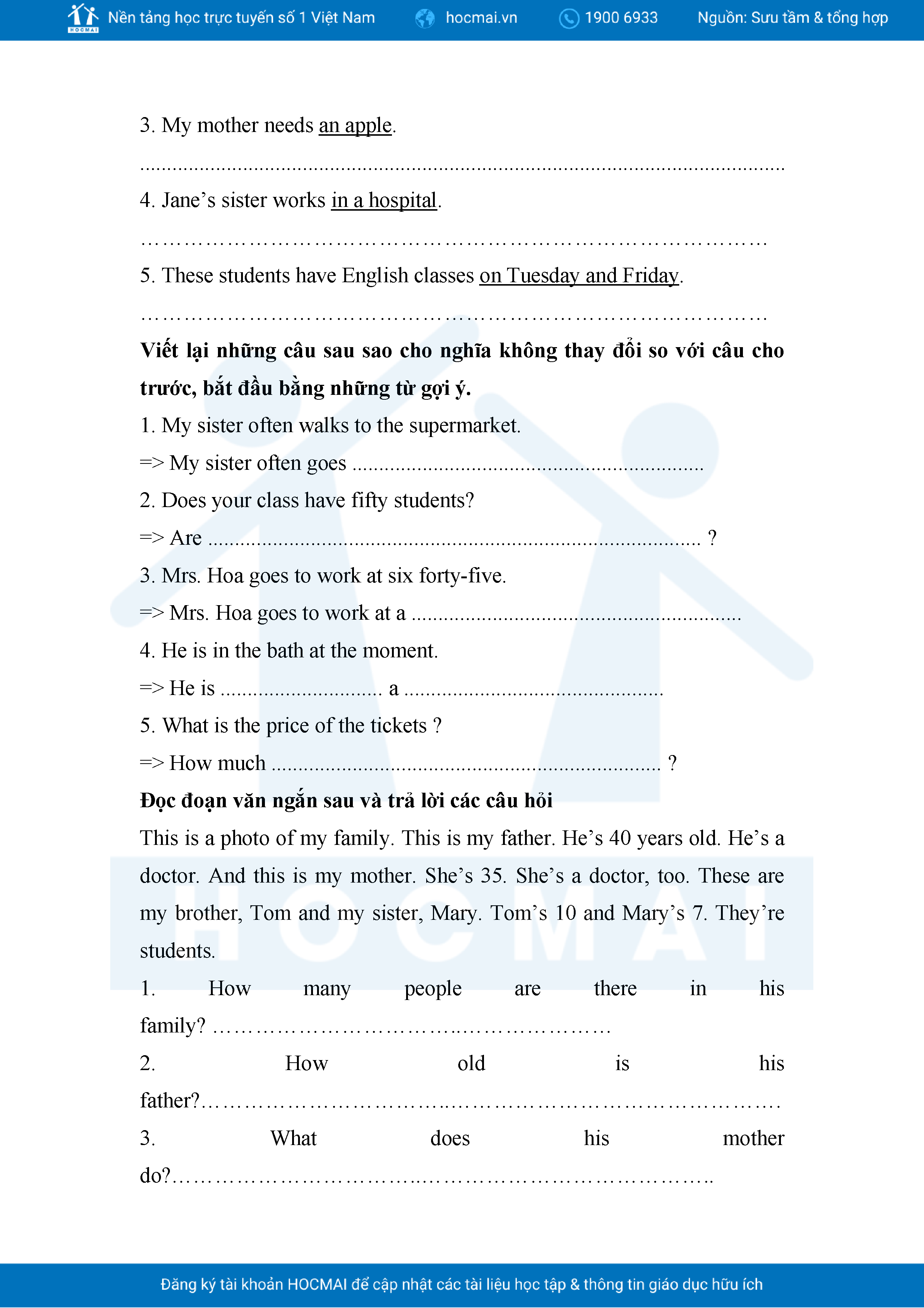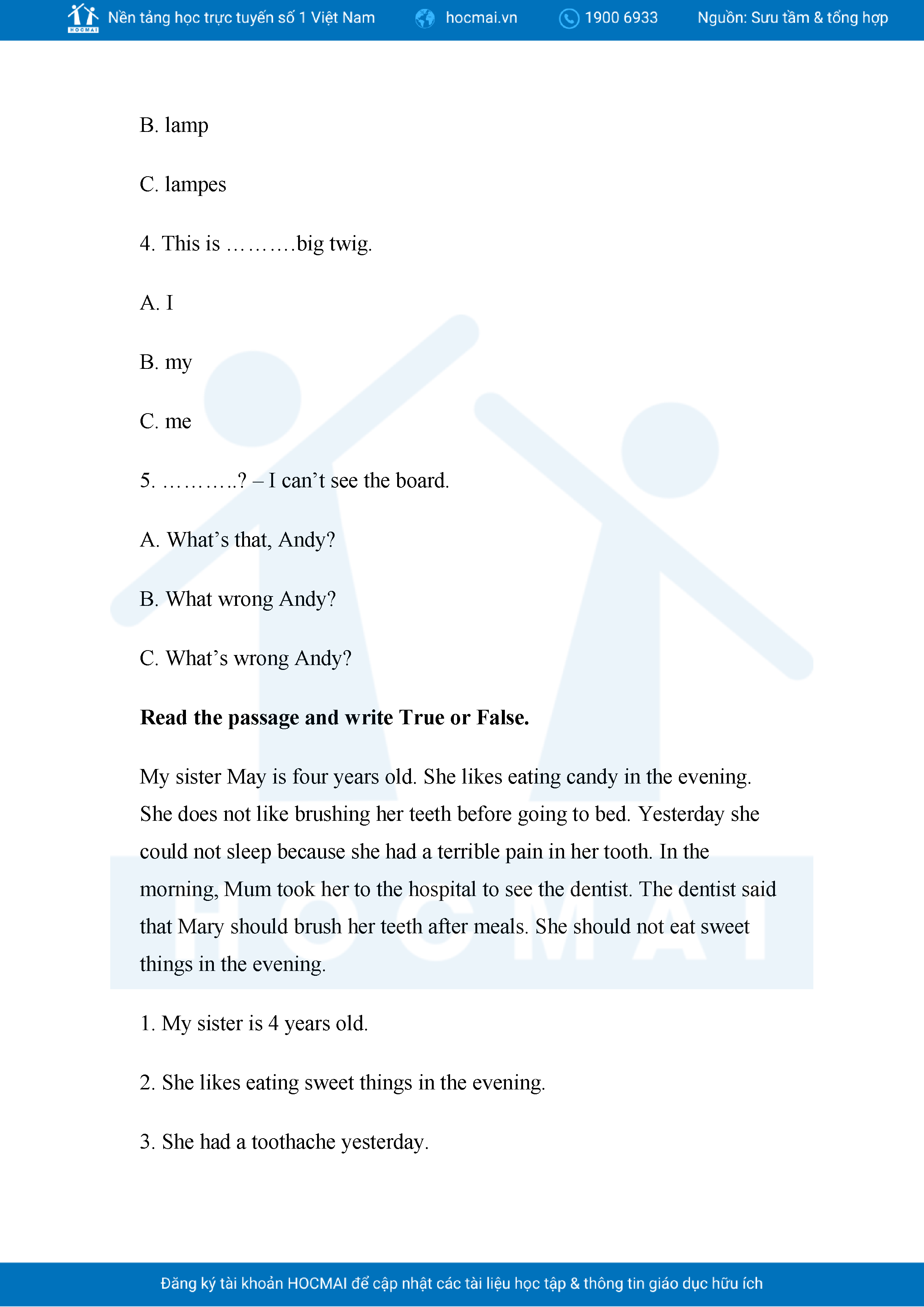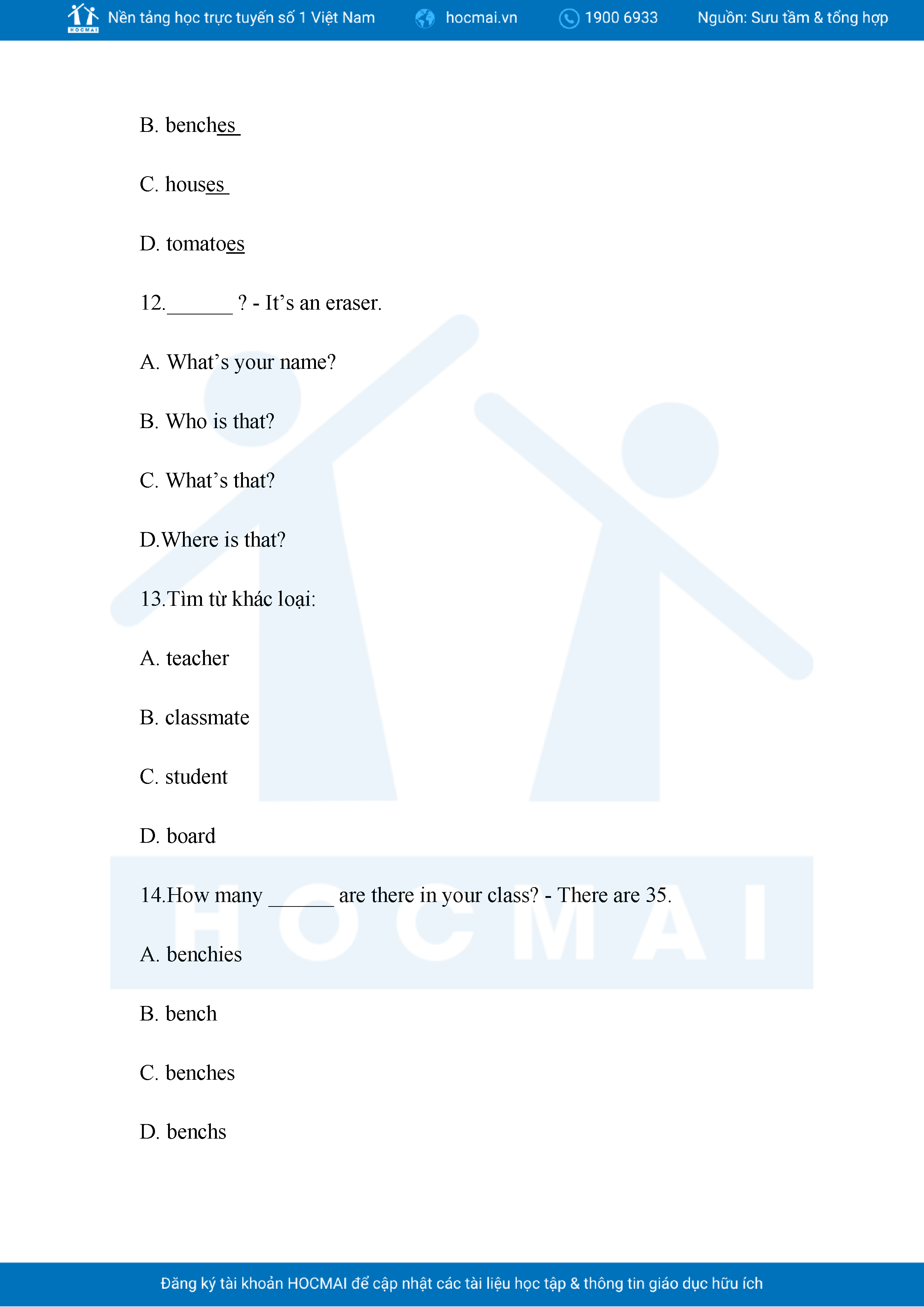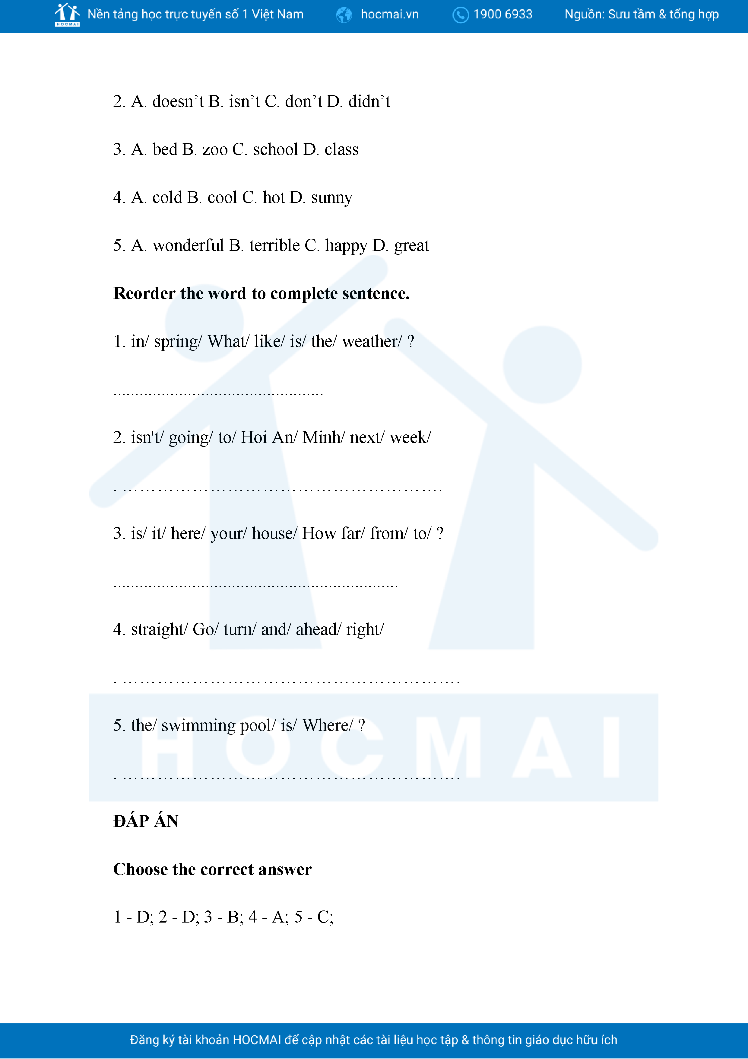 Bộ đề thi khảo sát chất lượng đầu năm môn tiếng Anh lớp 6