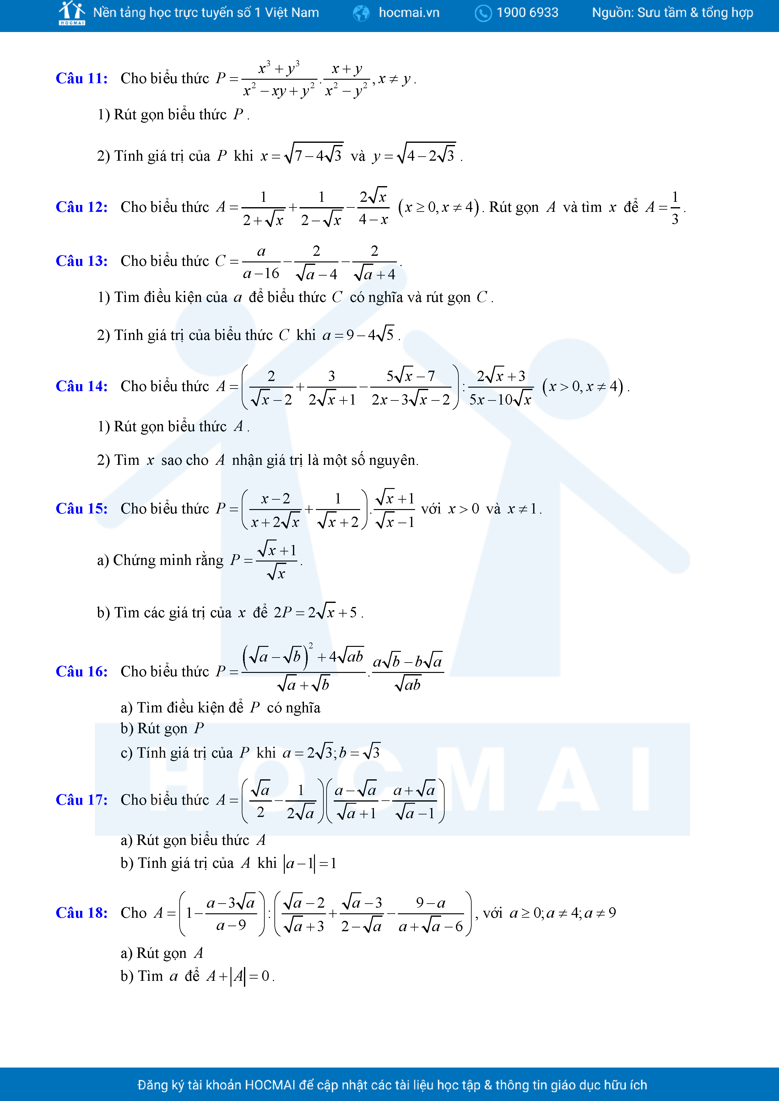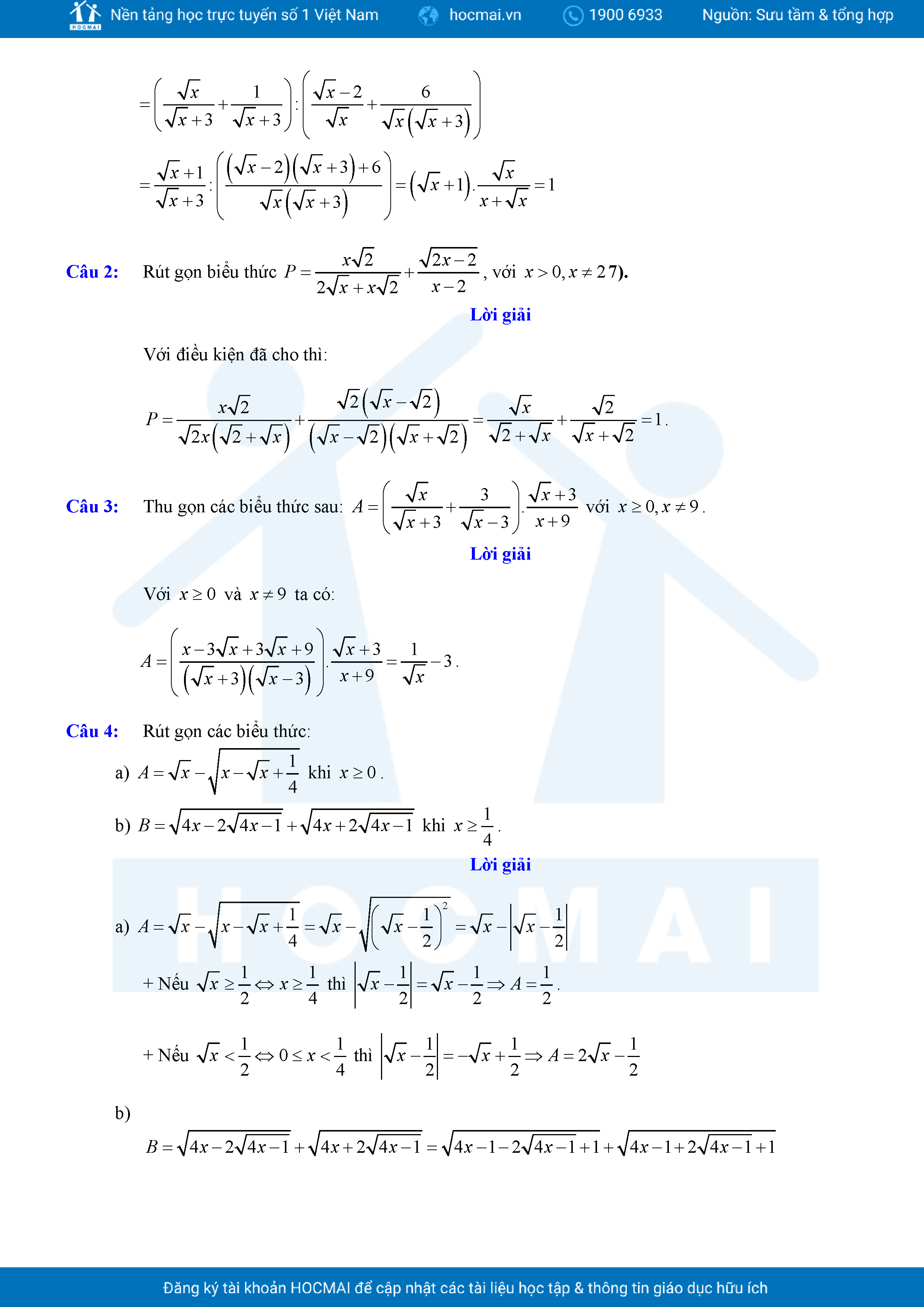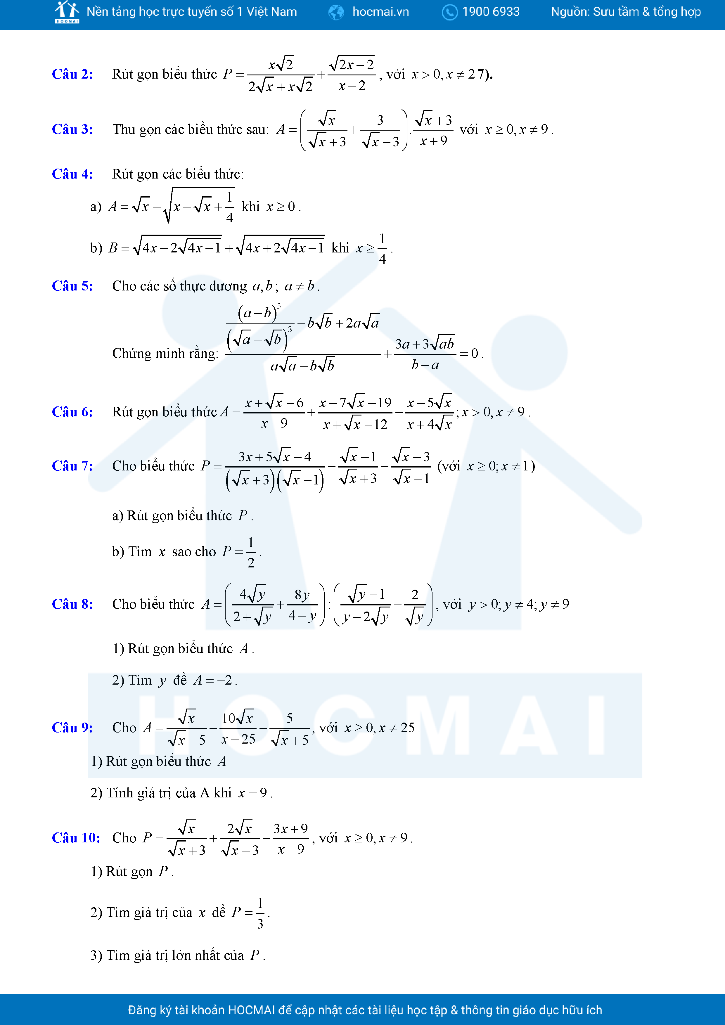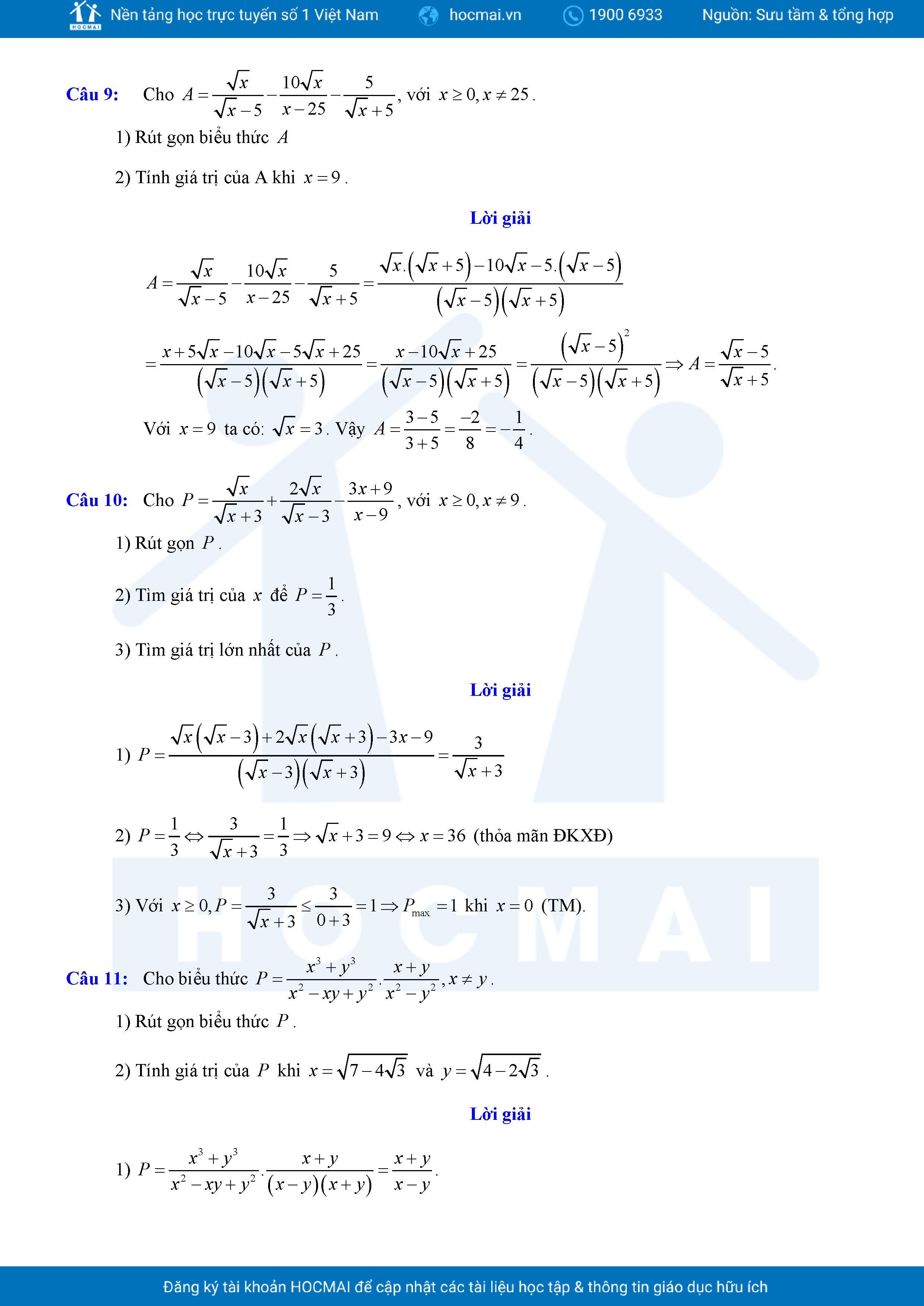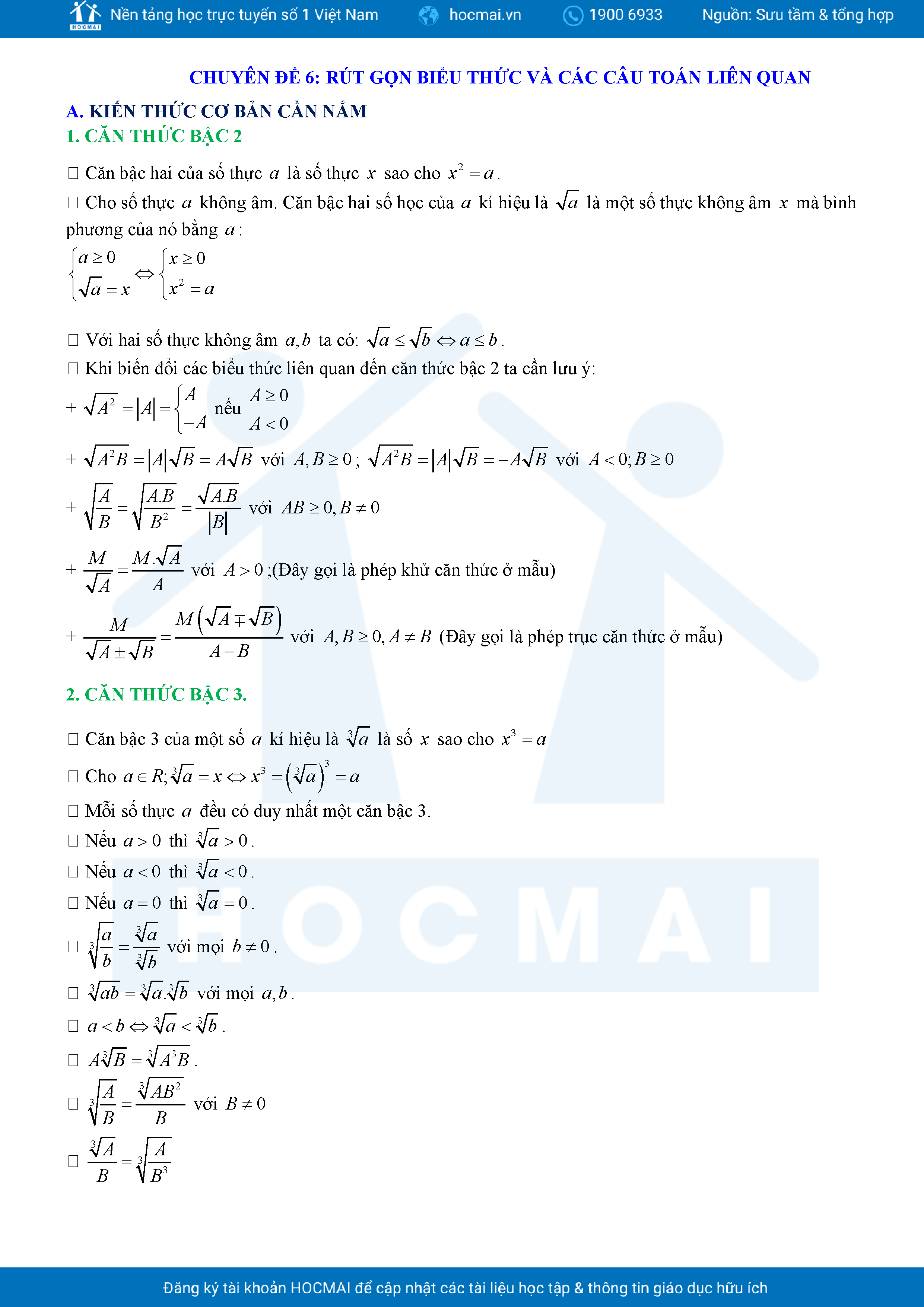 Chuyên đề rút gọn biểu thức và bài toán liên quan ôn thi vào lớp 10