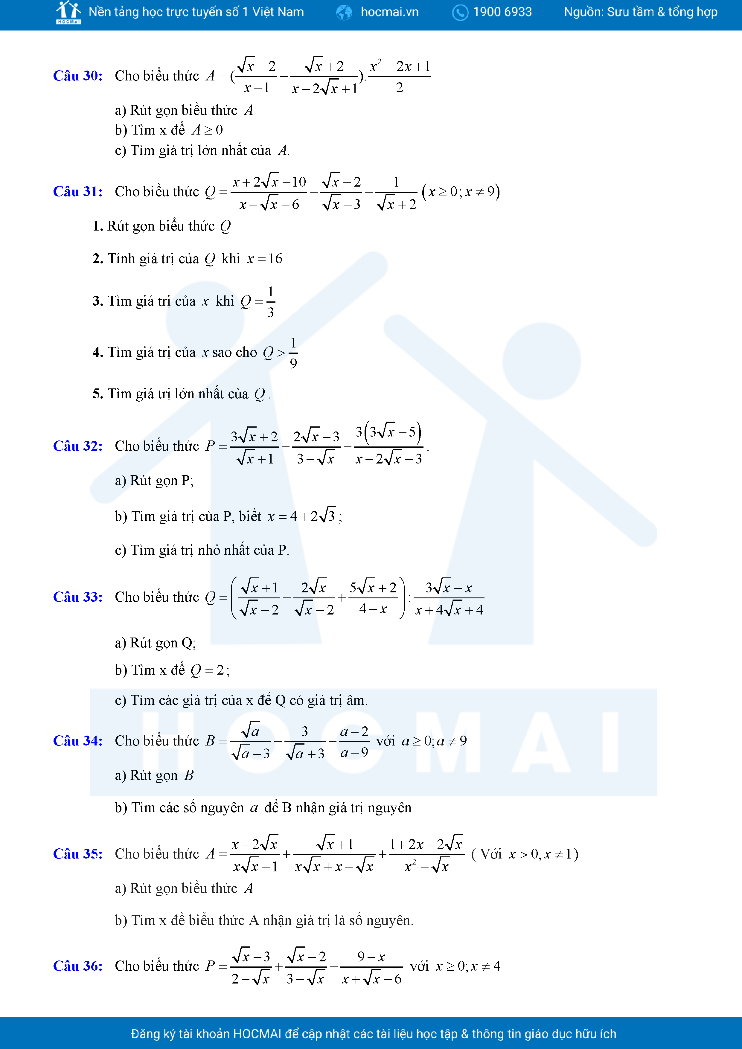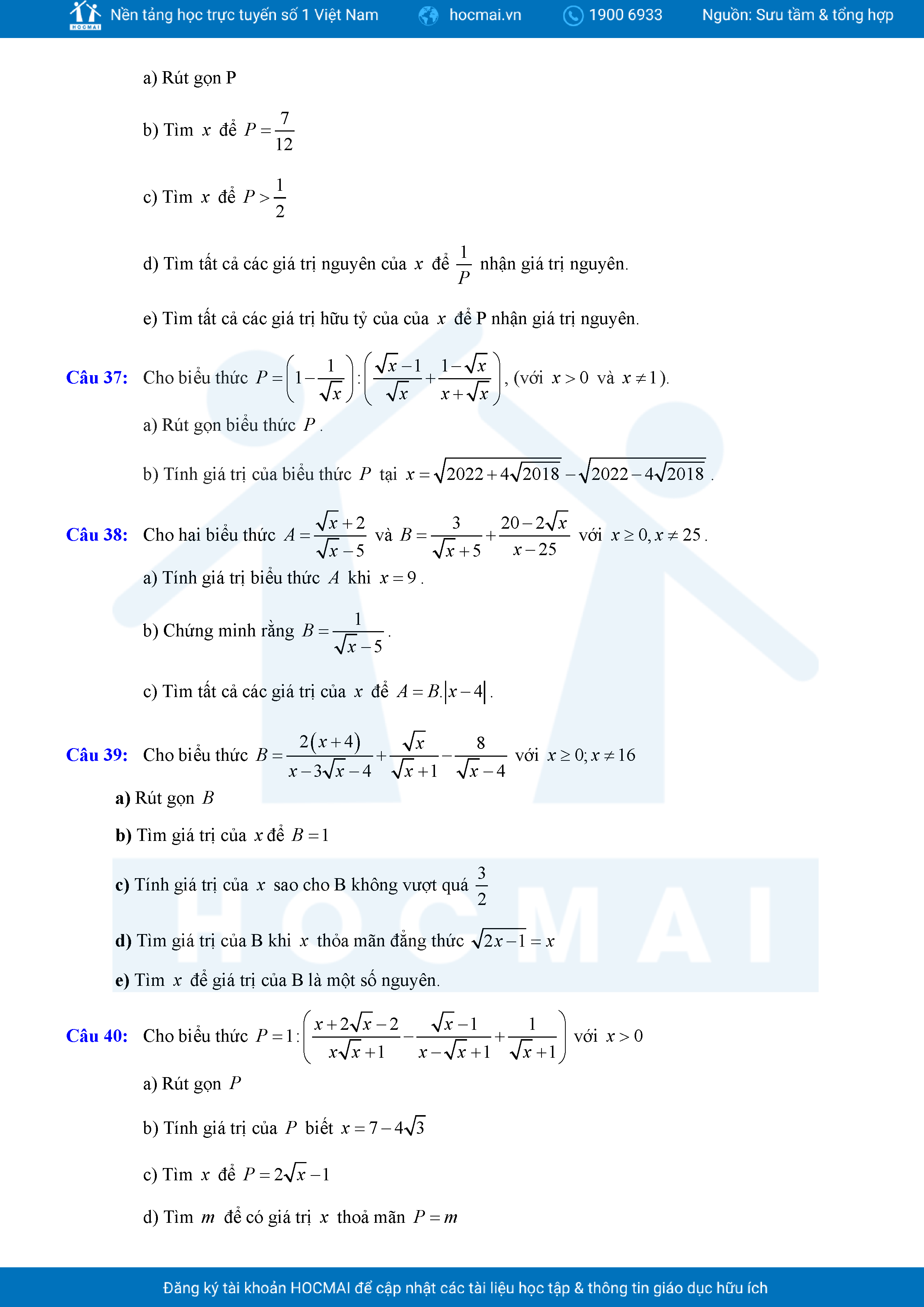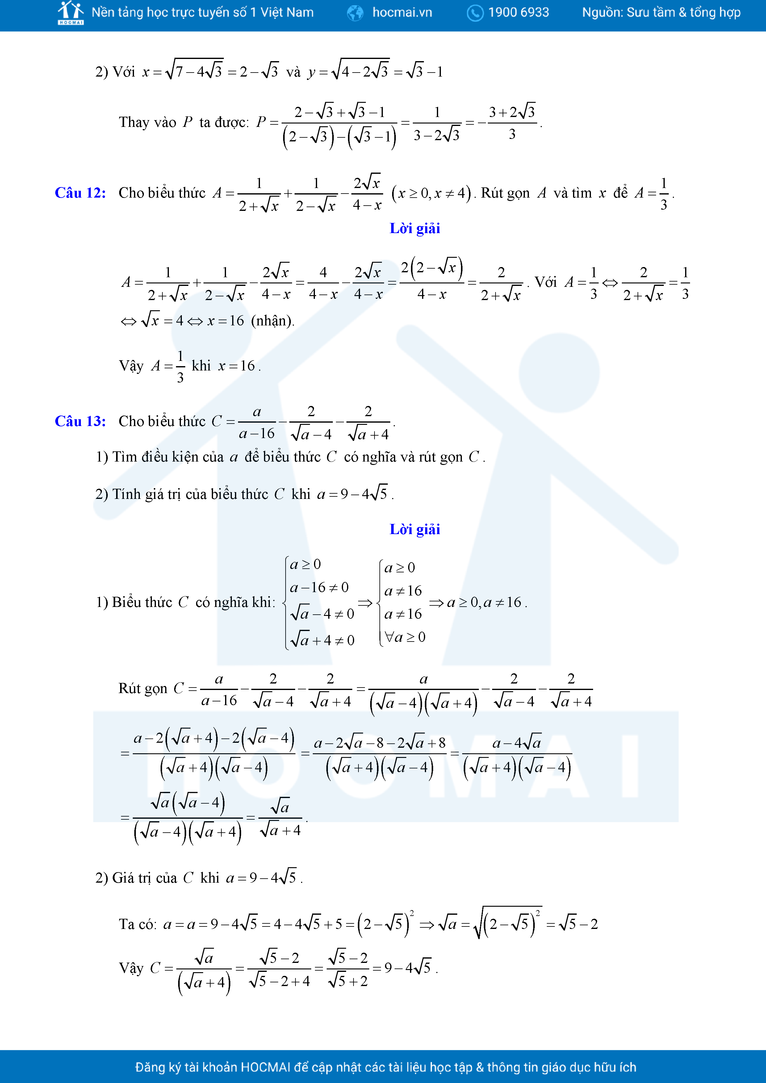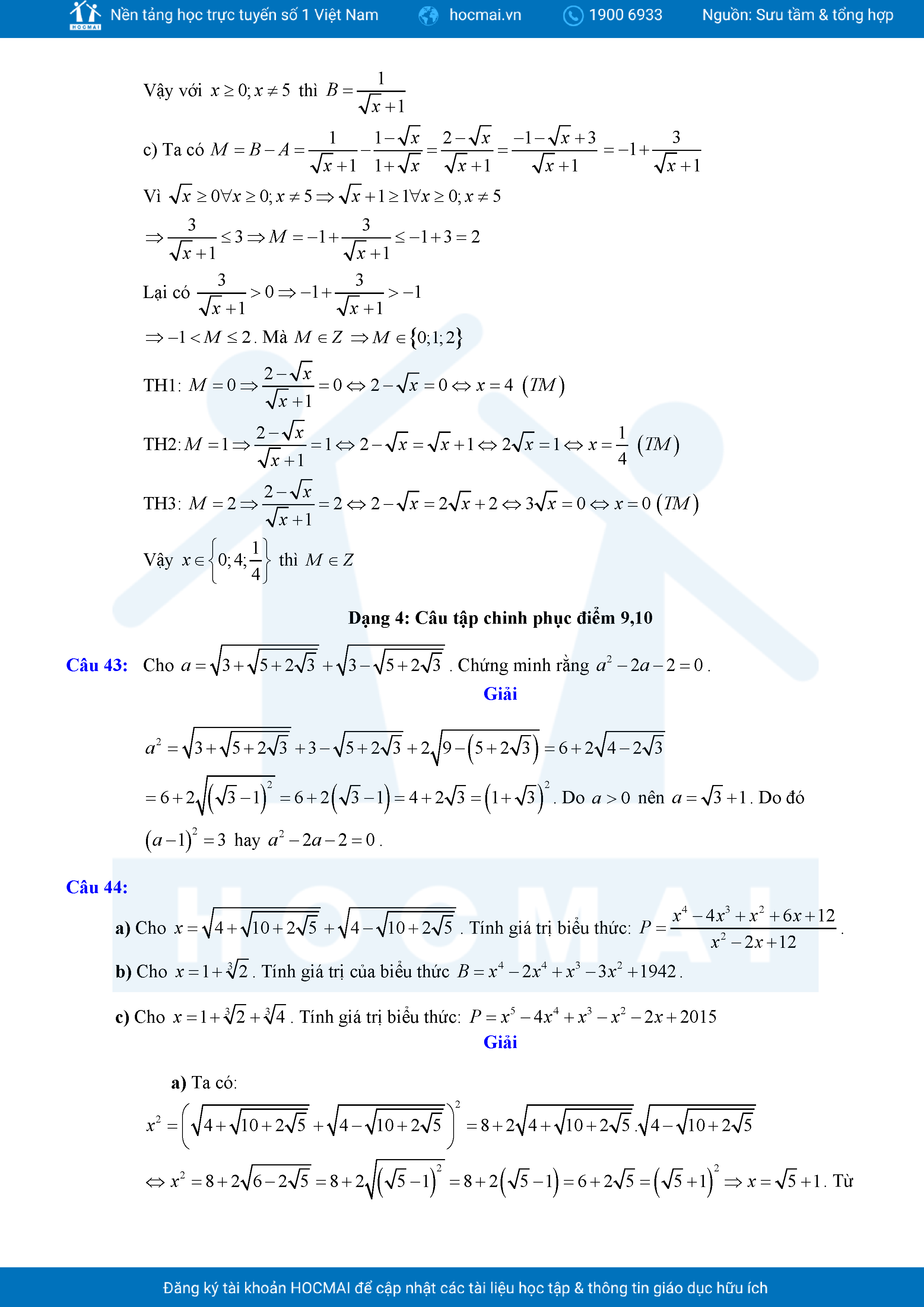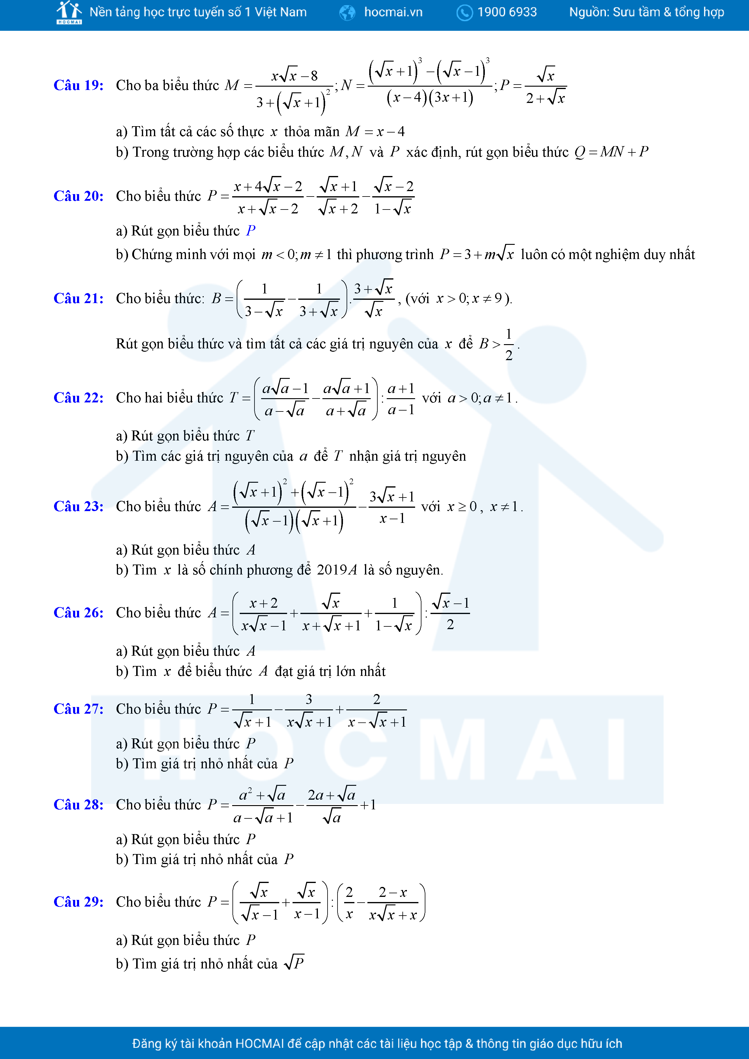 Chuyên đề rút gọn biểu thức và bài toán liên quan ôn thi vào lớp 10