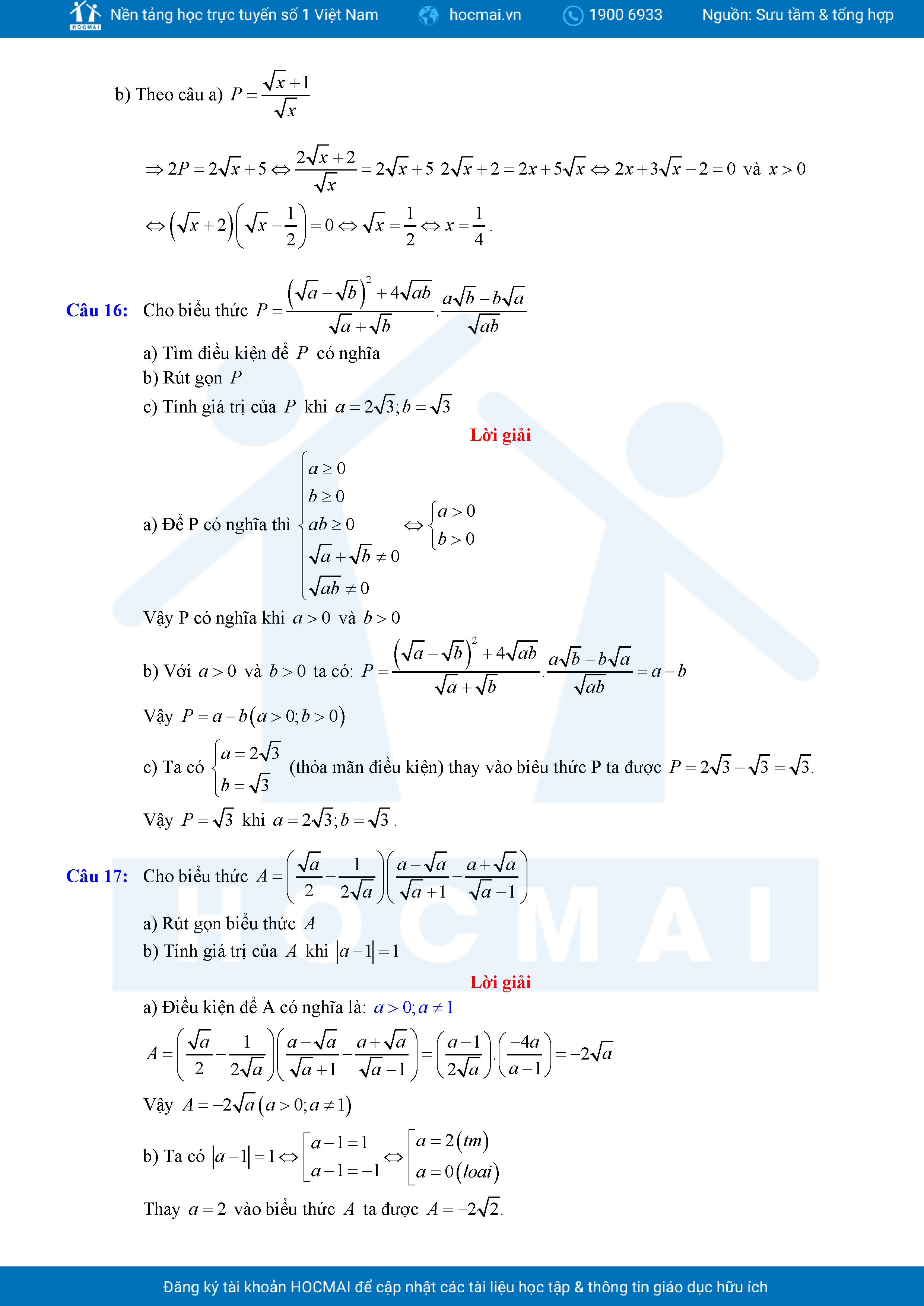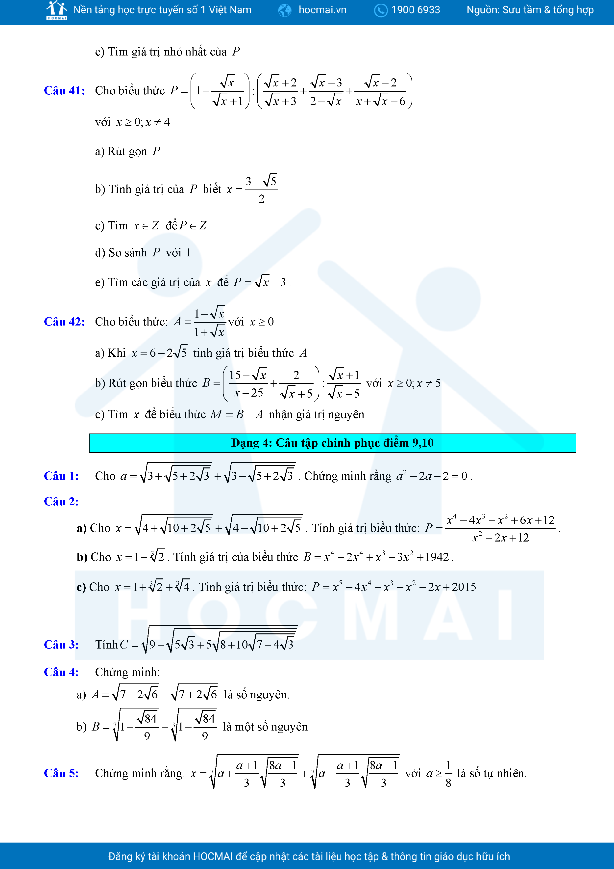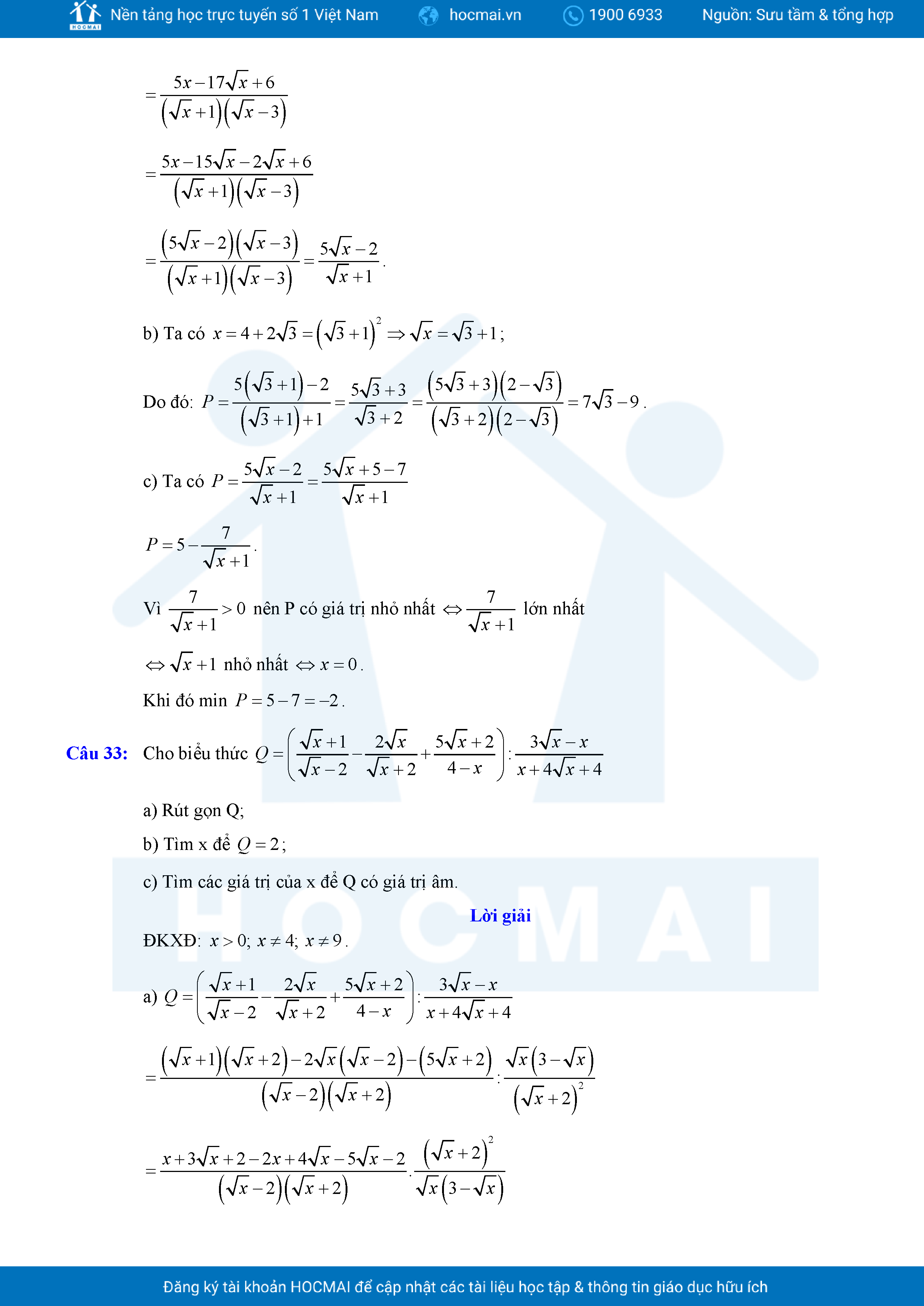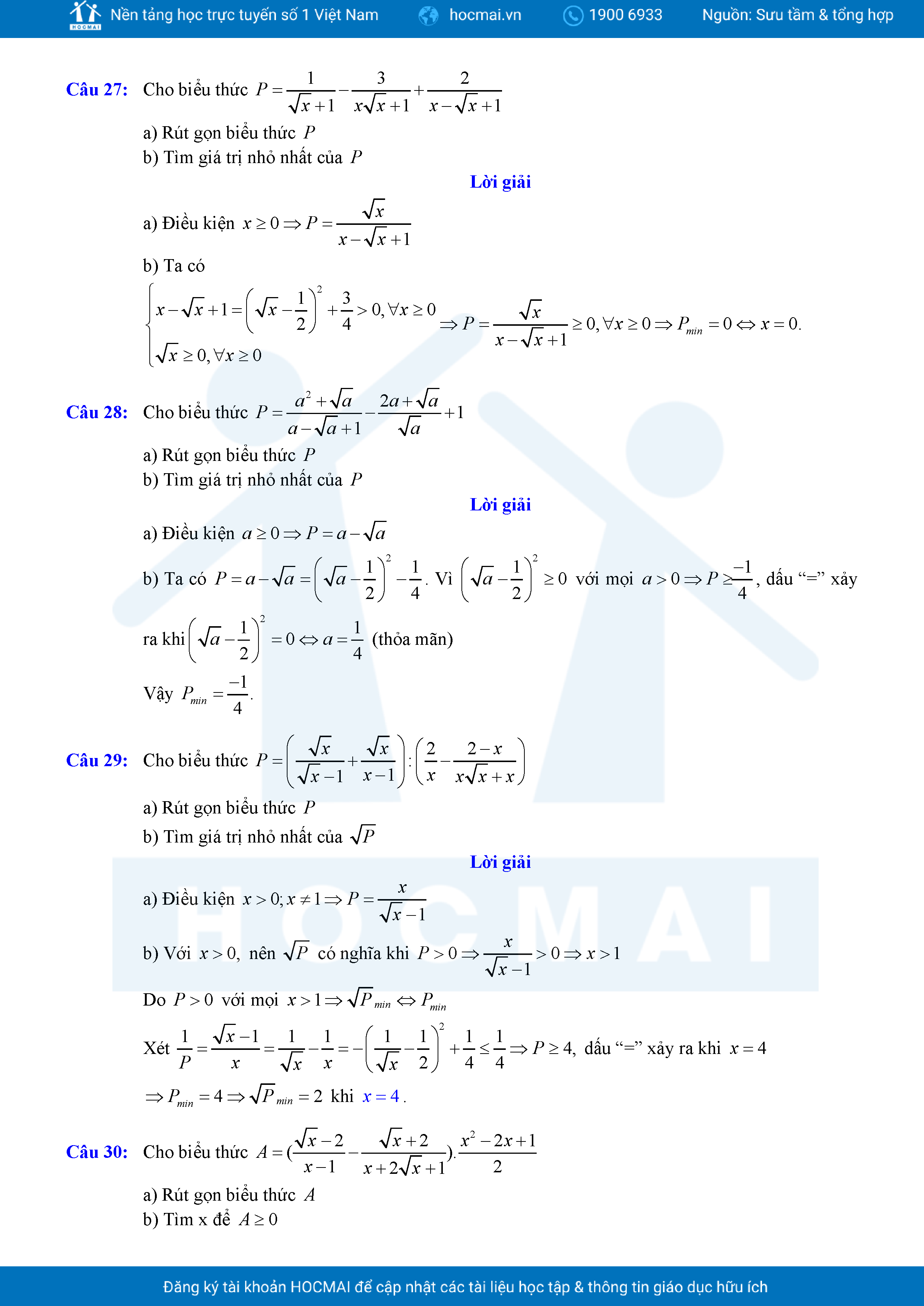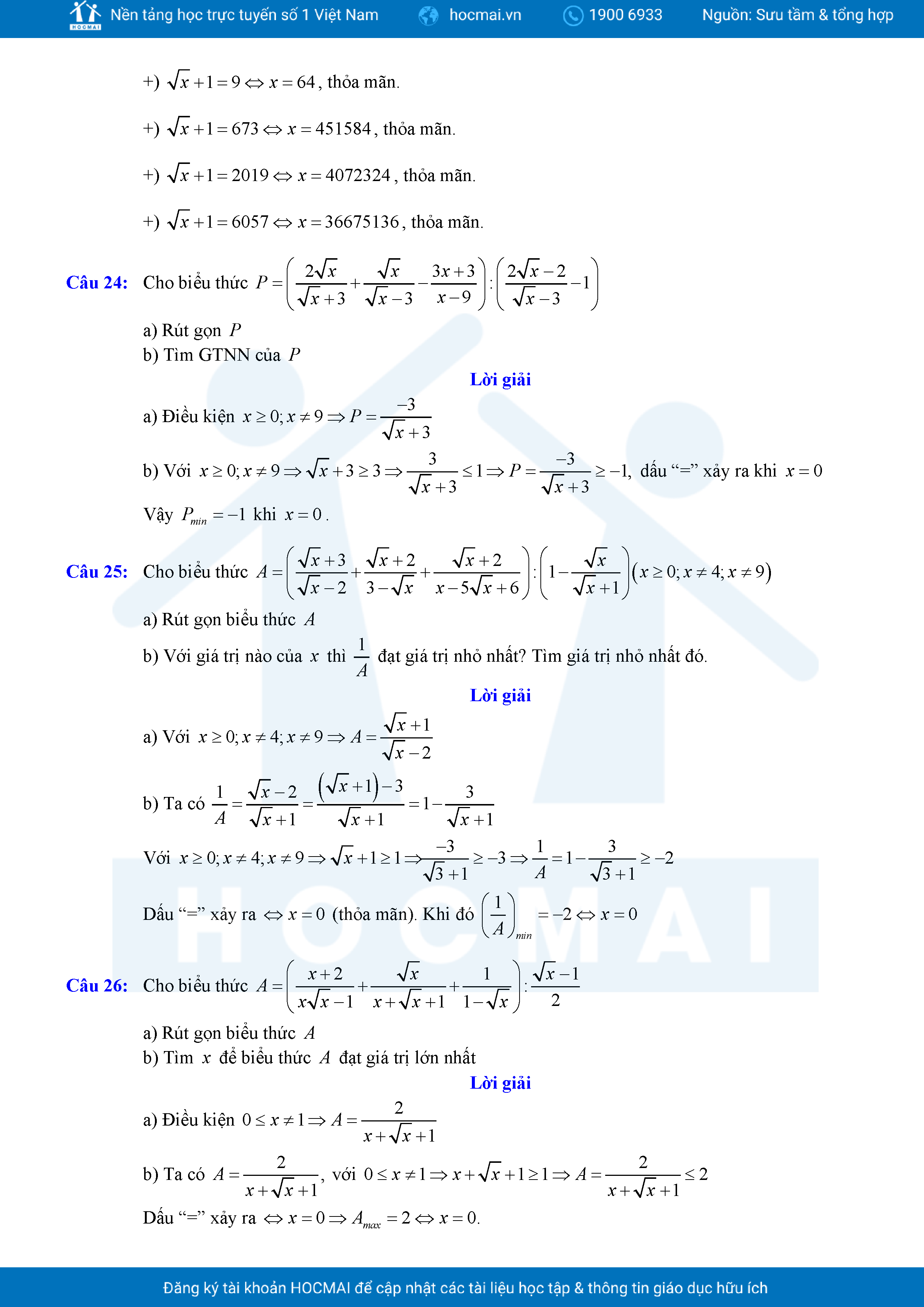 Chuyên đề rút gọn biểu thức và bài toán liên quan ôn thi vào lớp 10