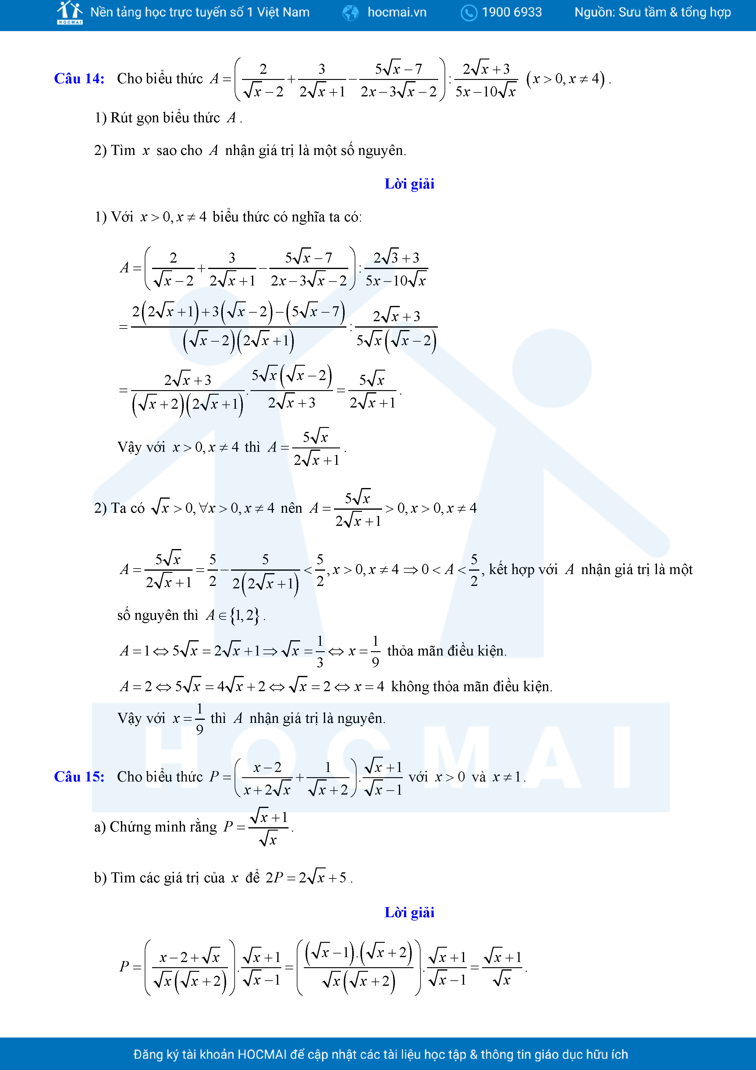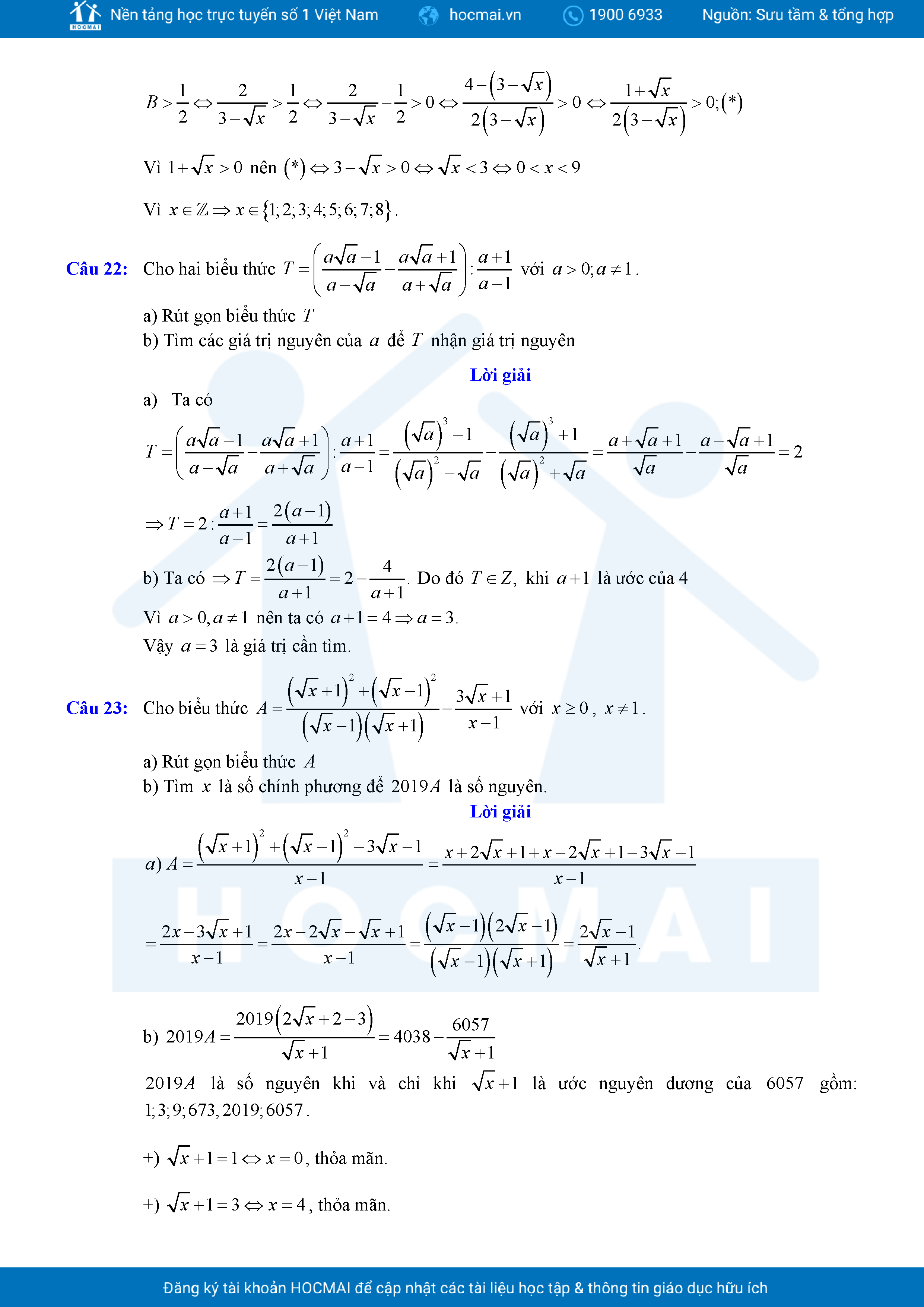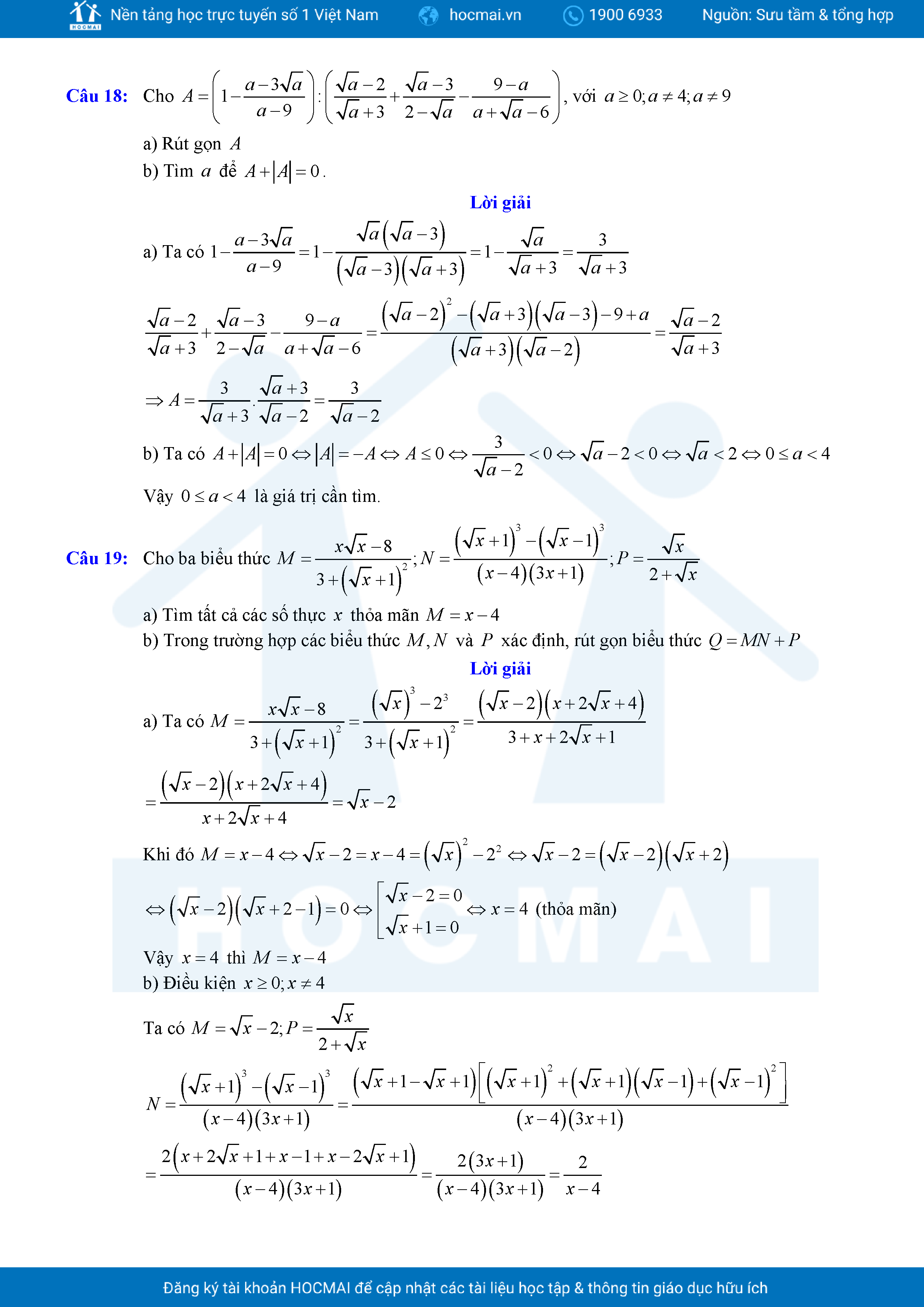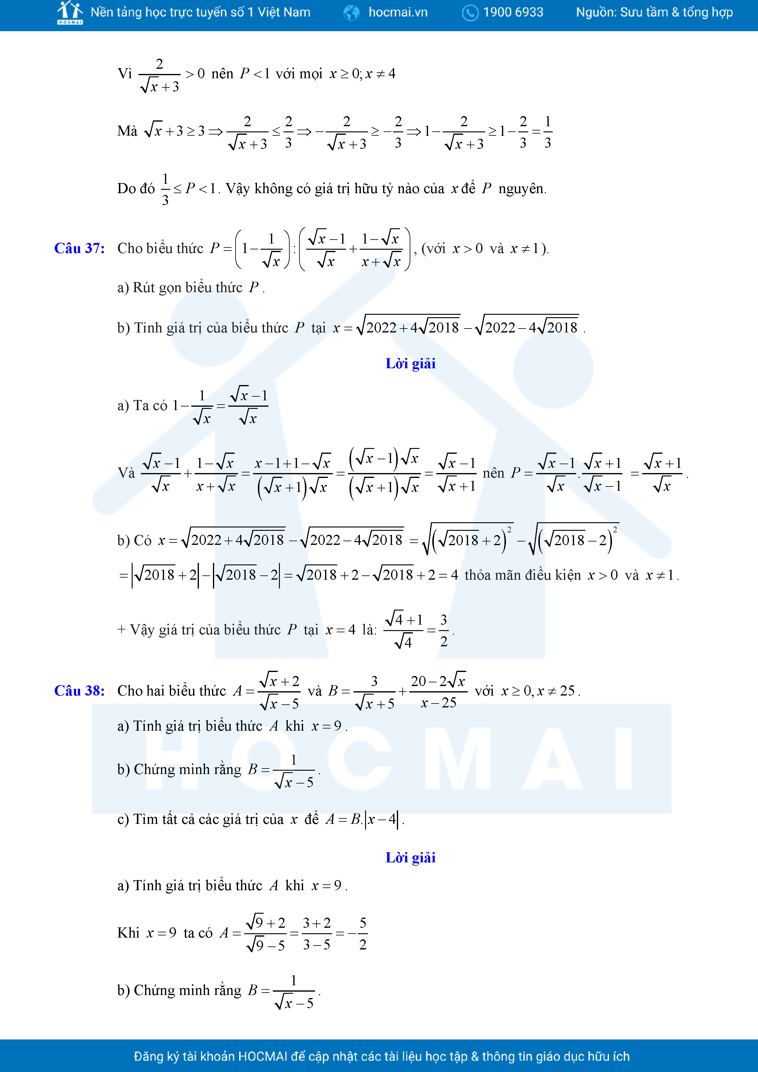 Chuyên đề rút gọn biểu thức và bài toán liên quan ôn thi vào lớp 10