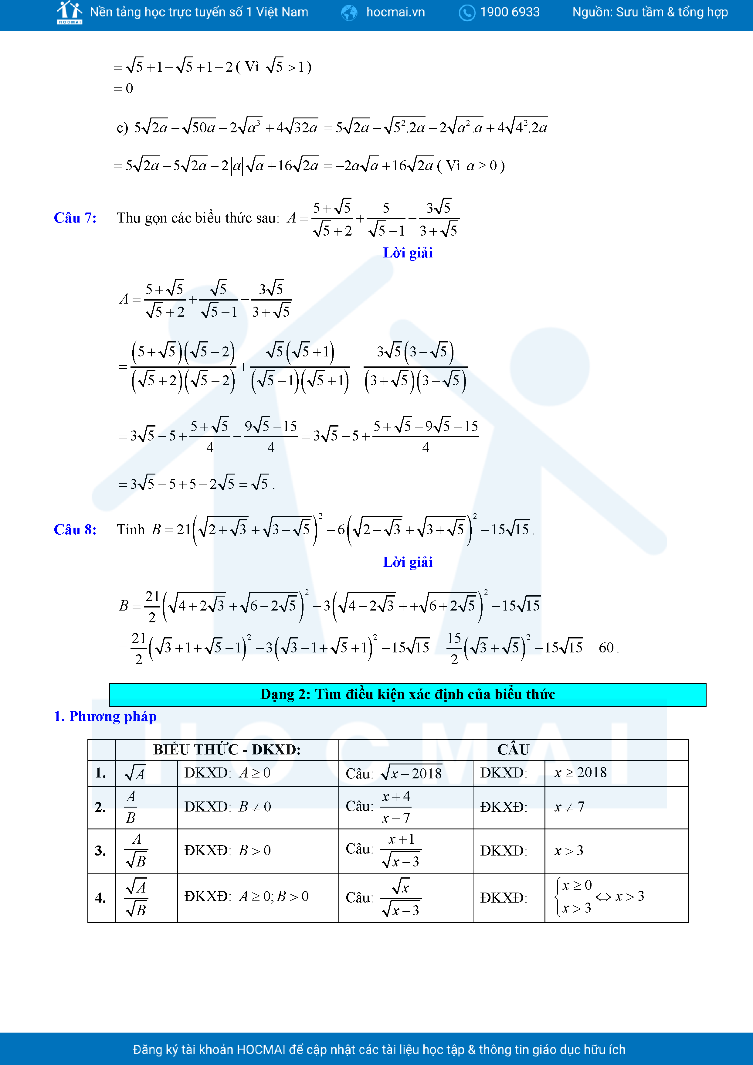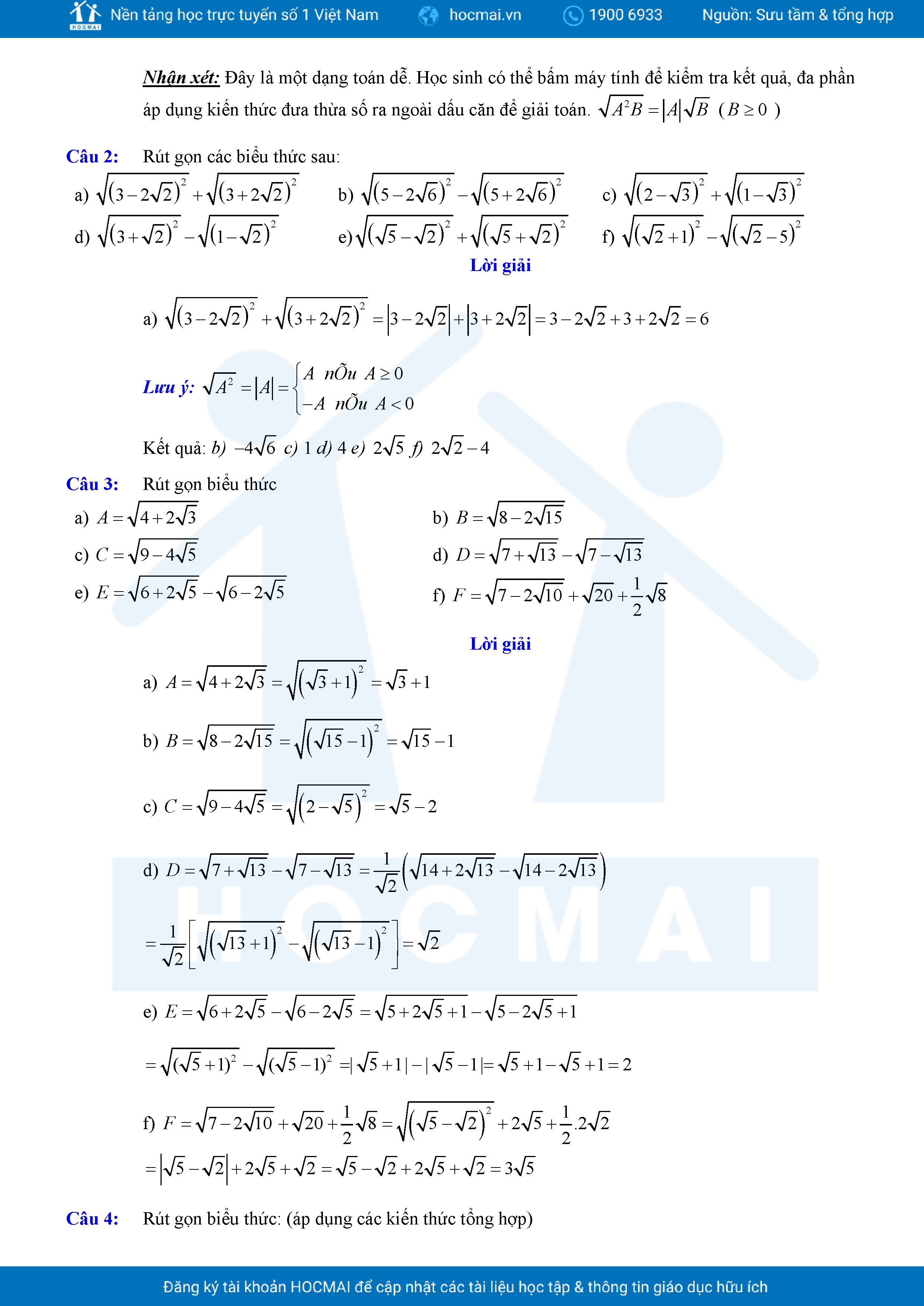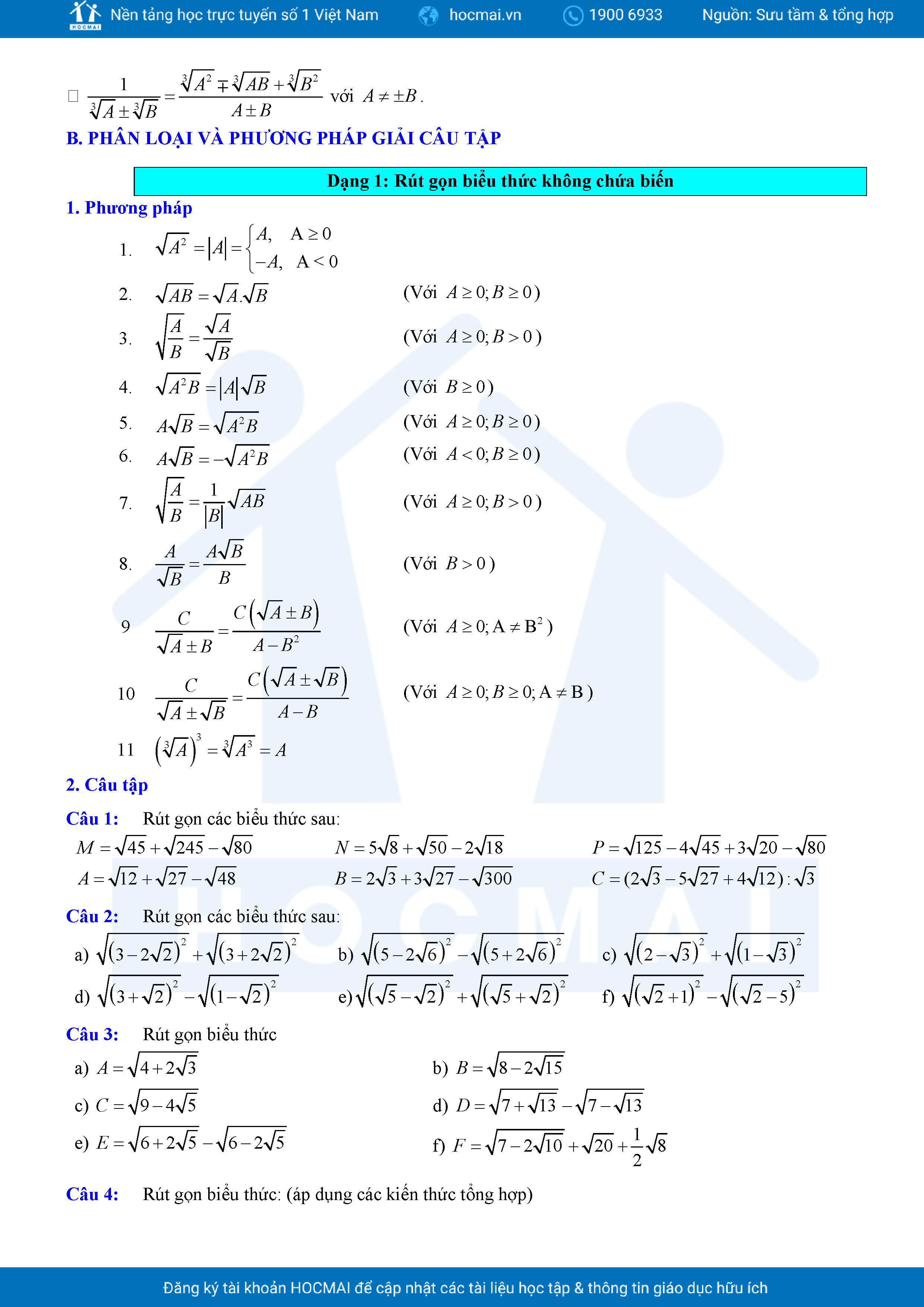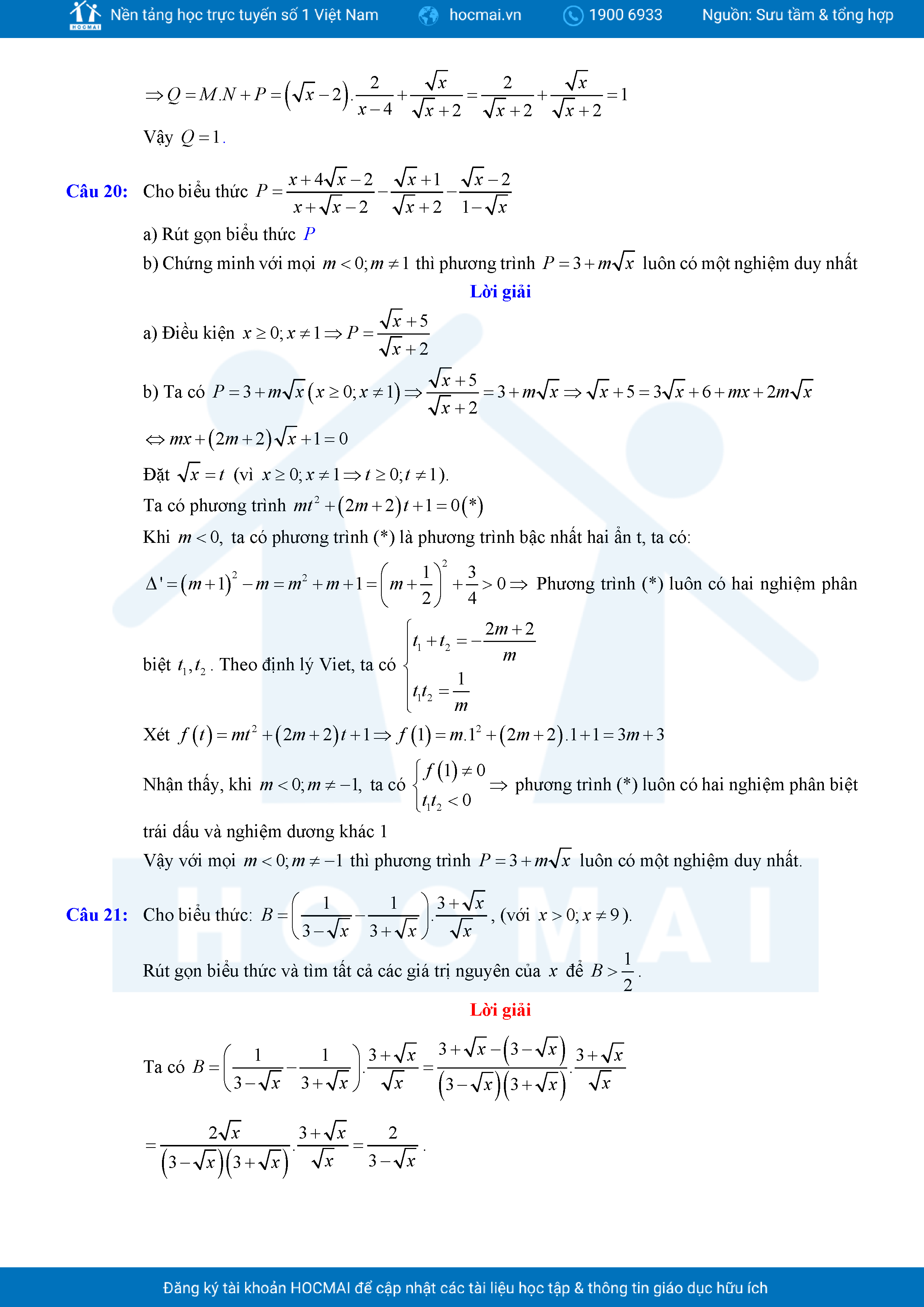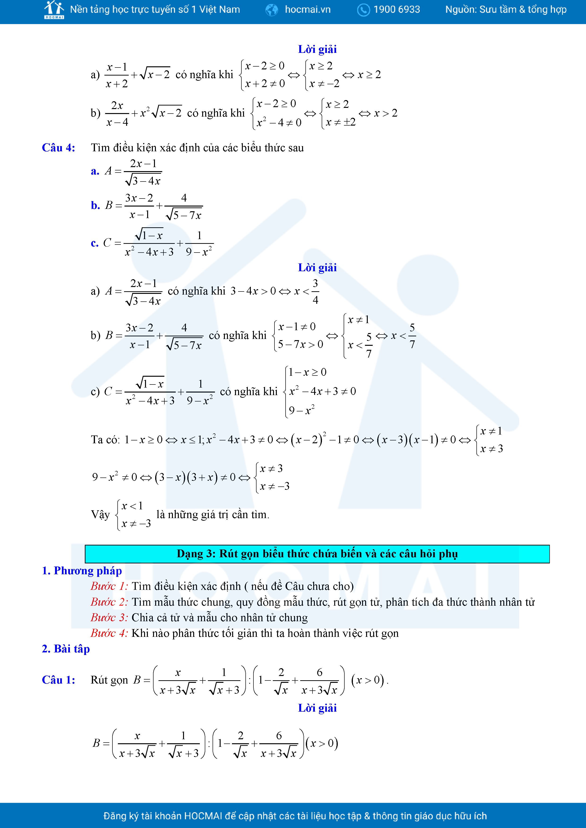 Chuyên đề rút gọn biểu thức và bài toán liên quan ôn thi vào lớp 10