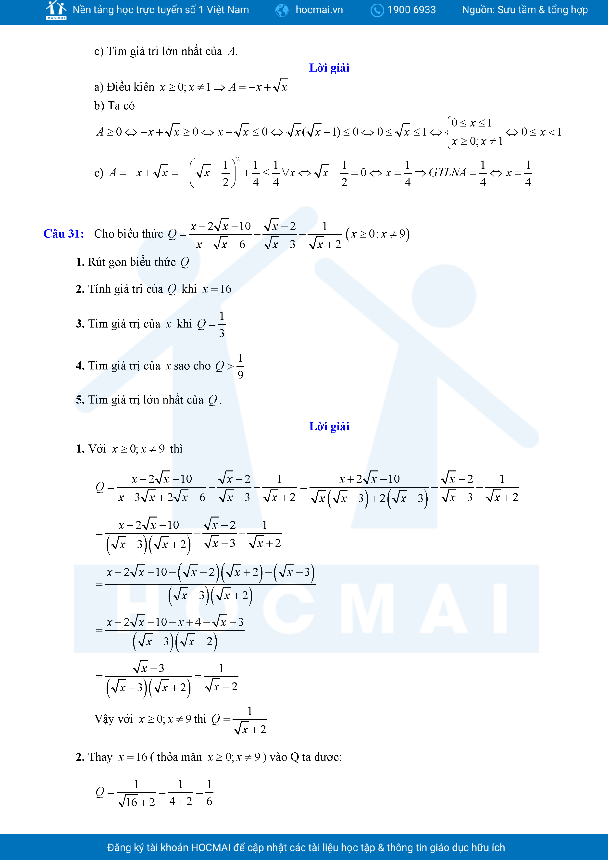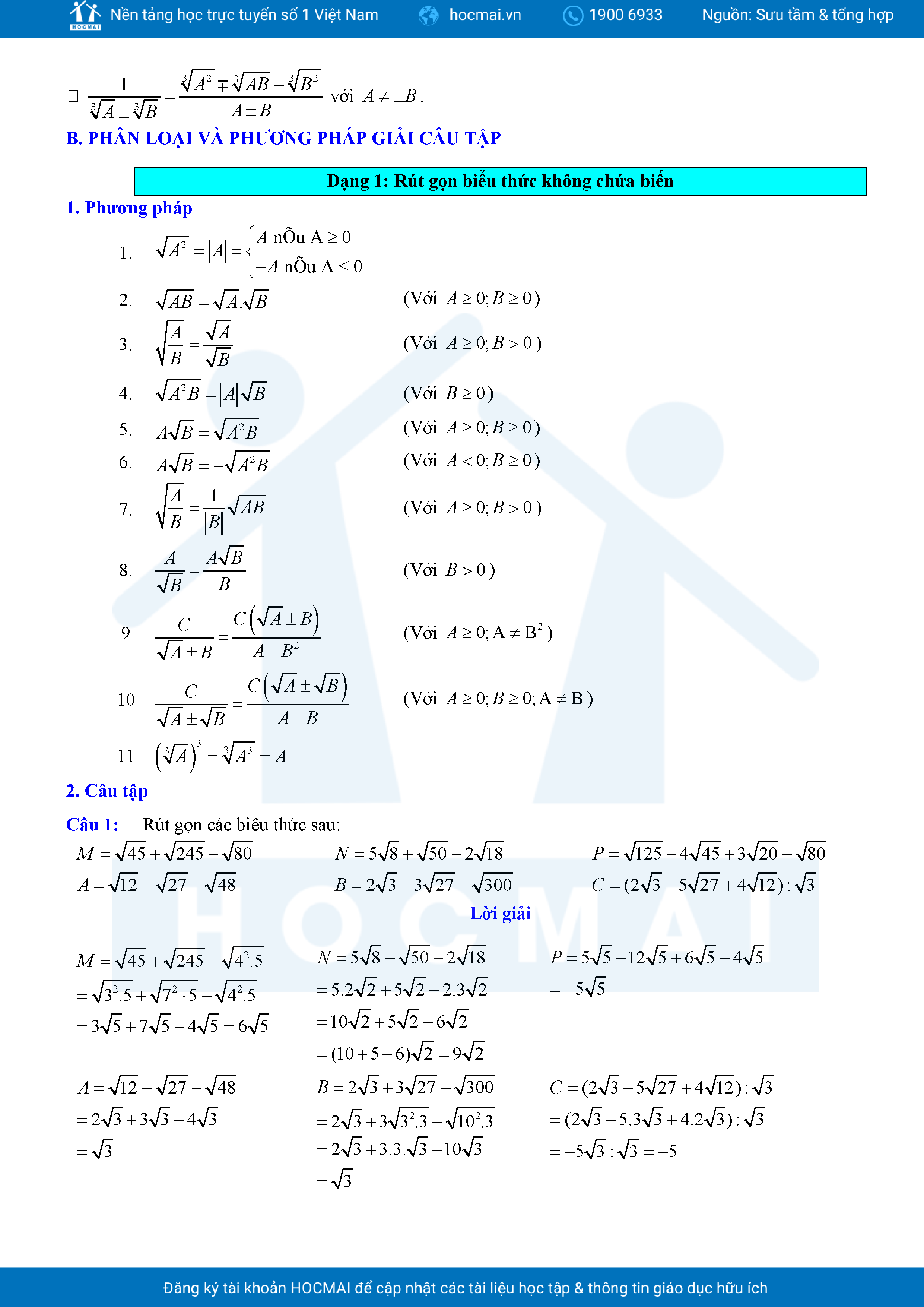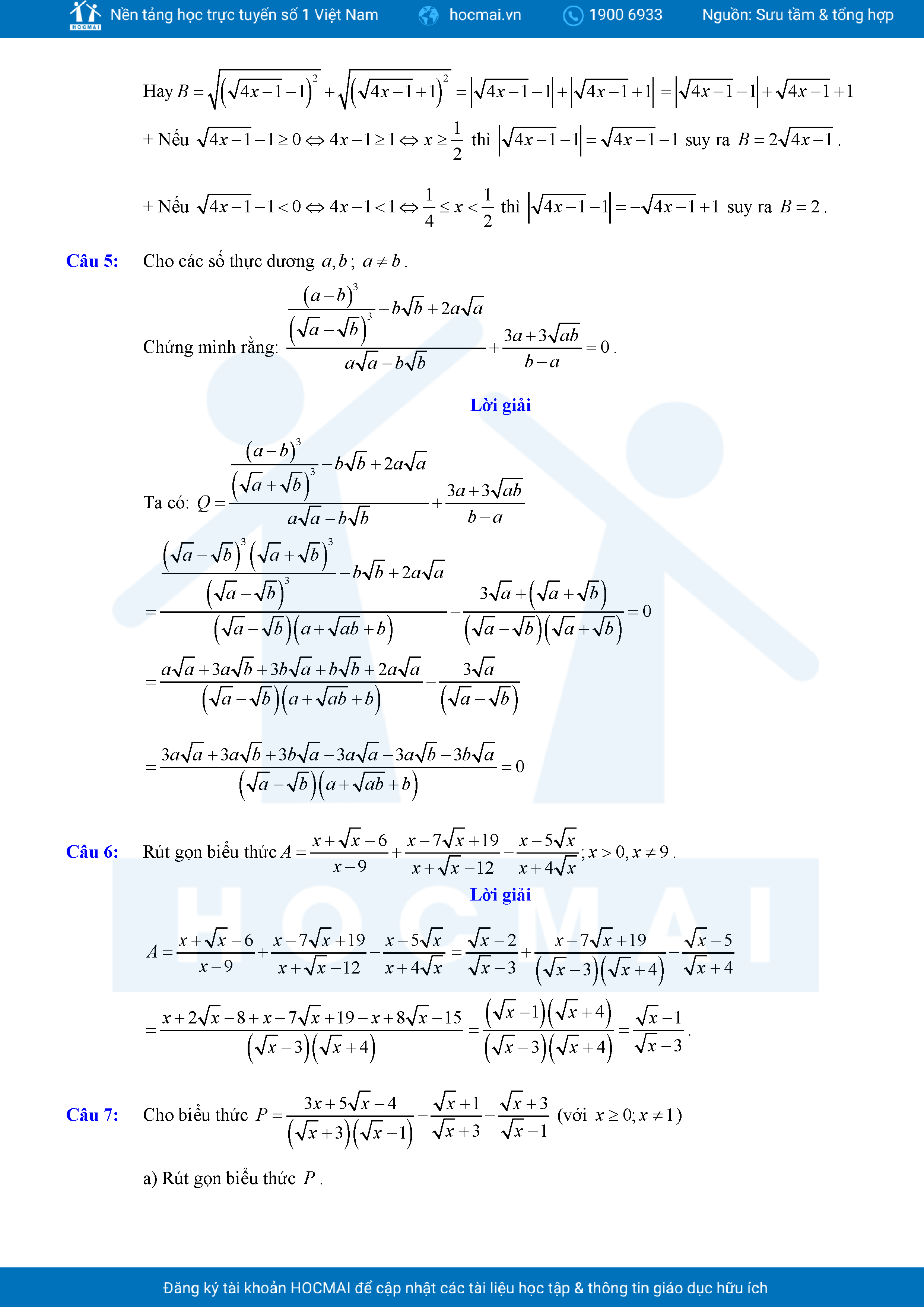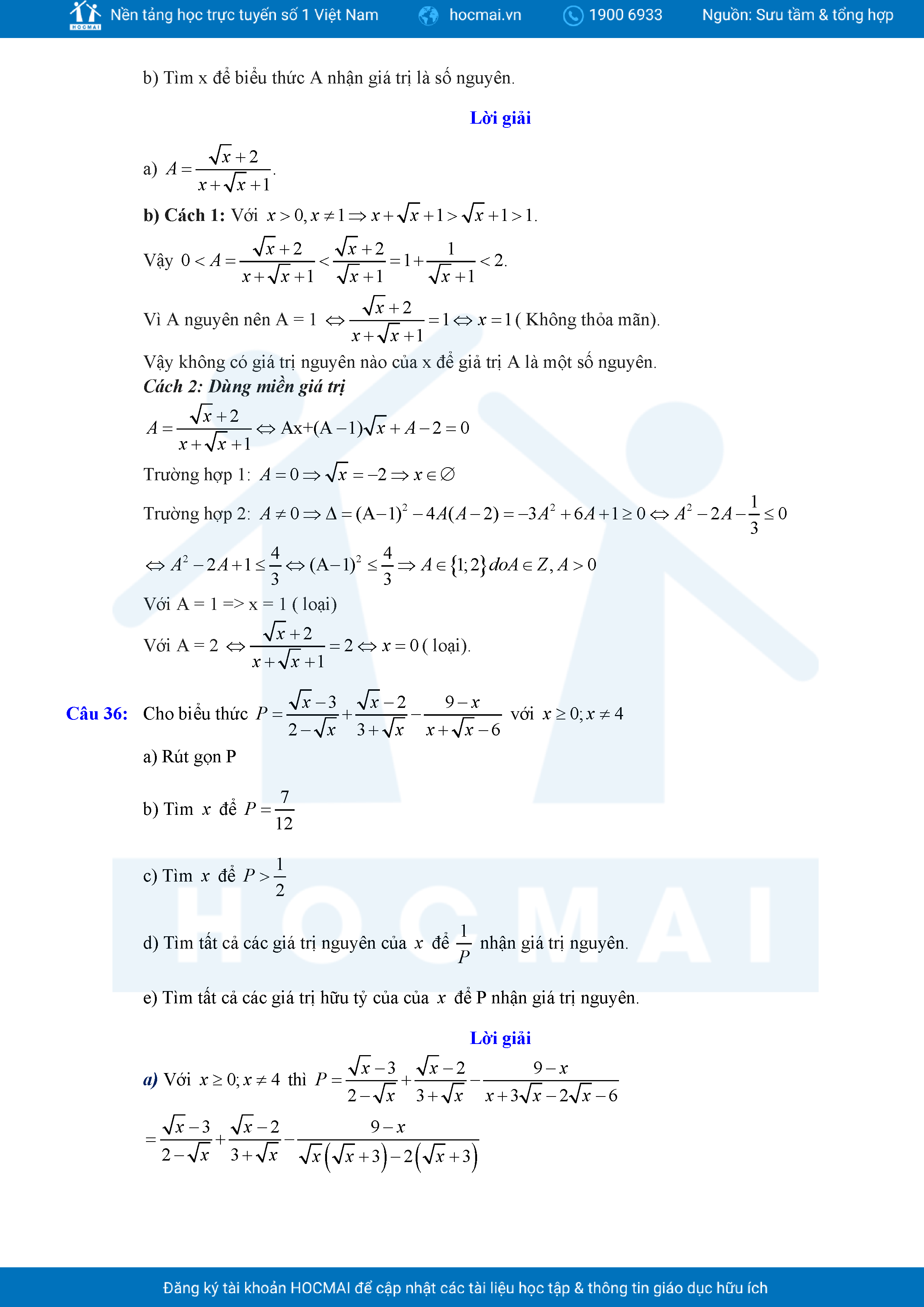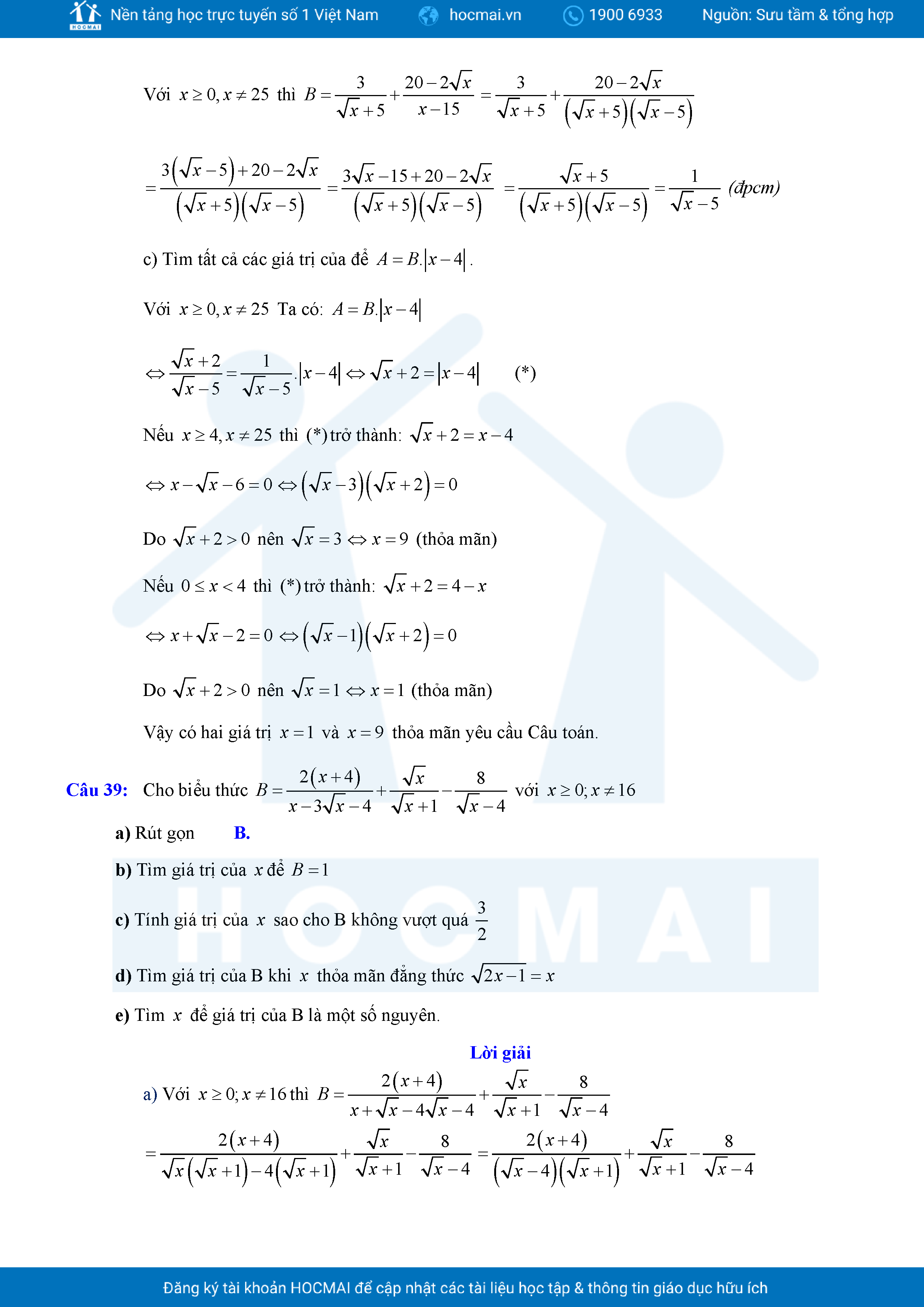 Chuyên đề rút gọn biểu thức và bài toán liên quan ôn thi vào lớp 10