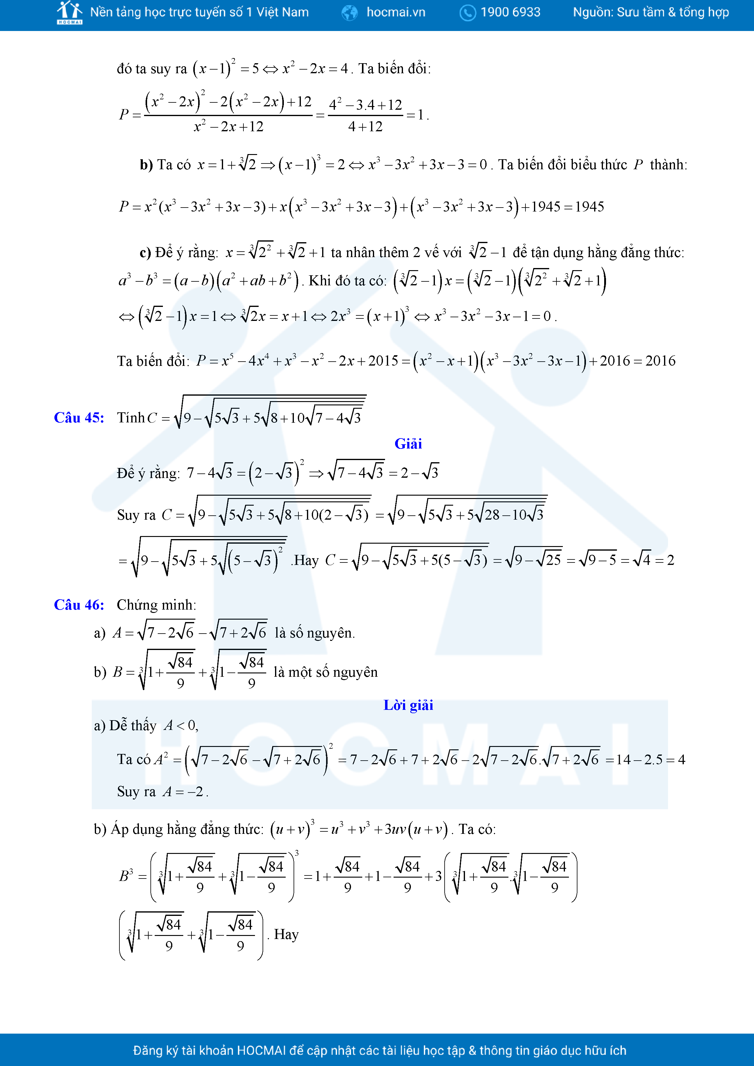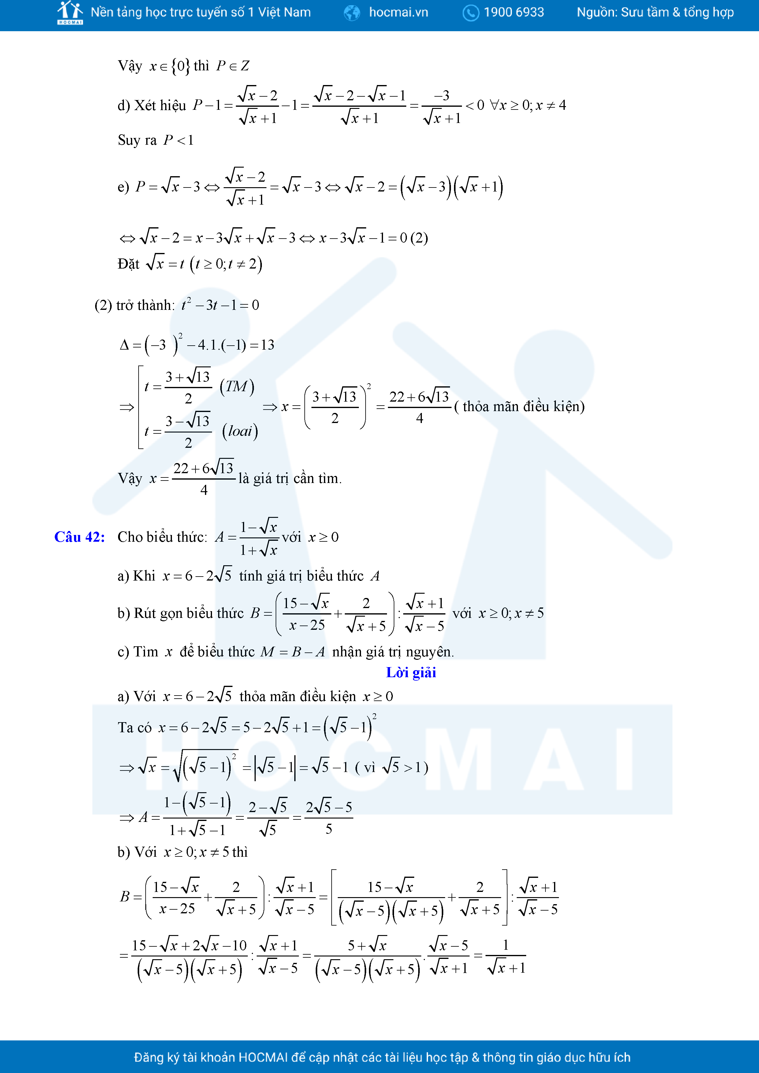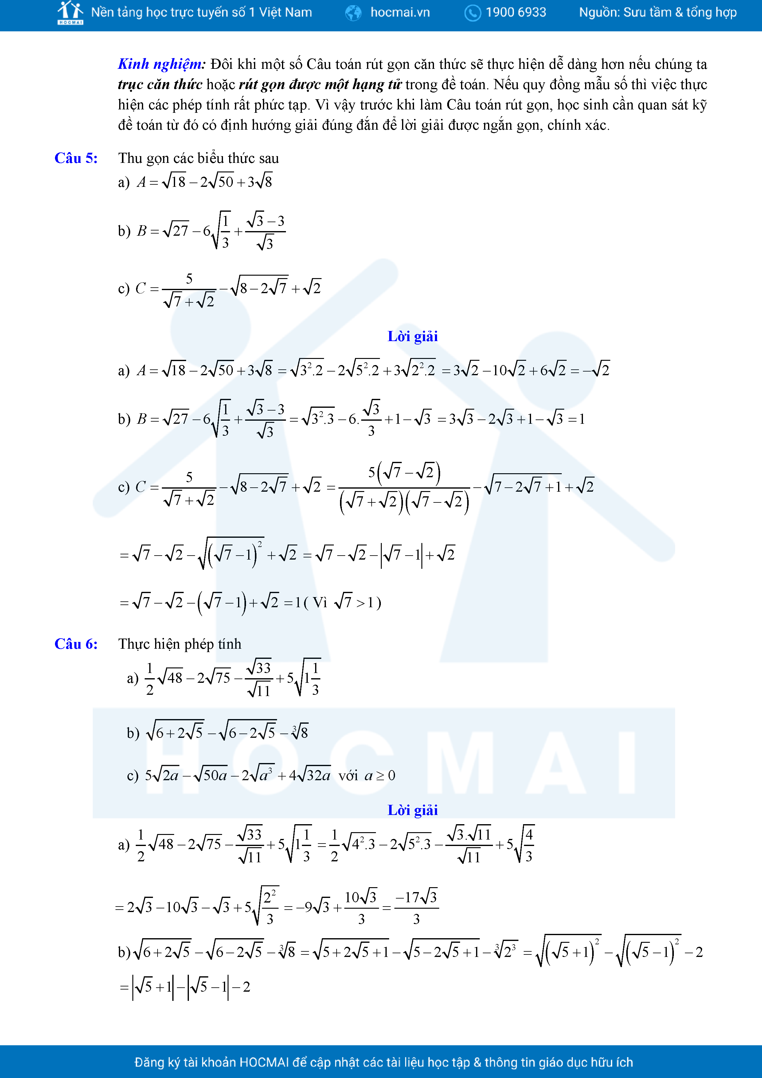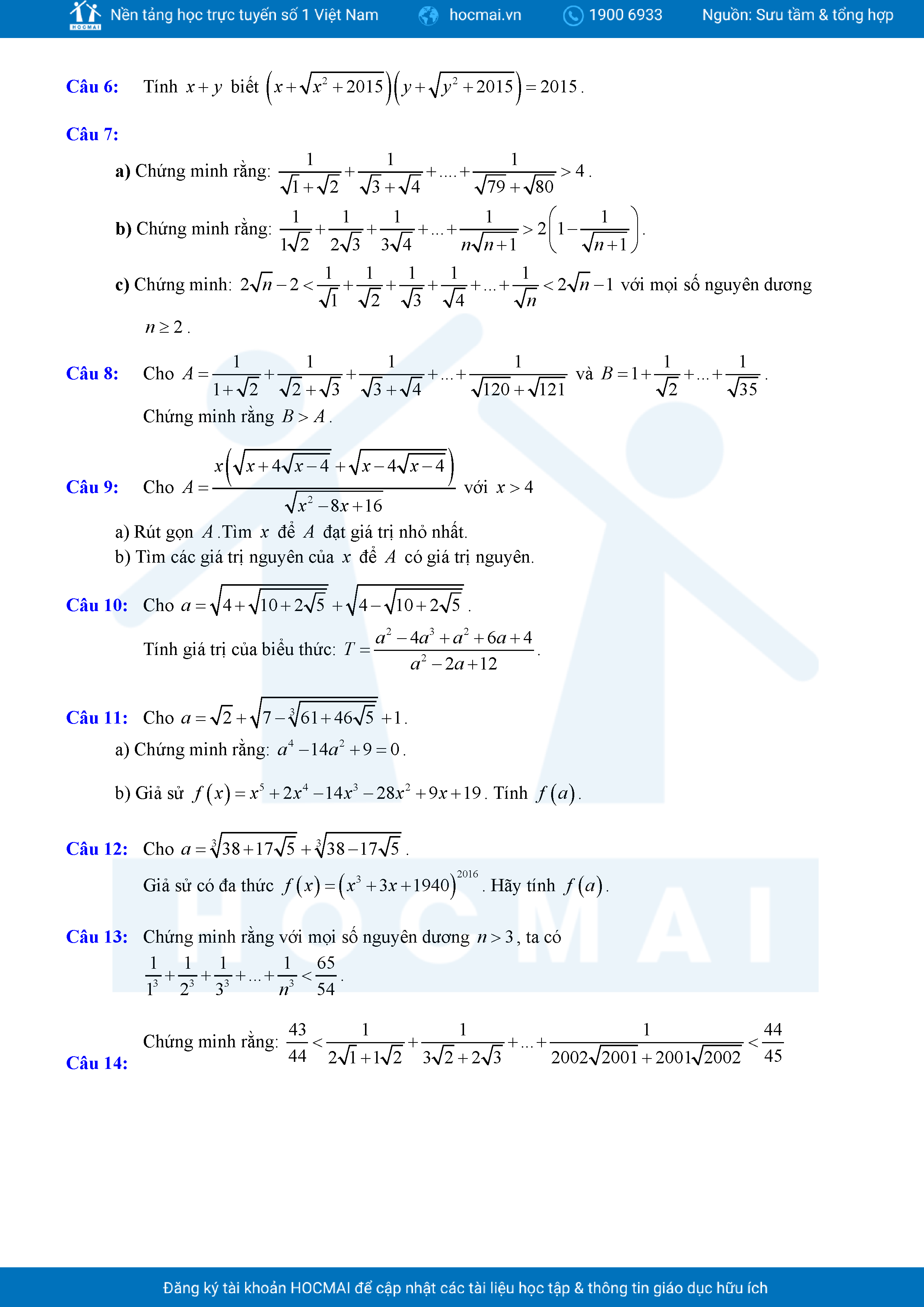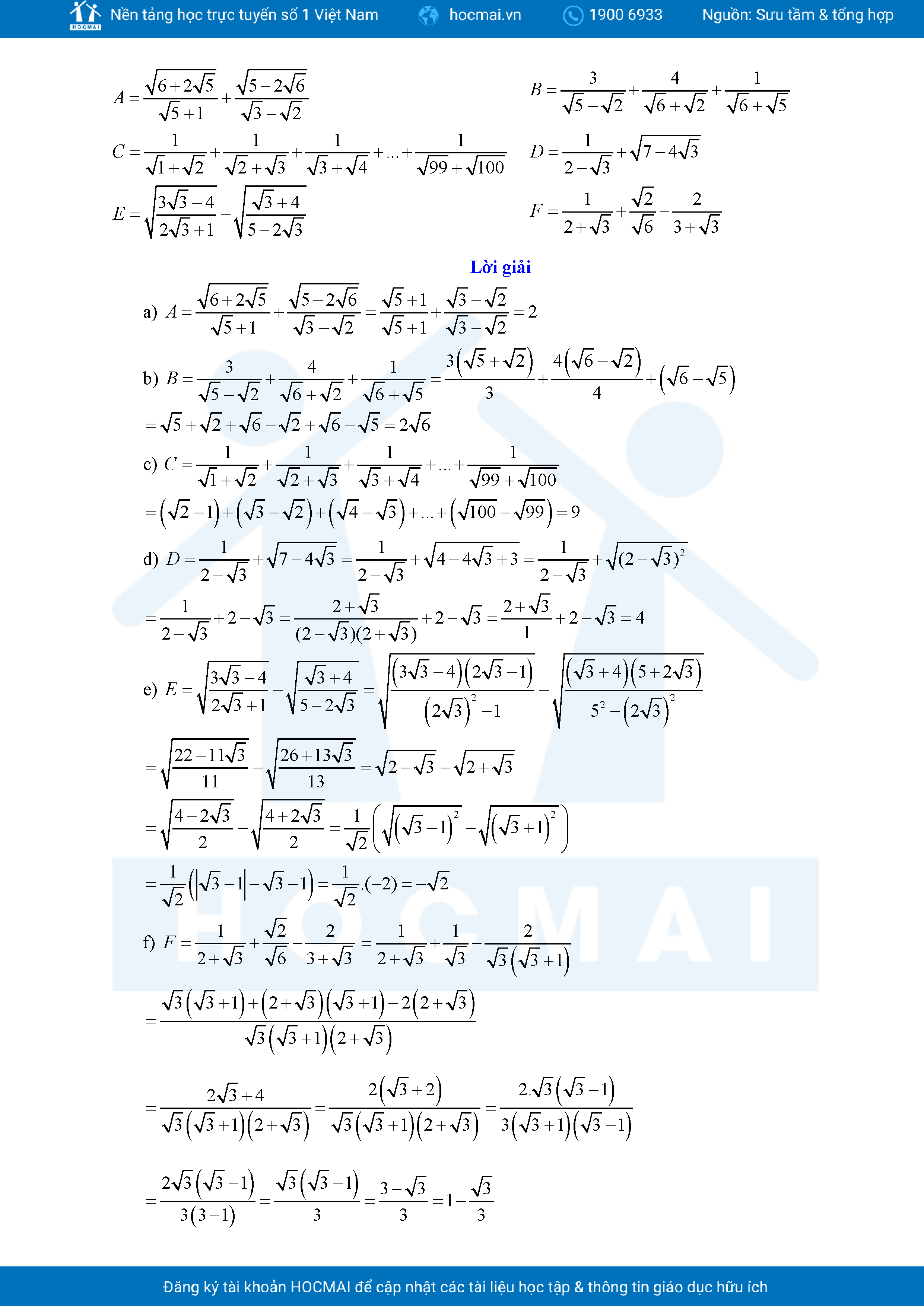 Chuyên đề rút gọn biểu thức và bài toán liên quan ôn thi vào lớp 10