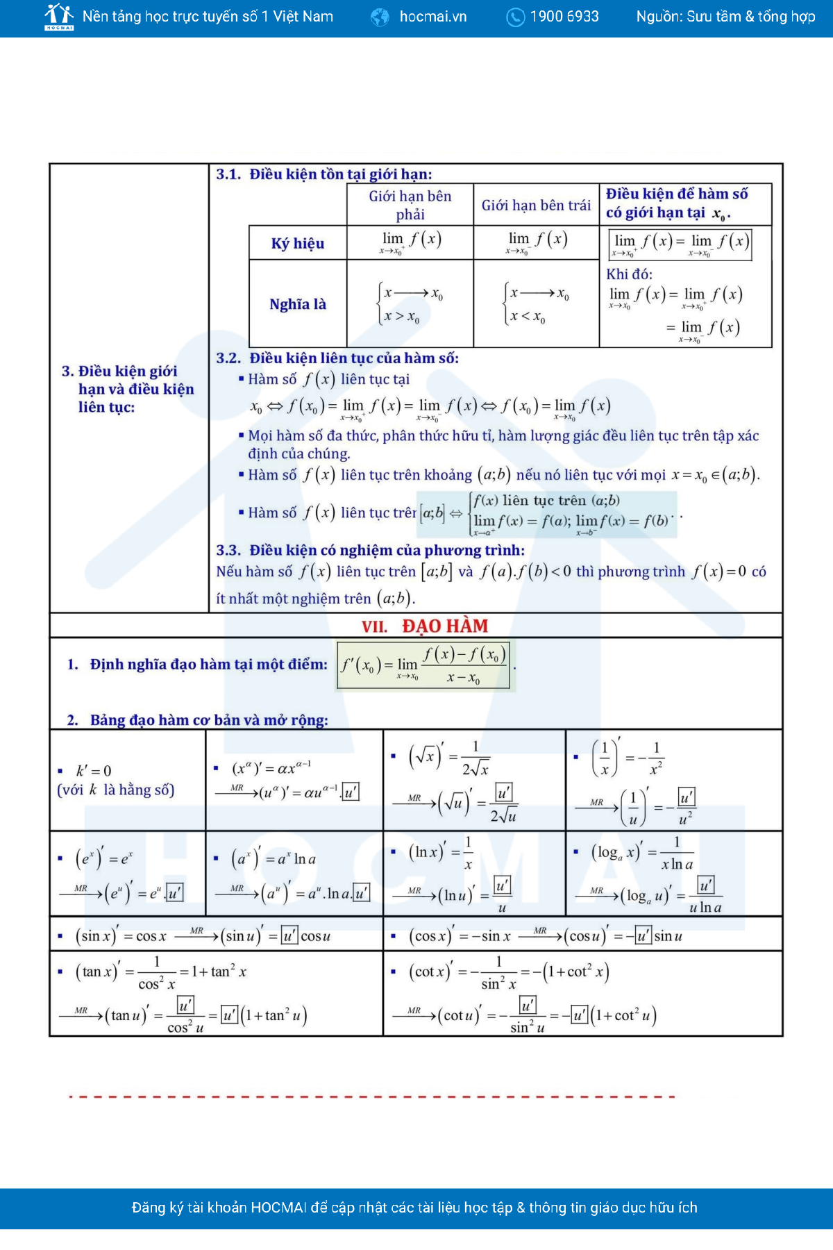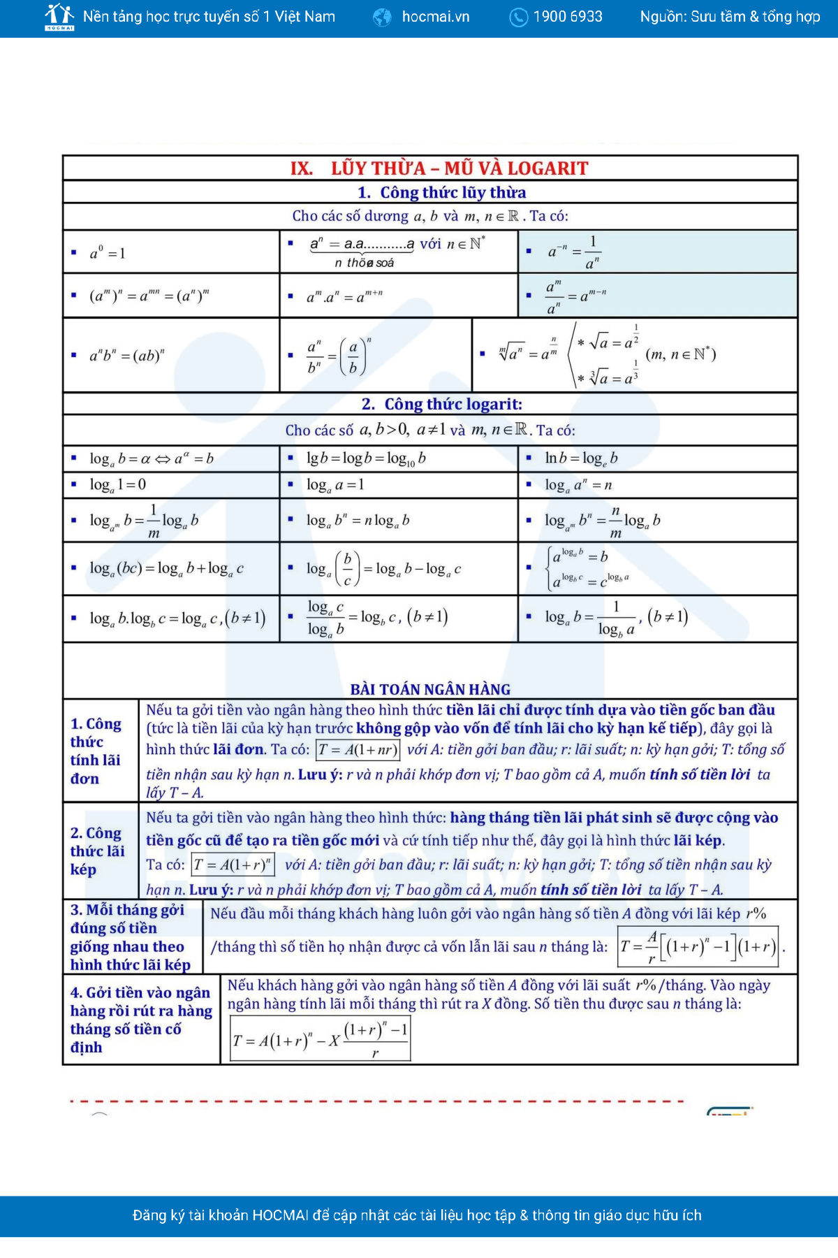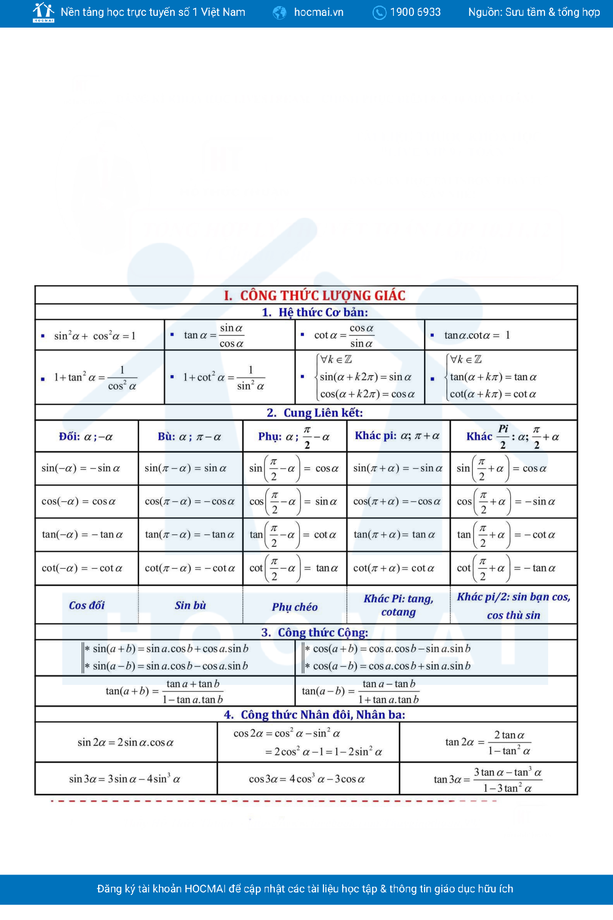 FULL CÔNG THỨC TOÁN THPT CẦN NHỚ