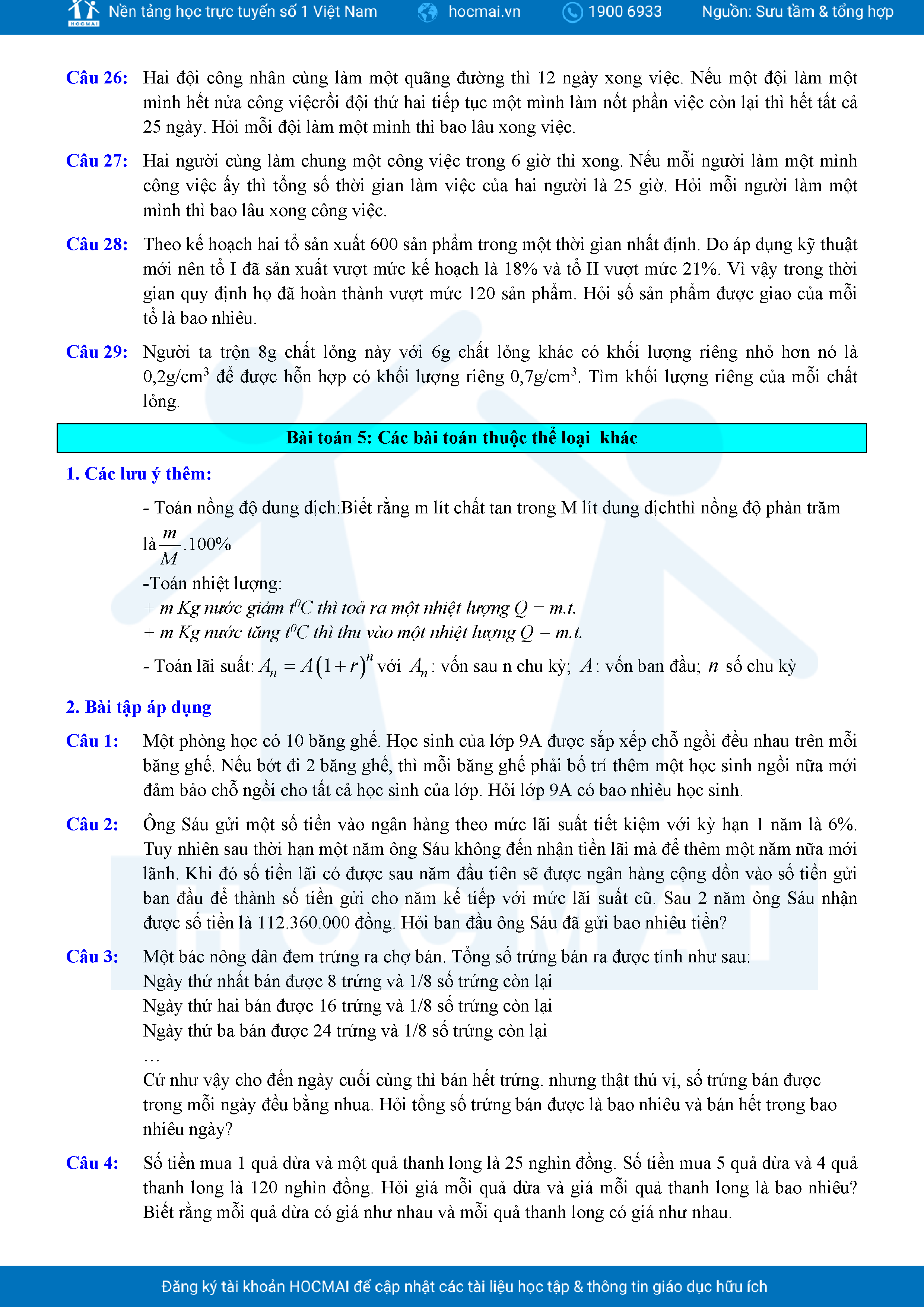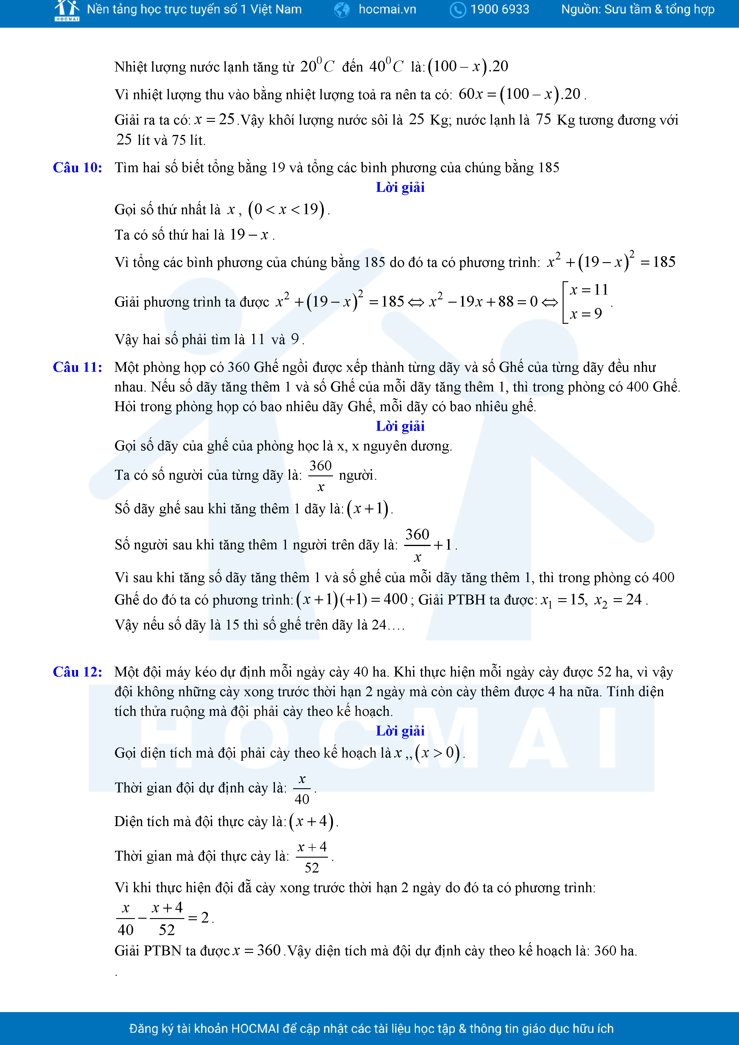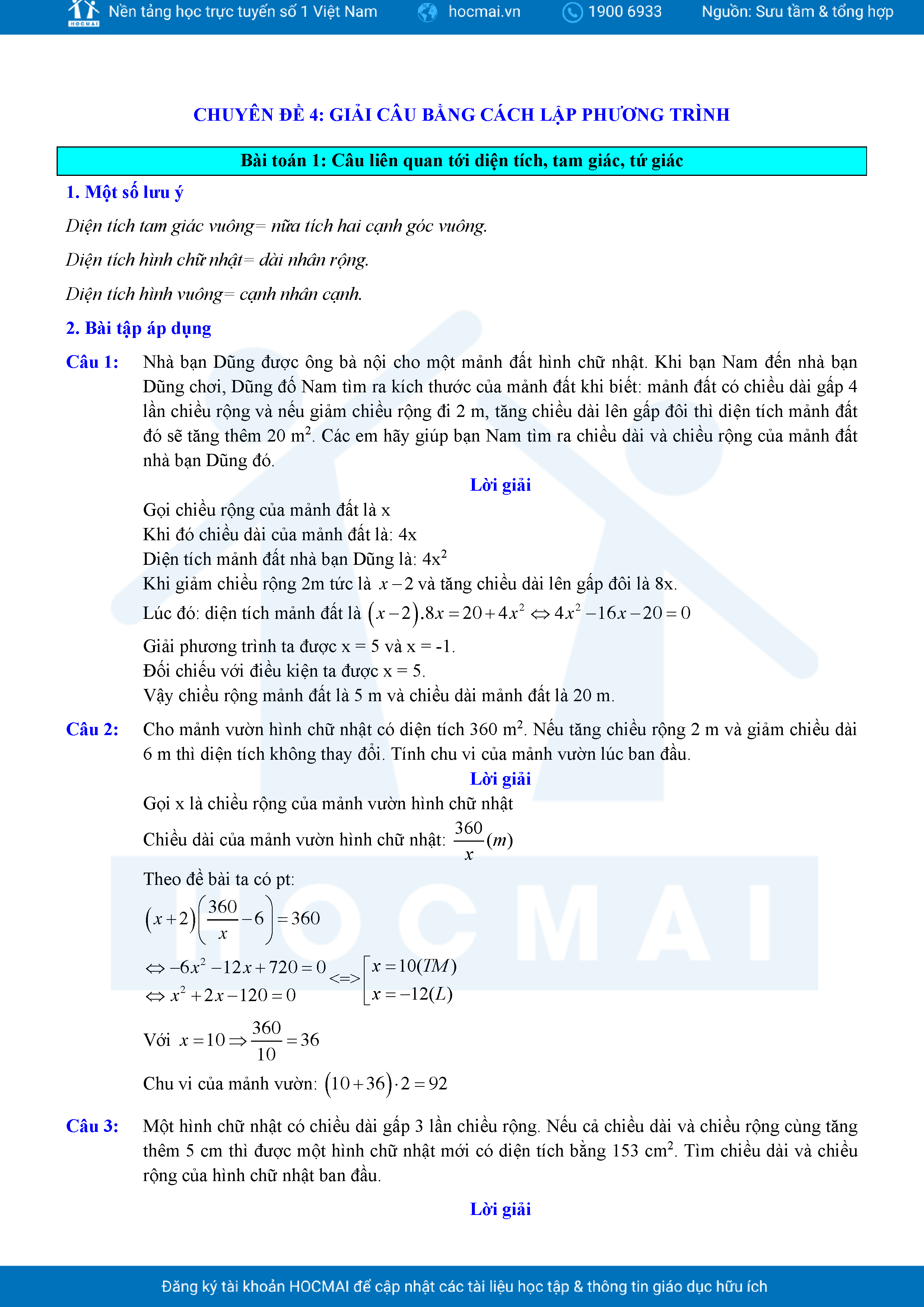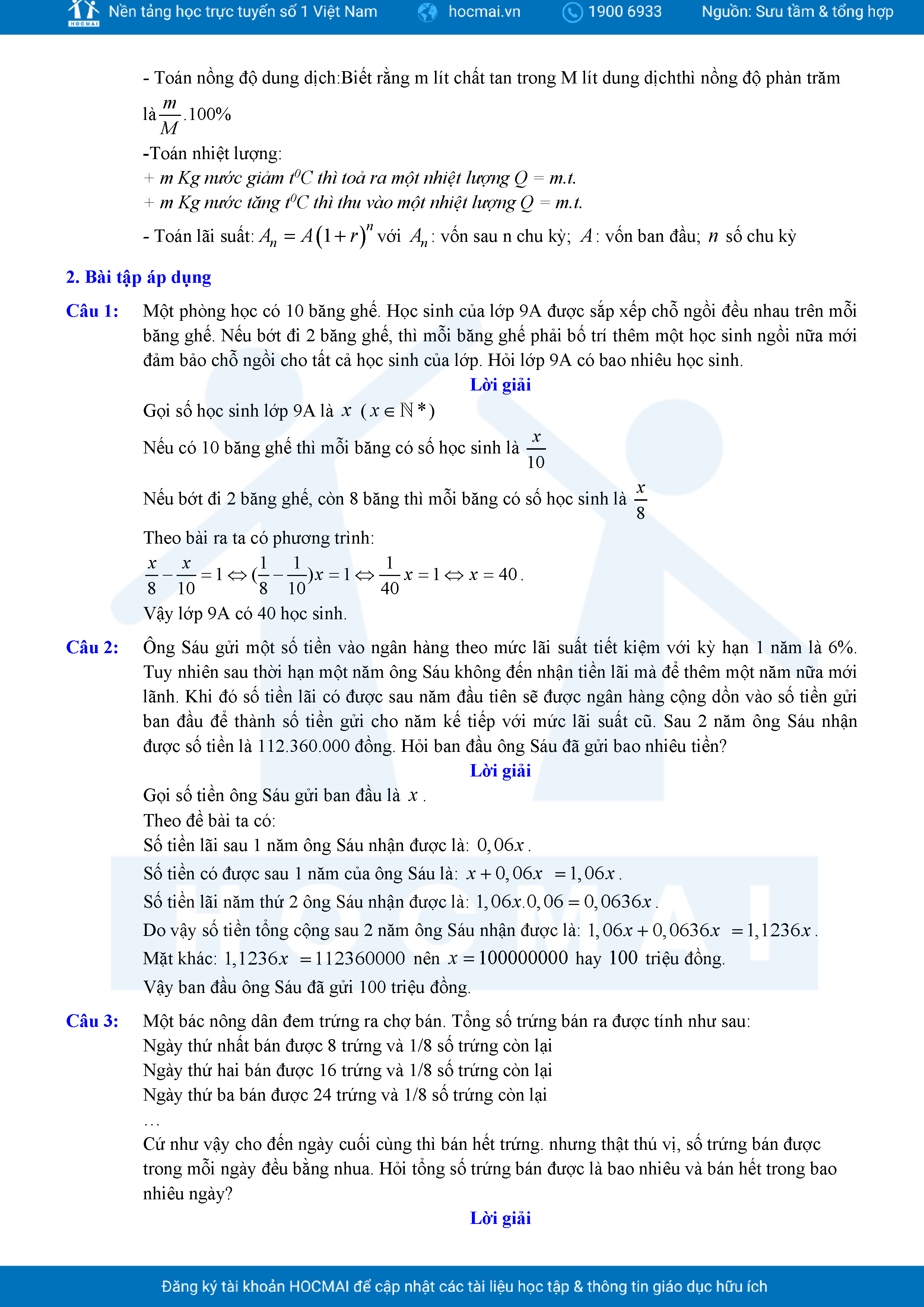 Chuyên đề giải bài toán bằng cách lập phương trình ôn thi vào lớp 10