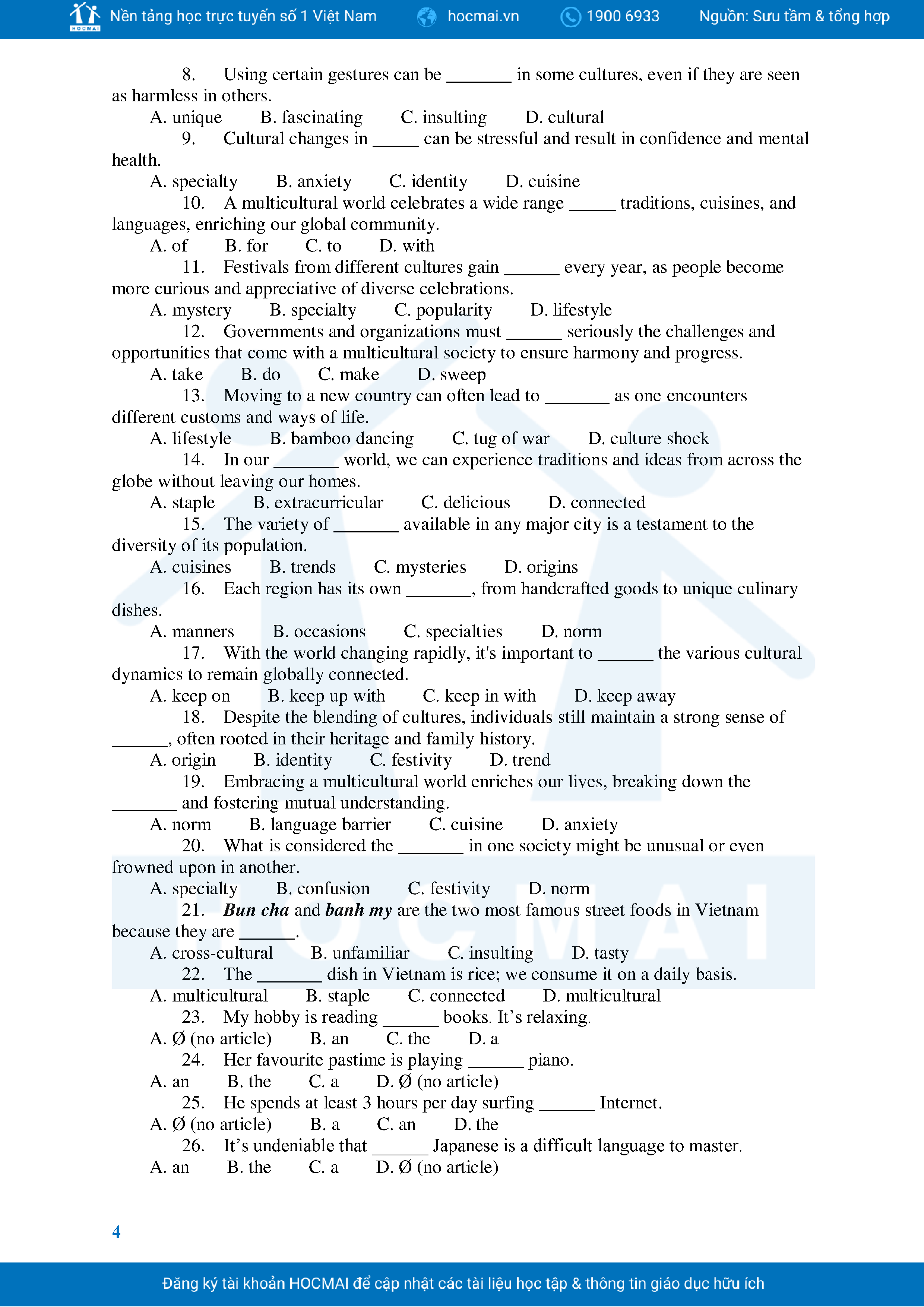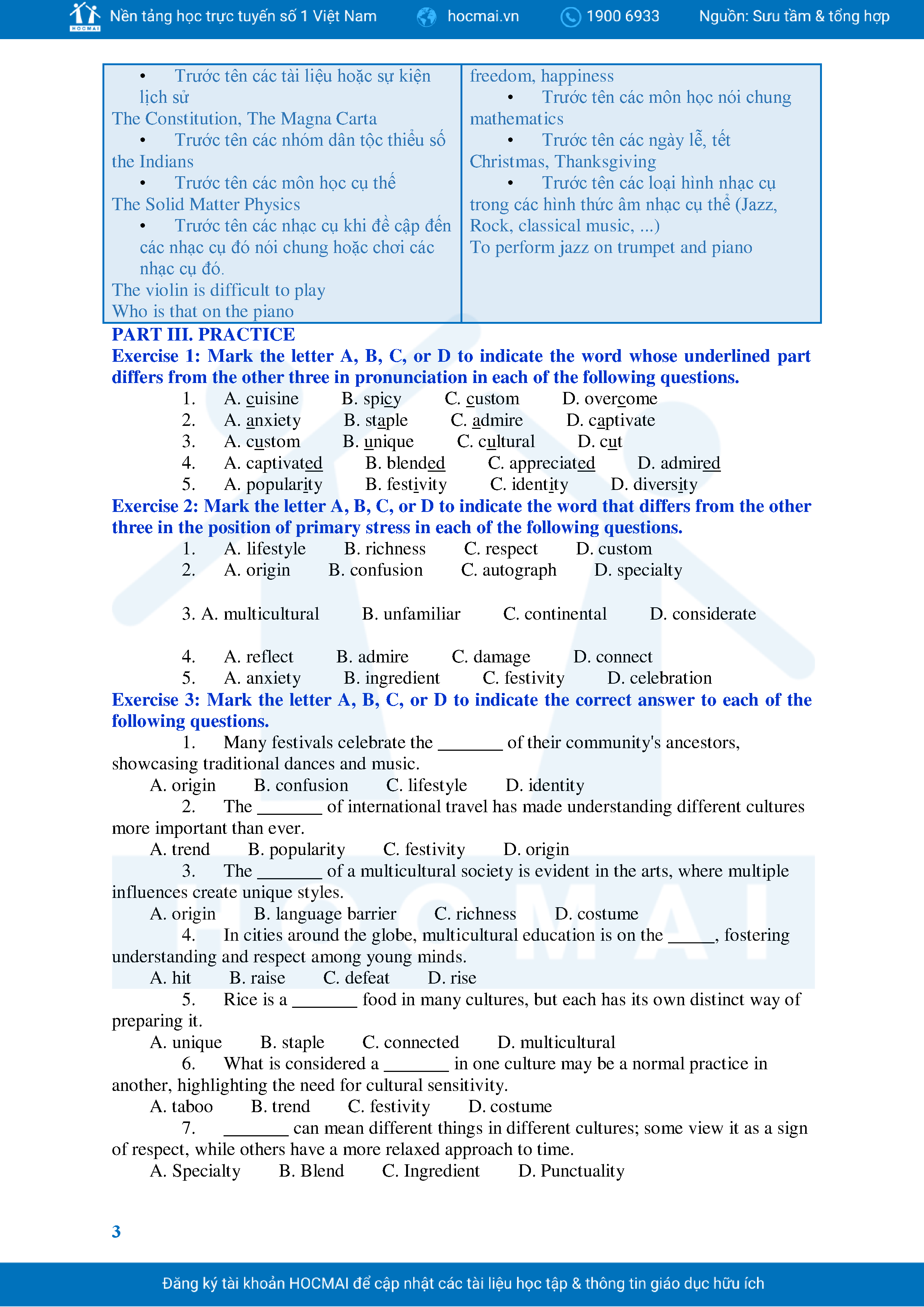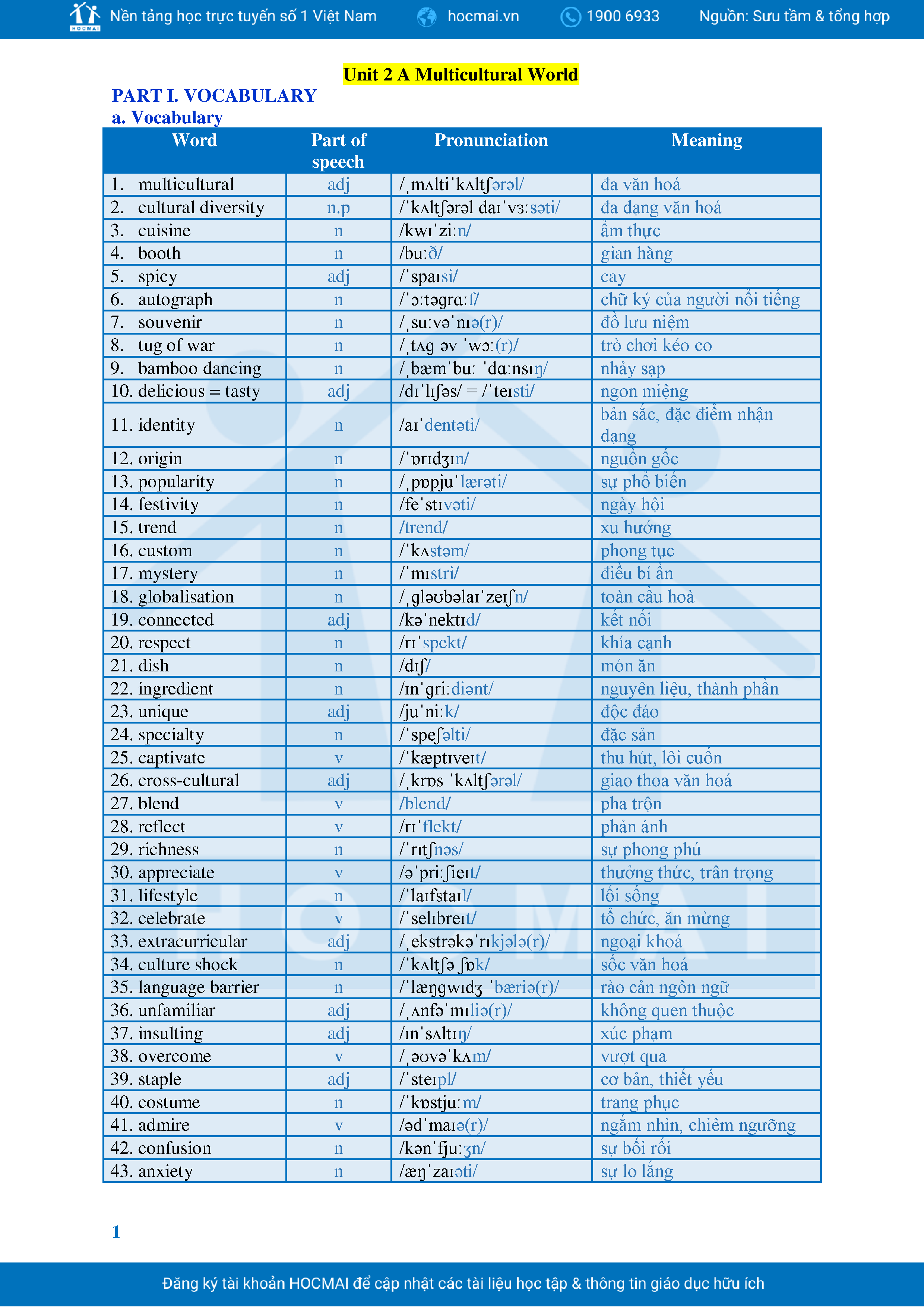 Bài Tập Chuyên Sâu Tiếng Anh 12 Unit 2 A Multicultural World