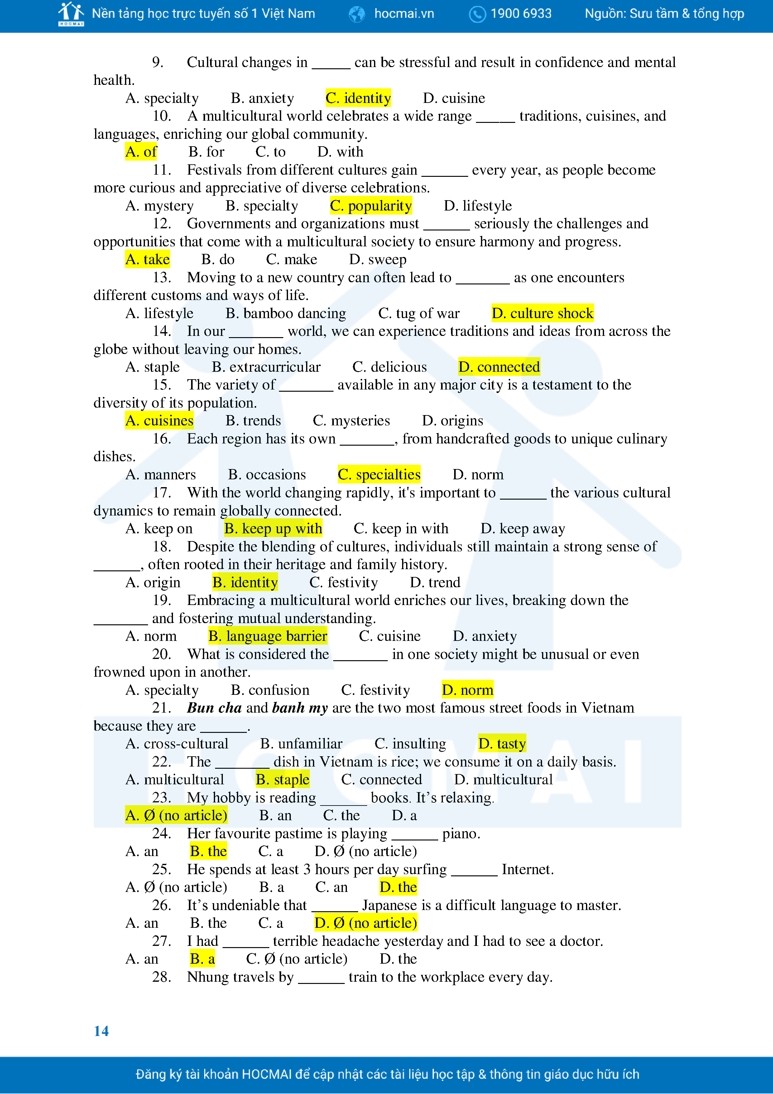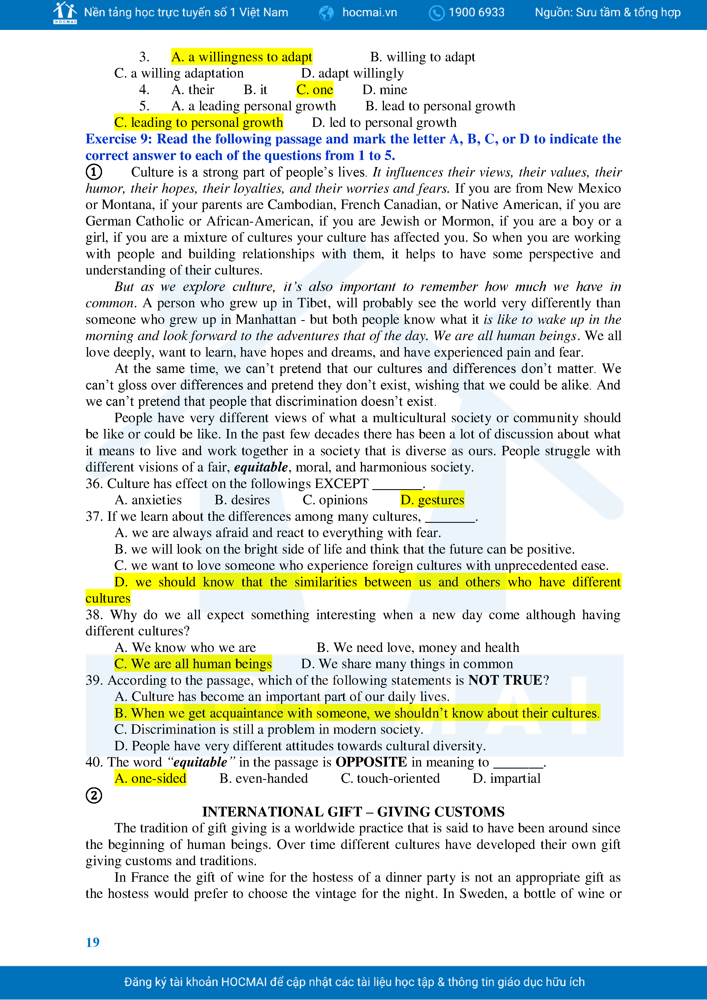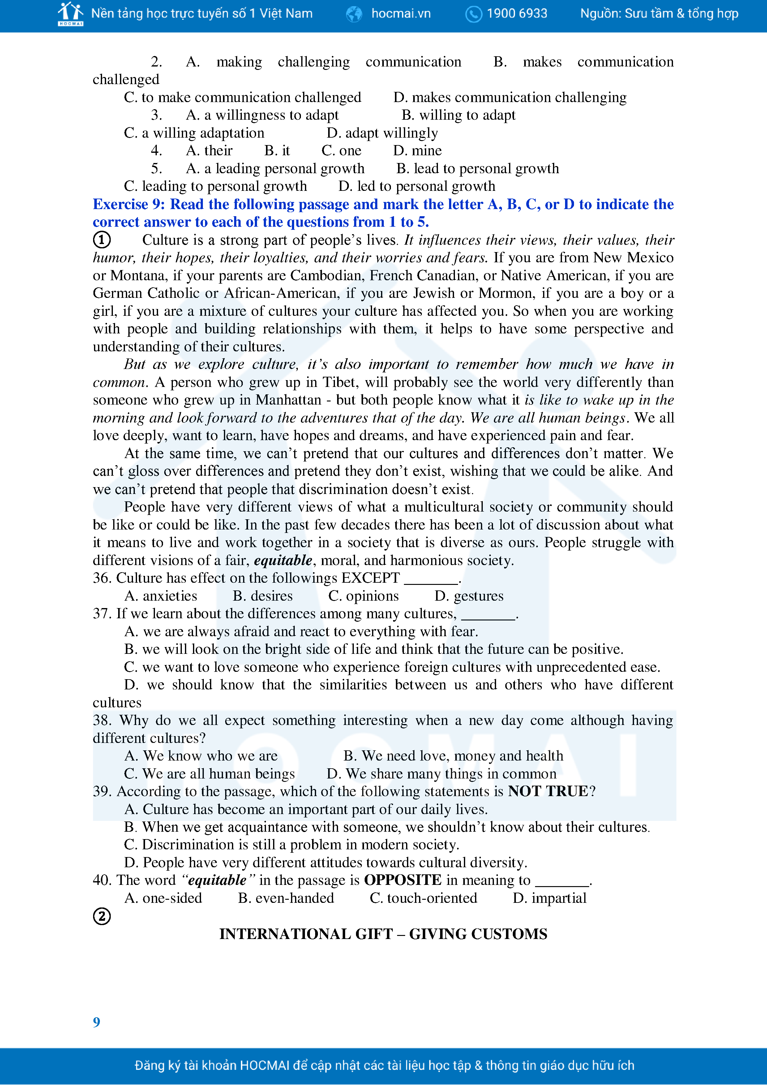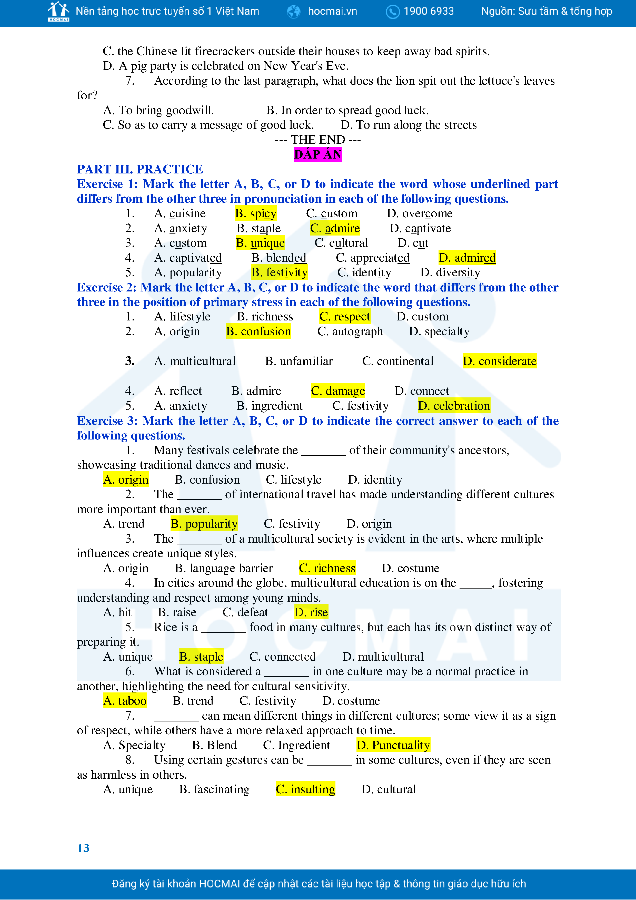 Bài Tập Chuyên Sâu Tiếng Anh 12 Unit 2 A Multicultural World