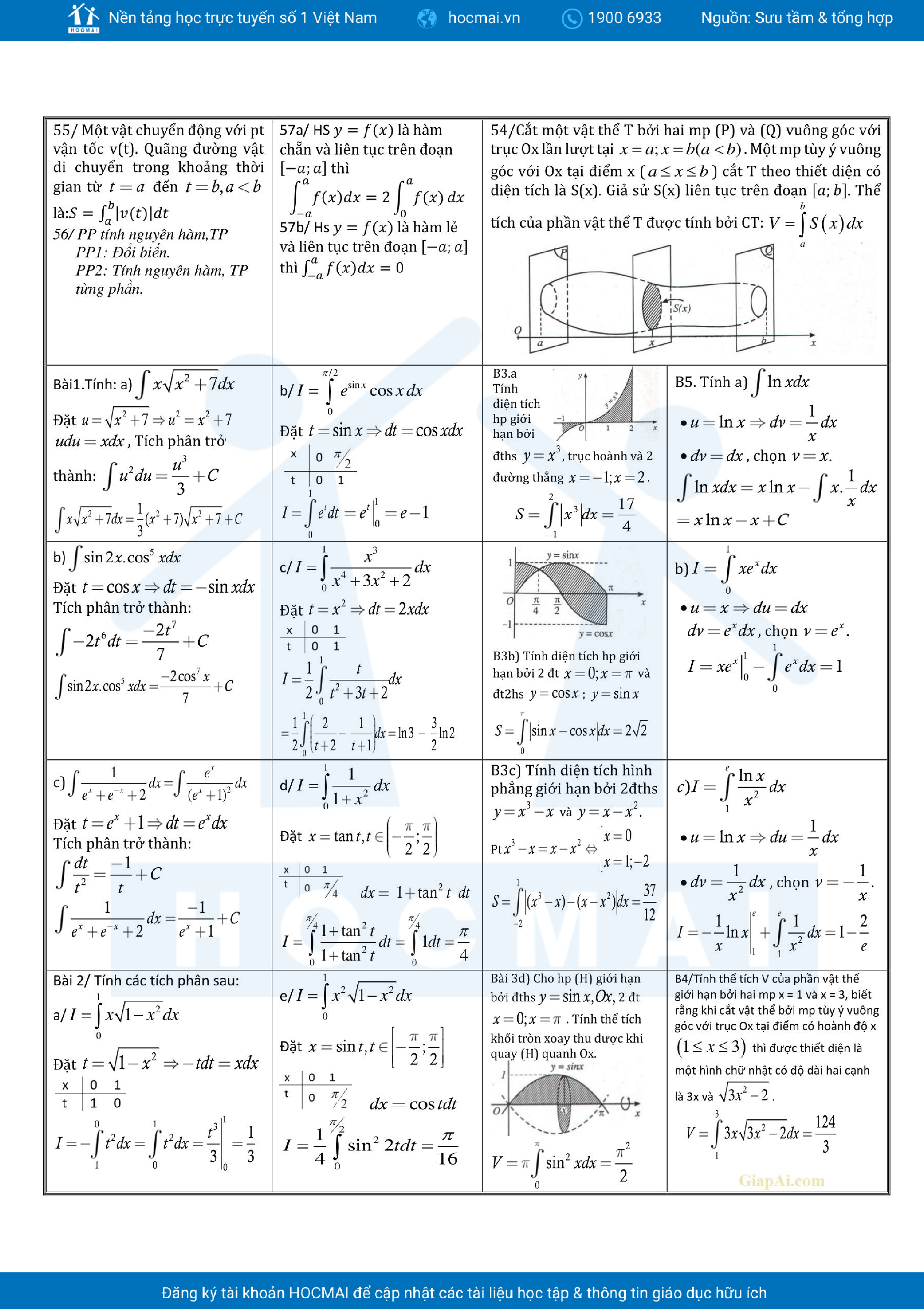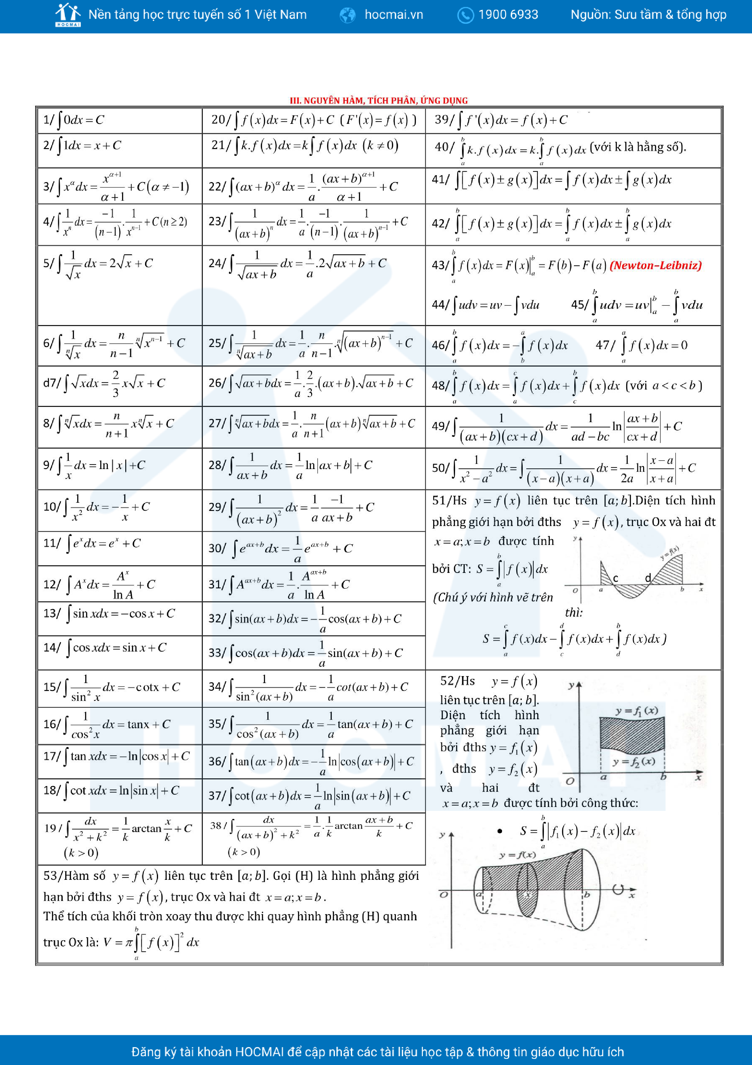 TỔNG HỢP CÔNG THỨC TOÁN 12 CHỦ ĐỀ: NGUYÊN HÀM, TÍCH PHÂN
