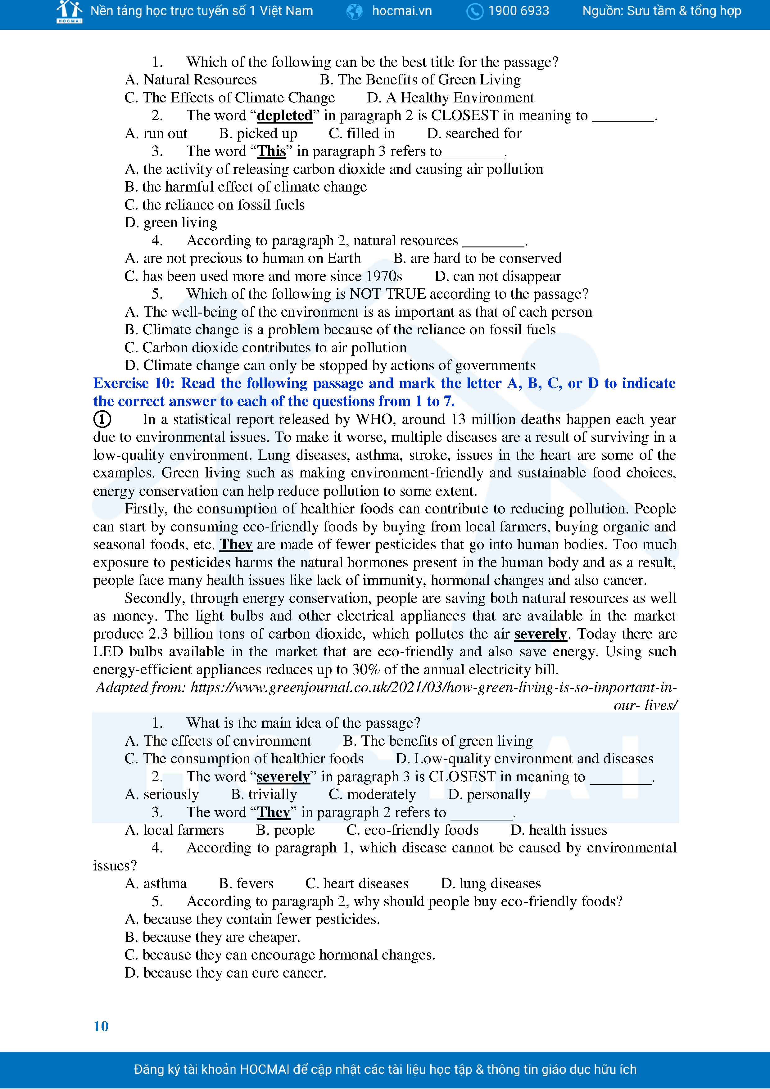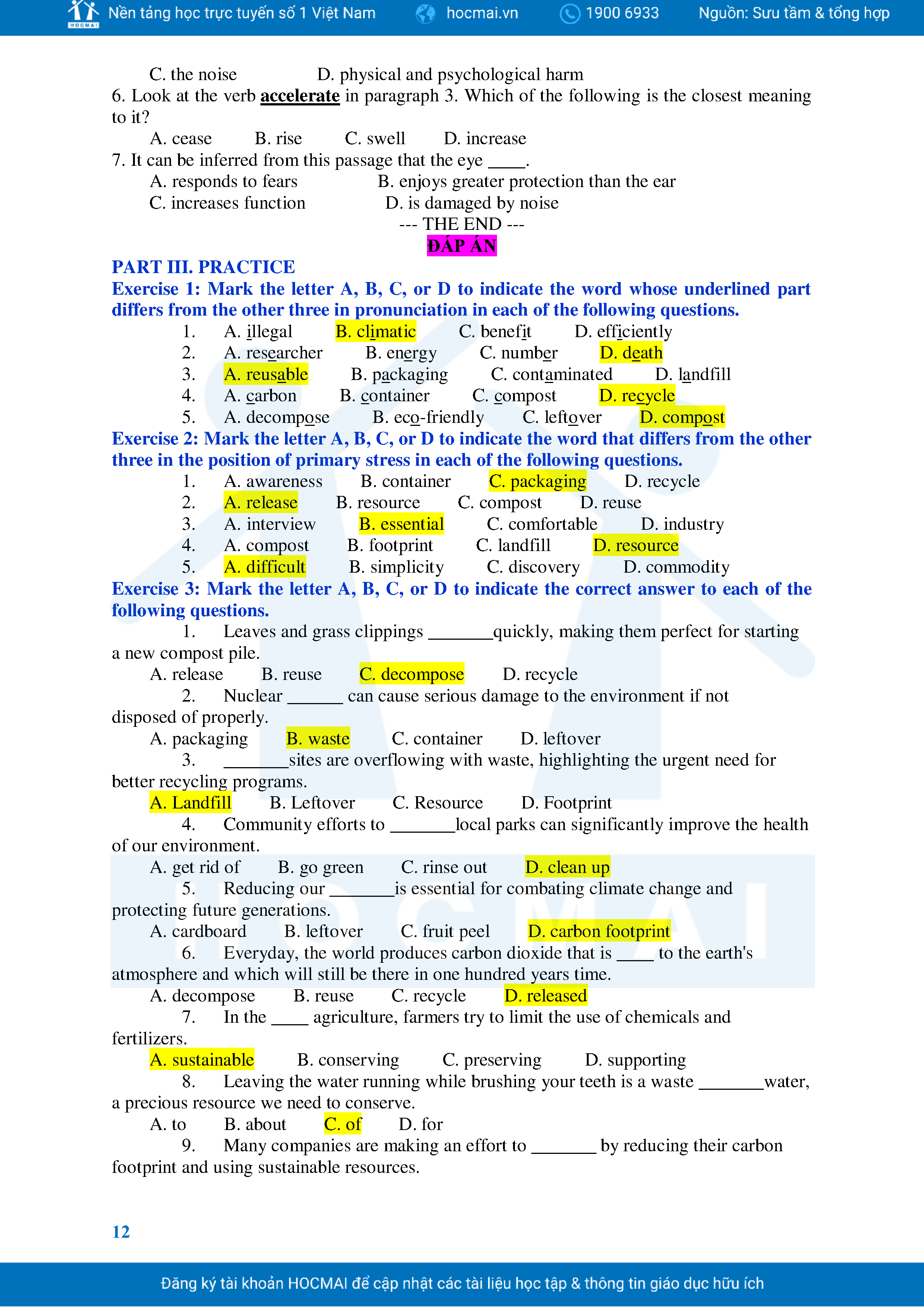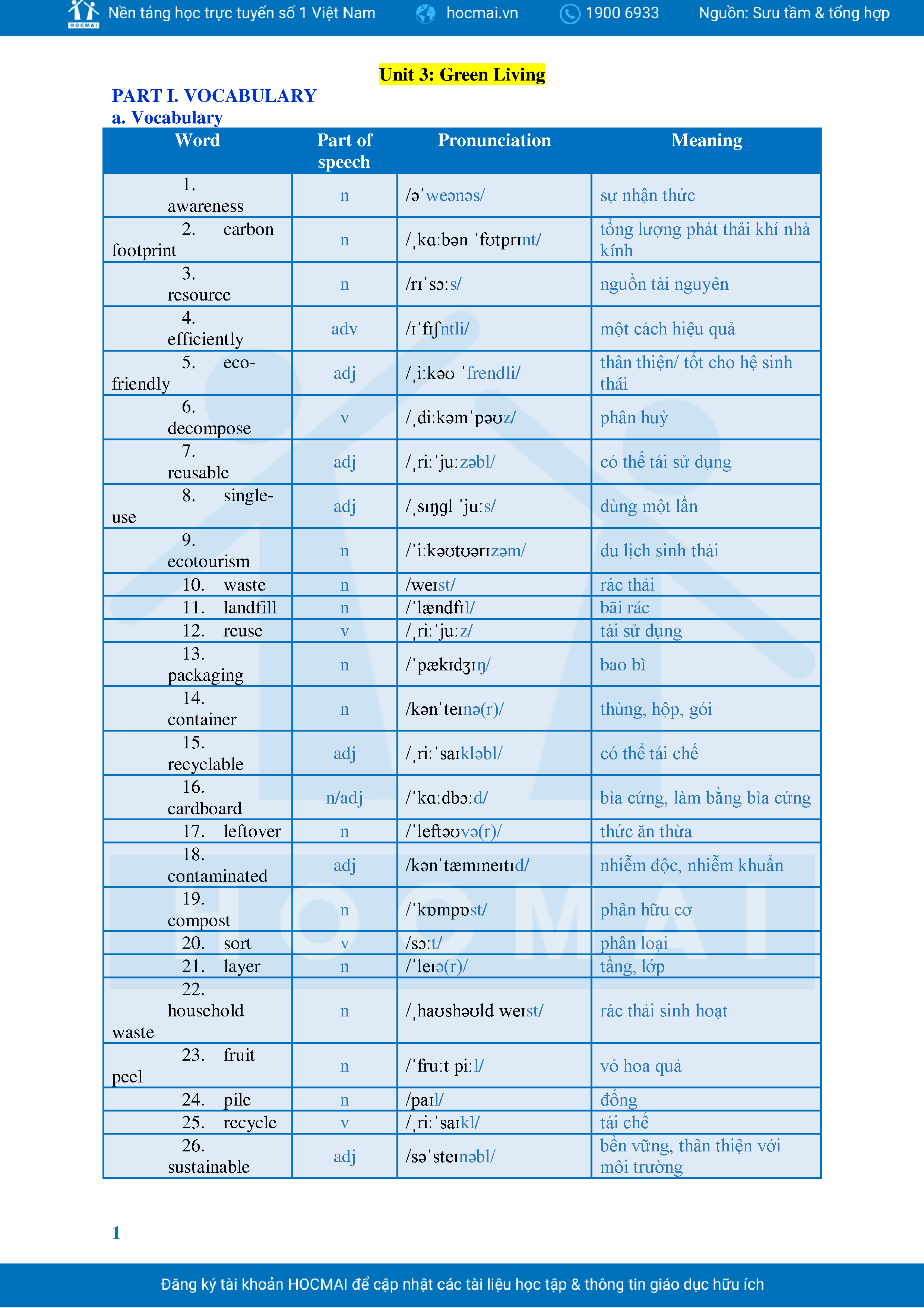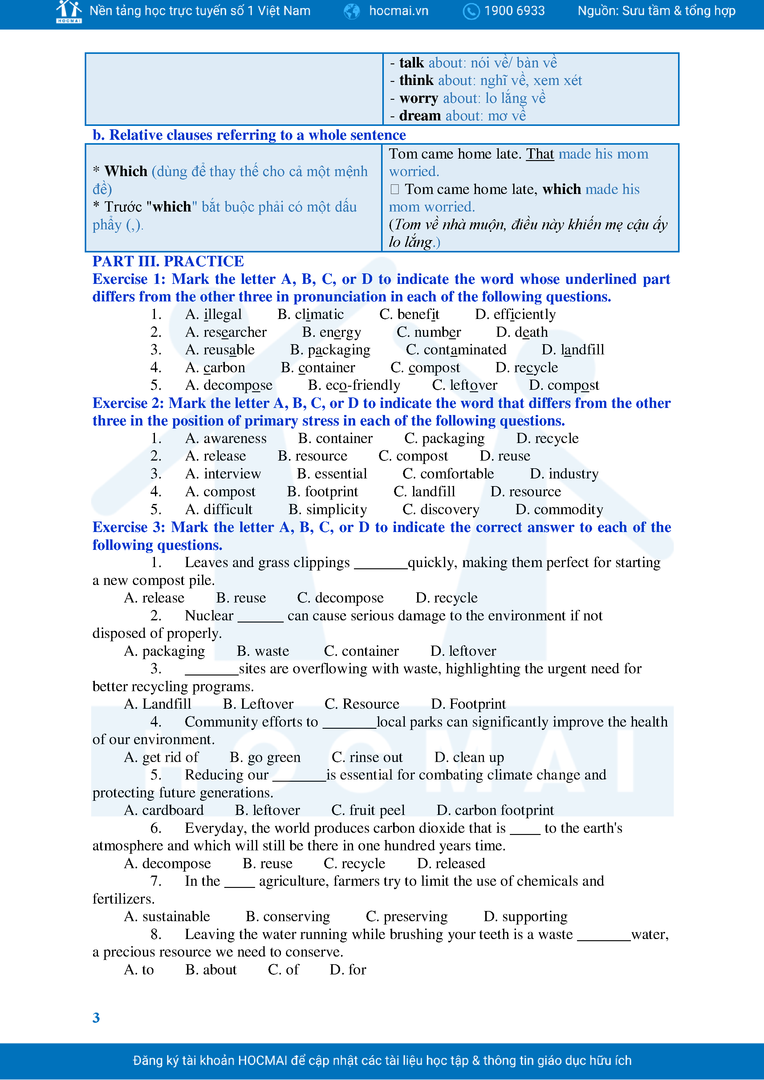 Bài Tập Chuyên Sâu Tiếng Anh 12 Unit 3 Green Living