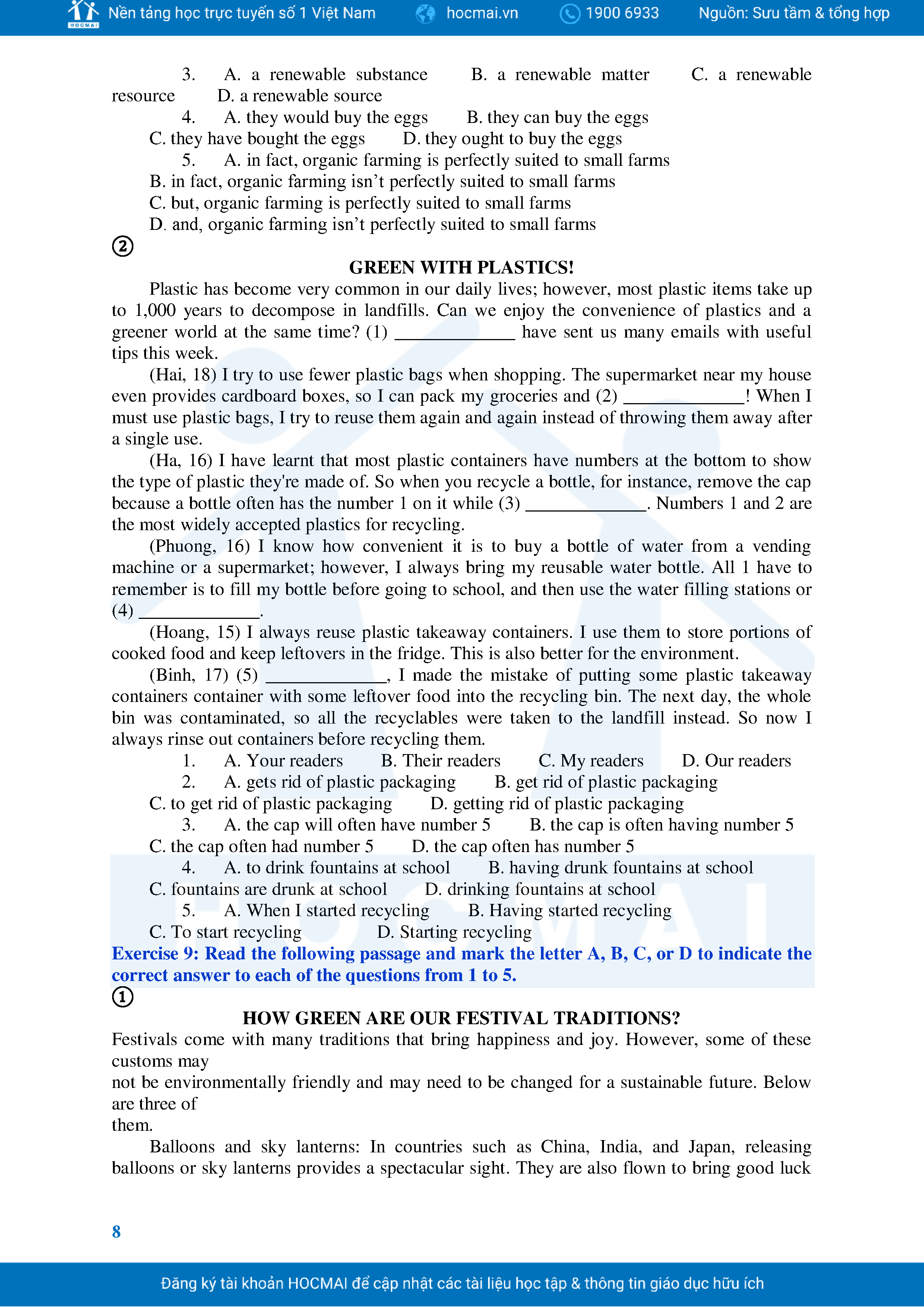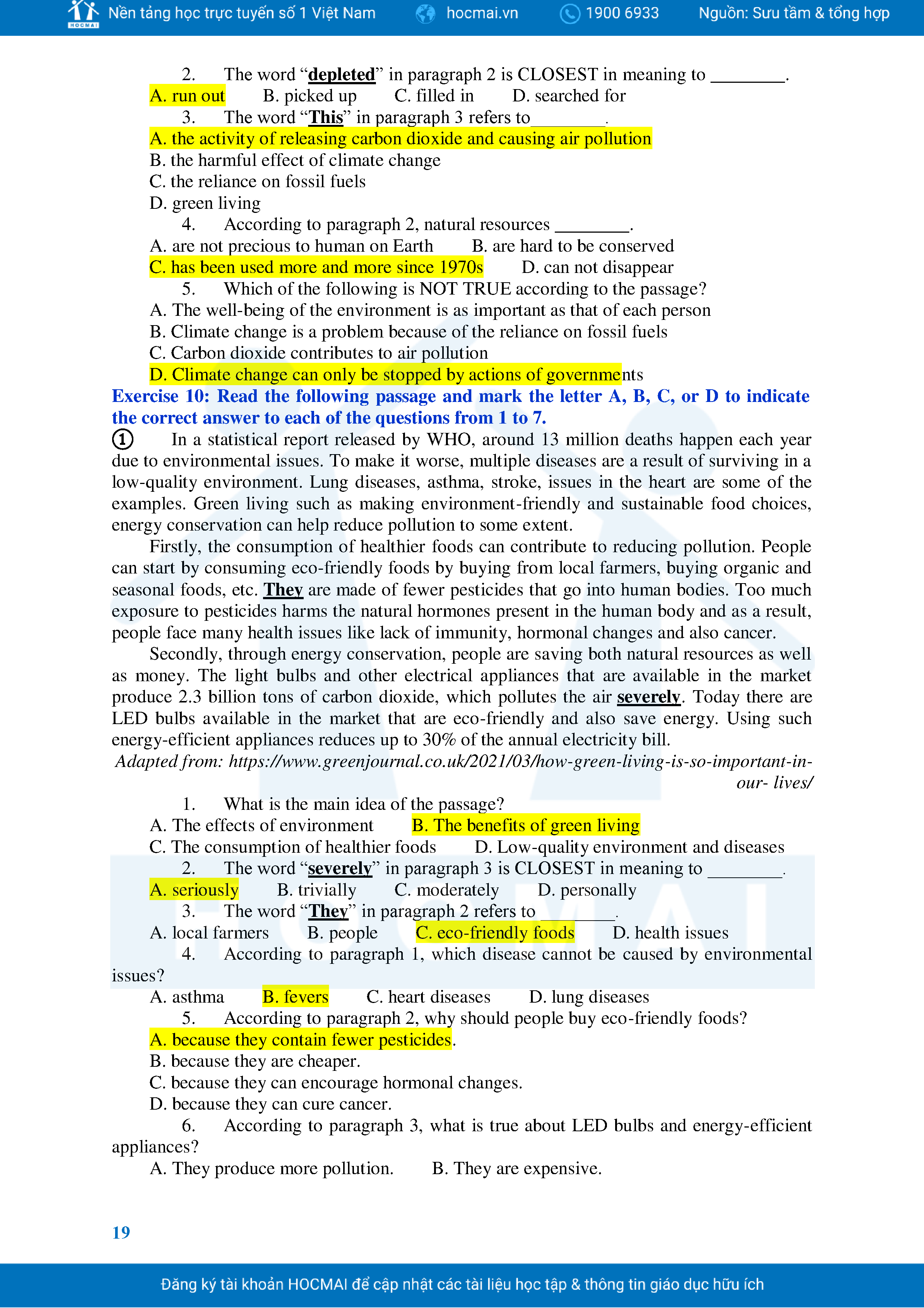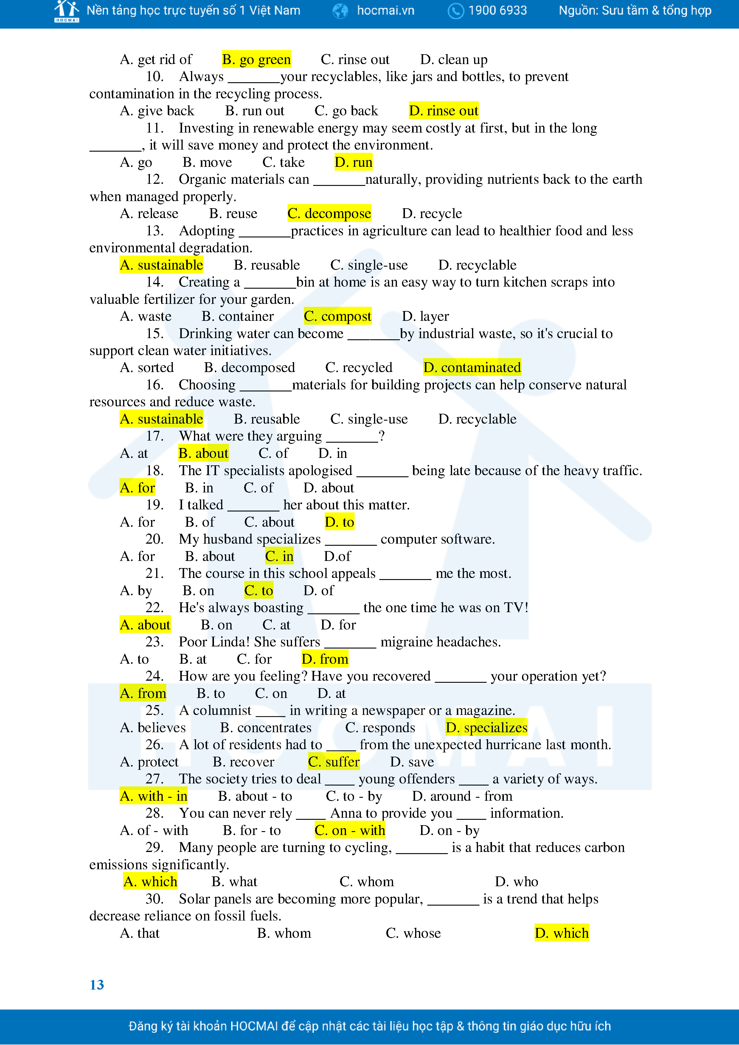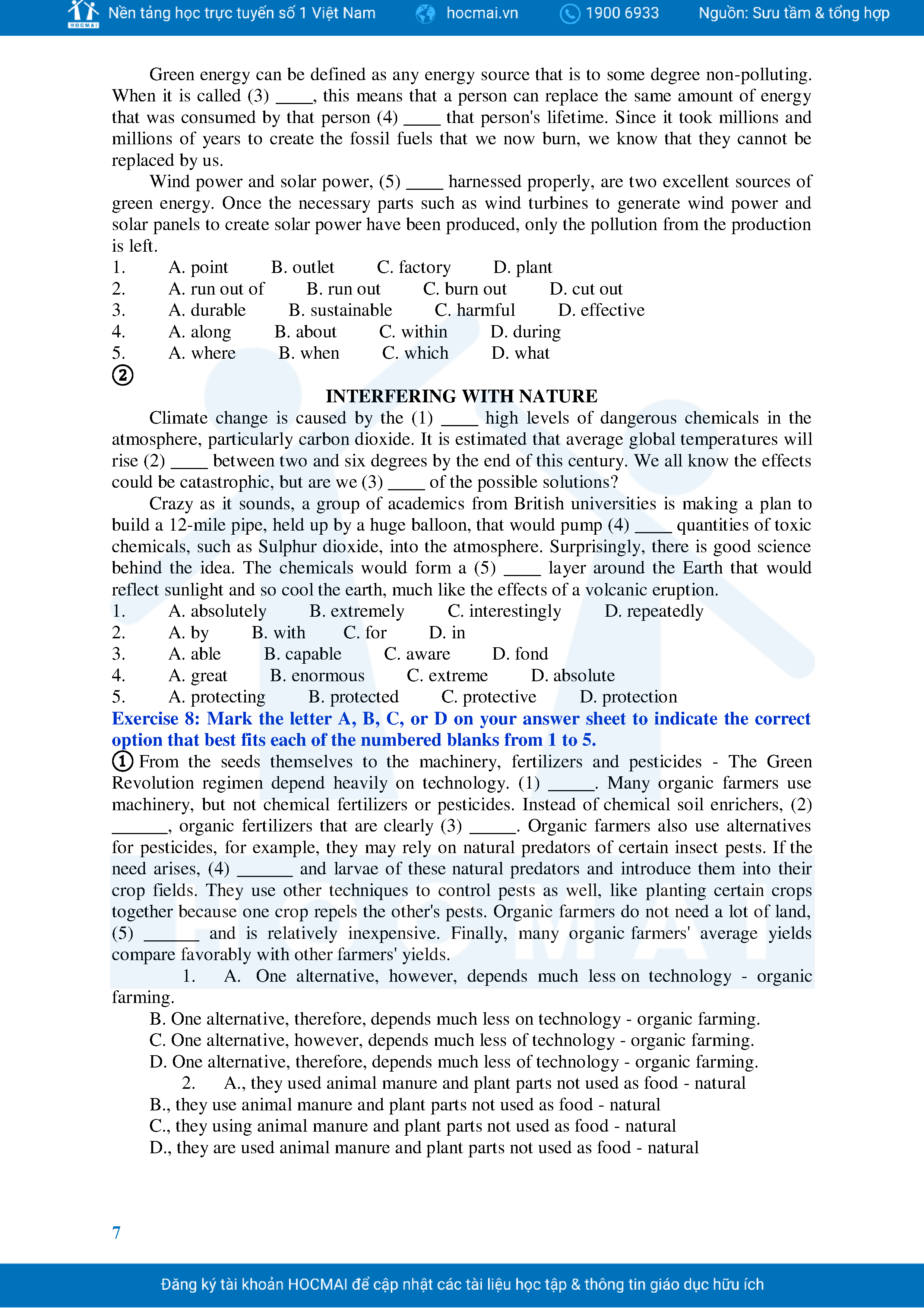 Bài Tập Chuyên Sâu Tiếng Anh 12 Unit 3 Green Living