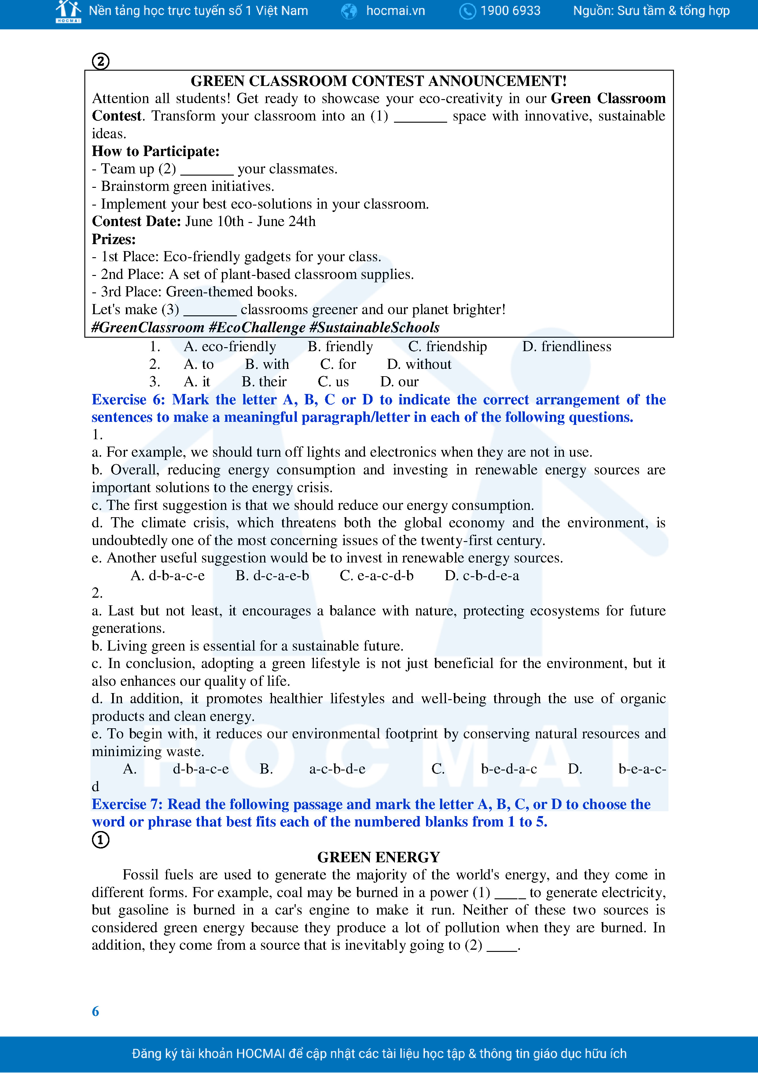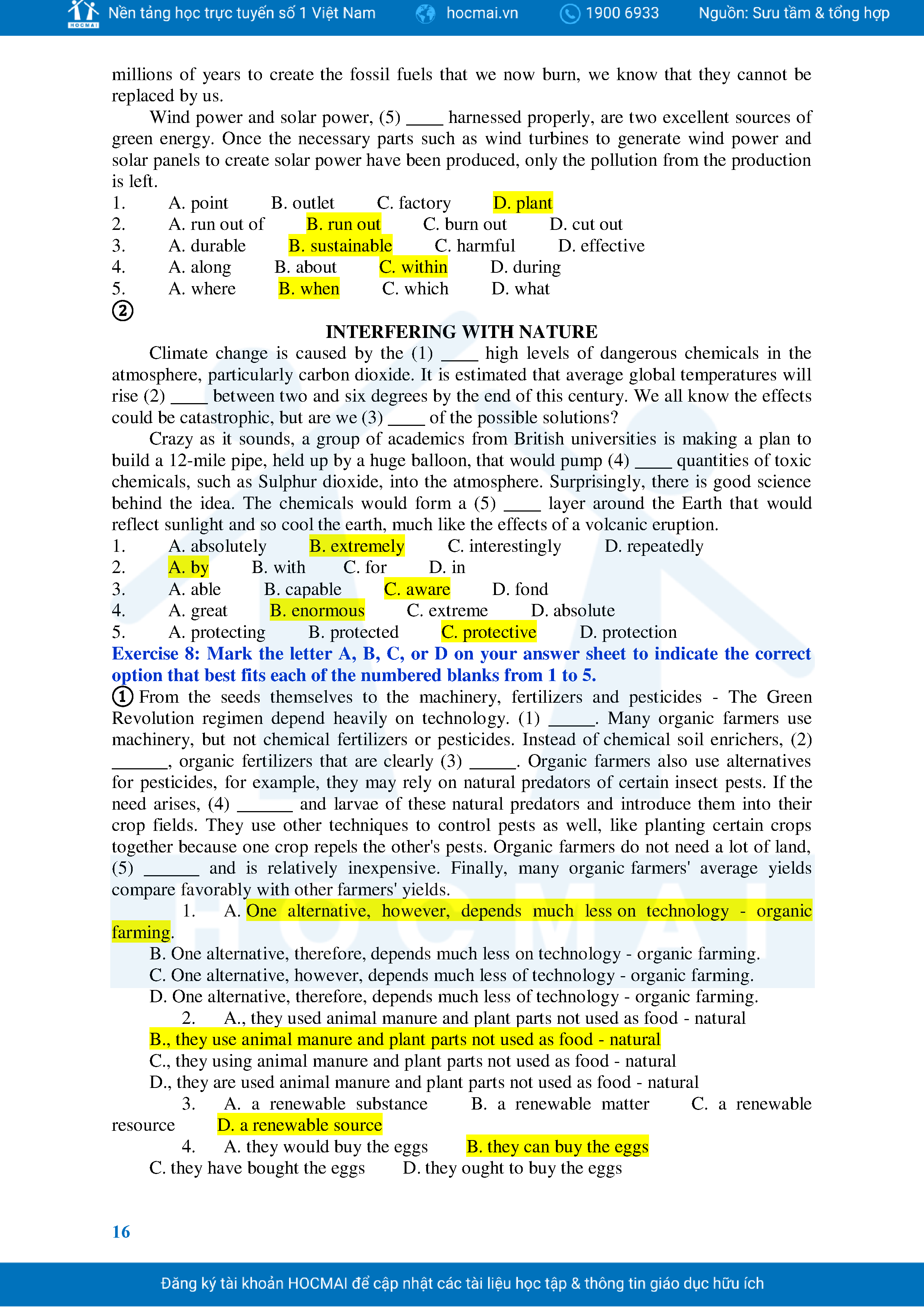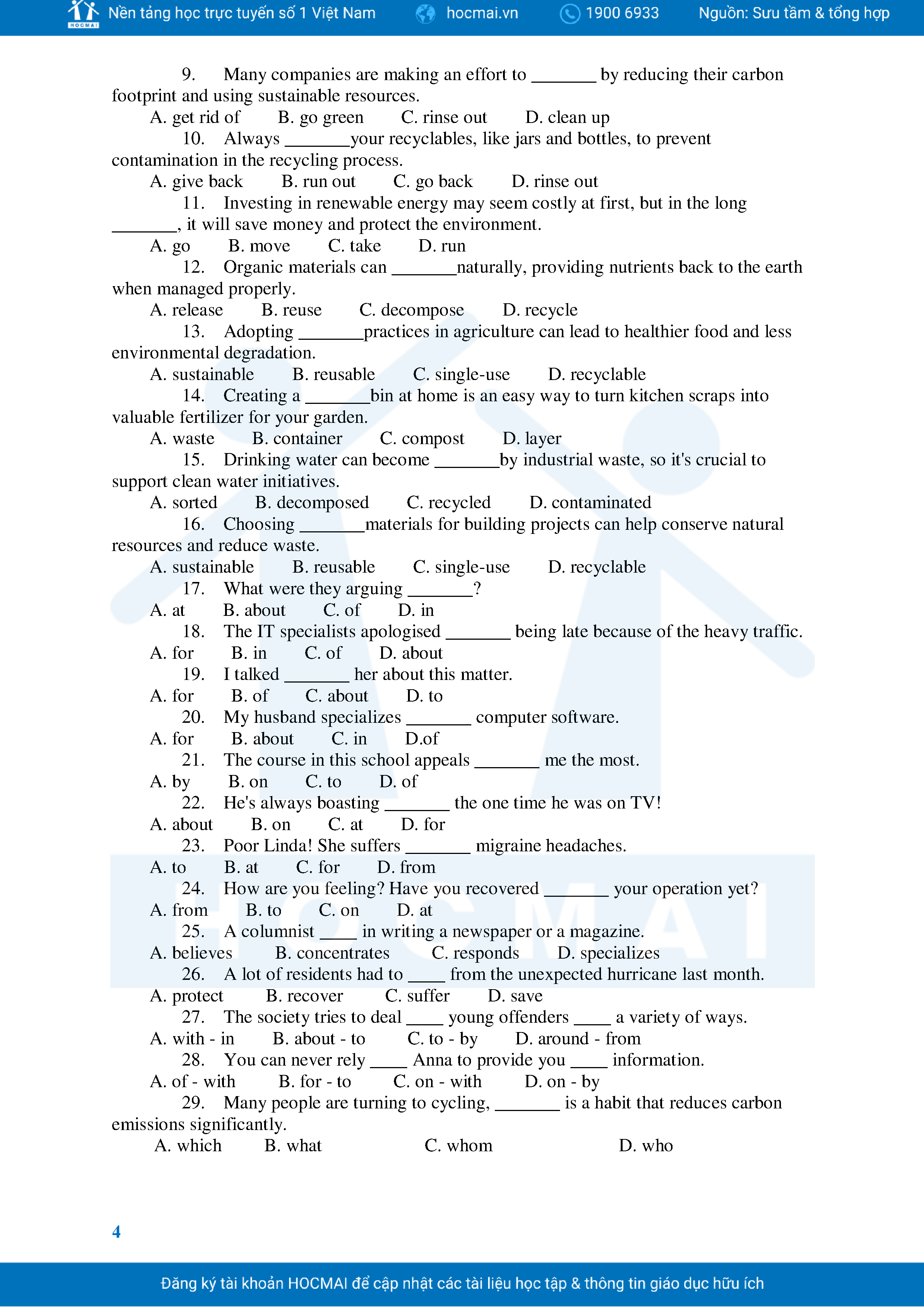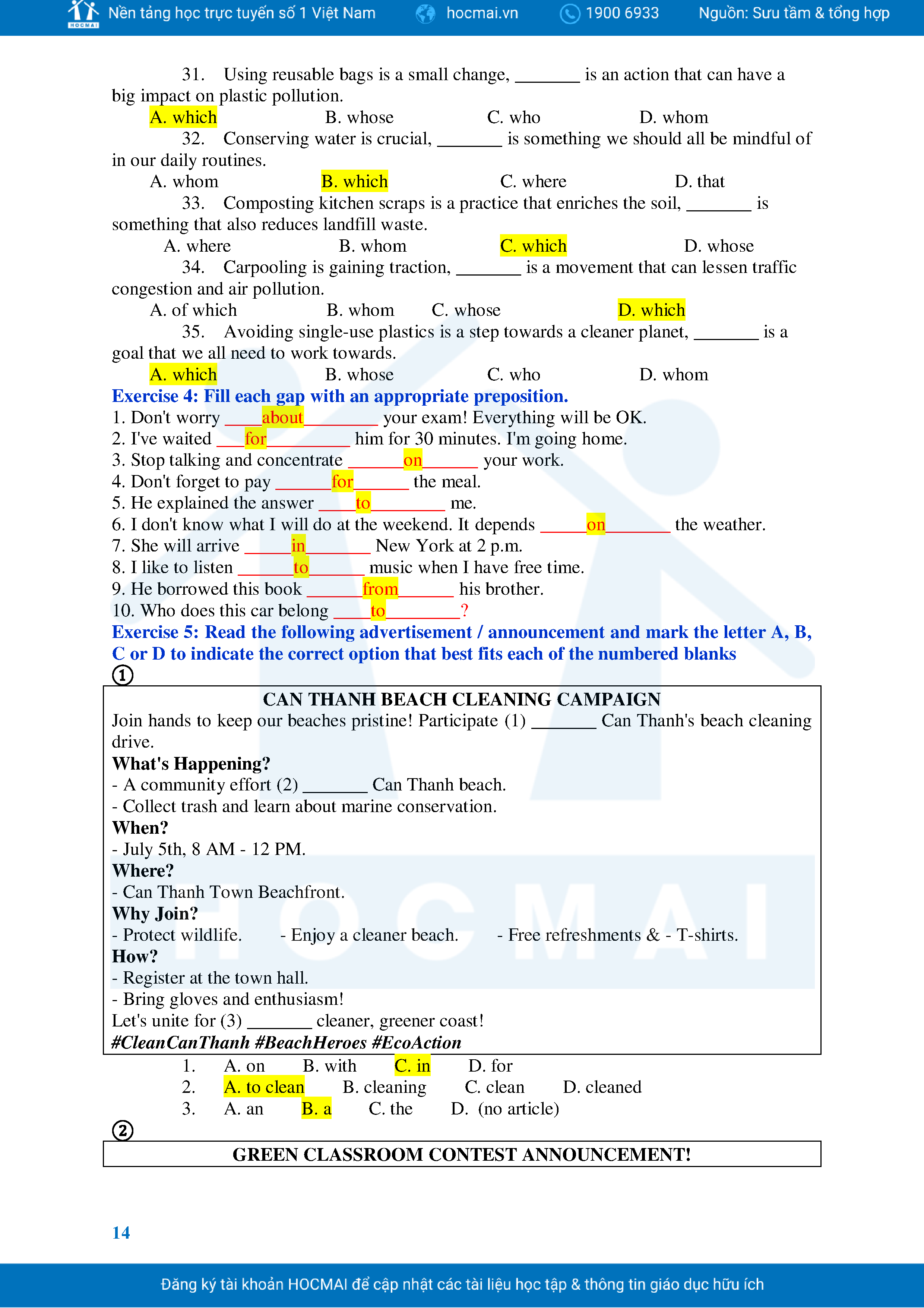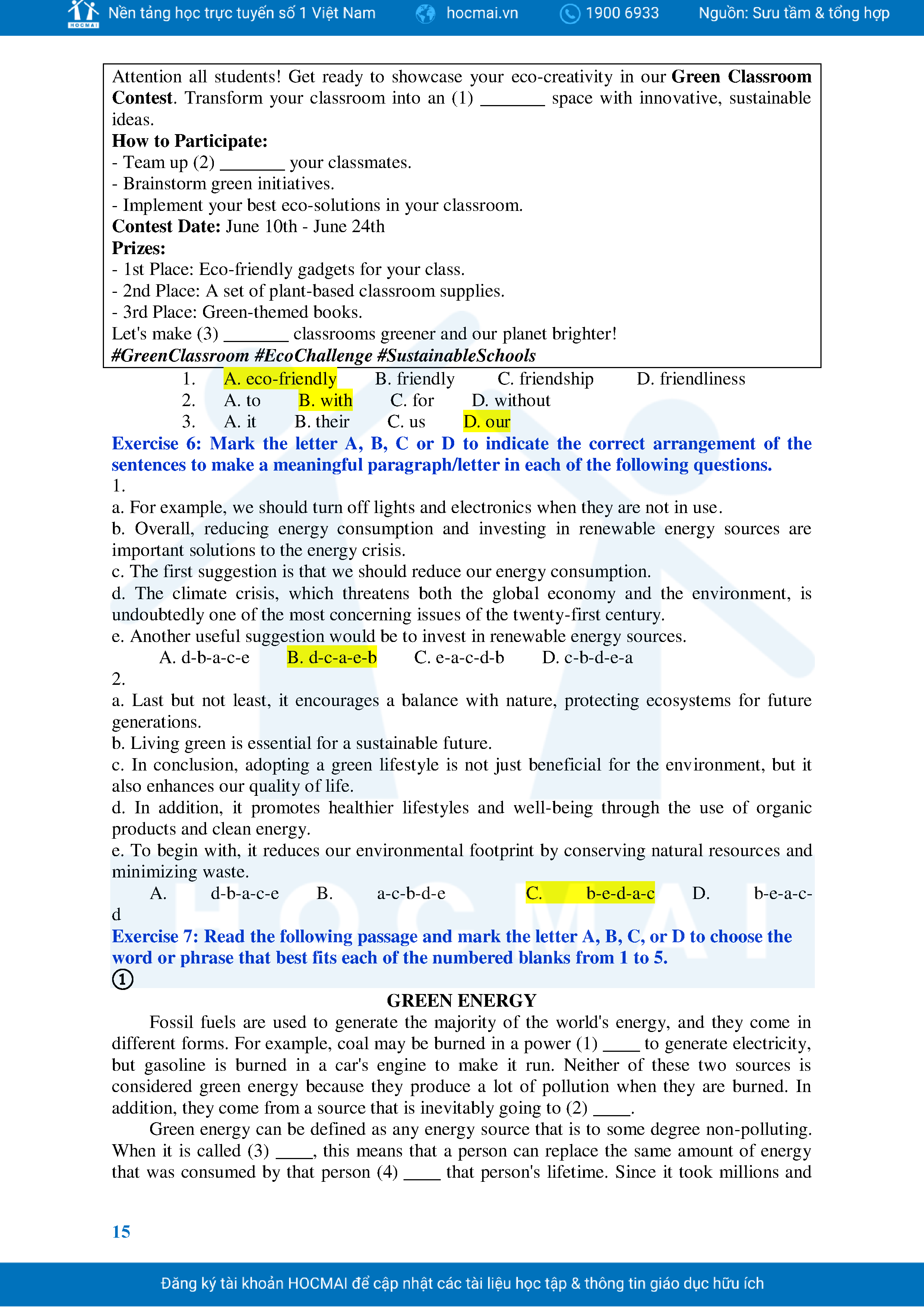 Bài Tập Chuyên Sâu Tiếng Anh 12 Unit 3 Green Living