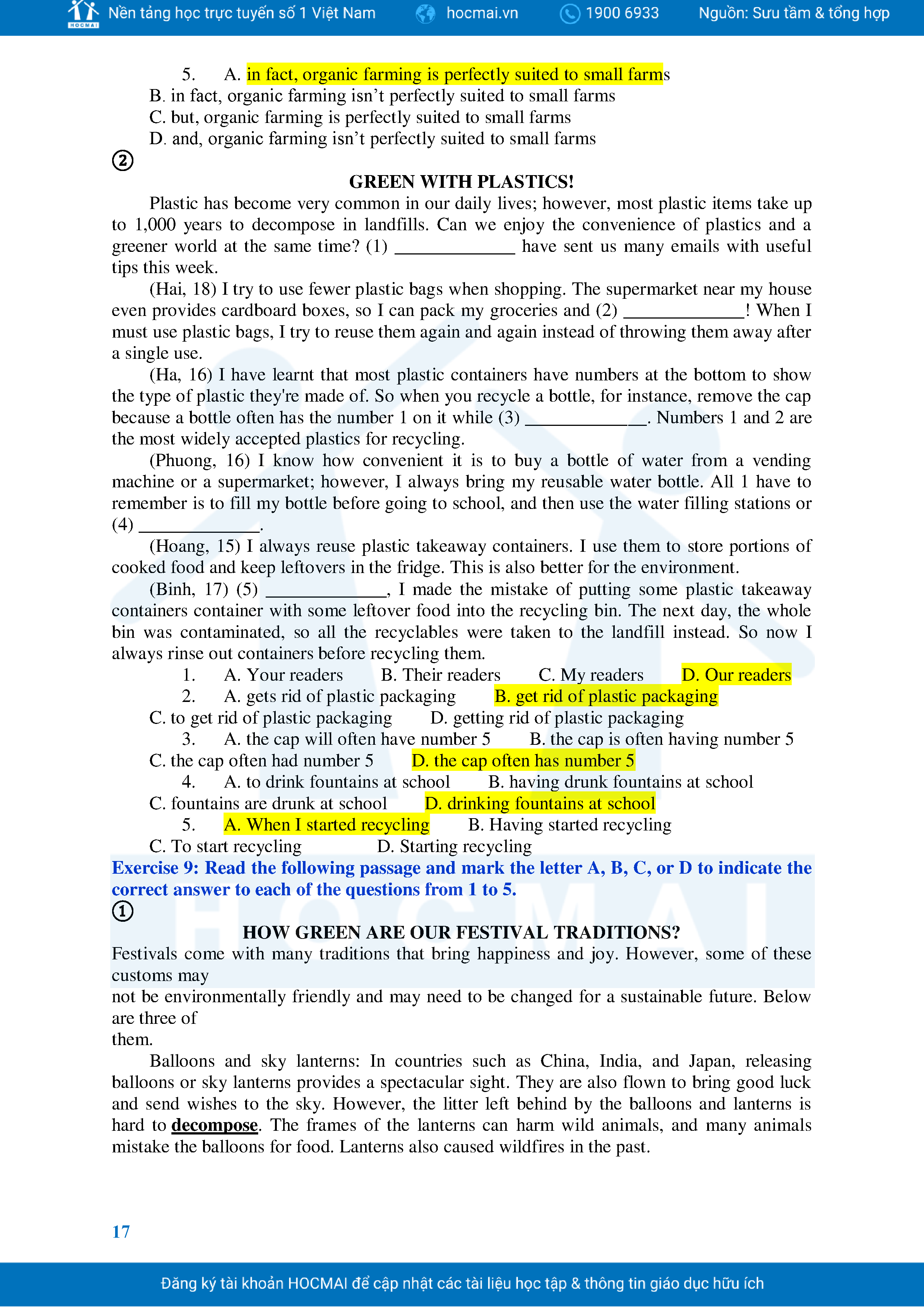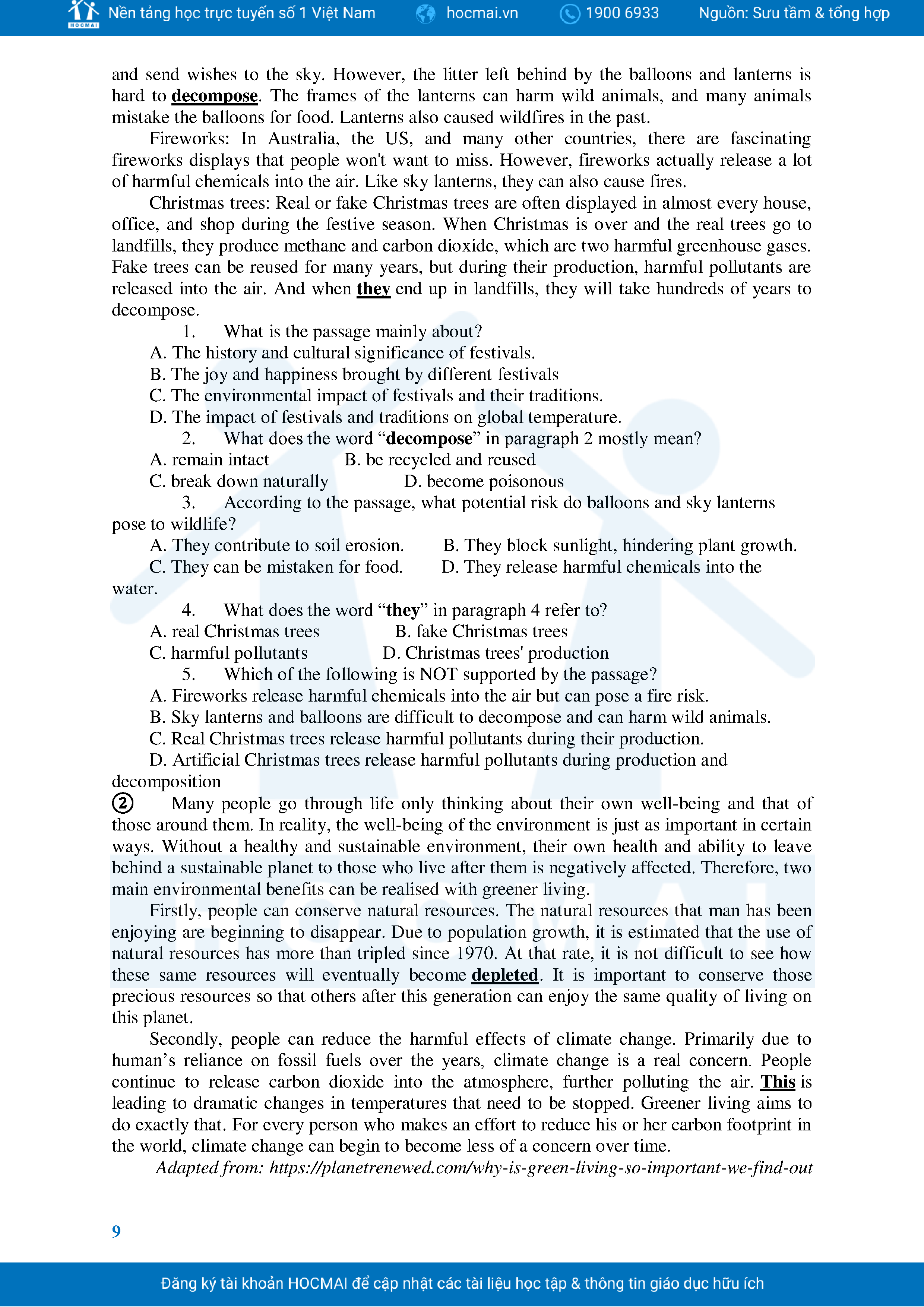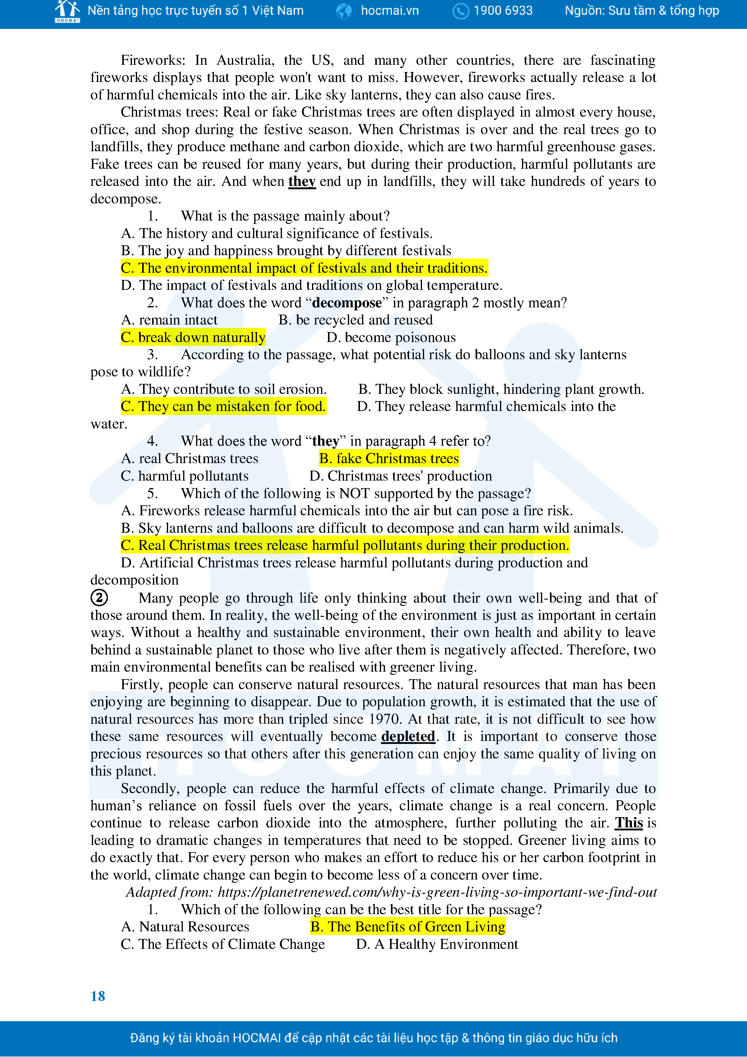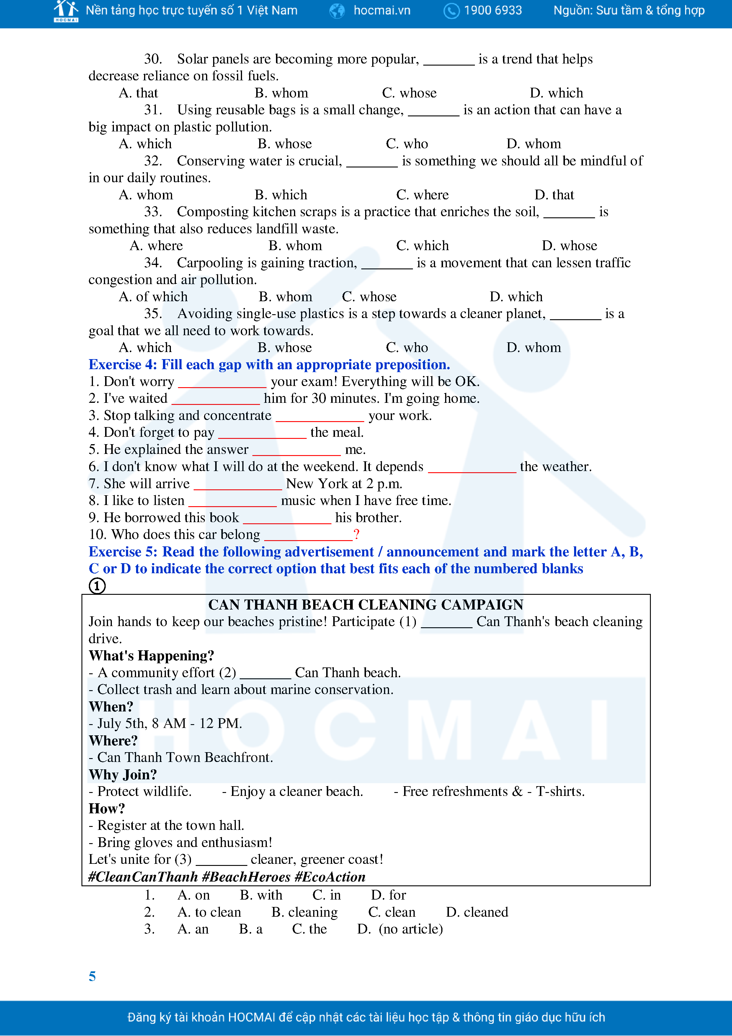 Bài Tập Chuyên Sâu Tiếng Anh 12 Unit 3 Green Living
